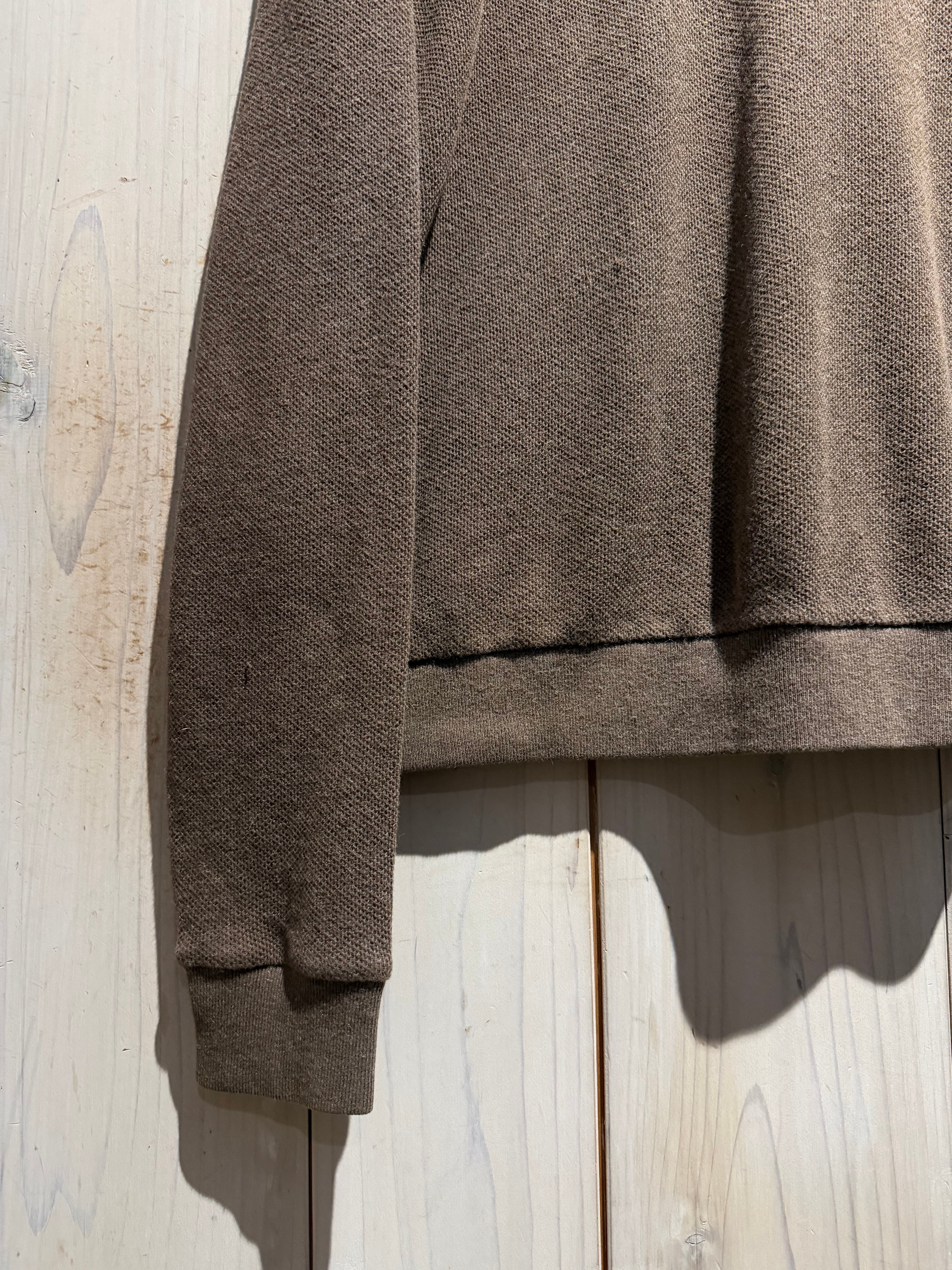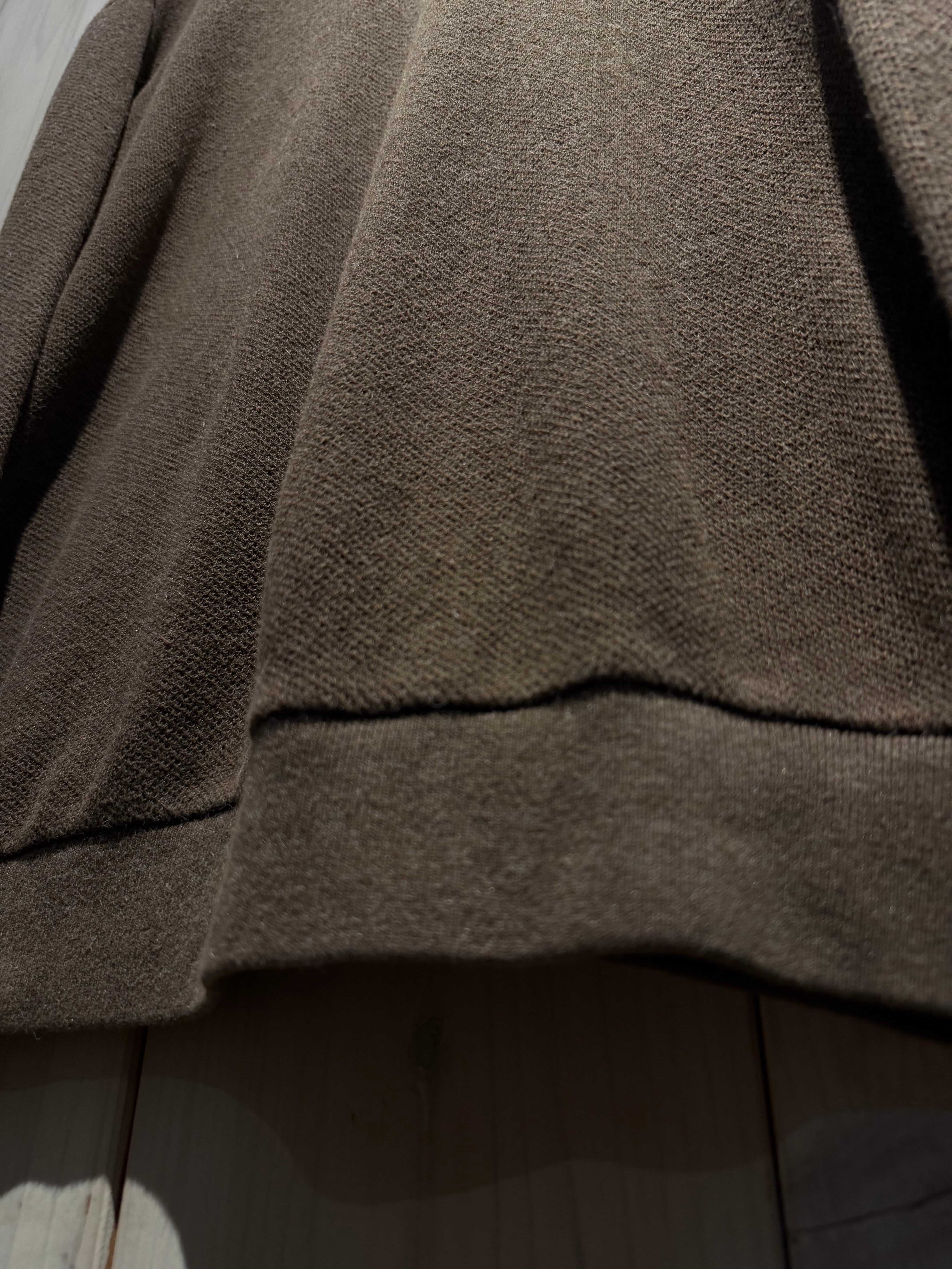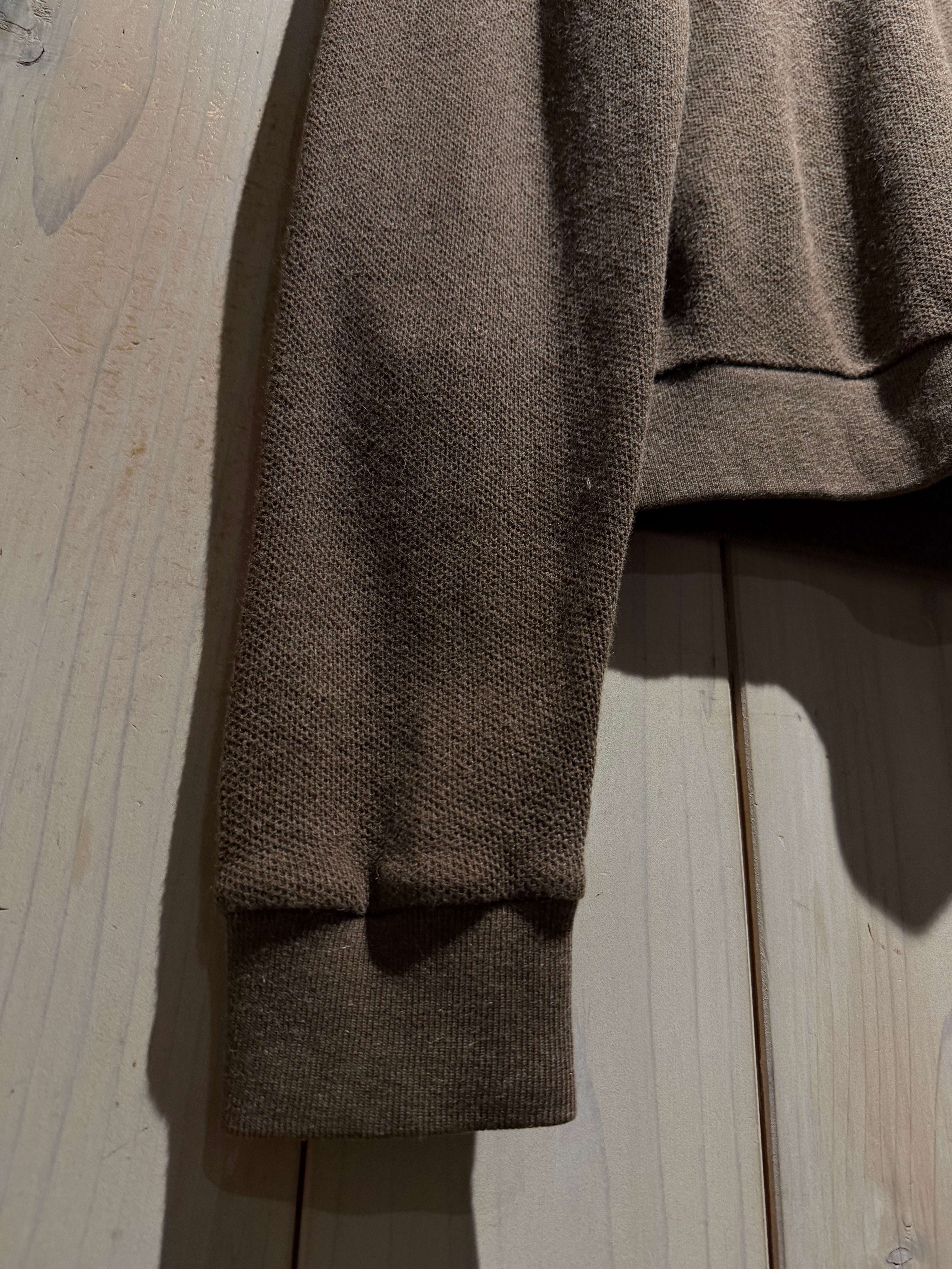 ボディにはコットン×アルパカの混紡素材を採用し、コットンの柔らかさにアルパカ特有の軽やかでほんのり起毛感のある風合いがプラス。ベーシックなデザインですが、意外とアルパカ混の個体は見つかりません。
