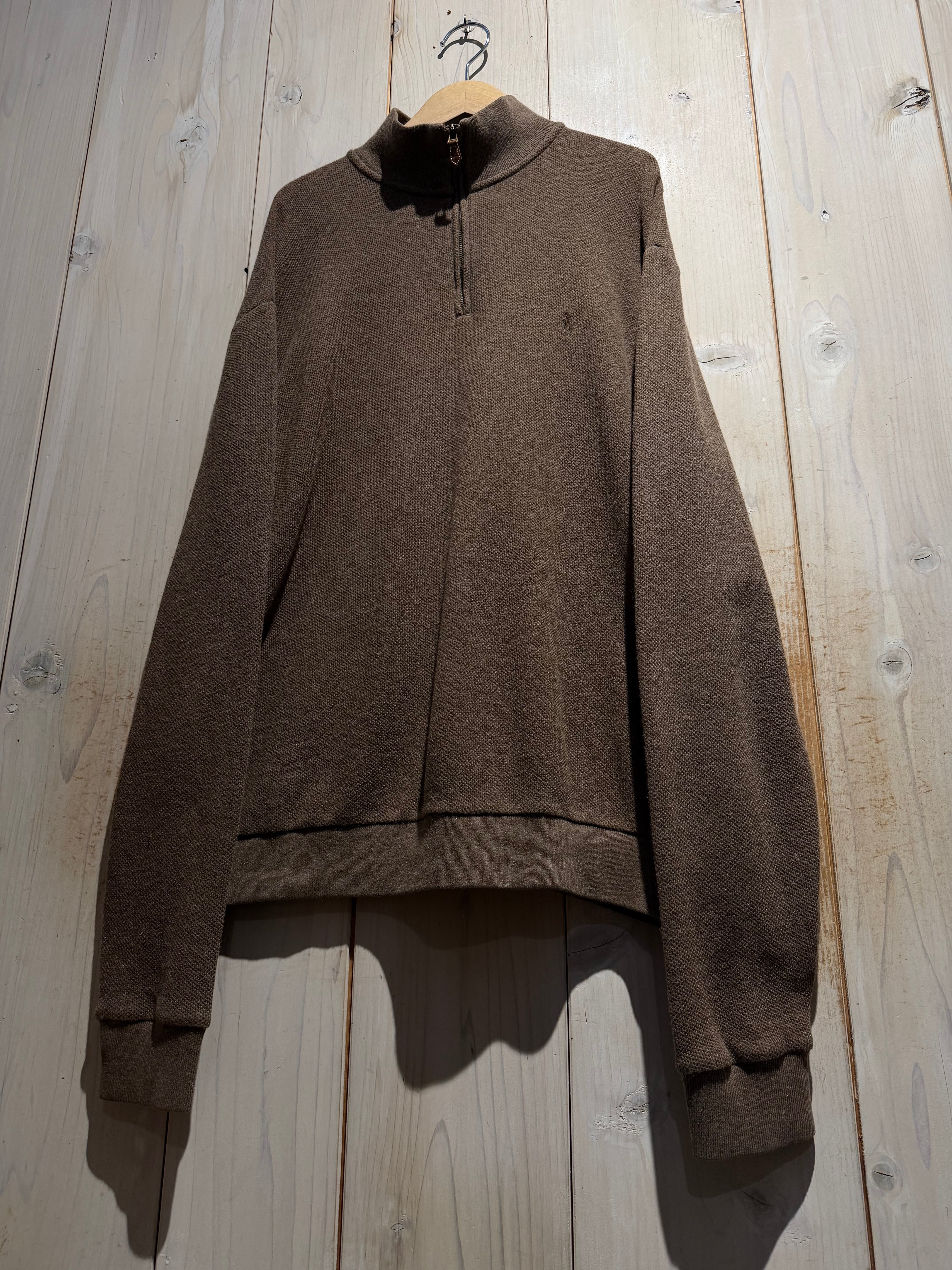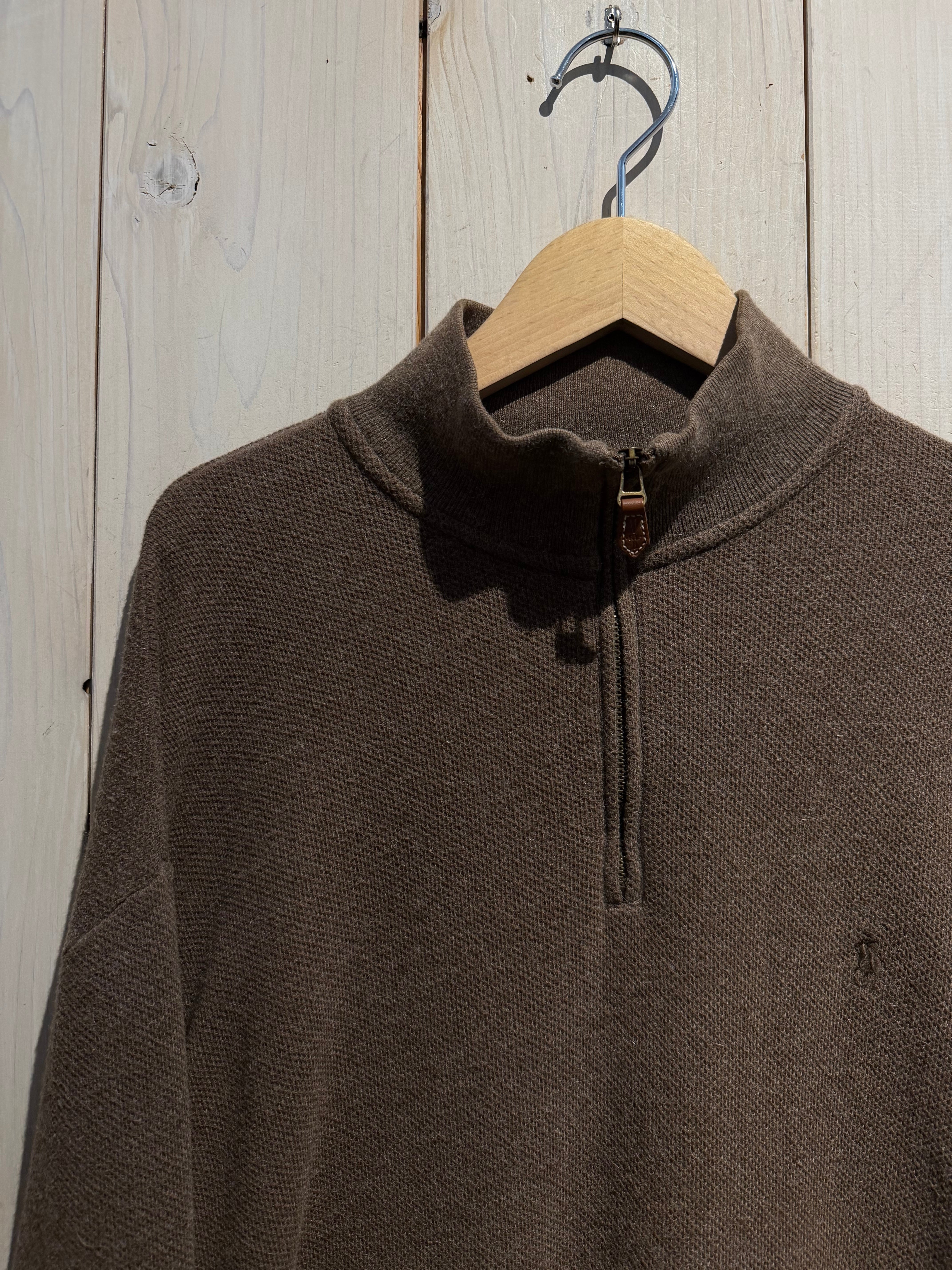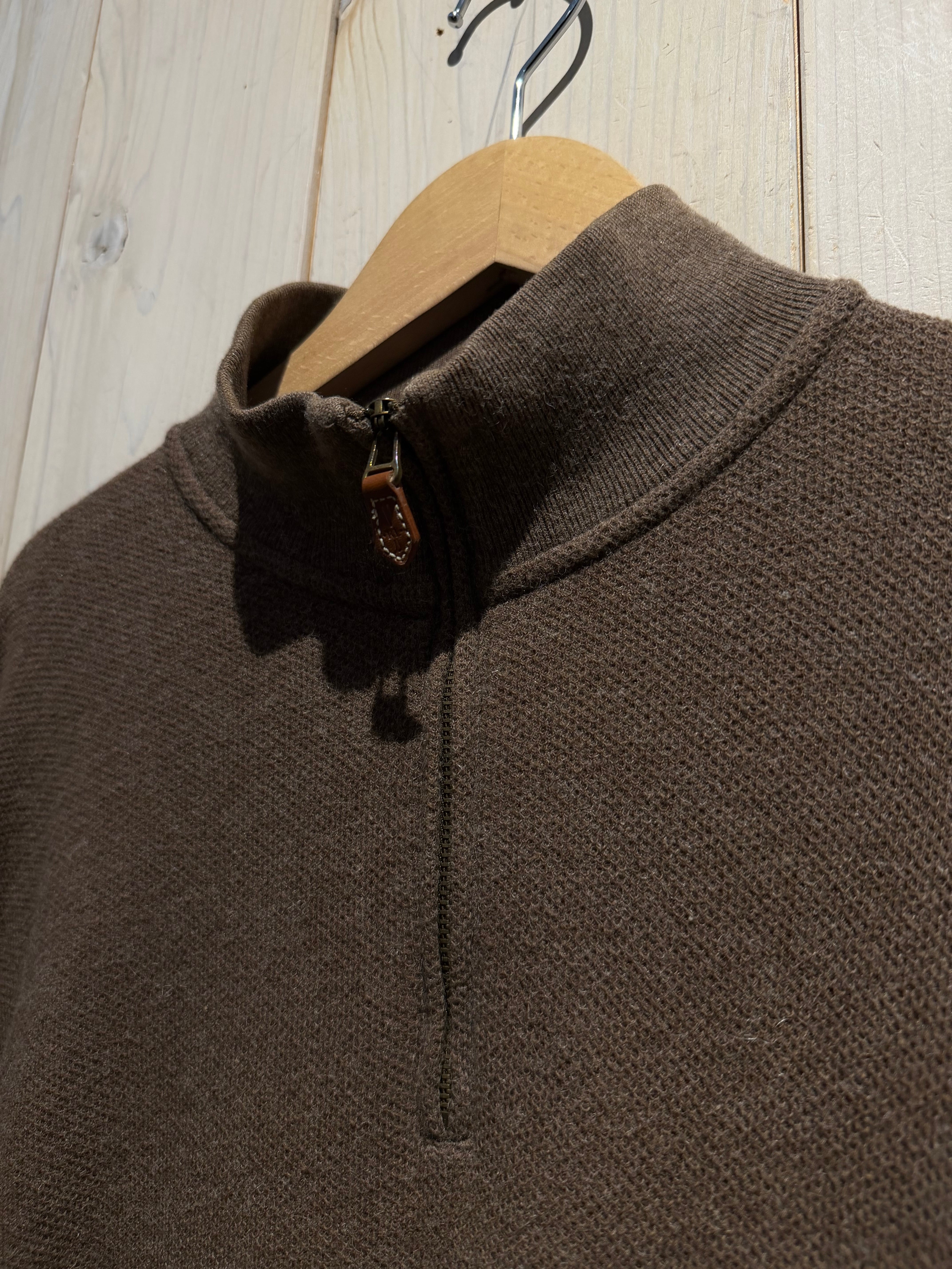 “POLO GOLF”らしい上品さとスポーティな空気感、さらにアルパカ混という珍しい素材使いが光る、ハーフジップニットの1着です。