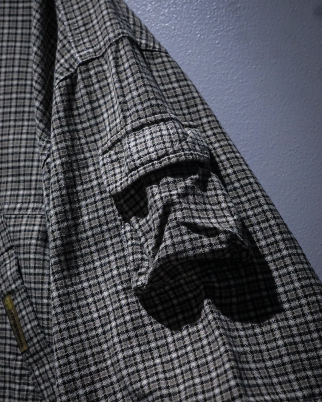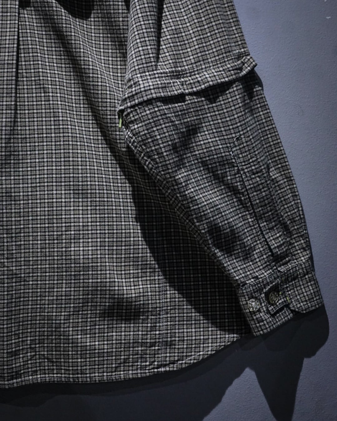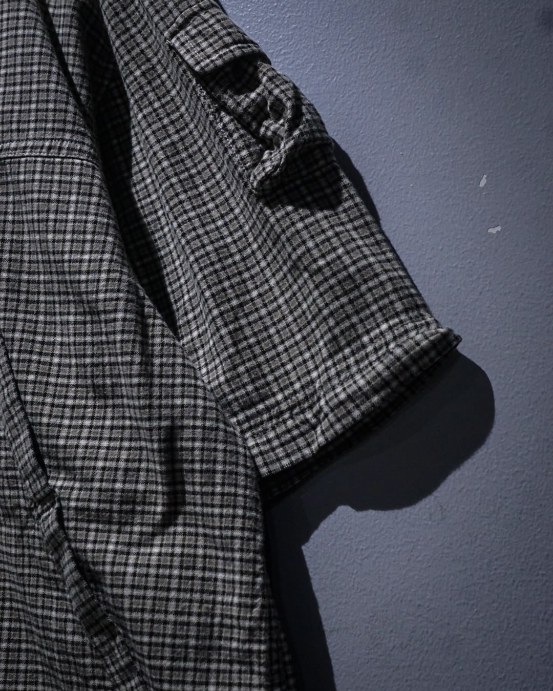 細かなチェック柄をベースにしたコットンファブリックは、軽やかさと程よいハリを兼ね備えた質感。落ち着いたトーンの中に柄の奥行きがあり、シンプルながらも表情豊かな仕上がりです。裏地にはメッシュを配し、通気性と快適さを高めた構造も魅力。