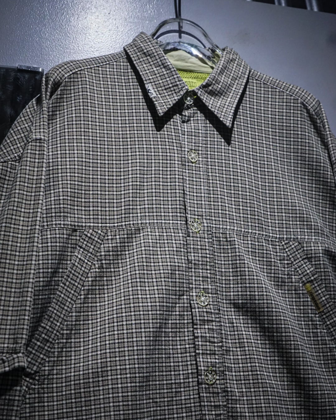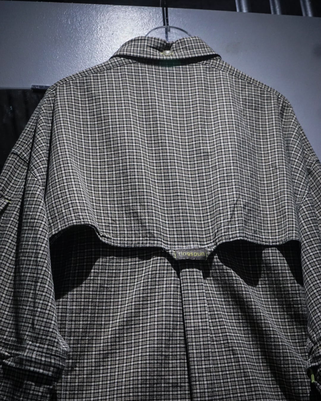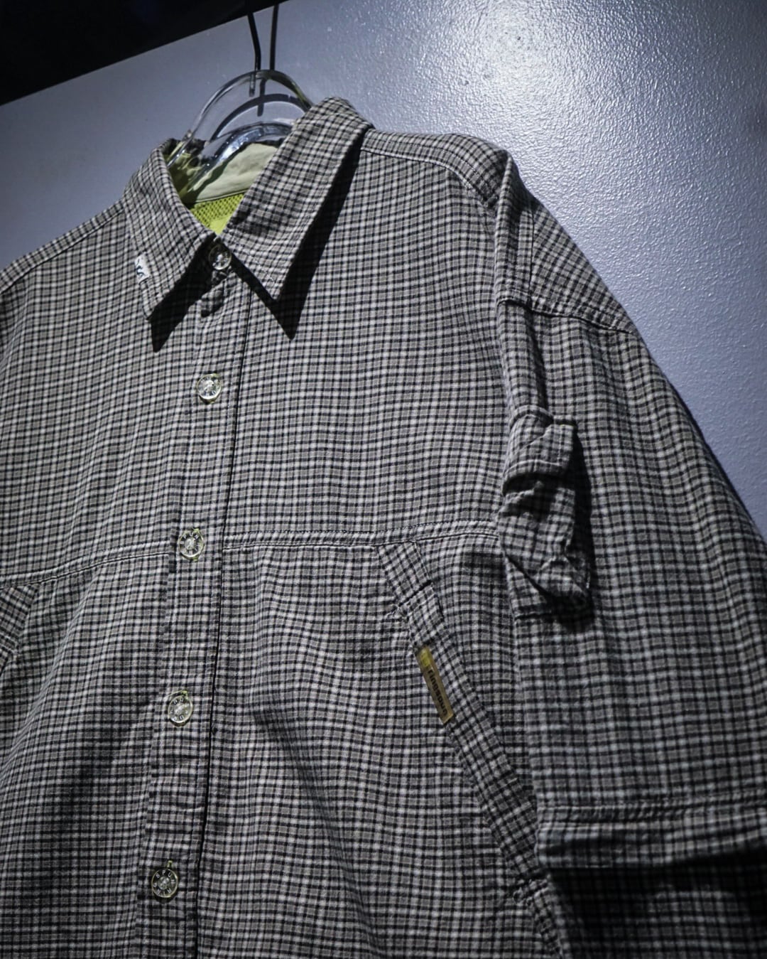 細かなチェック柄をベースにしたコットンファブリックは、軽やかさと程よいハリを兼ね備えた質感。落ち着いたトーンの中に柄の奥行きがあり、シンプルながらも表情豊かな仕上がりです。裏地にはメッシュを配し、通気性と快適さを高めた構造も魅力。