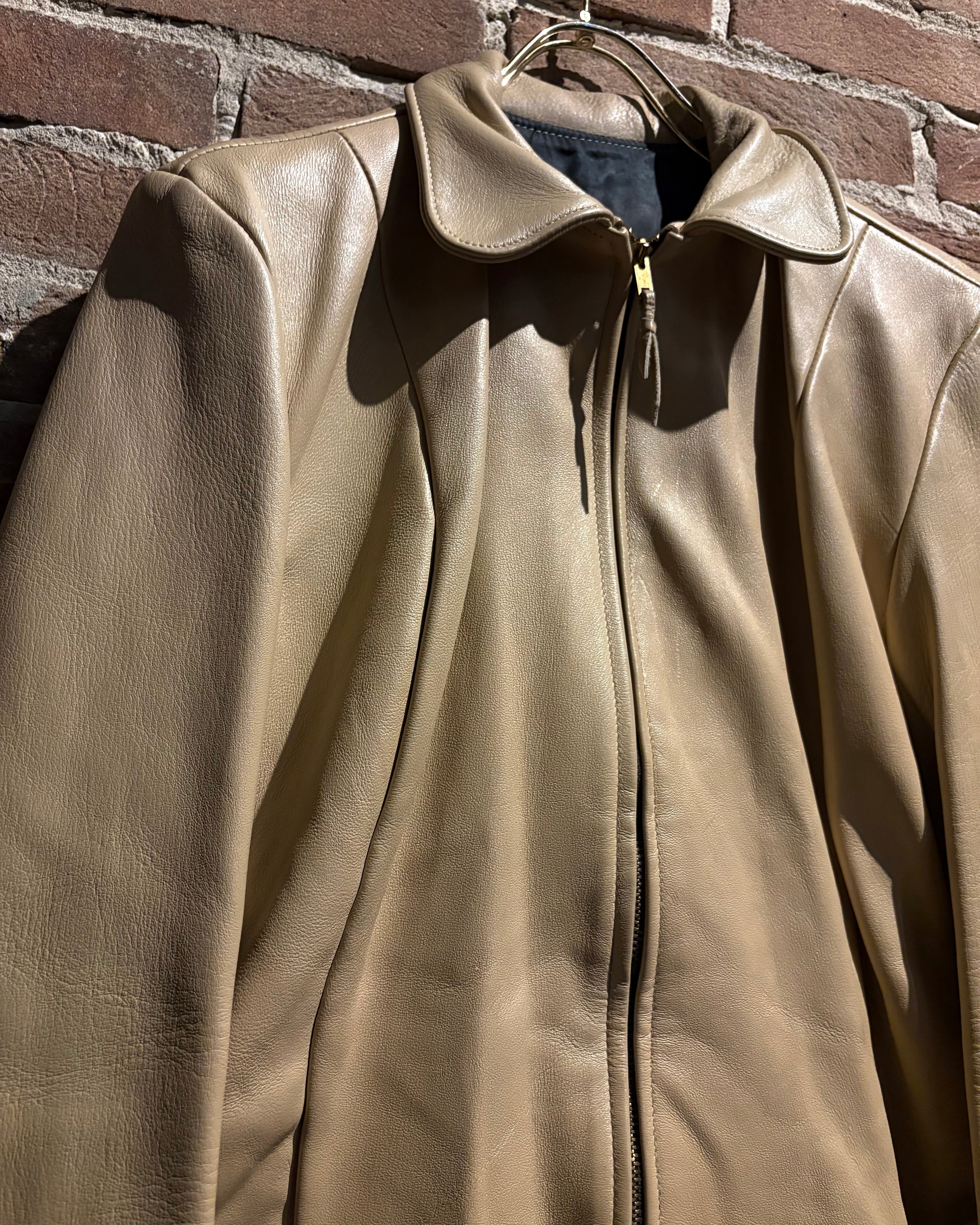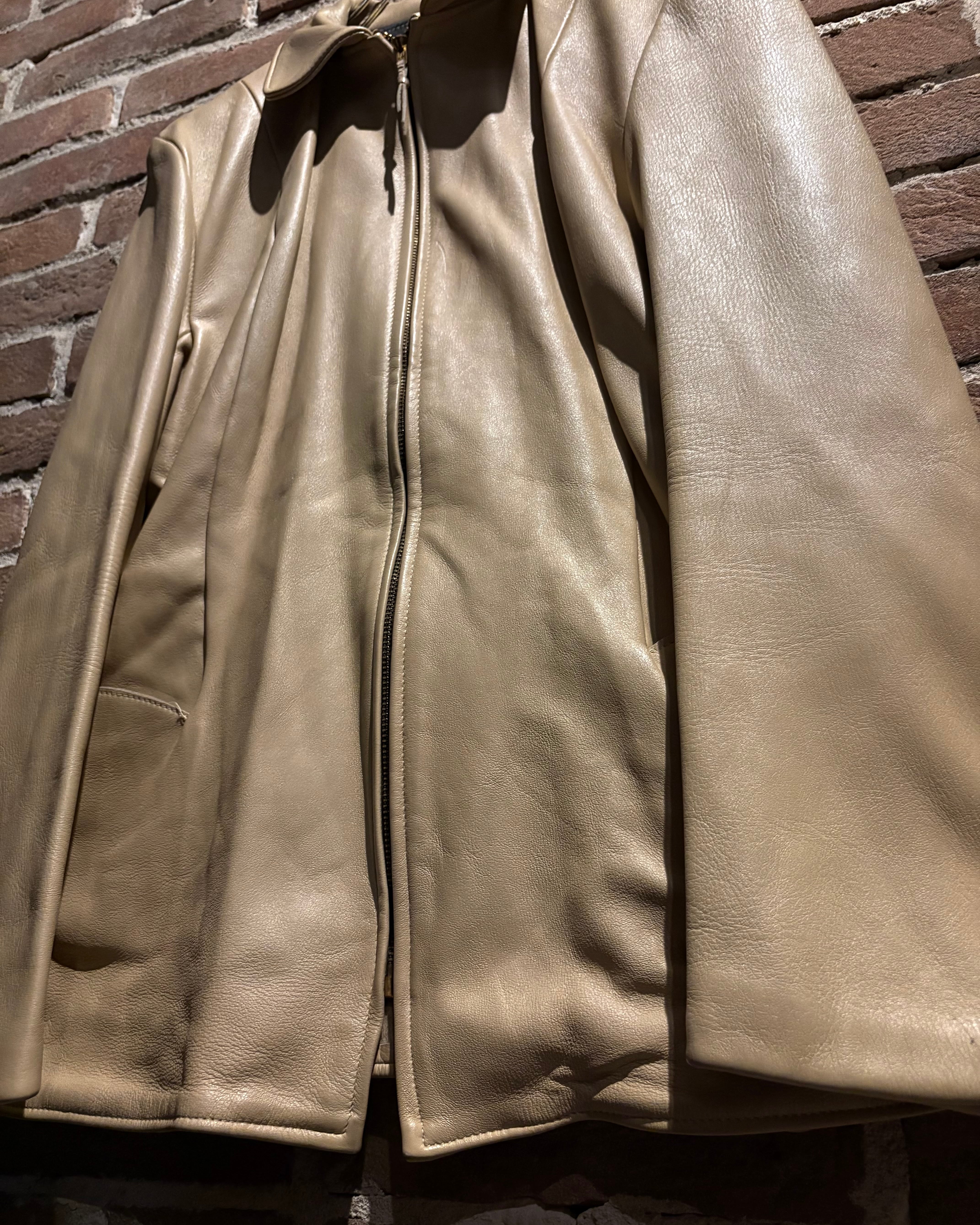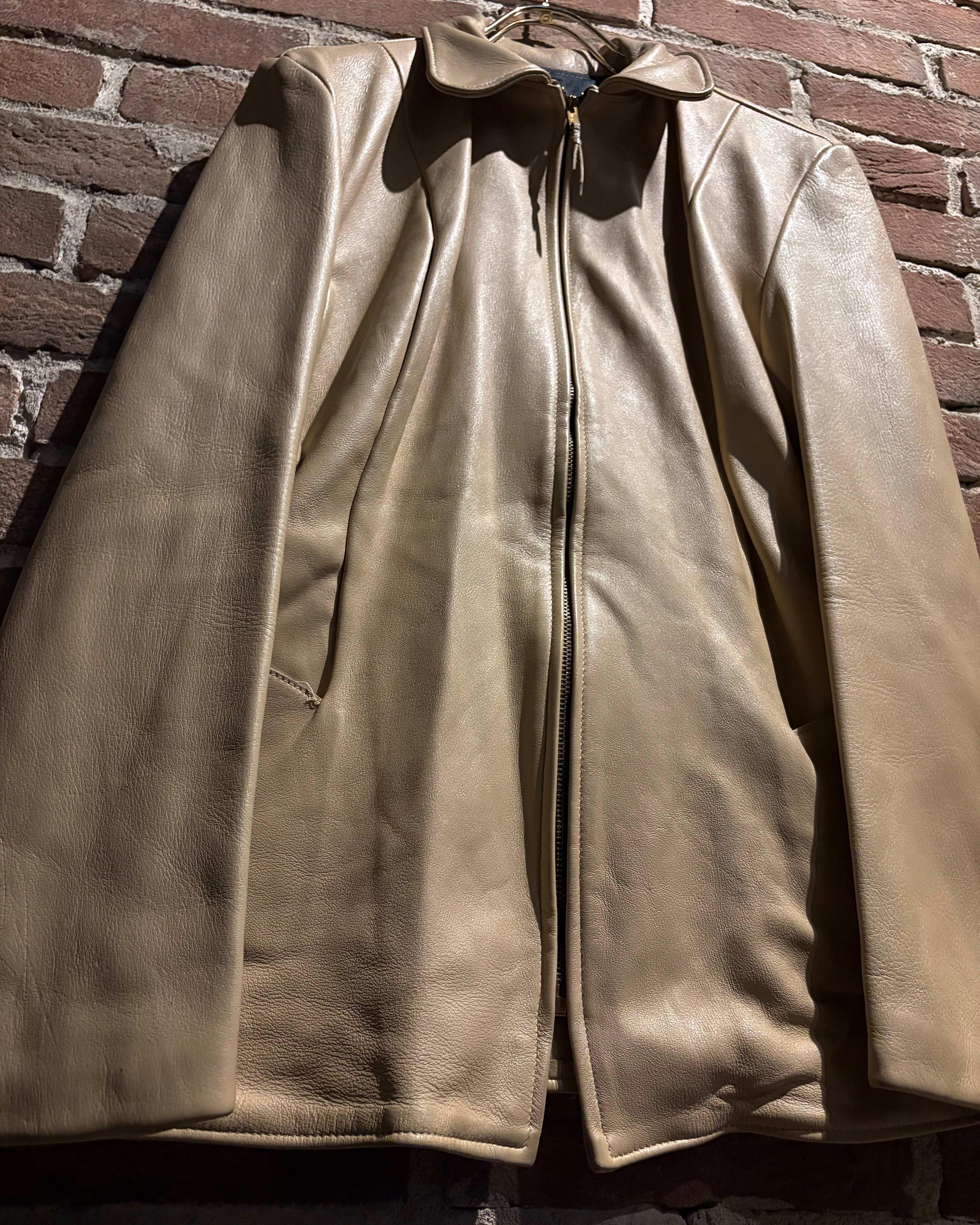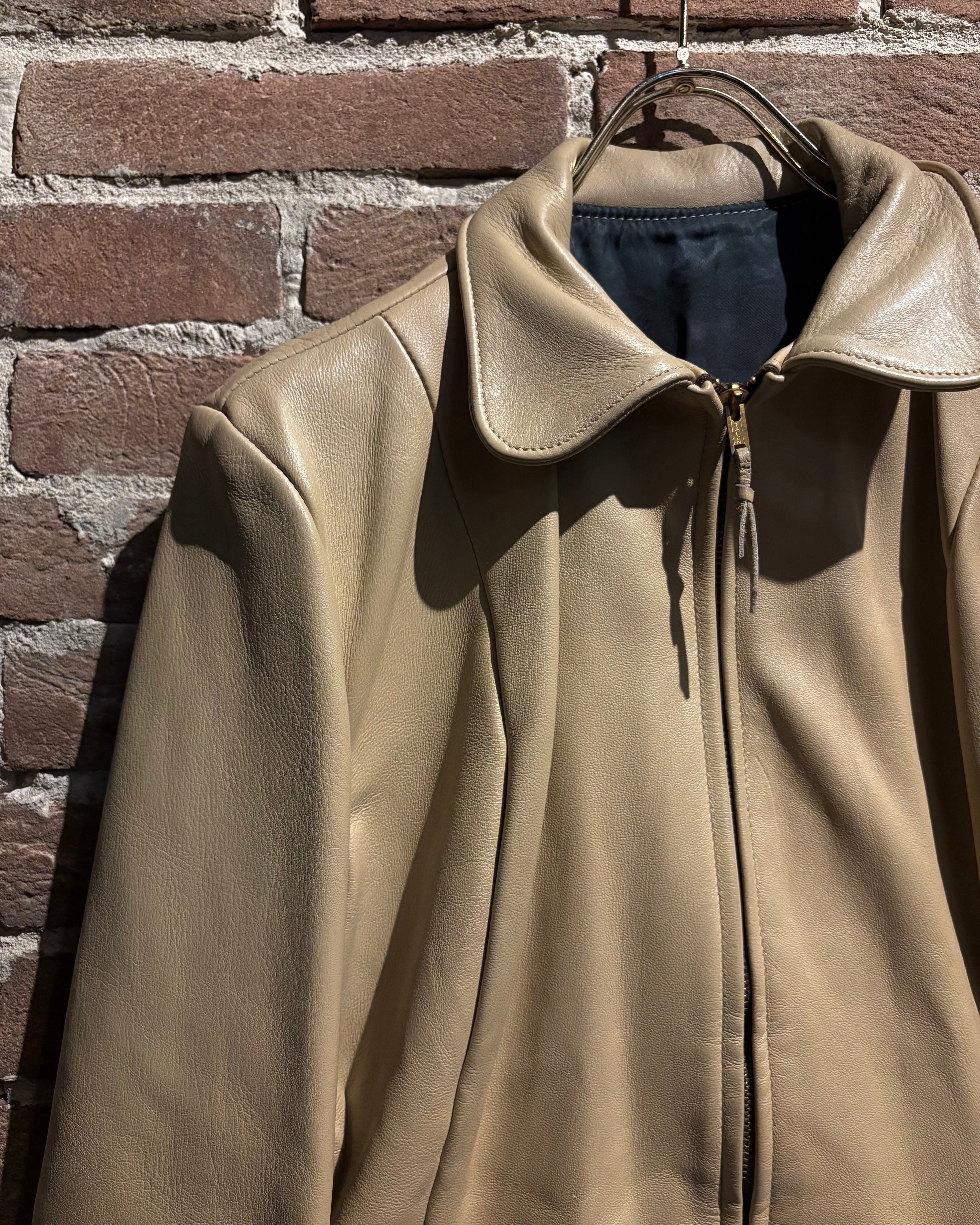 しなやかで上質なレザーを贅沢に使用した、ヴィンテージのベージュカラーレザージャケット。