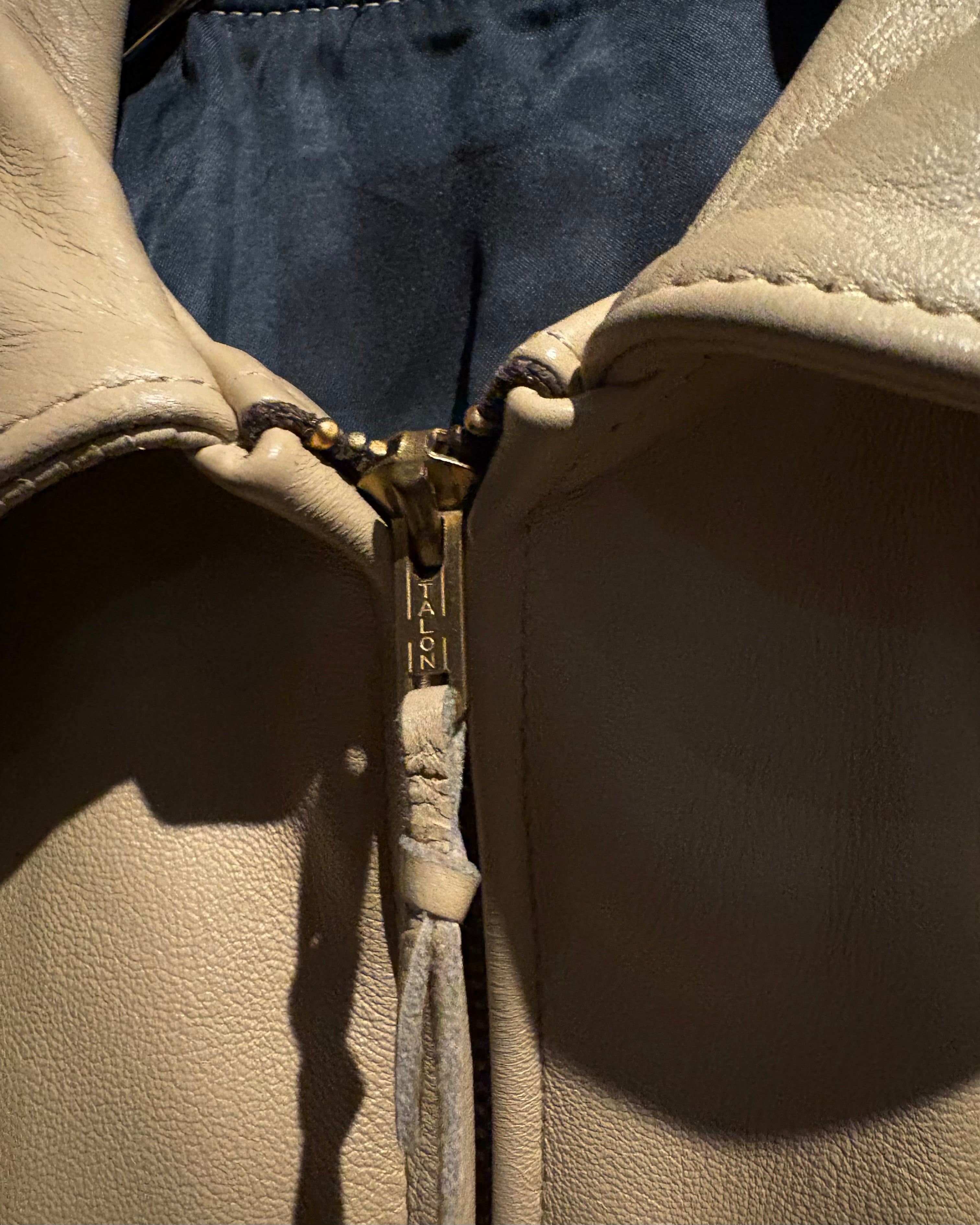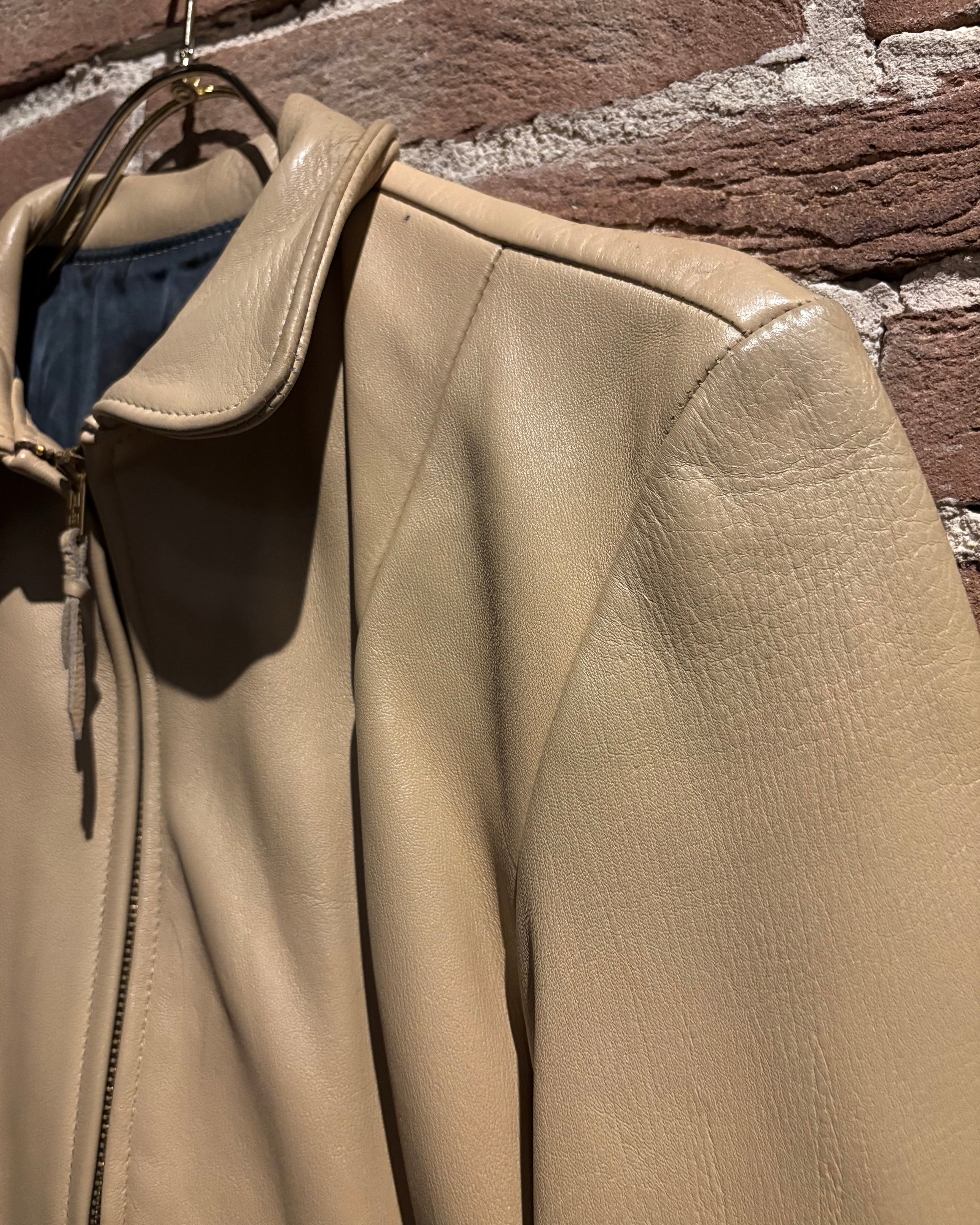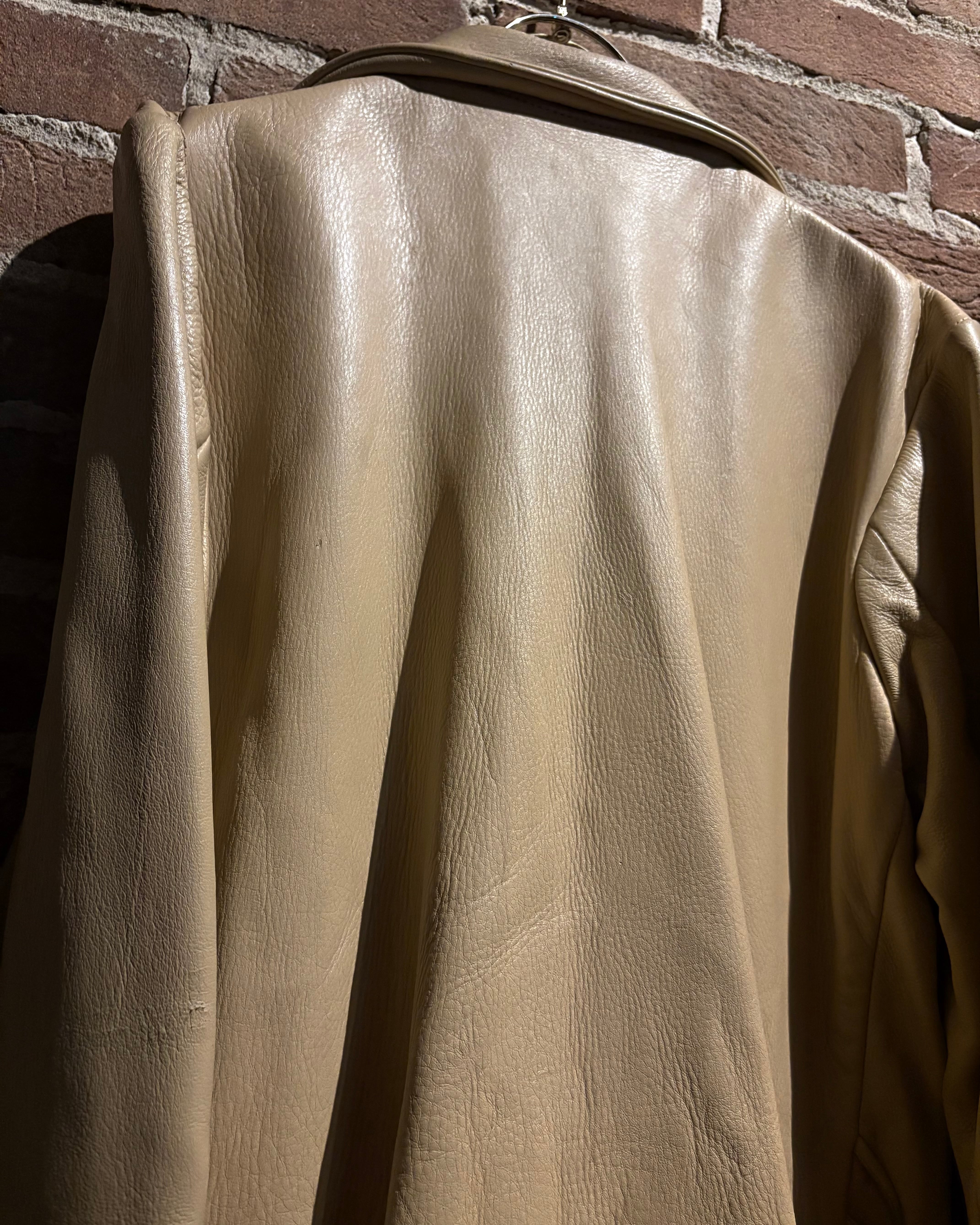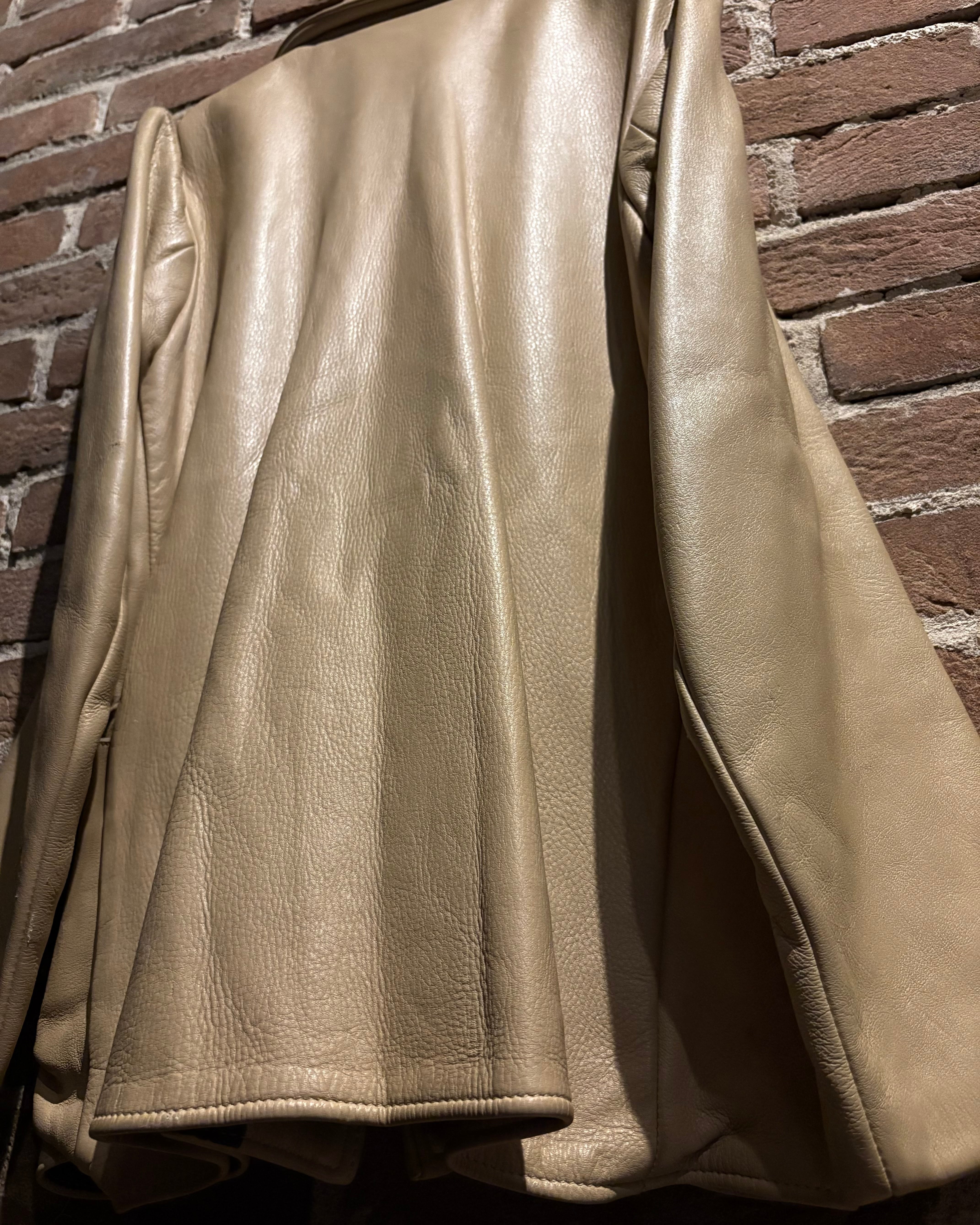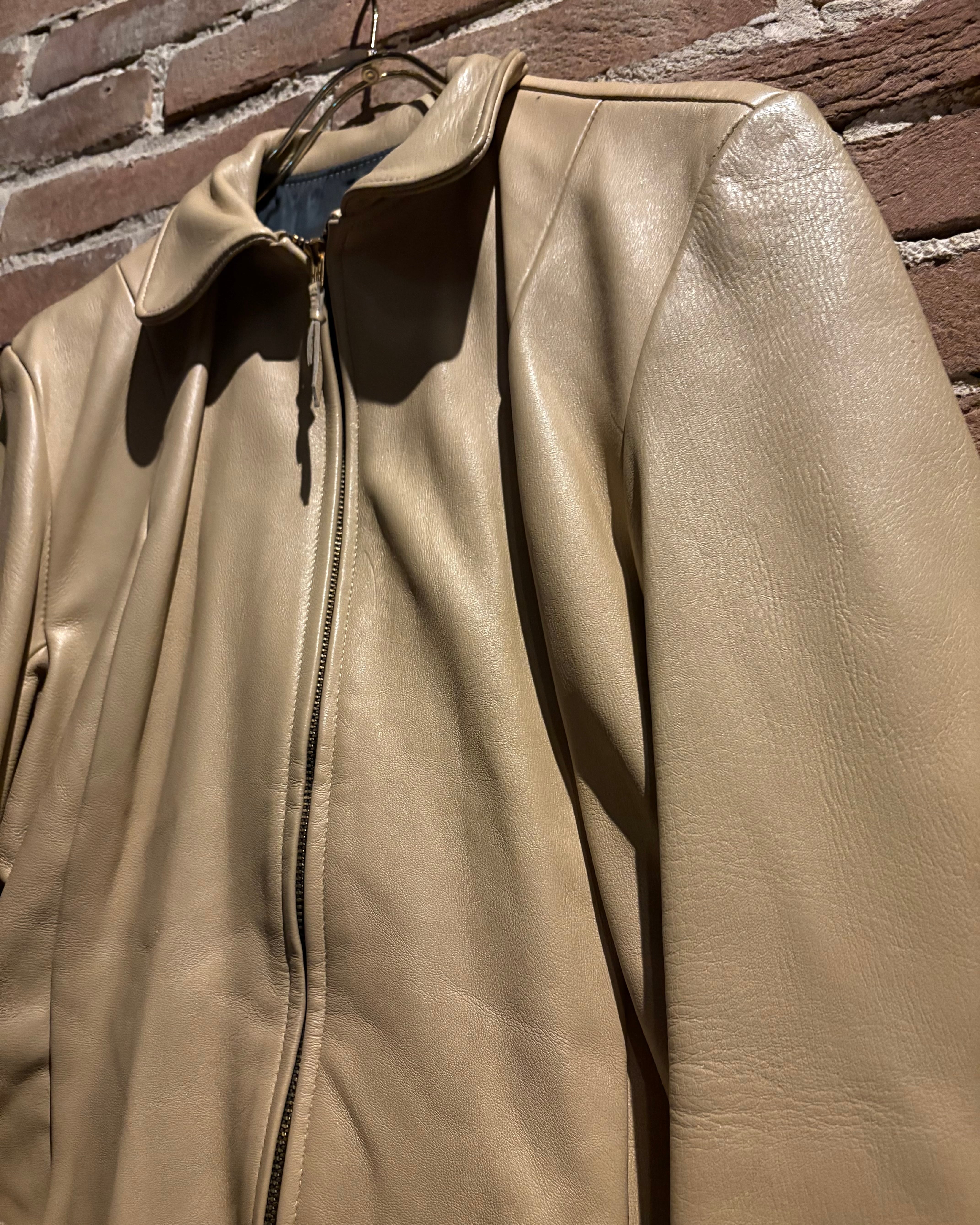しなやかで上質なレザーを贅沢に使用した、ヴィンテージのベージュカラーレザージャケット。