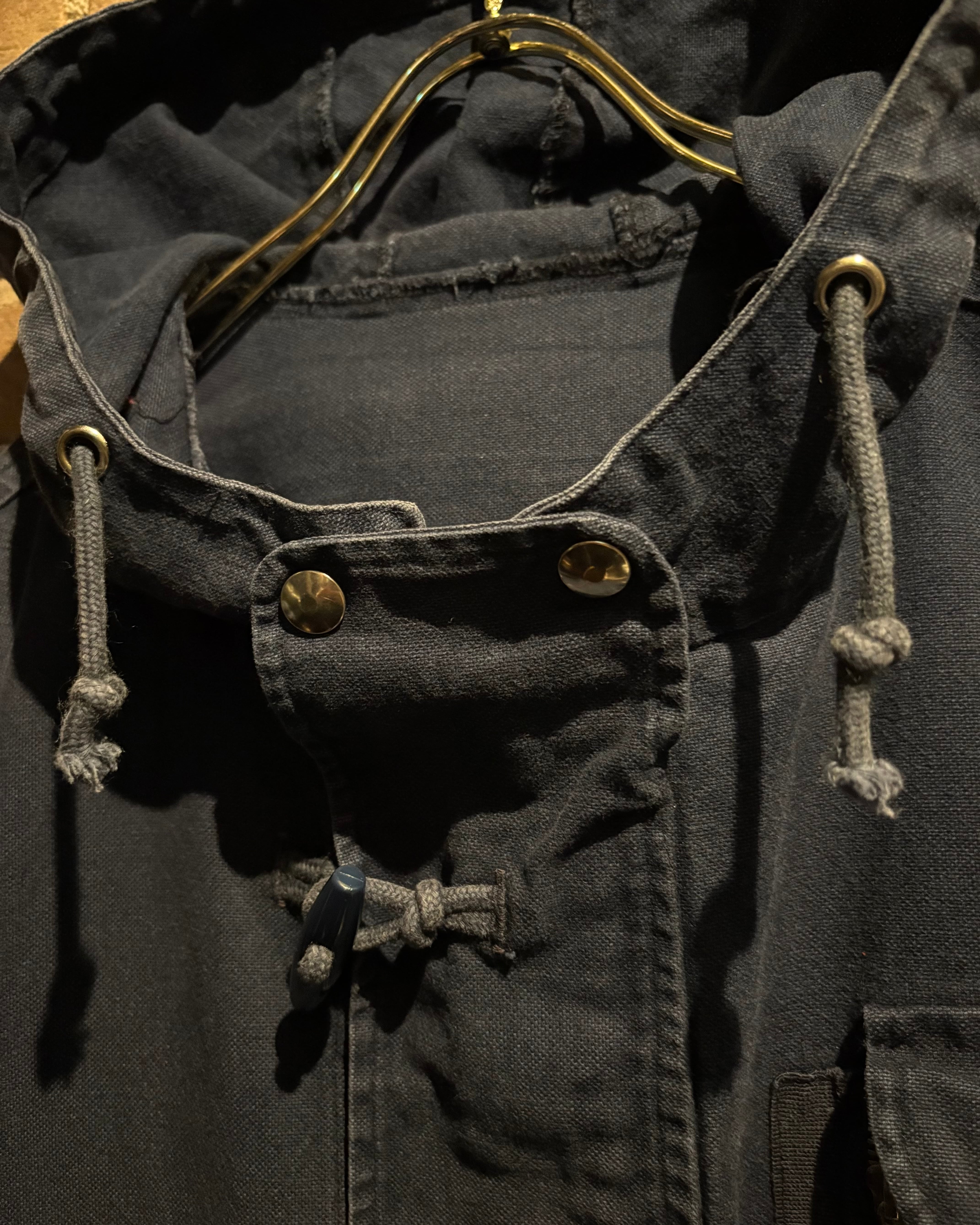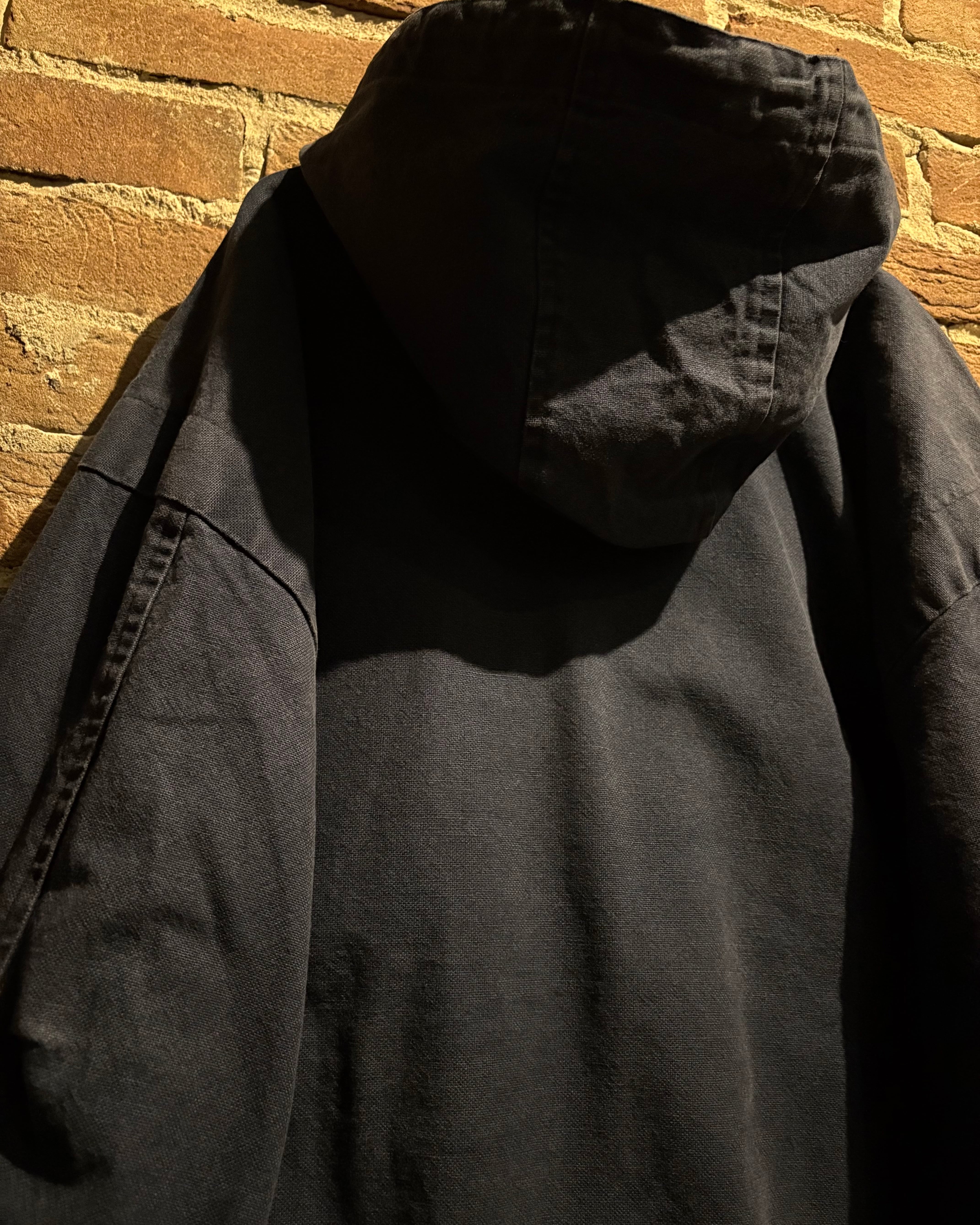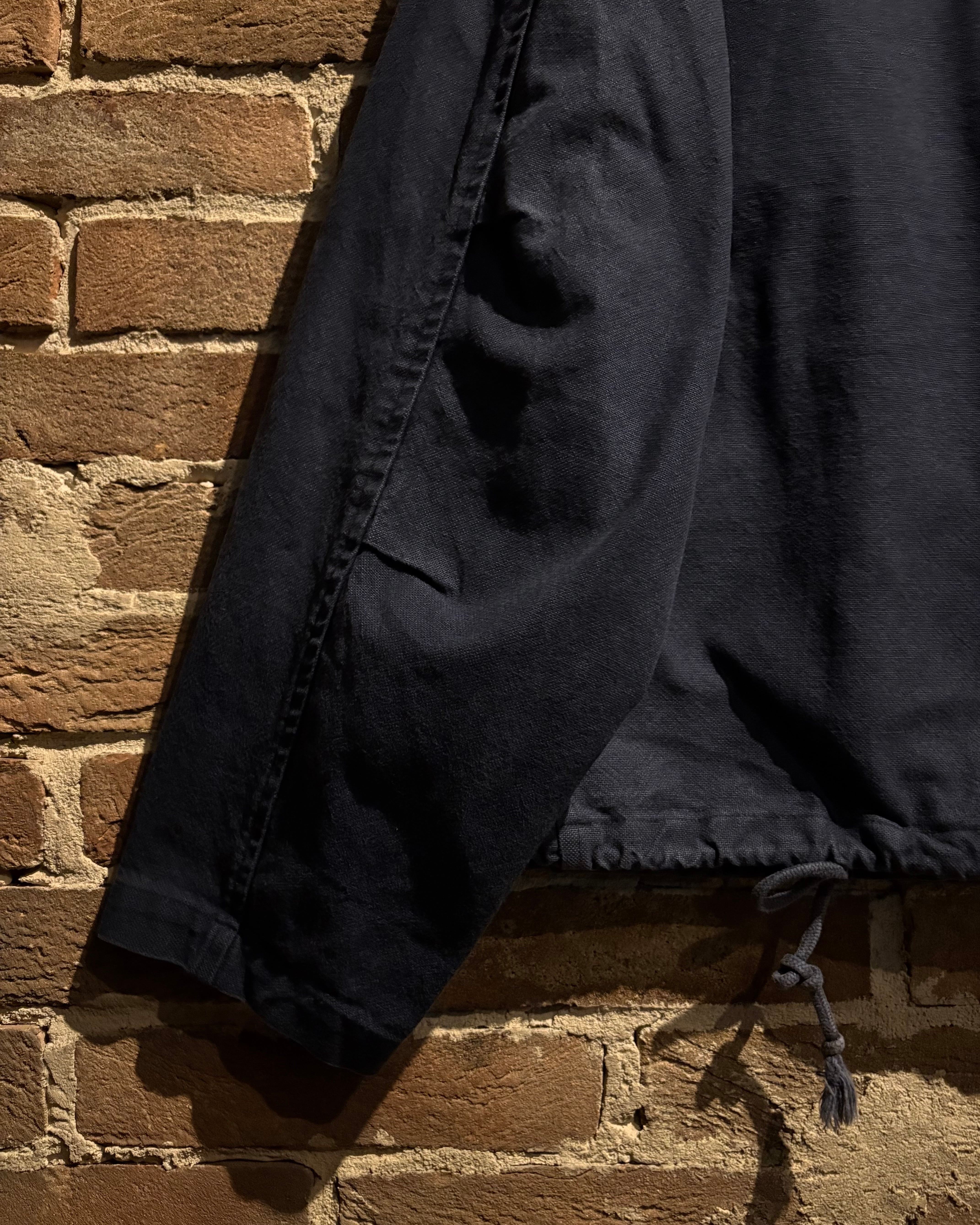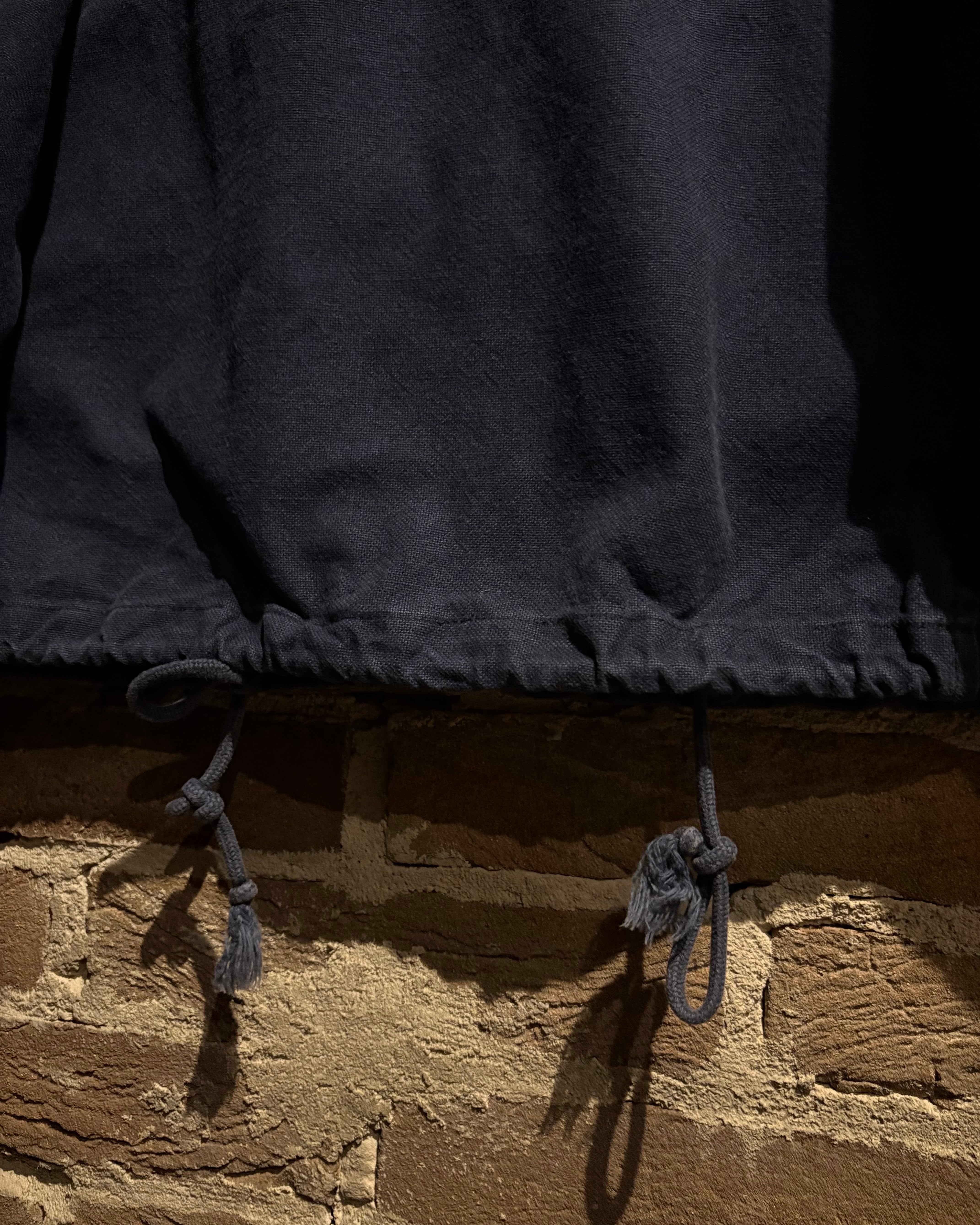 フロントはトグルボタンに加え、内側にジップを配した二重構造の比翼仕立て。裾にはドローコードを備え、シルエットの調整も可能です。