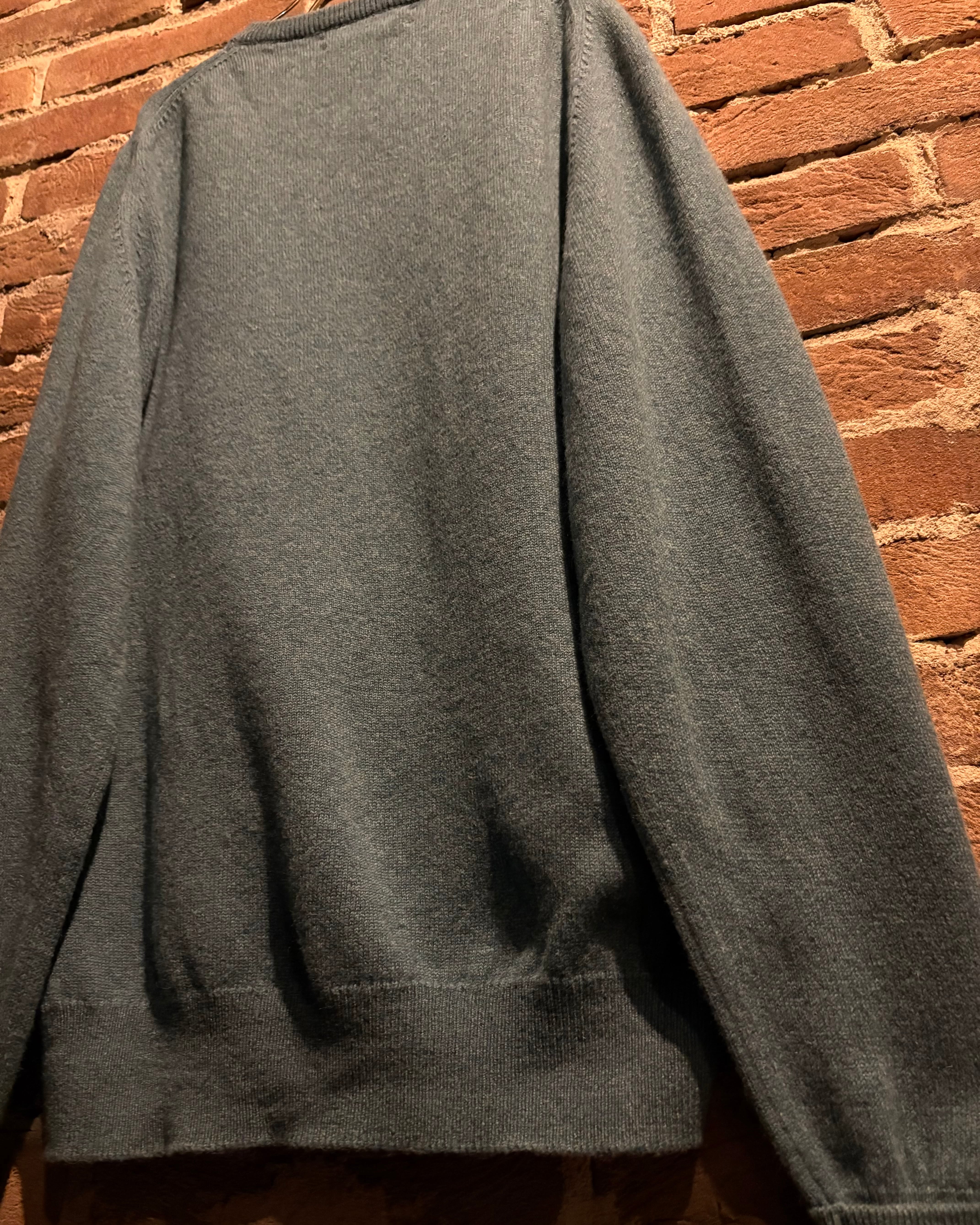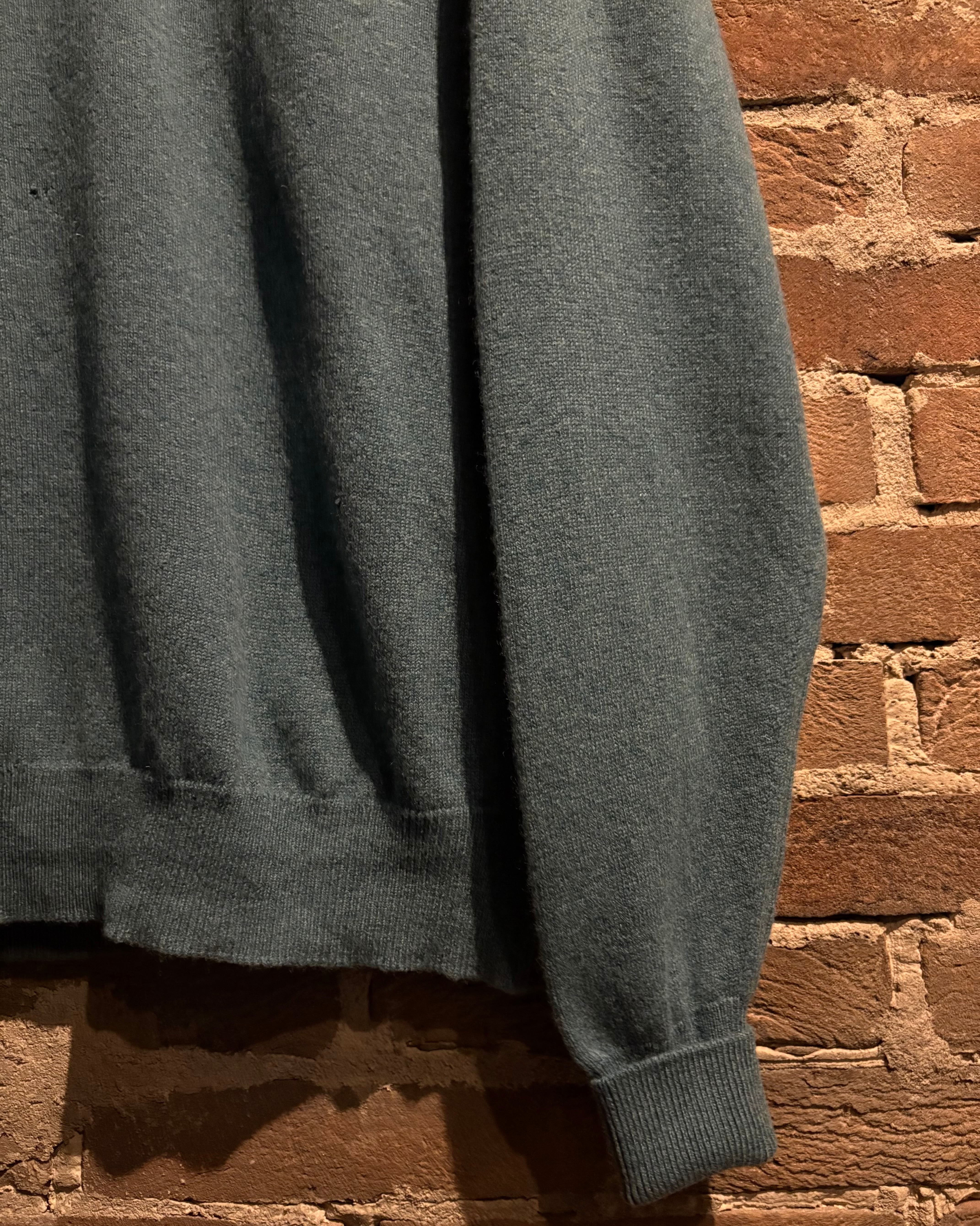 軽やかなグリーンカラーに、柔らかく滑らかなラムウールを贅沢に使用した1着。きめ細かな編み地が生む繊細な表情と、ほんのりとした起毛感が相まって、上品で落ち着いた佇まいを演出しています。
