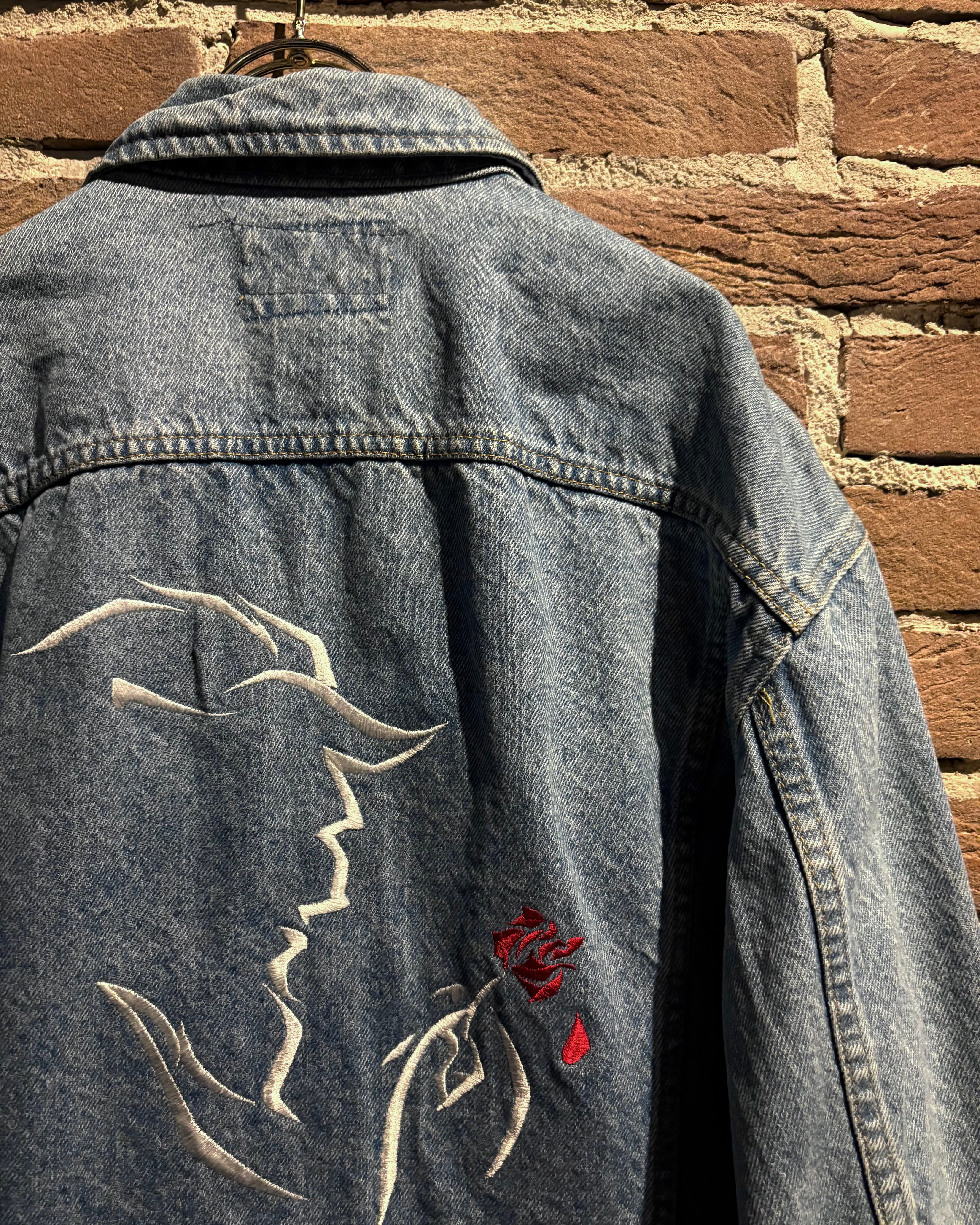 古着市場でも根強い人気を誇る“Disney”より、不朽の名作『Beauty and the Beast』を落とし込んだデニムジャケット。