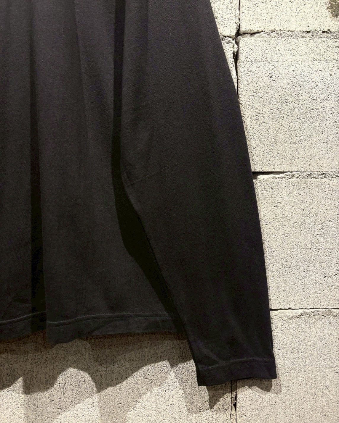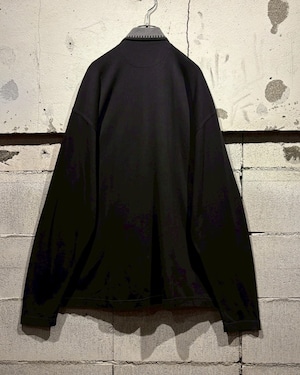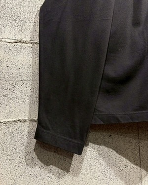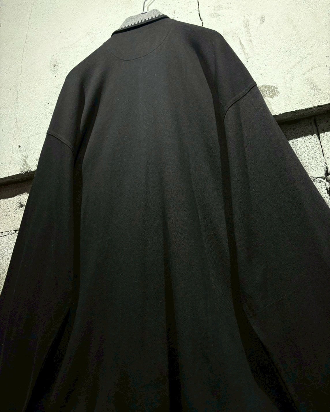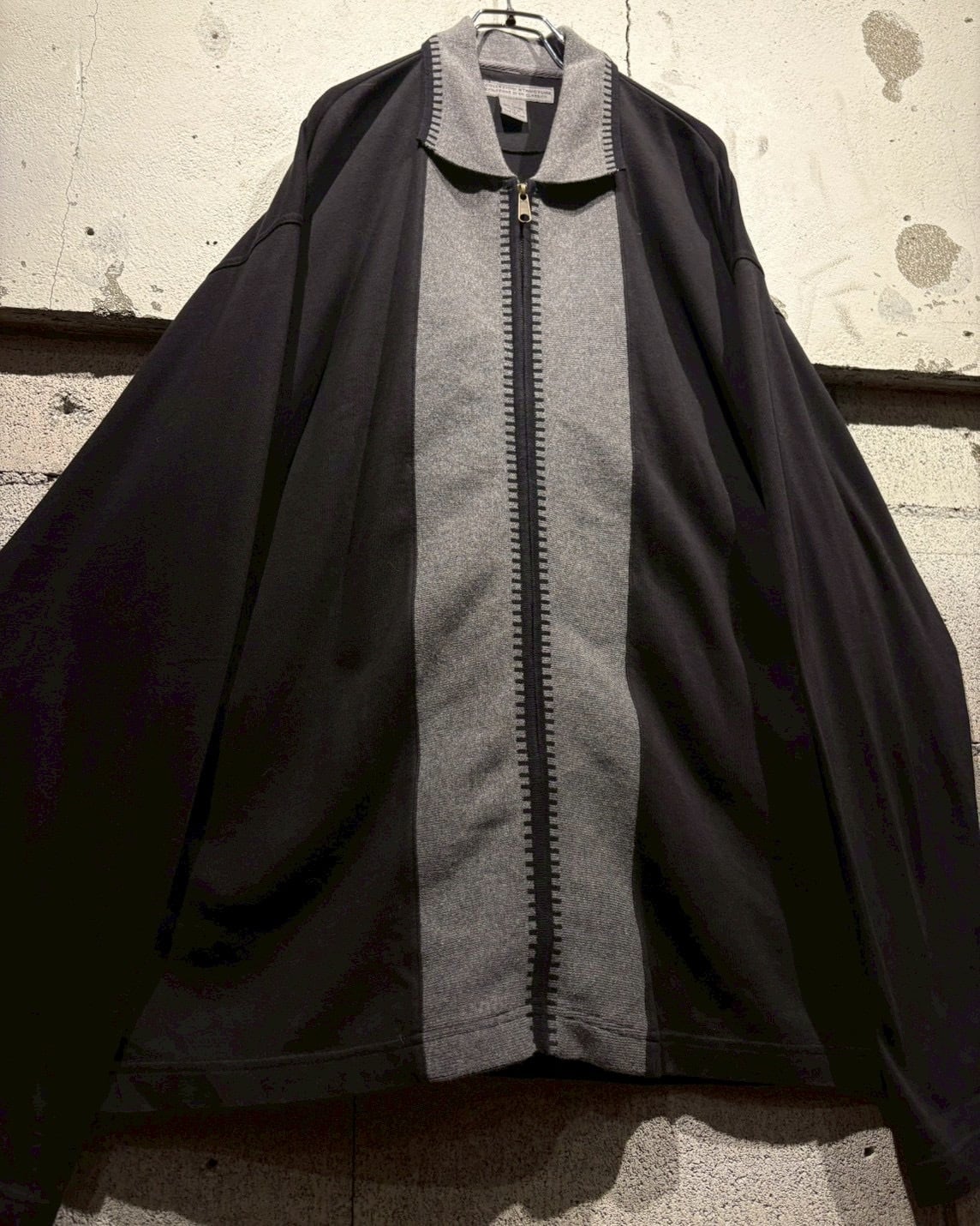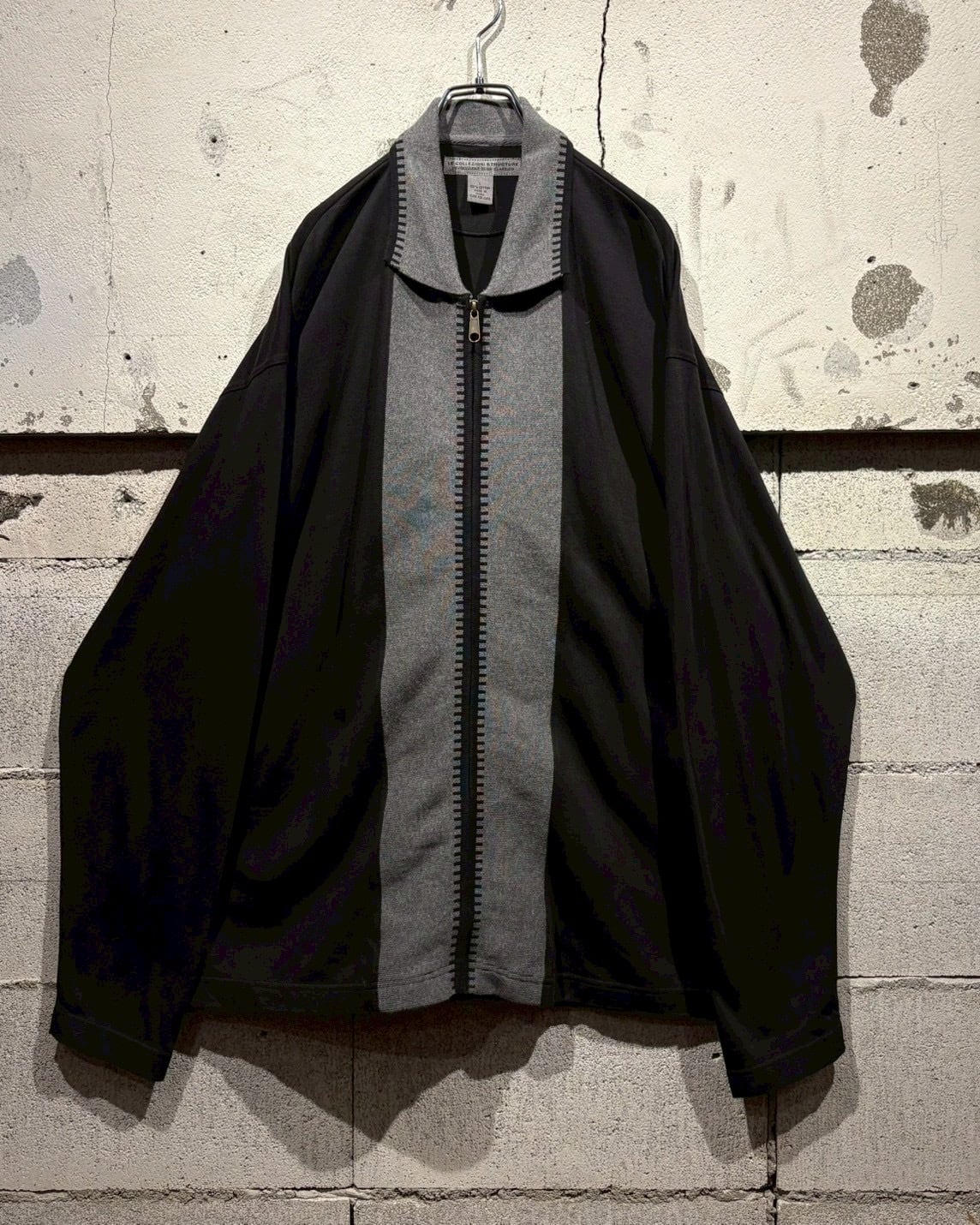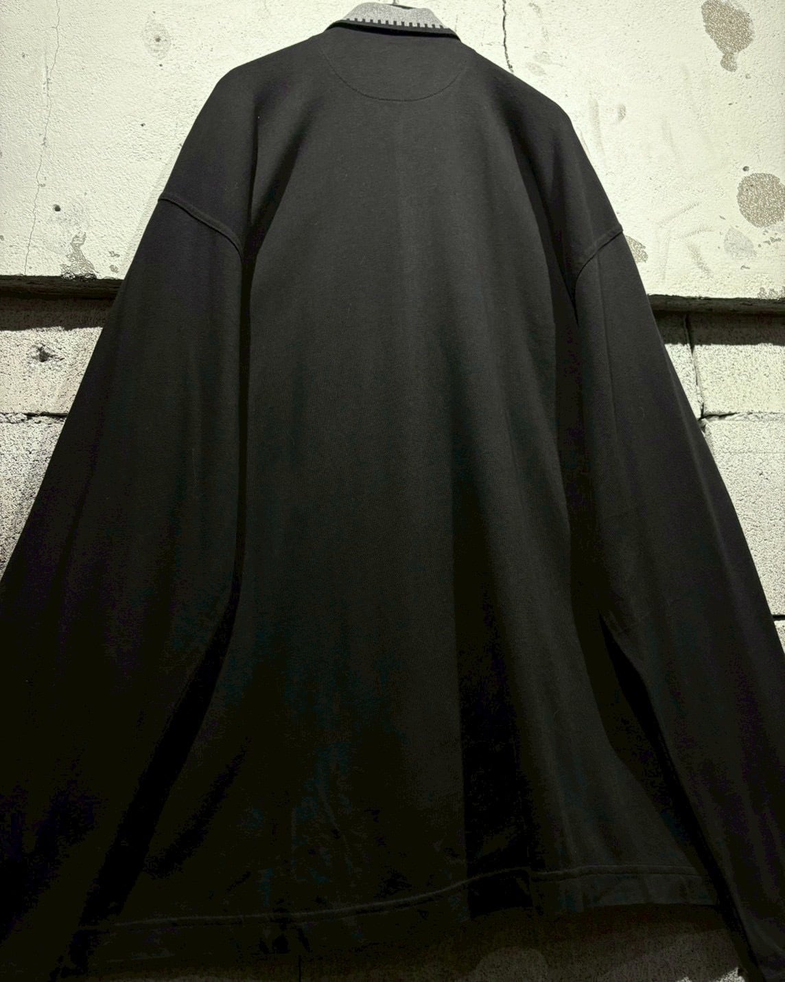ブラックのボディをベースに、グレーの切り替えを施したシックな配色の1着。フロントから襟にかけて走るステッチ風のデザインが程よいアクセントに。