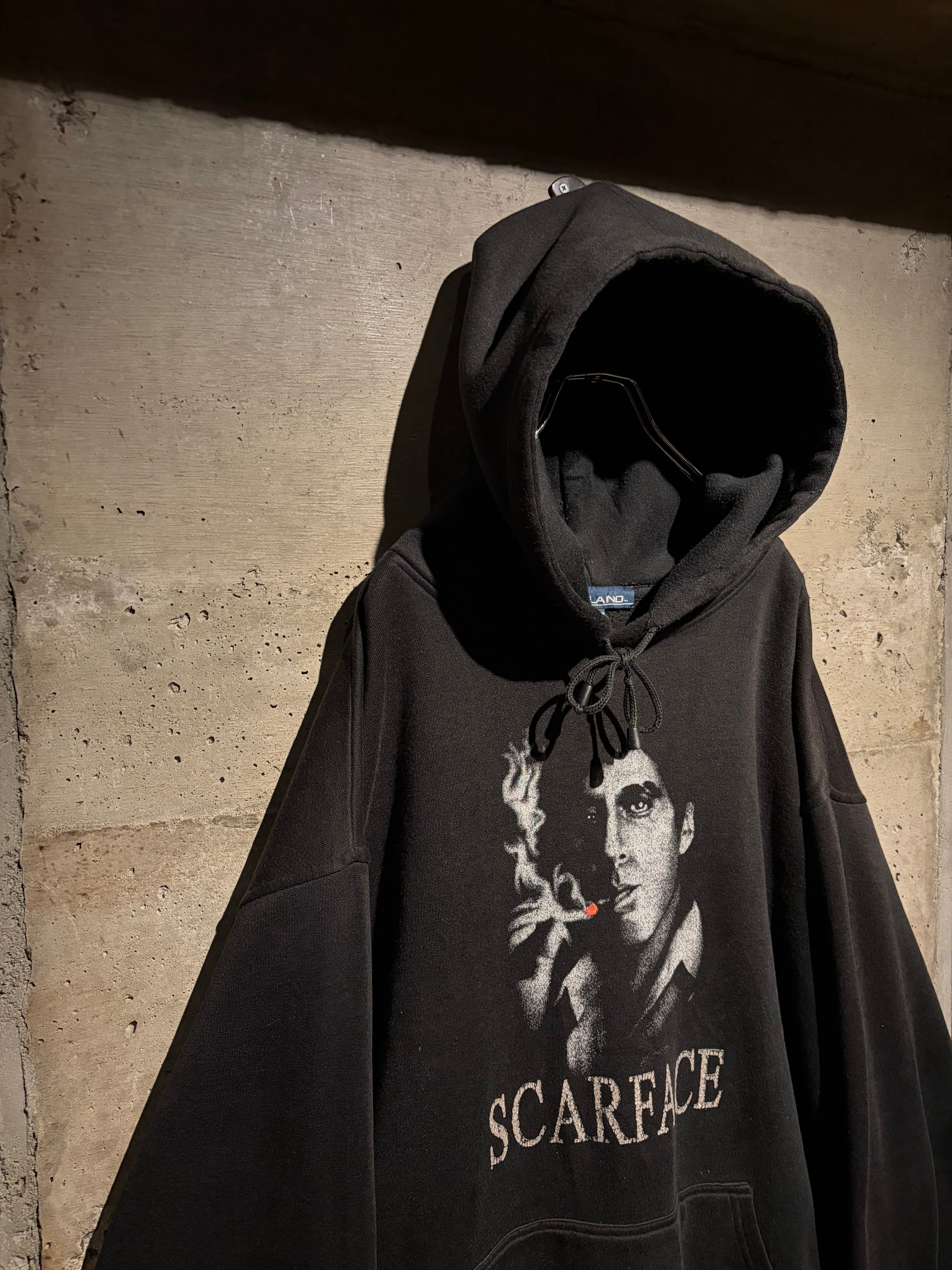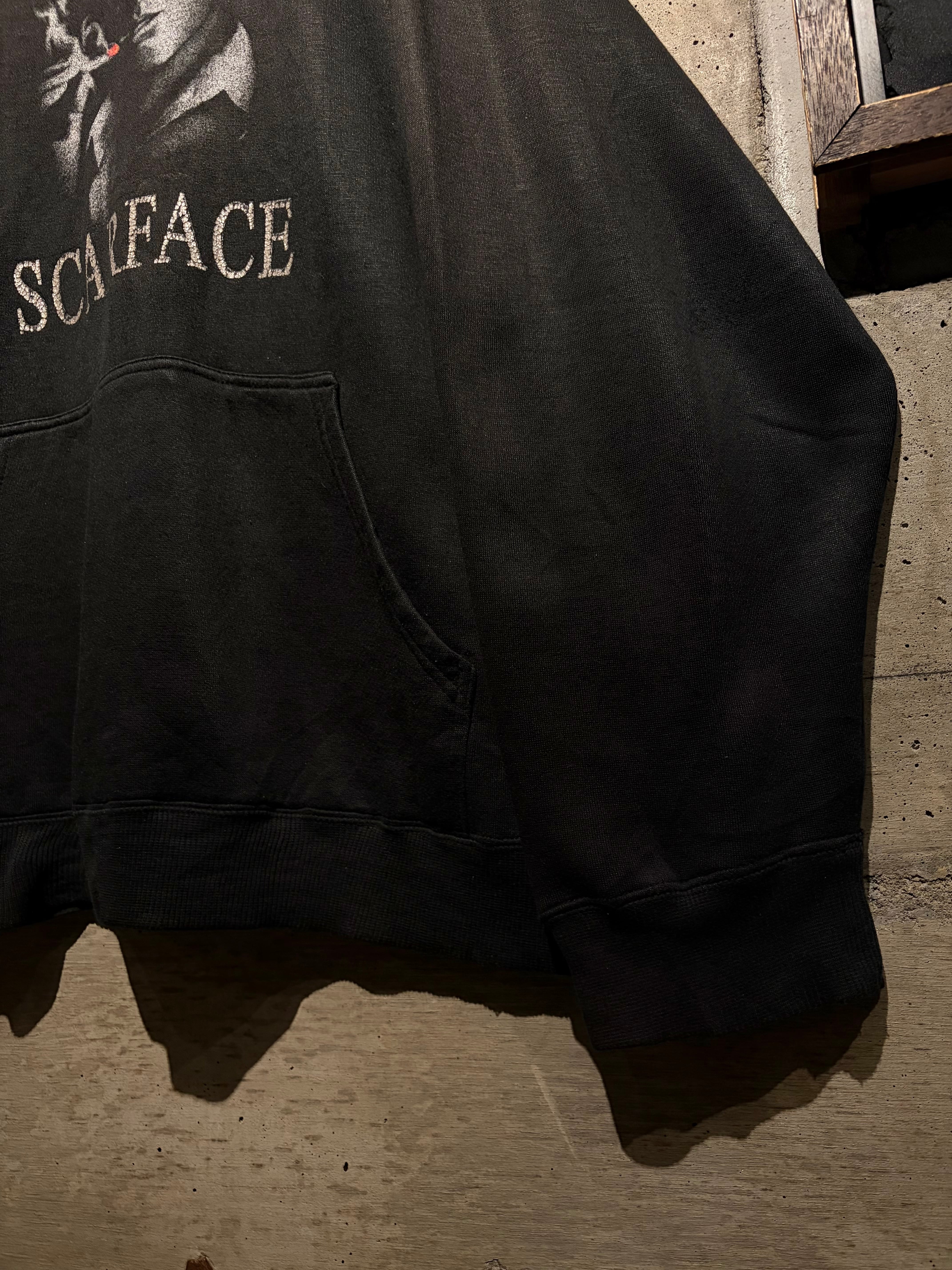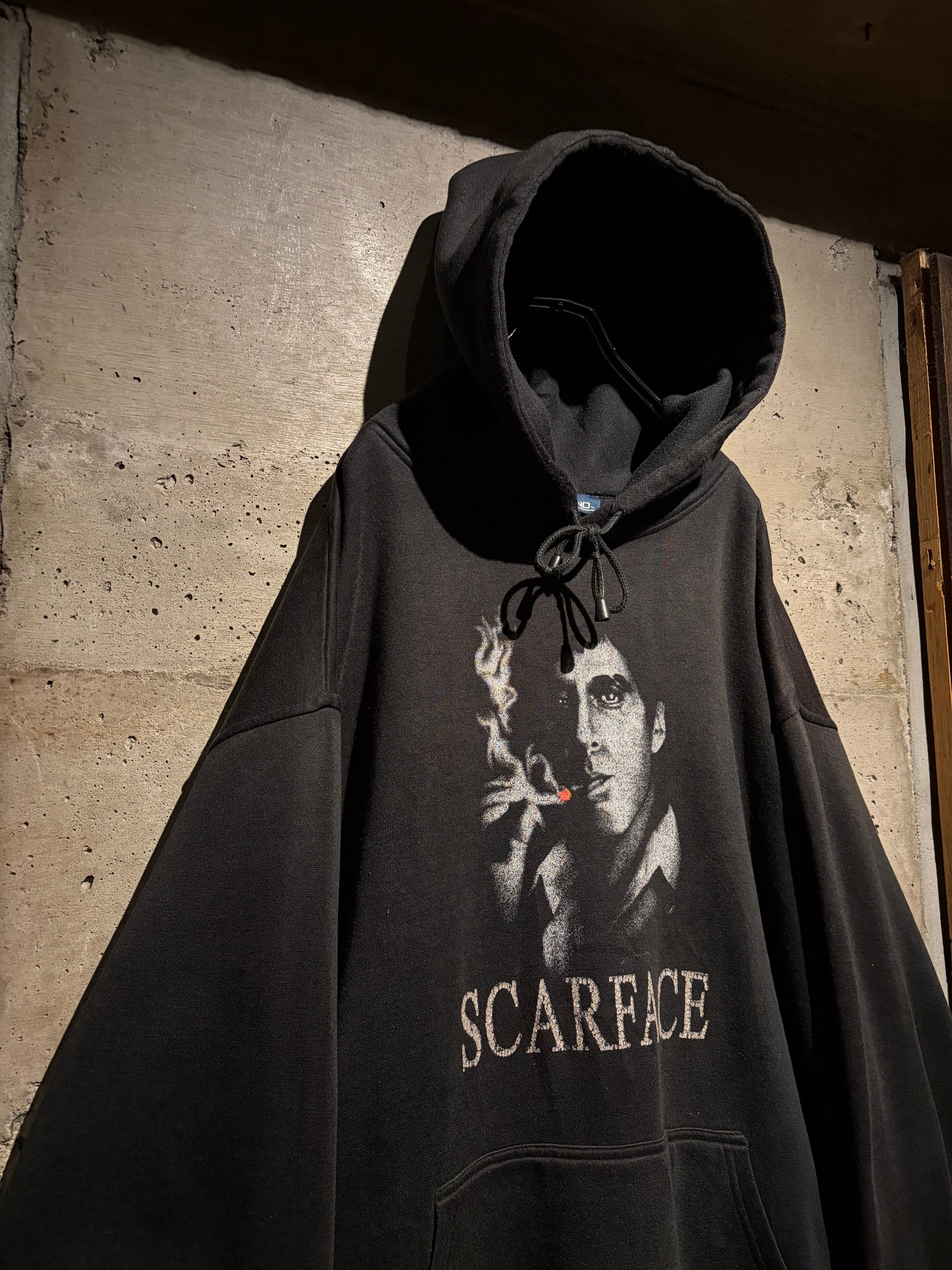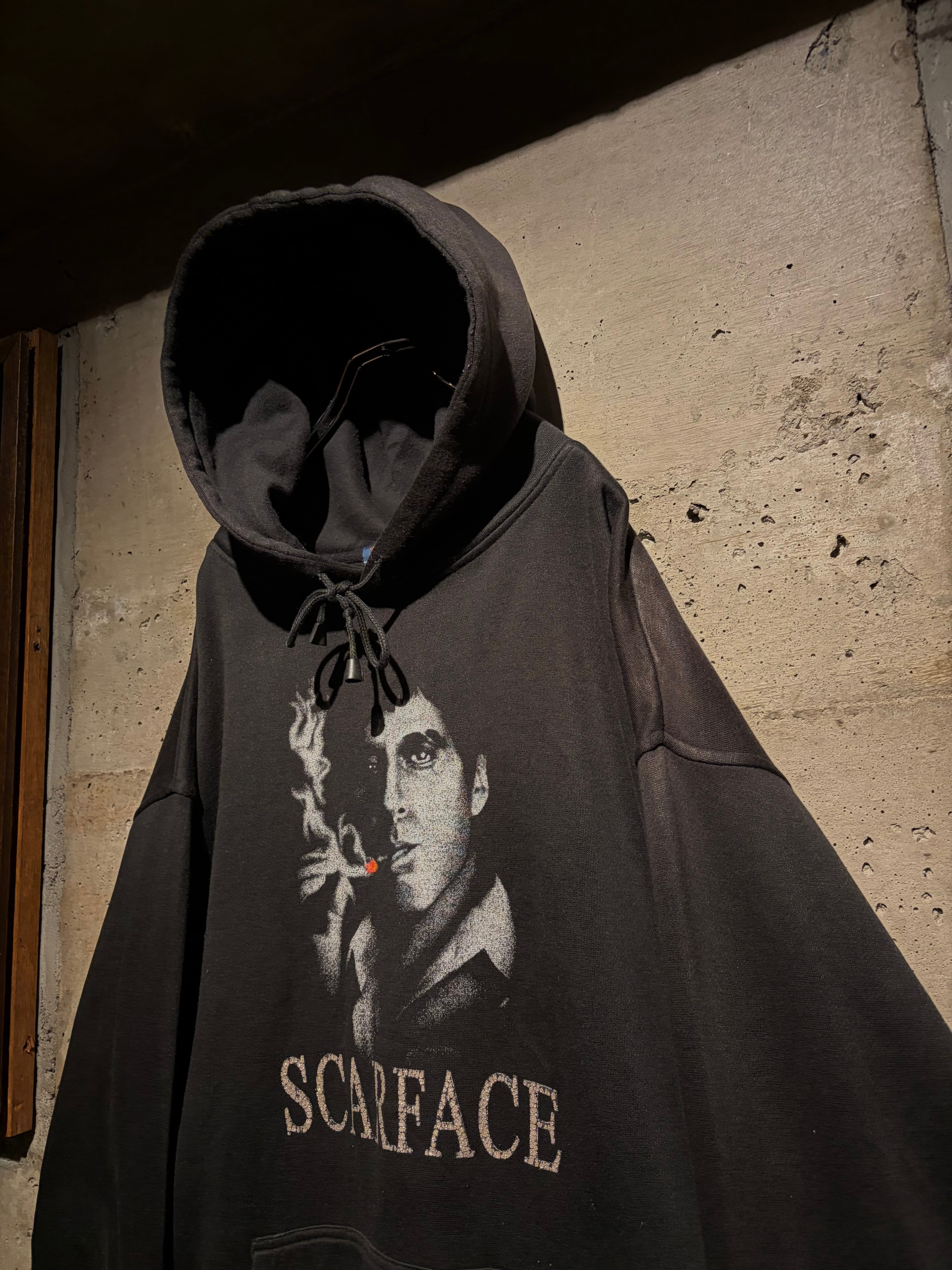 1983年公開の名作映画“SCARFACE”のグラフィックを載せたプルオーバーフーディ。