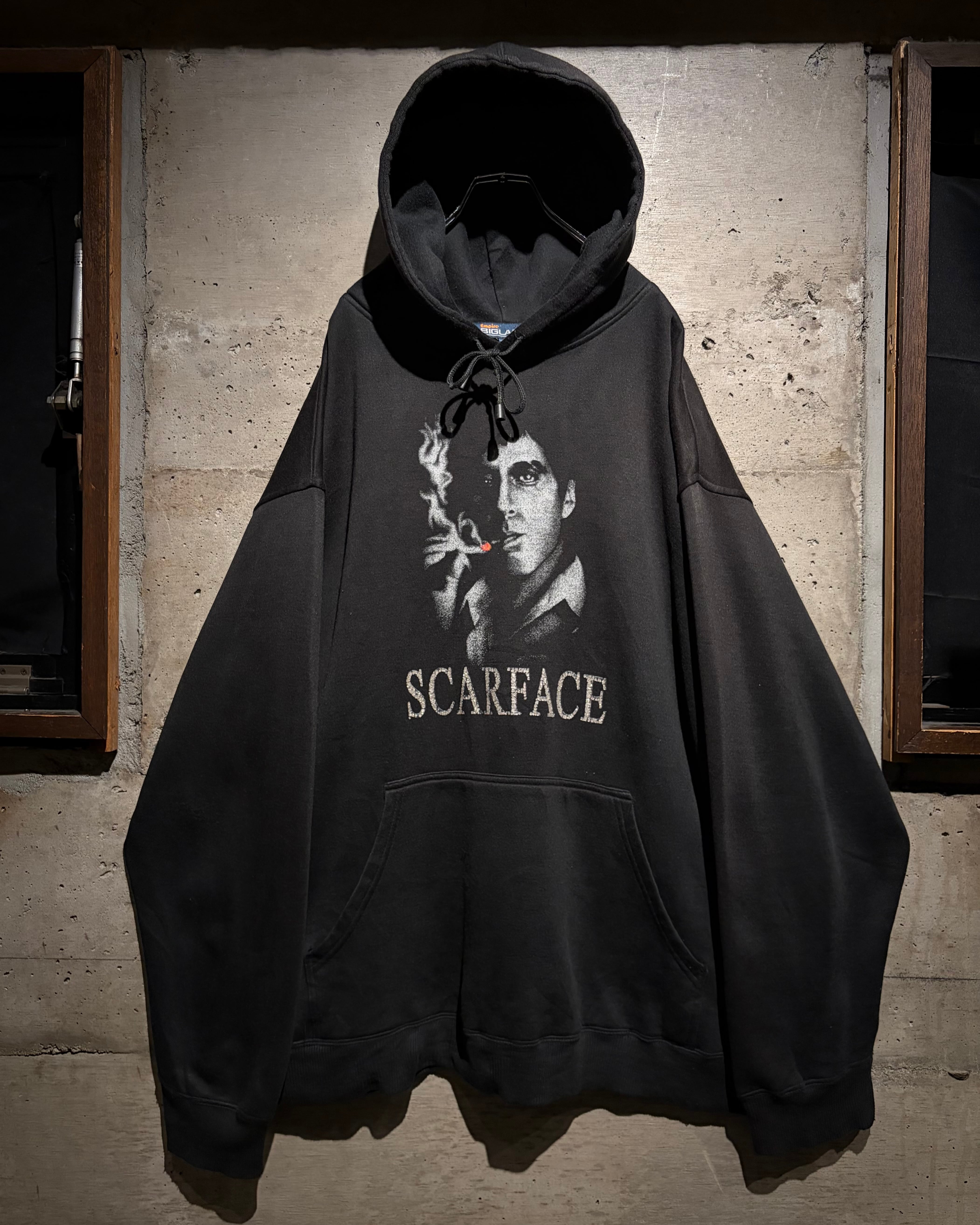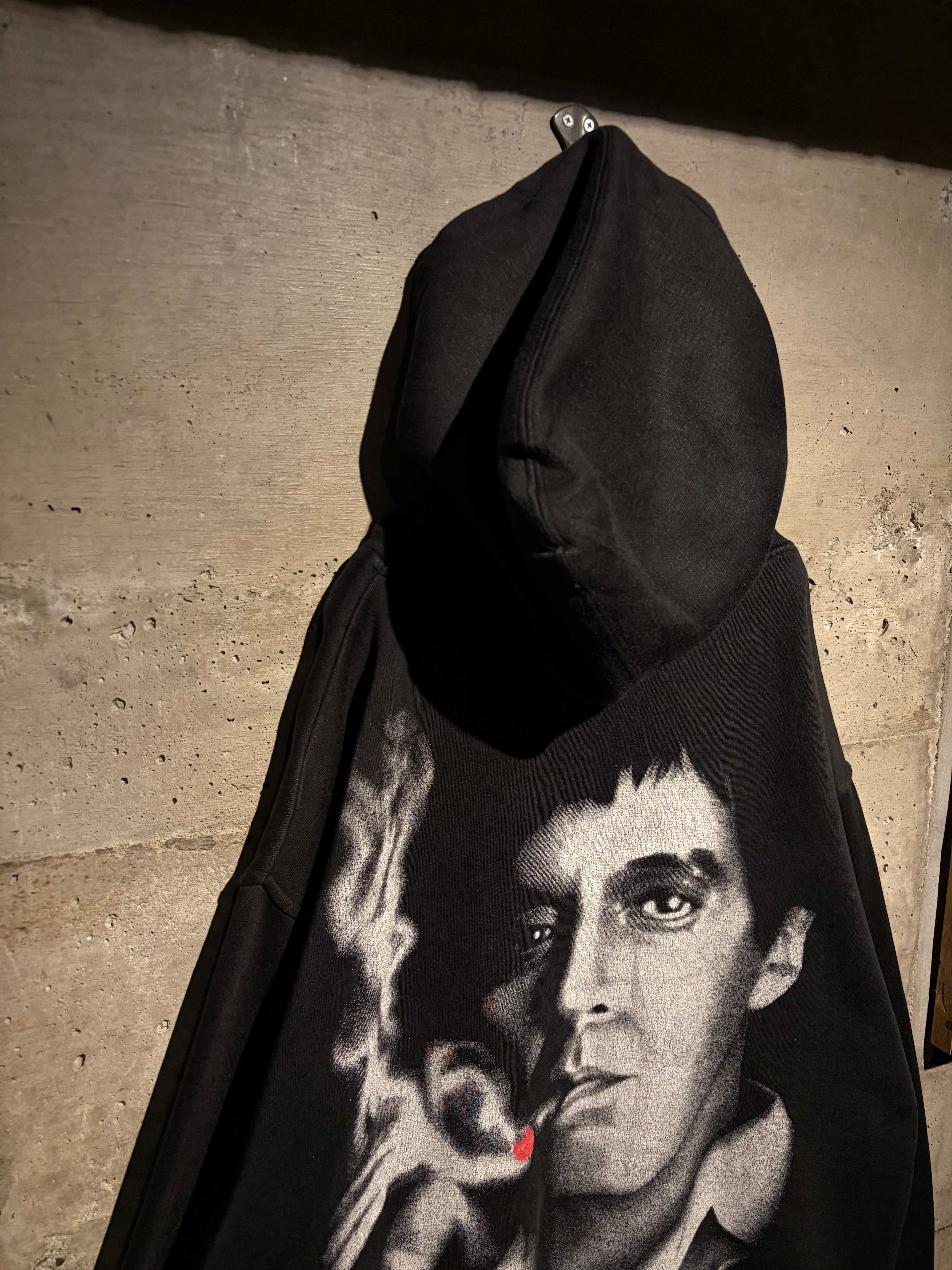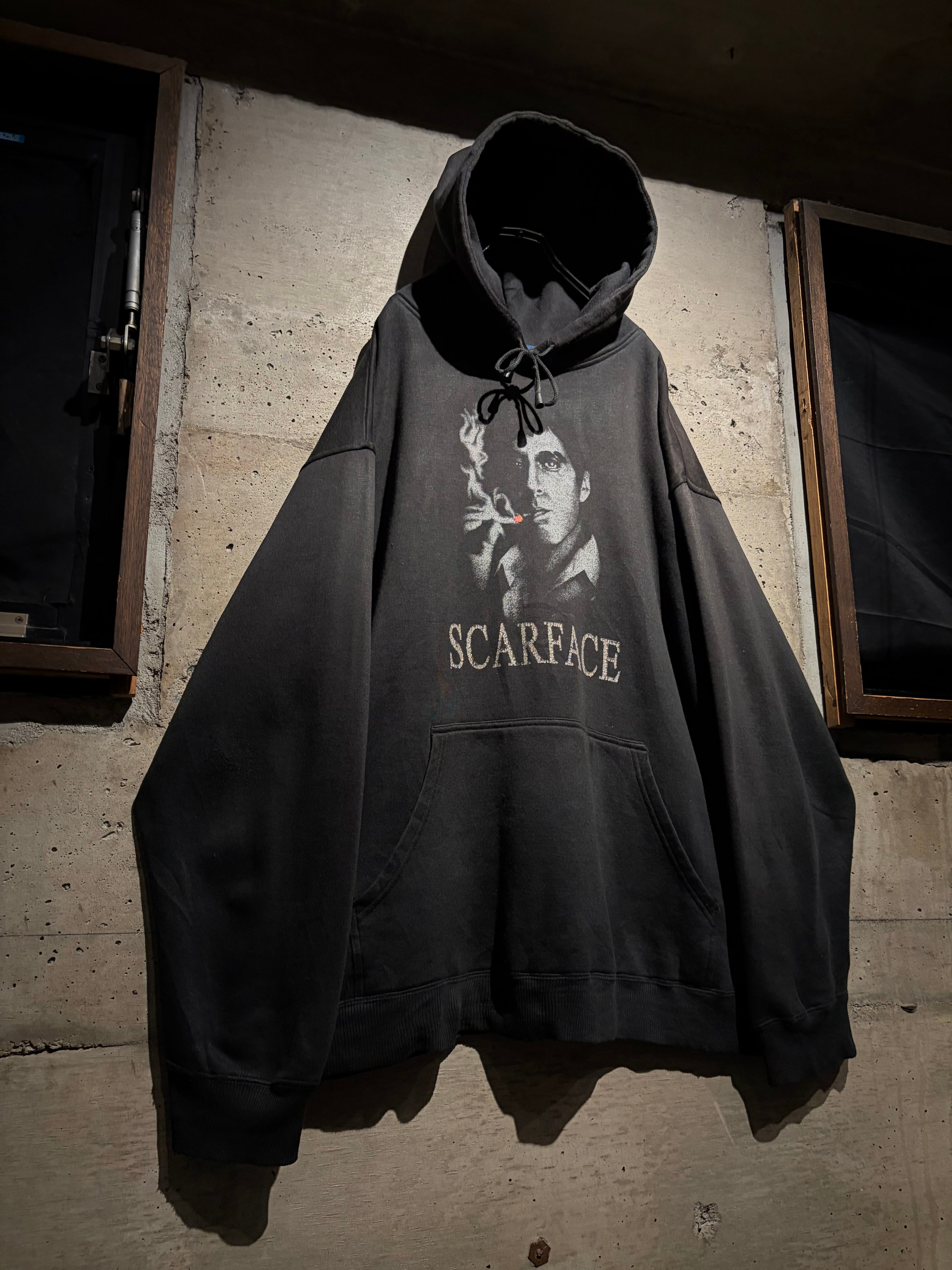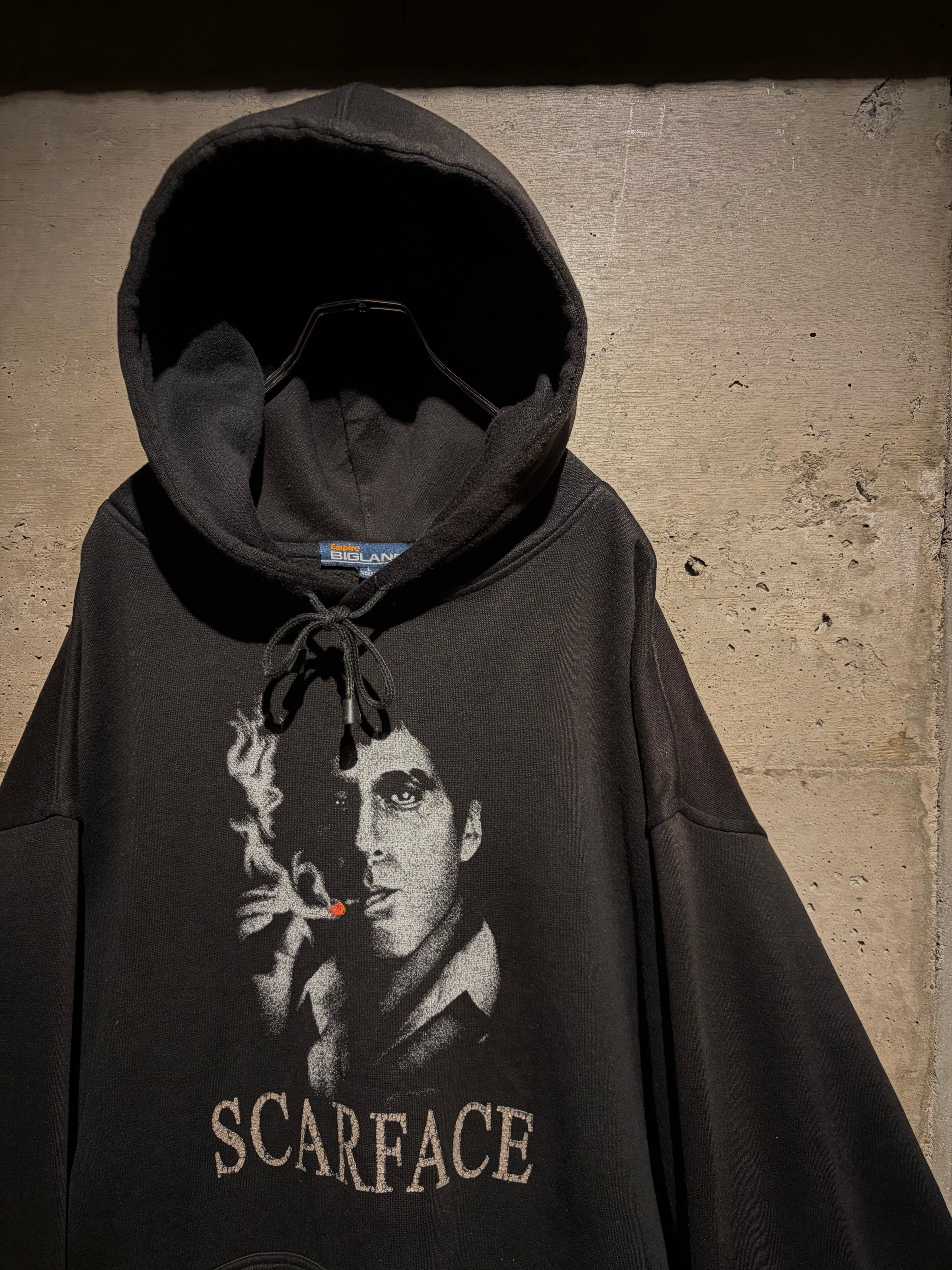 1983年公開の名作映画“SCARFACE”のグラフィックを載せたプルオーバーフーディ。
