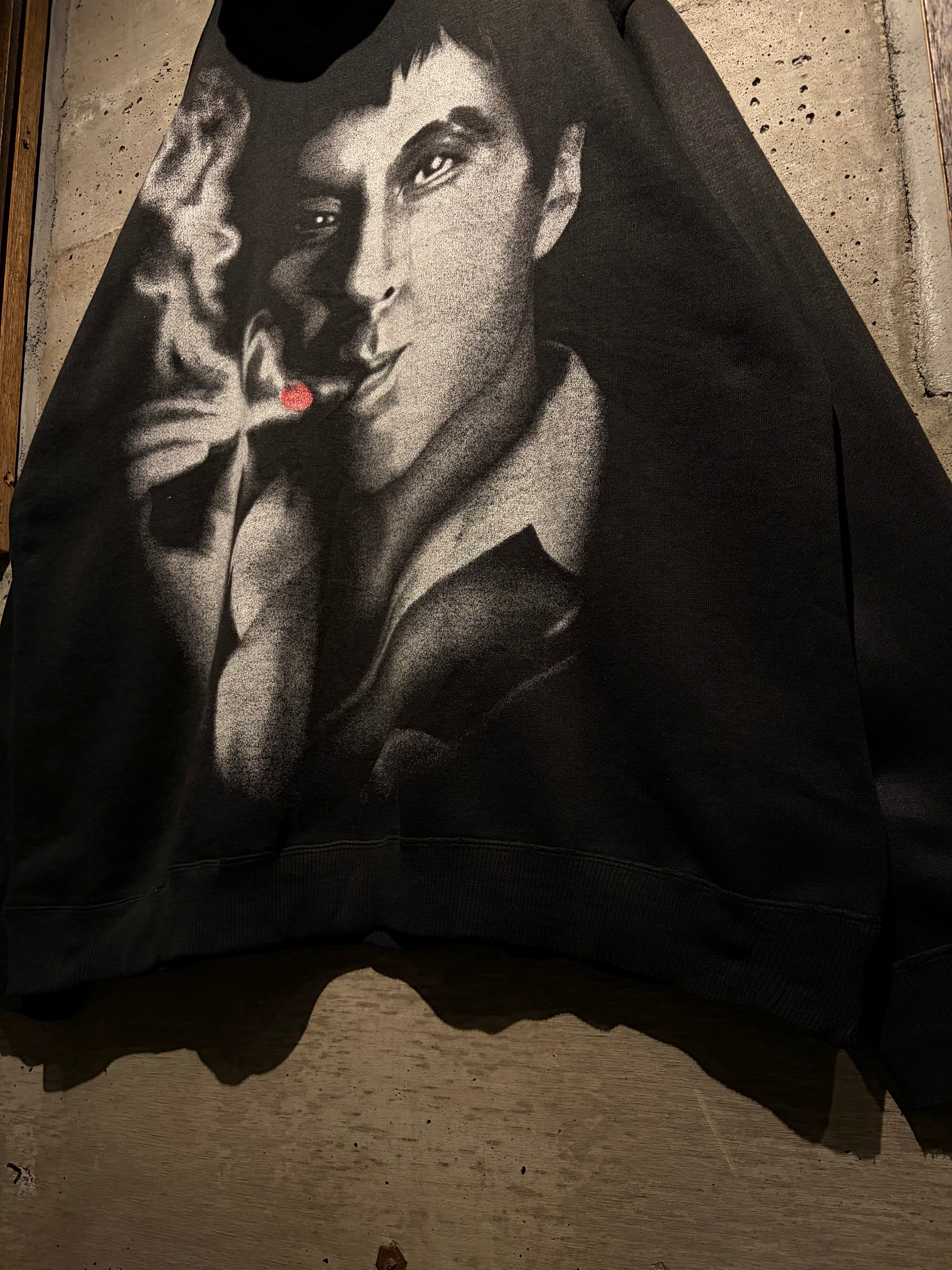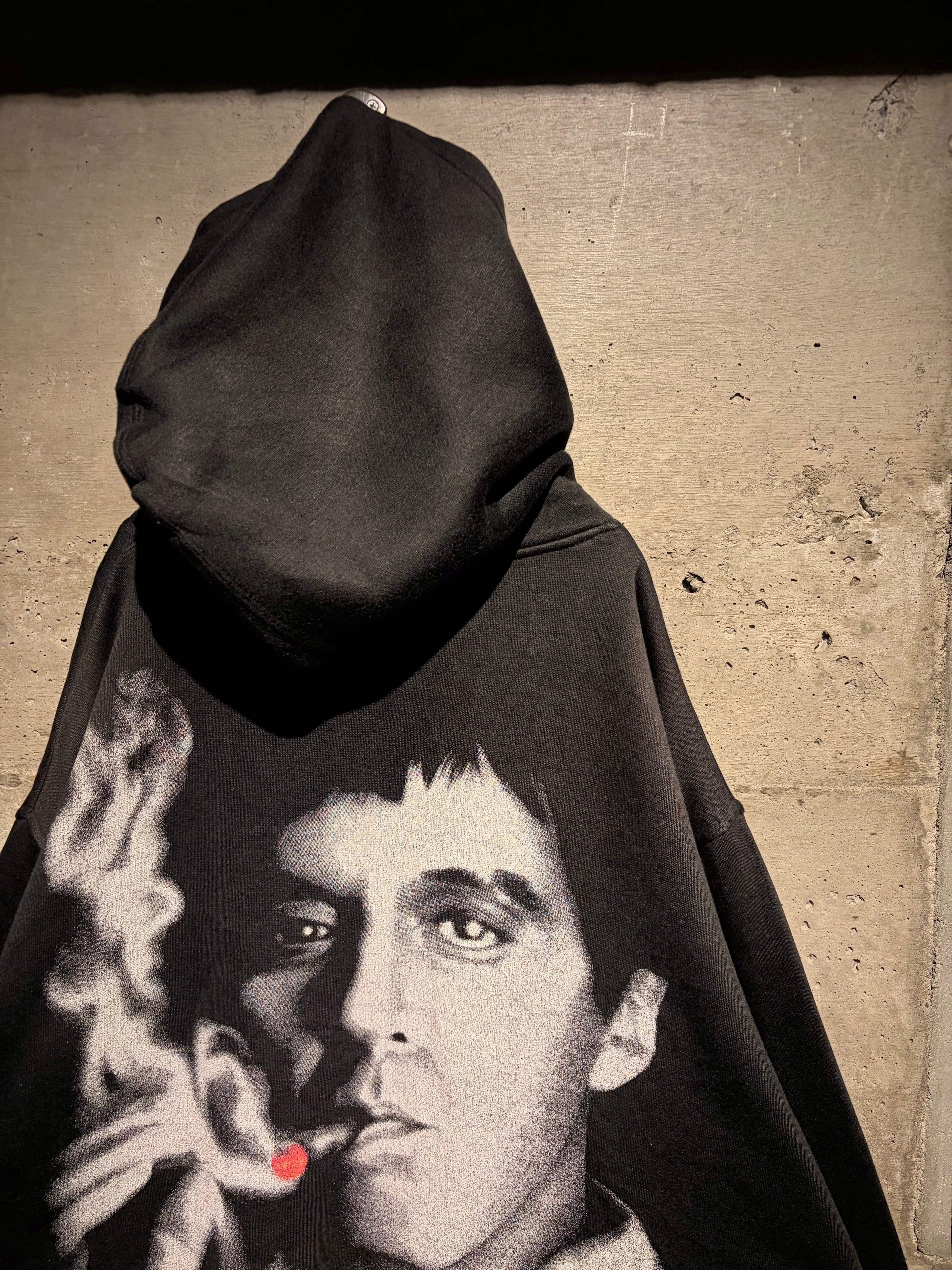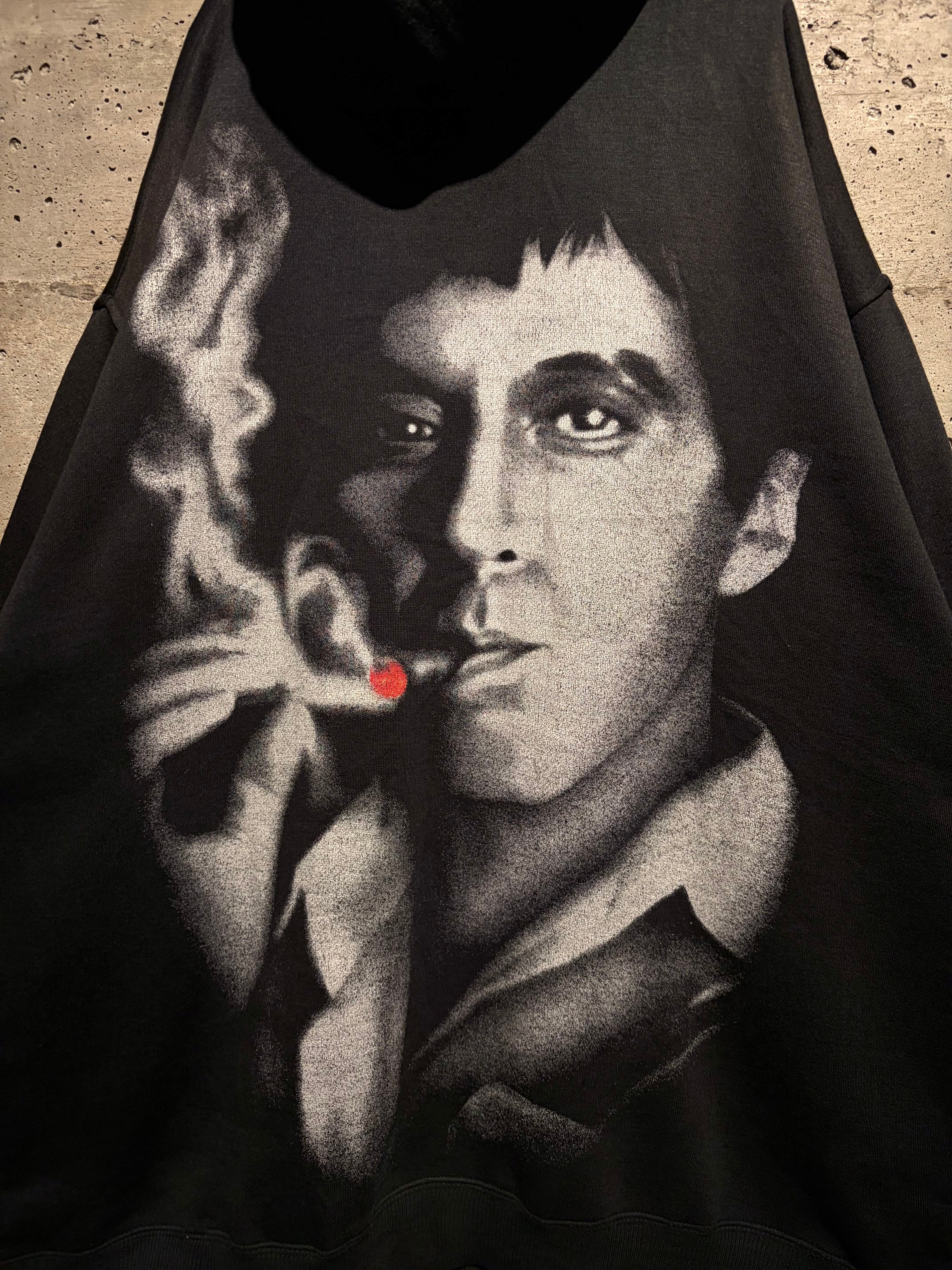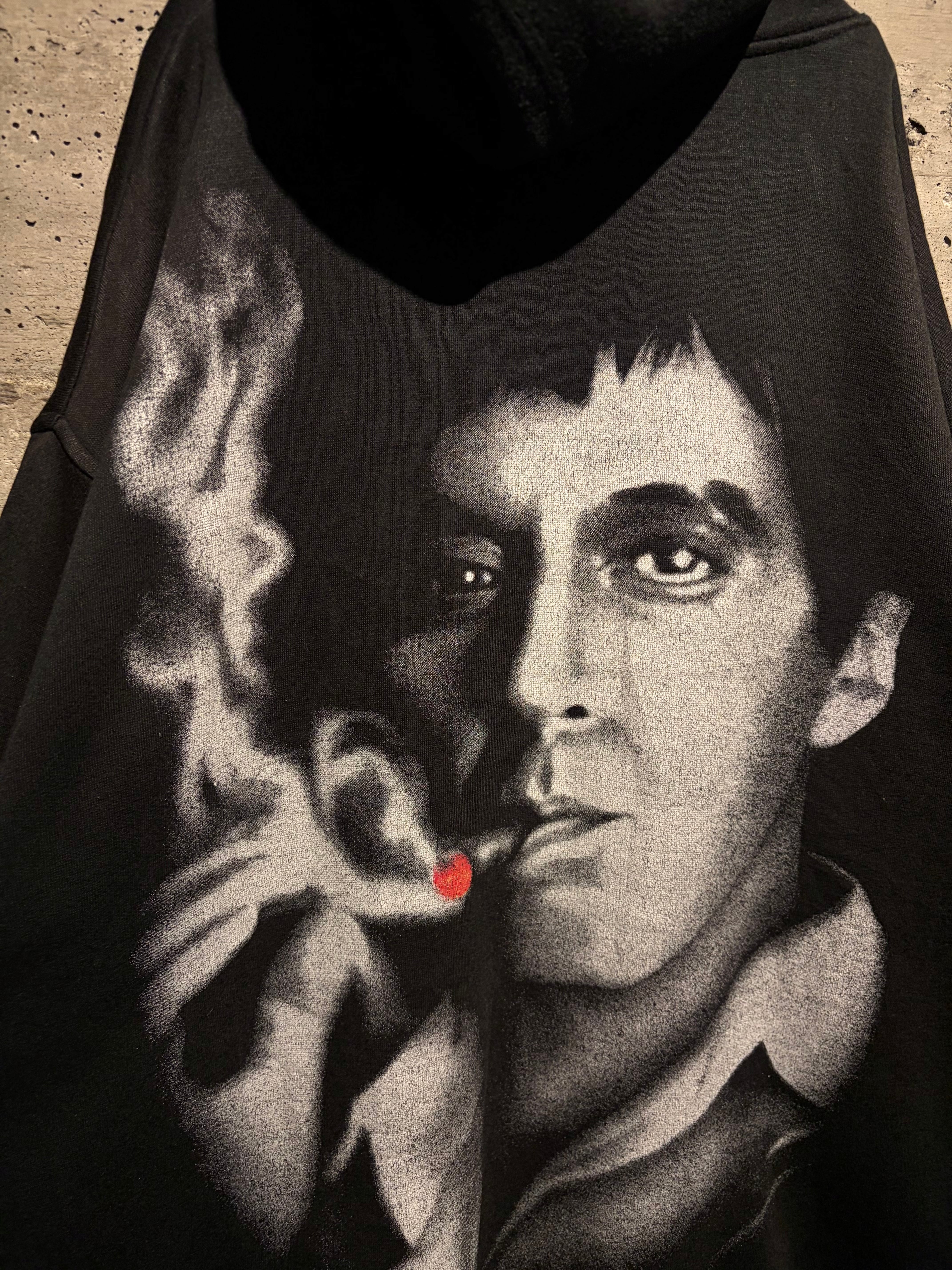 1983年公開の名作映画“SCARFACE”のグラフィックを載せたプルオーバーフーディ。
