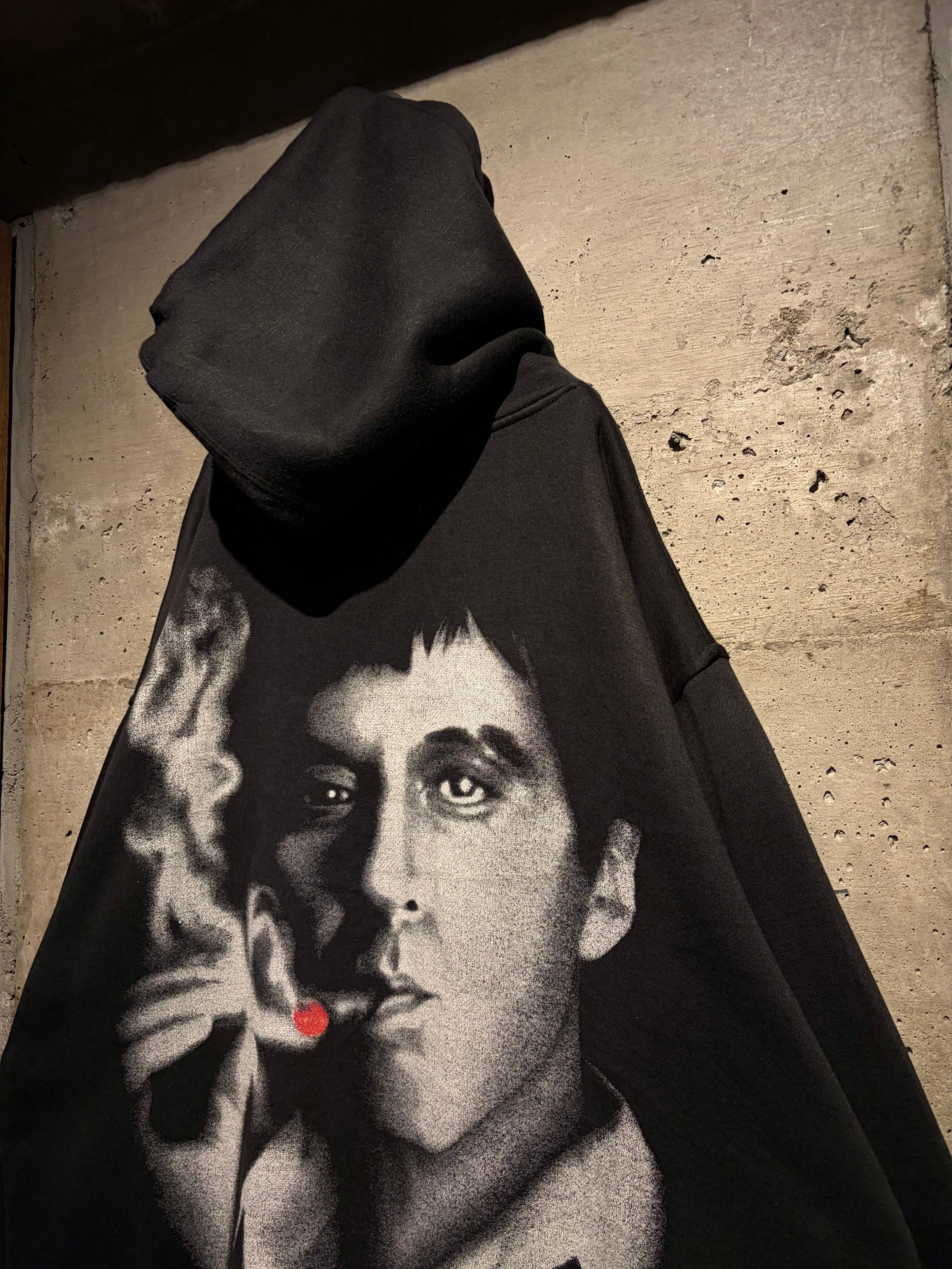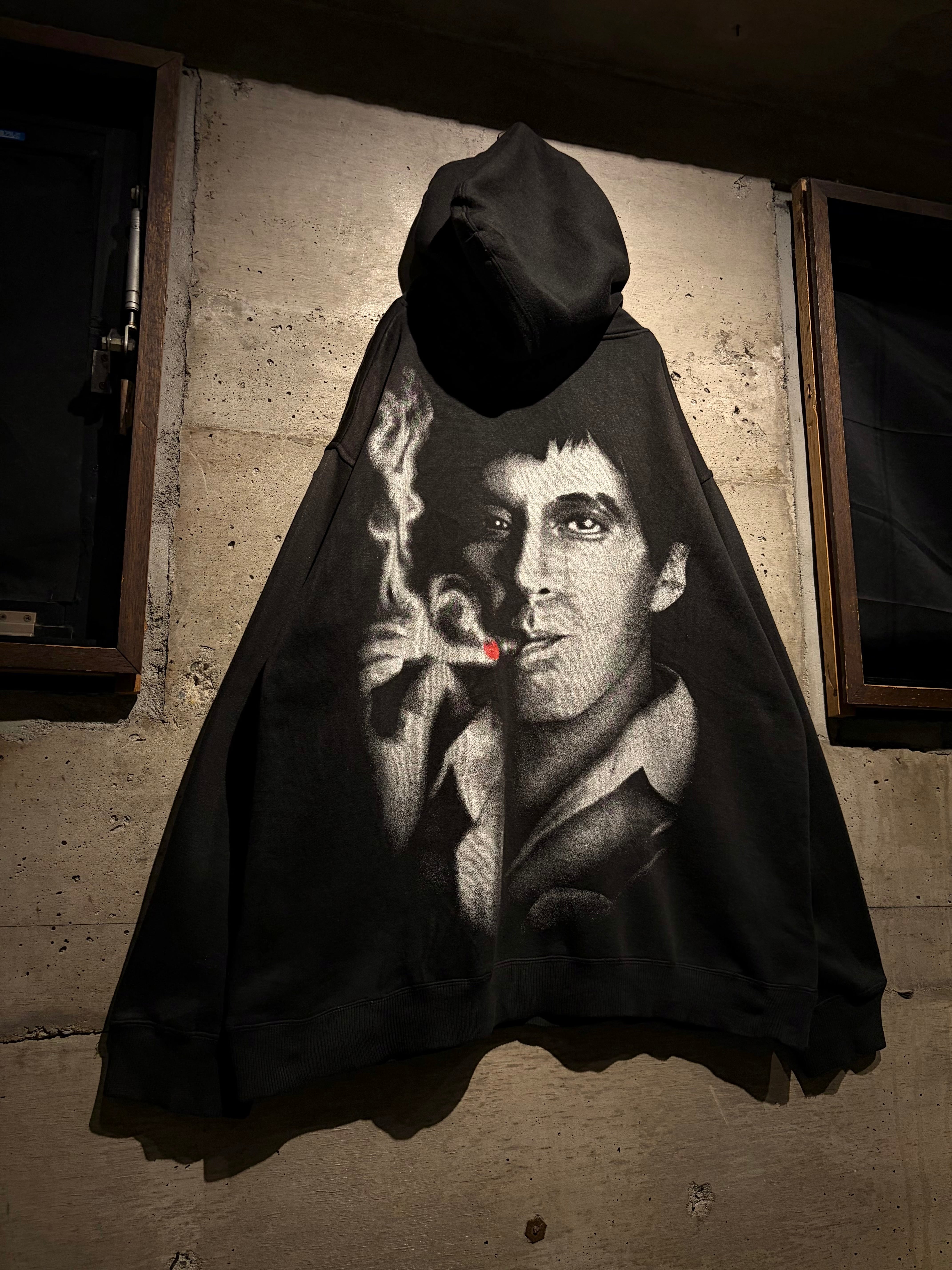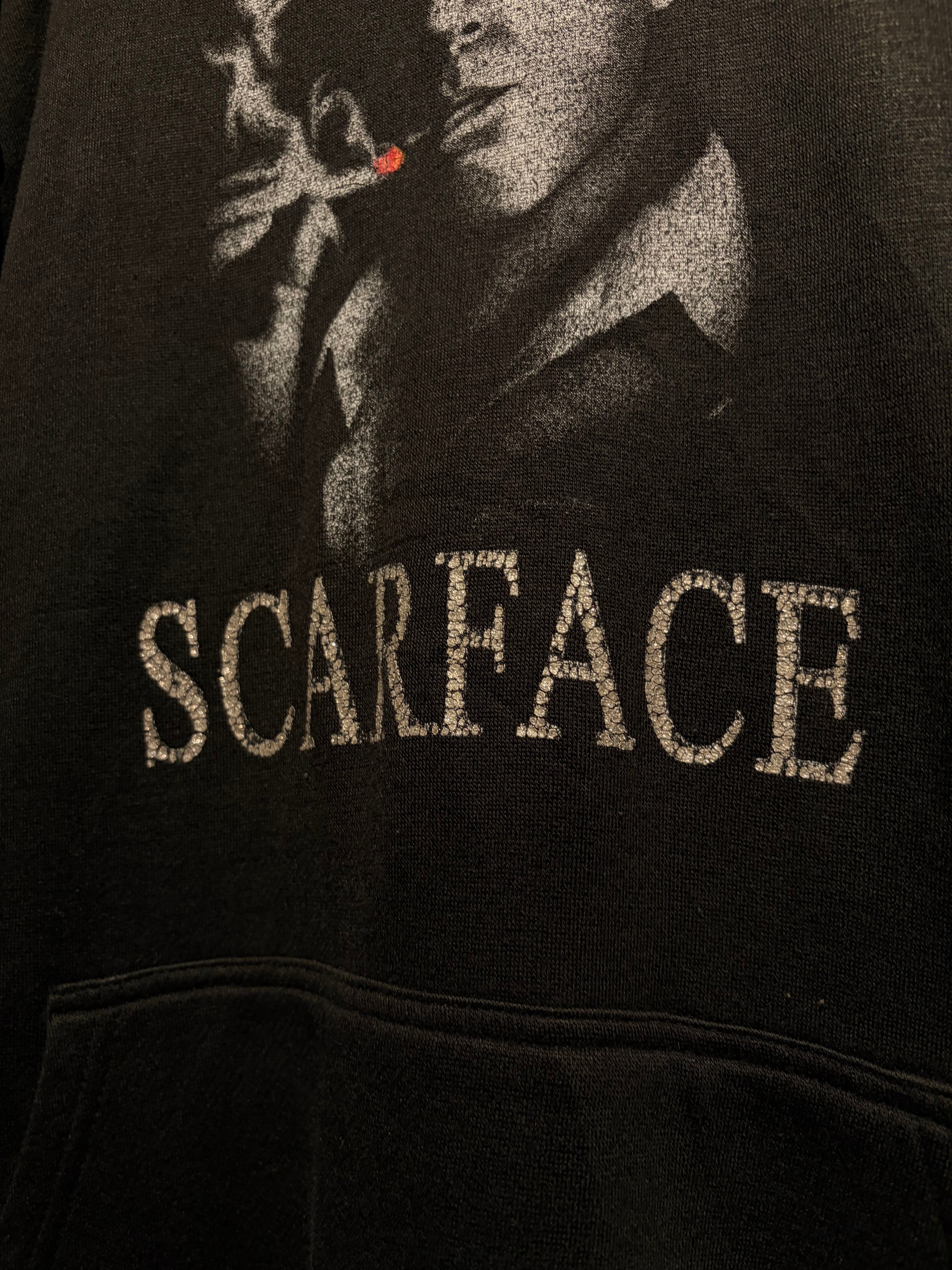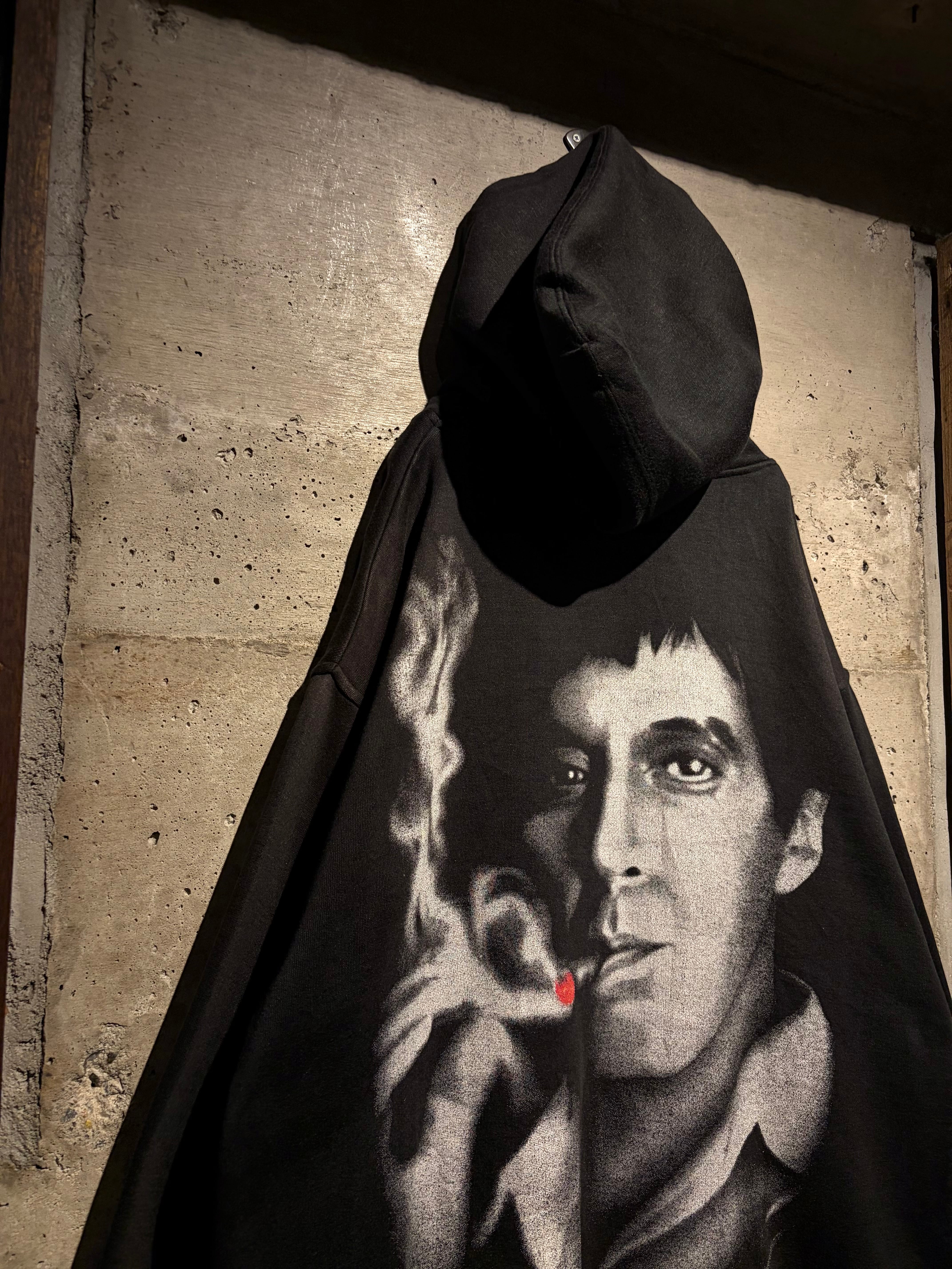 1983年公開の名作映画“SCARFACE”のグラフィックを載せたプルオーバーフーディ。