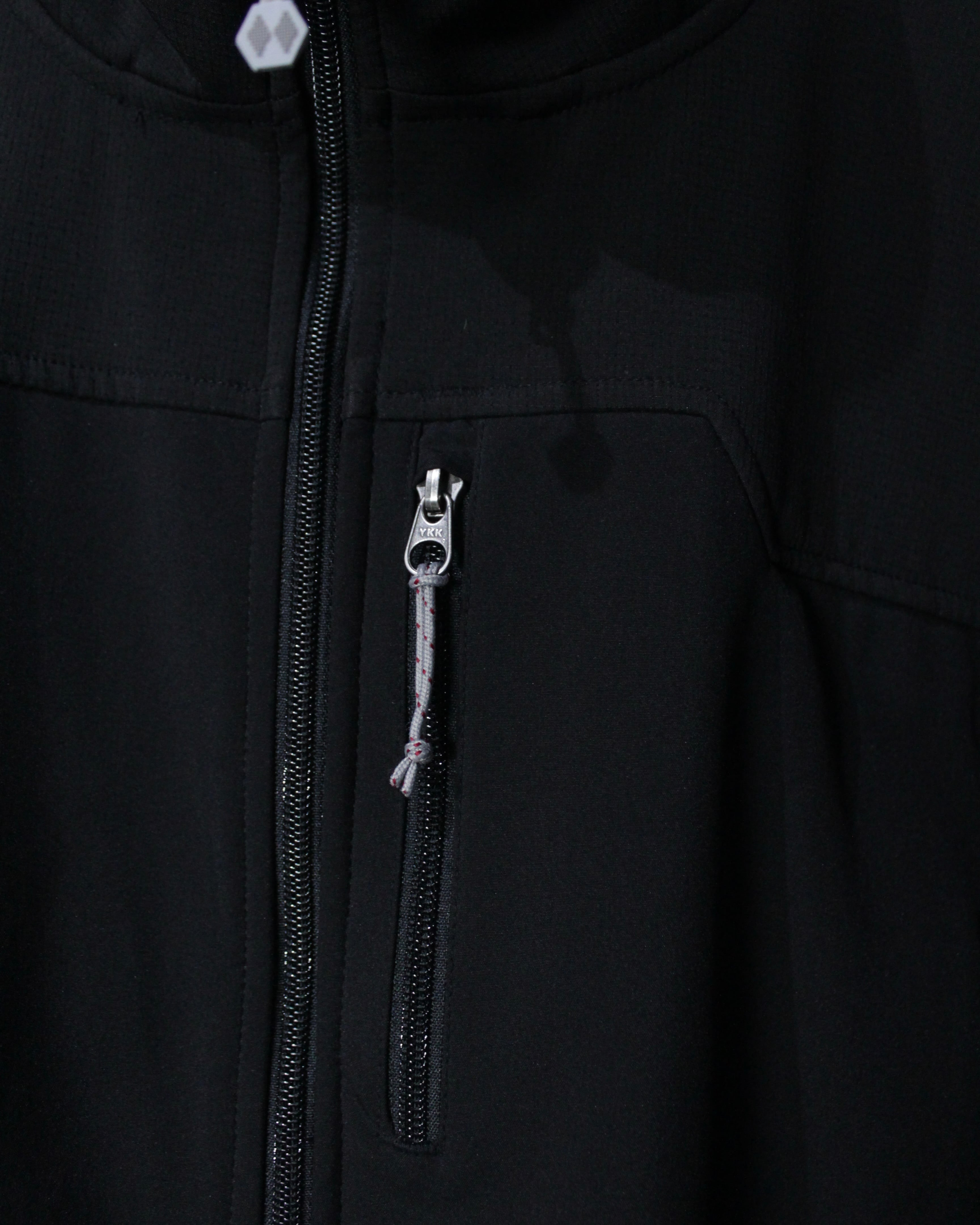 ボディには伸縮性と耐久性を兼ね備えたソフトシェルファブリックを採用し、マットな質感と僅かなハリ感があり、動きやすさと快適性を実現。内側にはフリースライニングを配しており、程よい保温性も兼ね備えています。