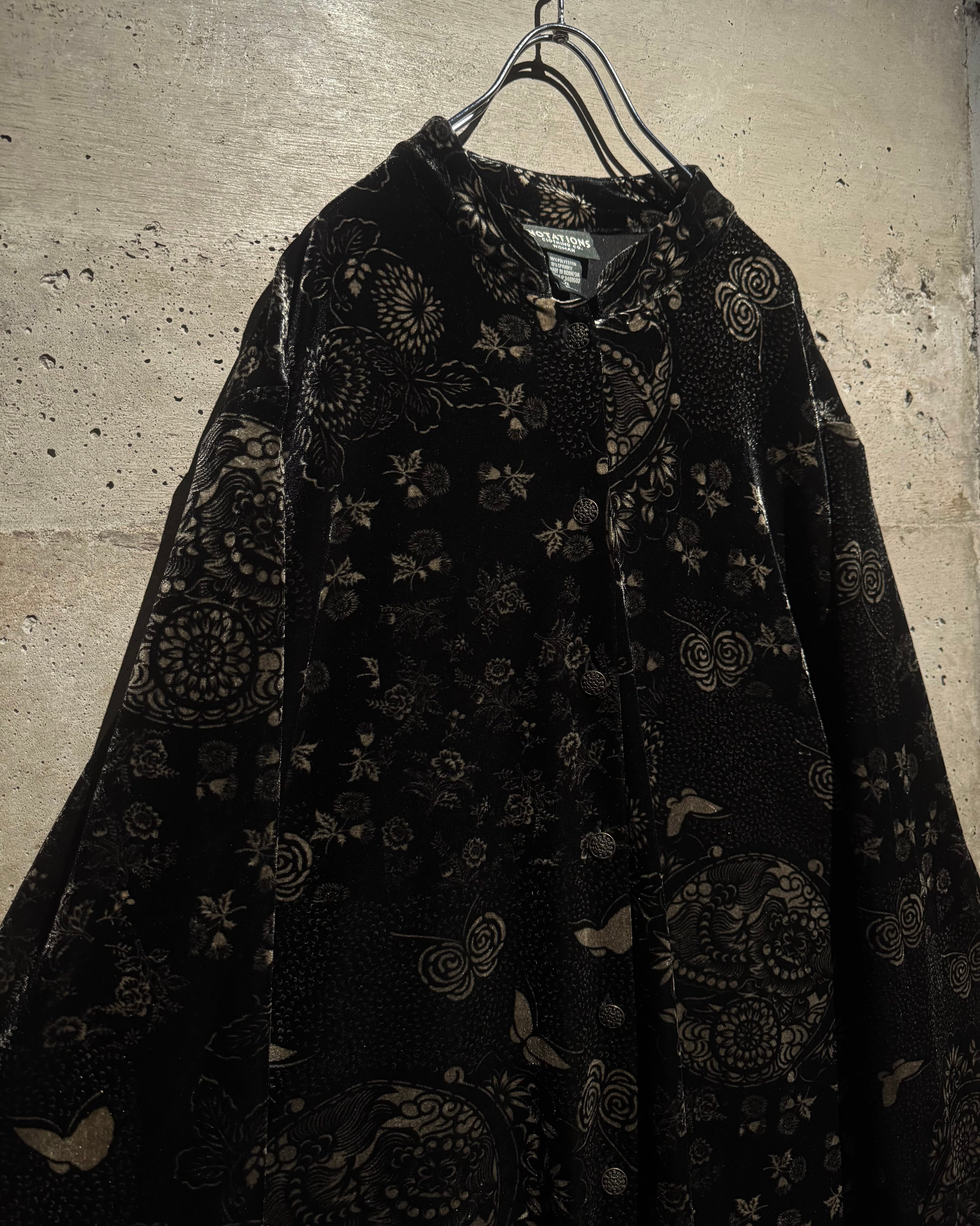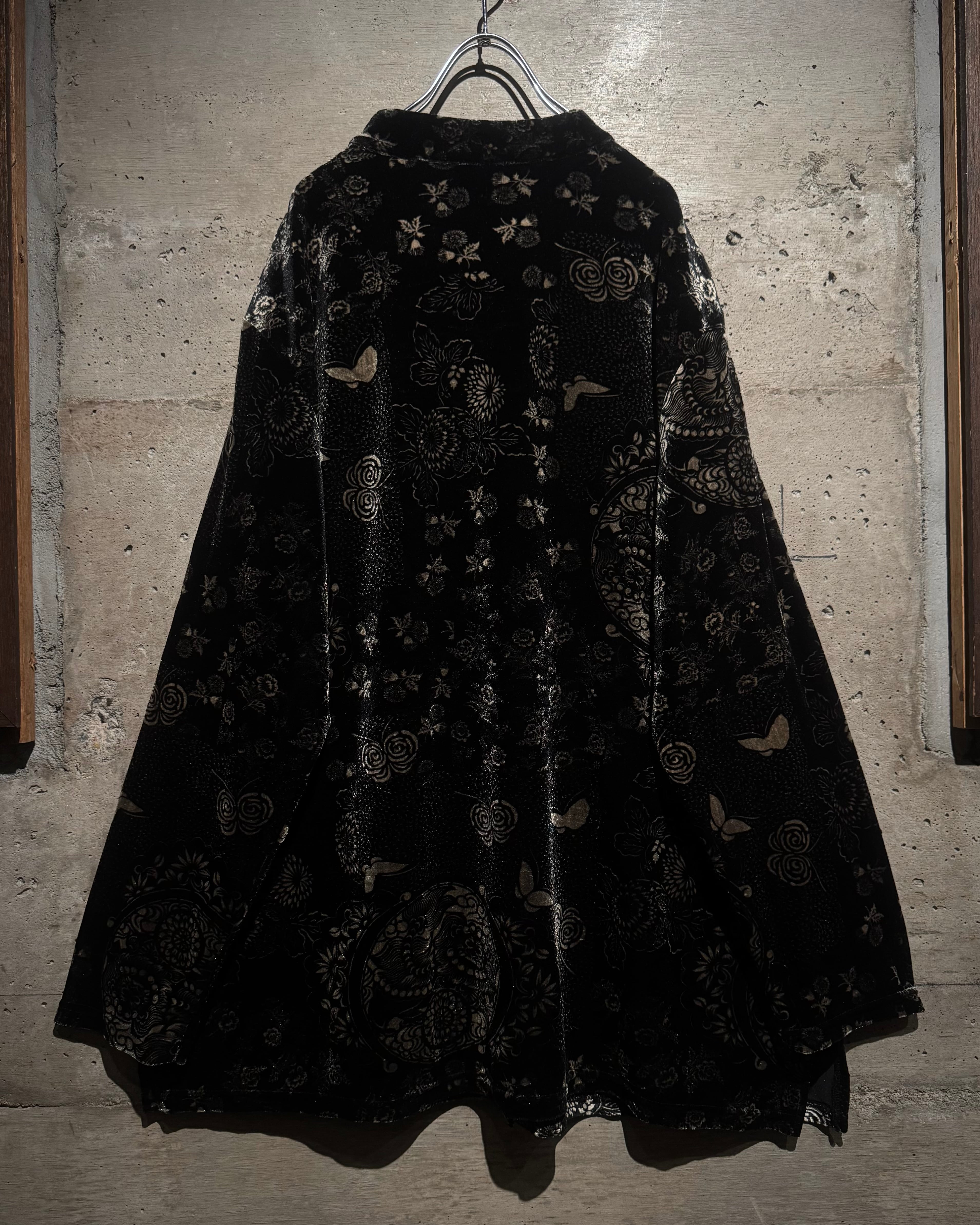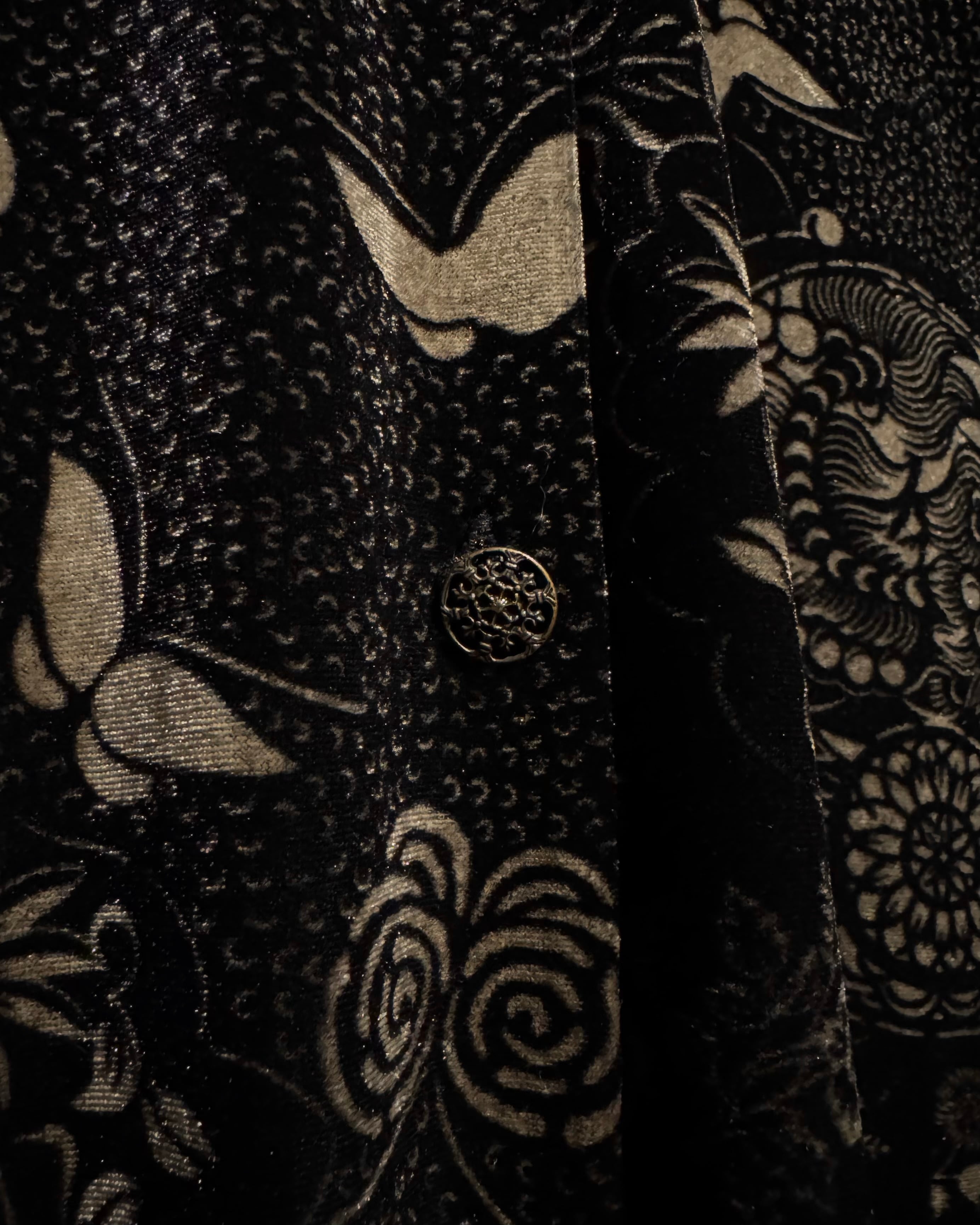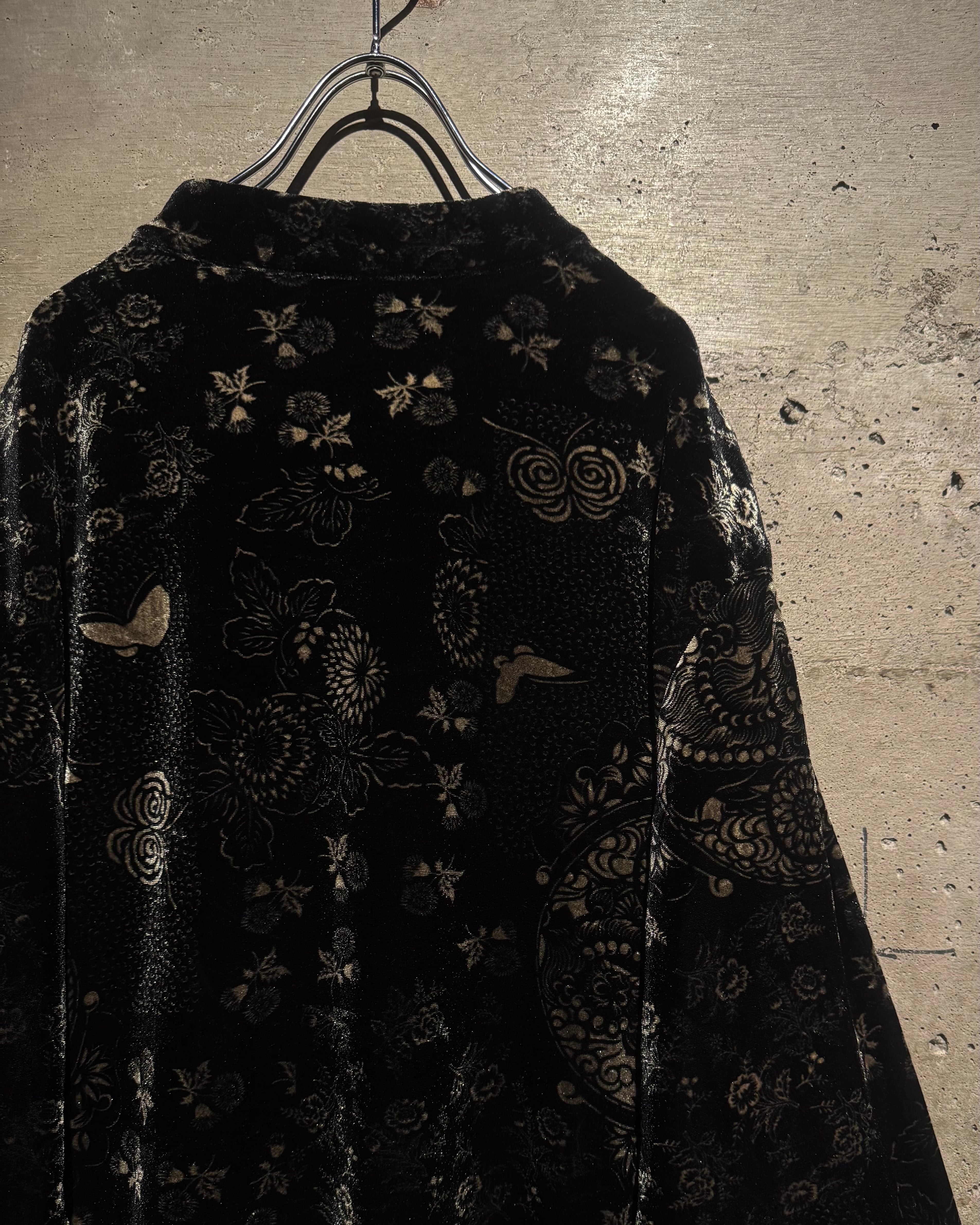 オリエンタルなデザインとベロアの質感が際立つ、唯一無二の存在感を放つベロアシャツの逸品です。