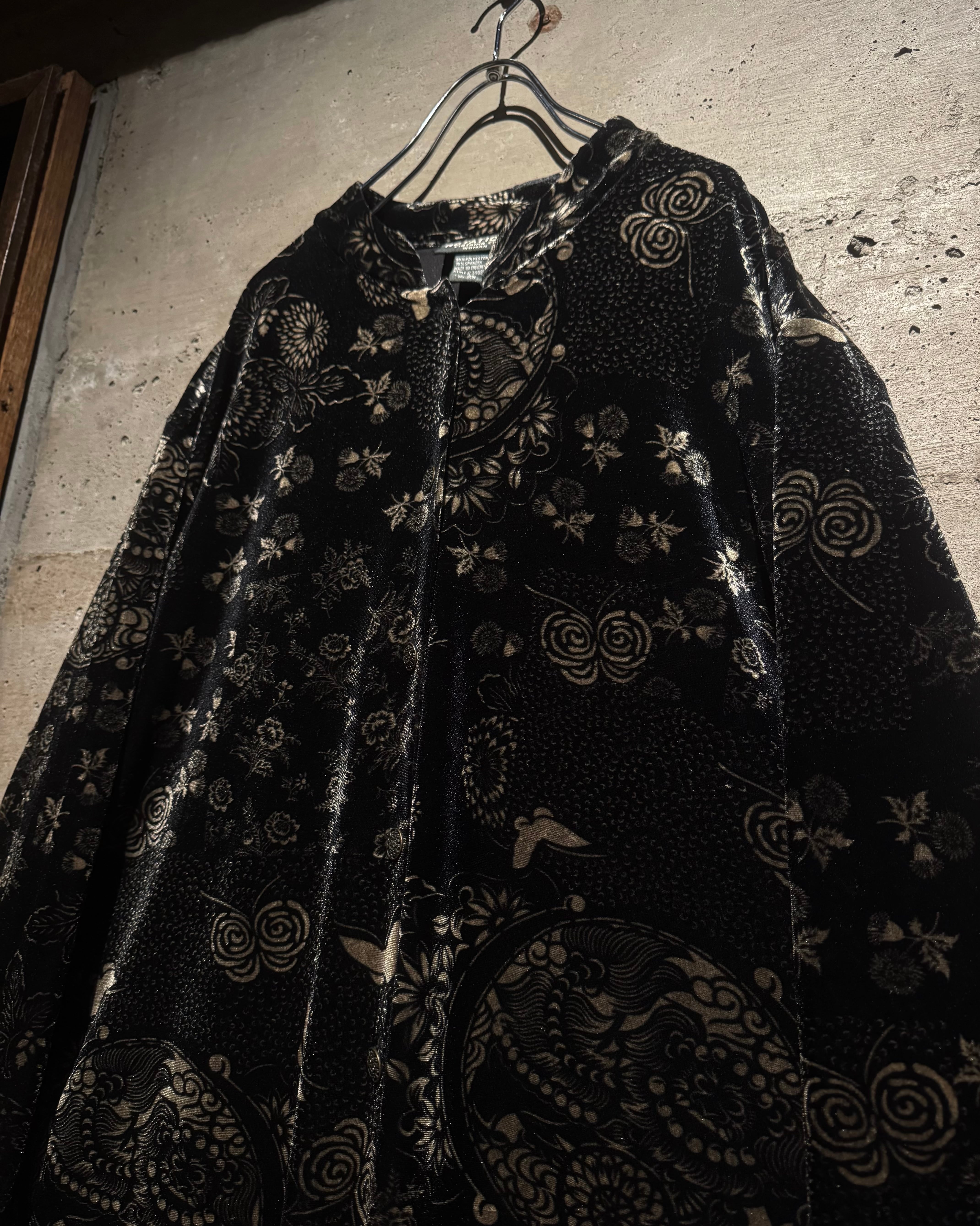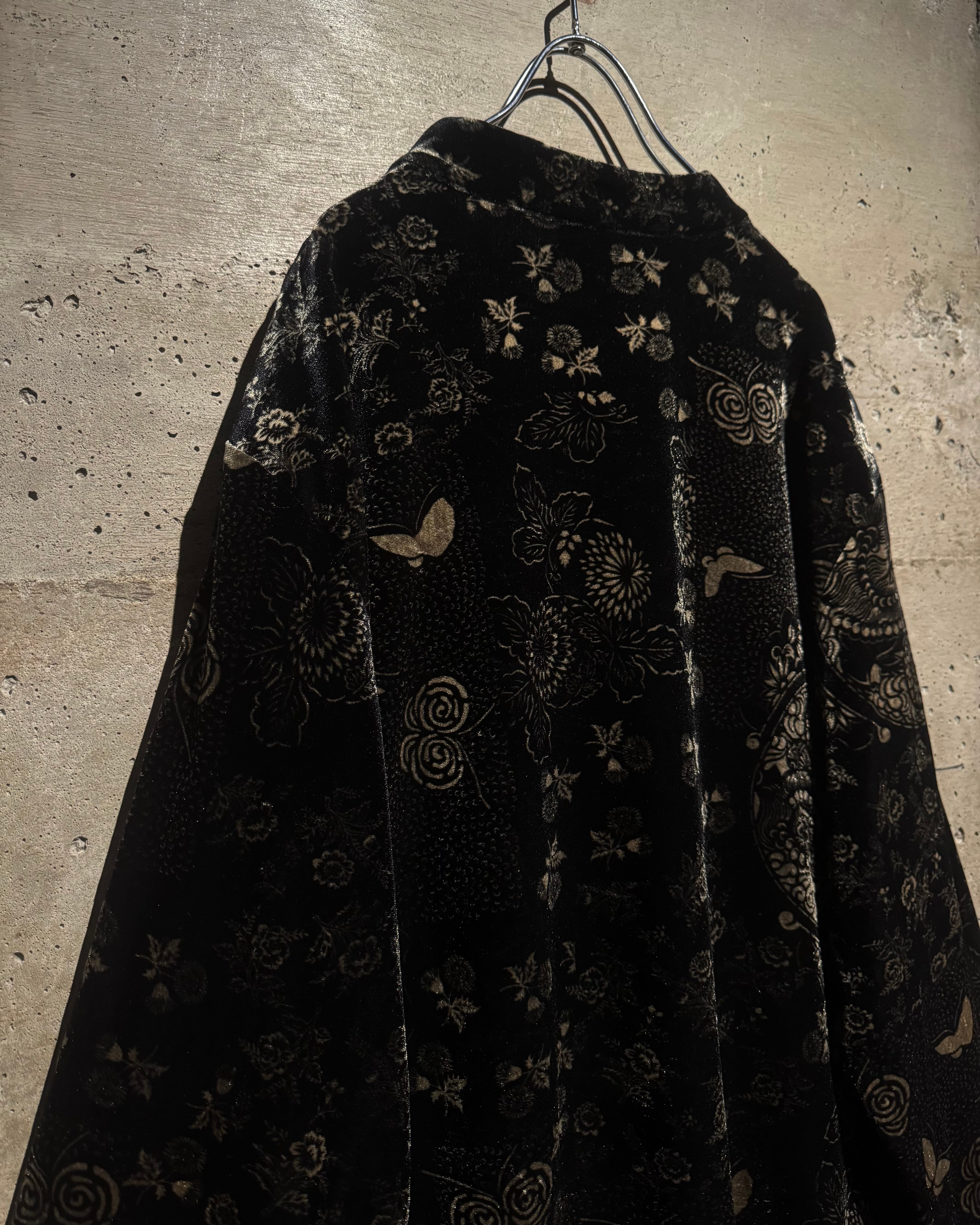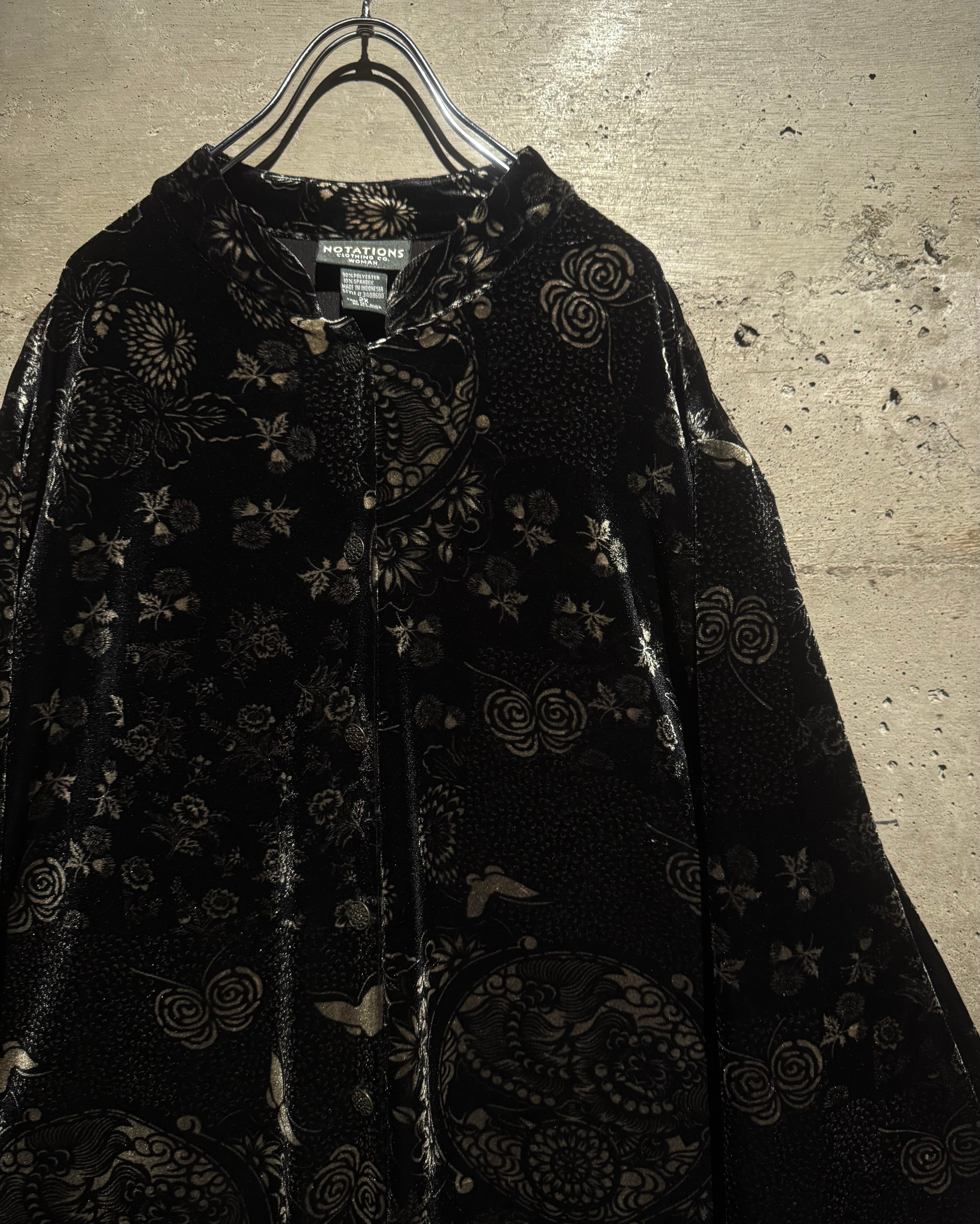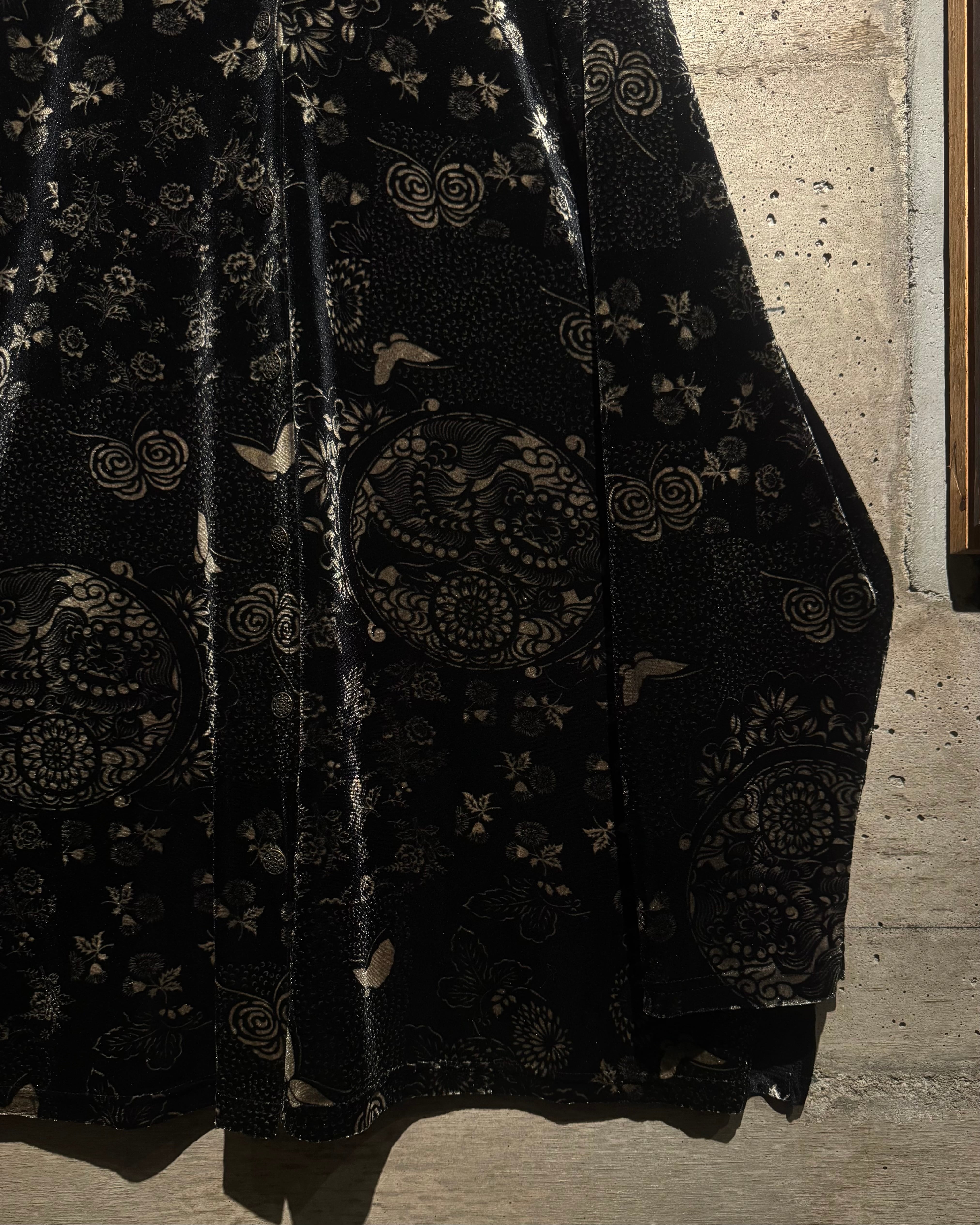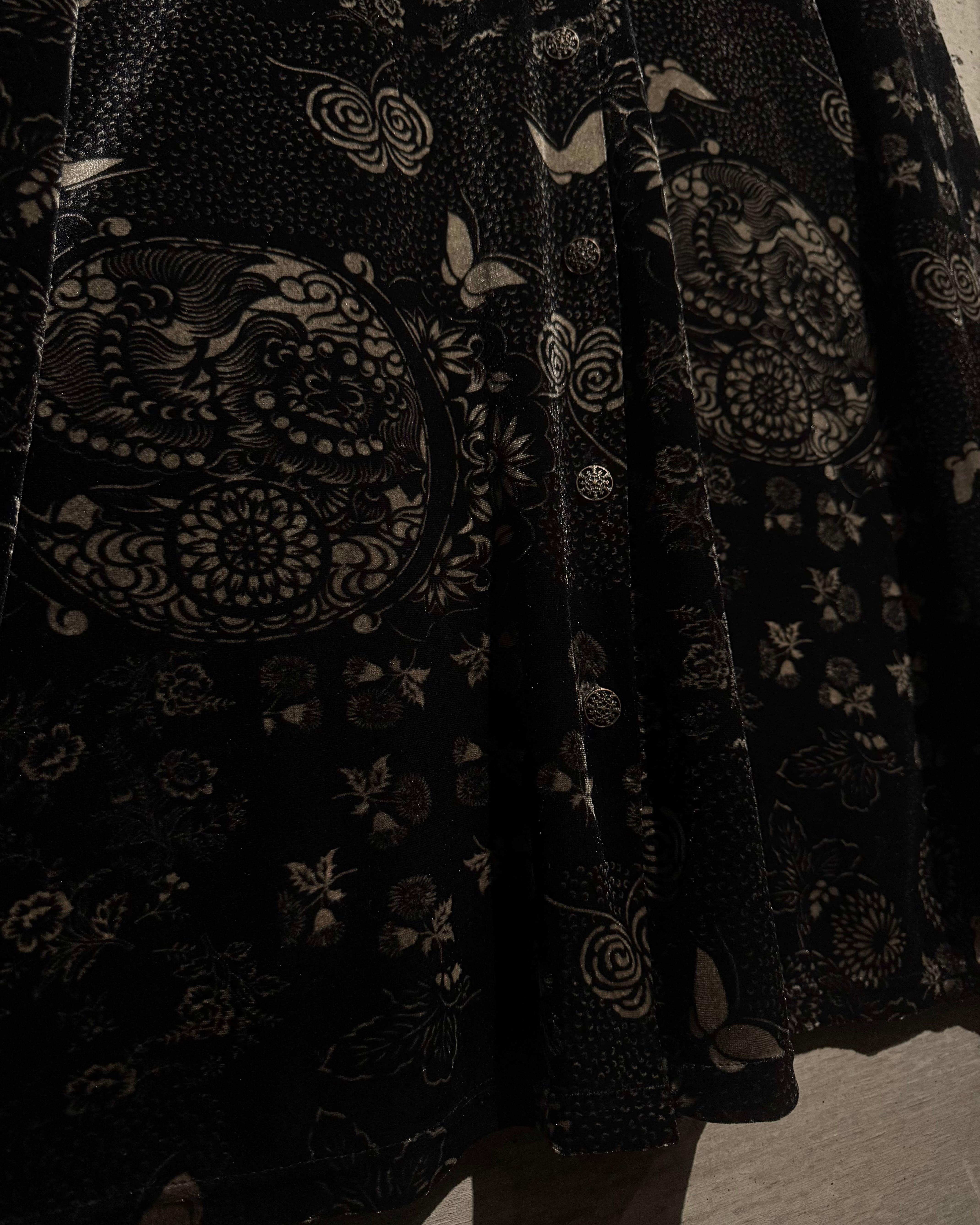 オリエンタルなデザインとベロアの質感が際立つ、唯一無二の存在感を放つベロアシャツの逸品です。