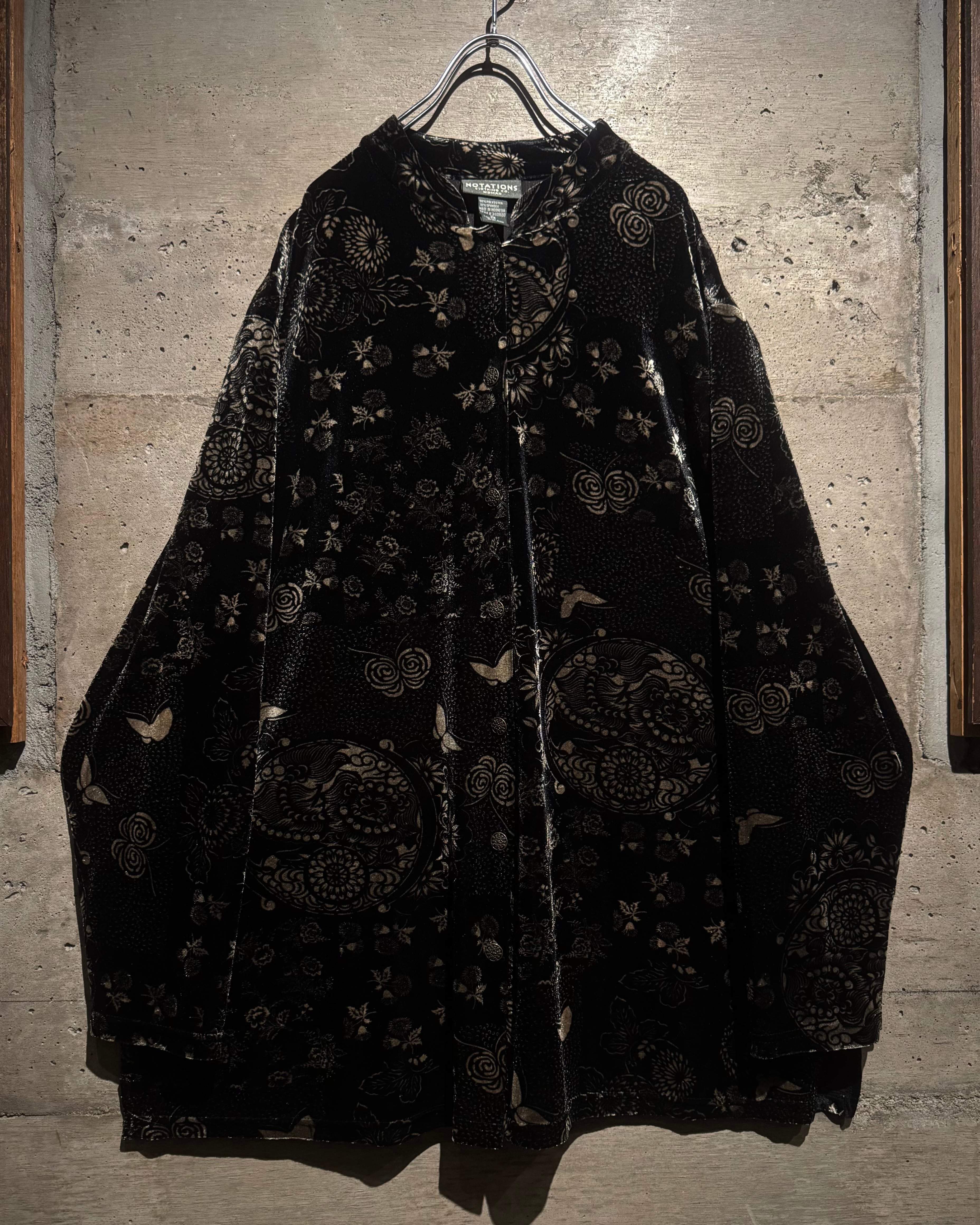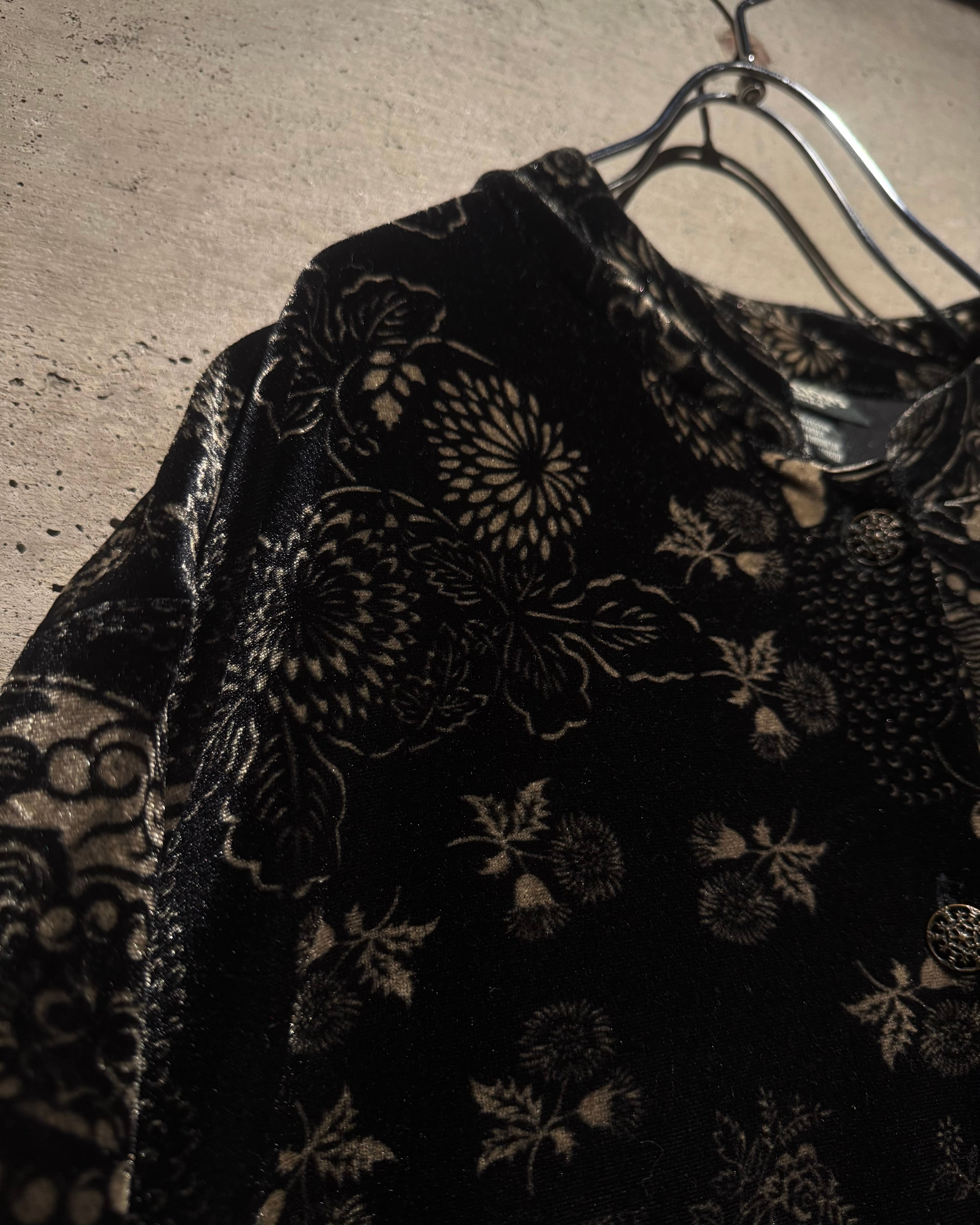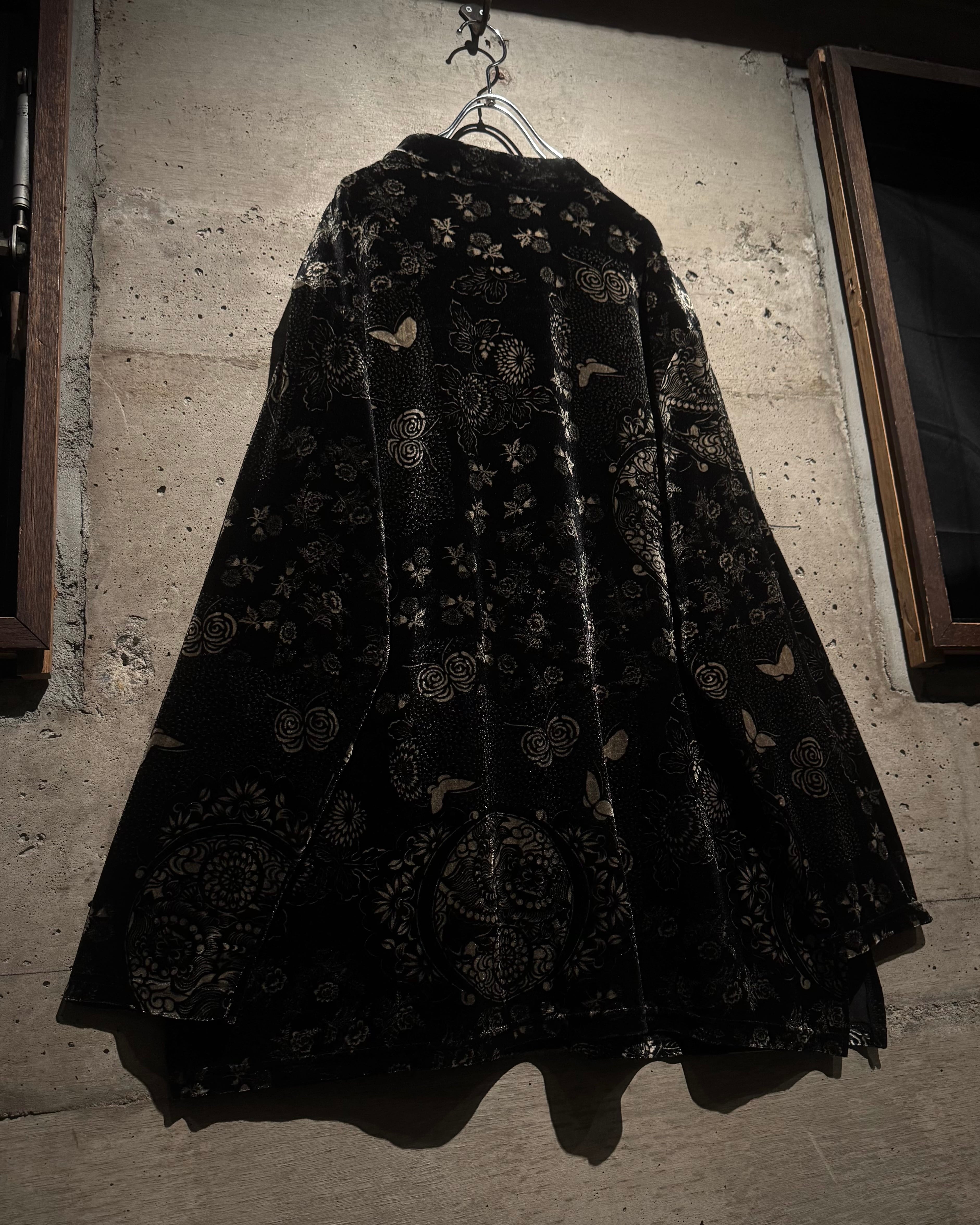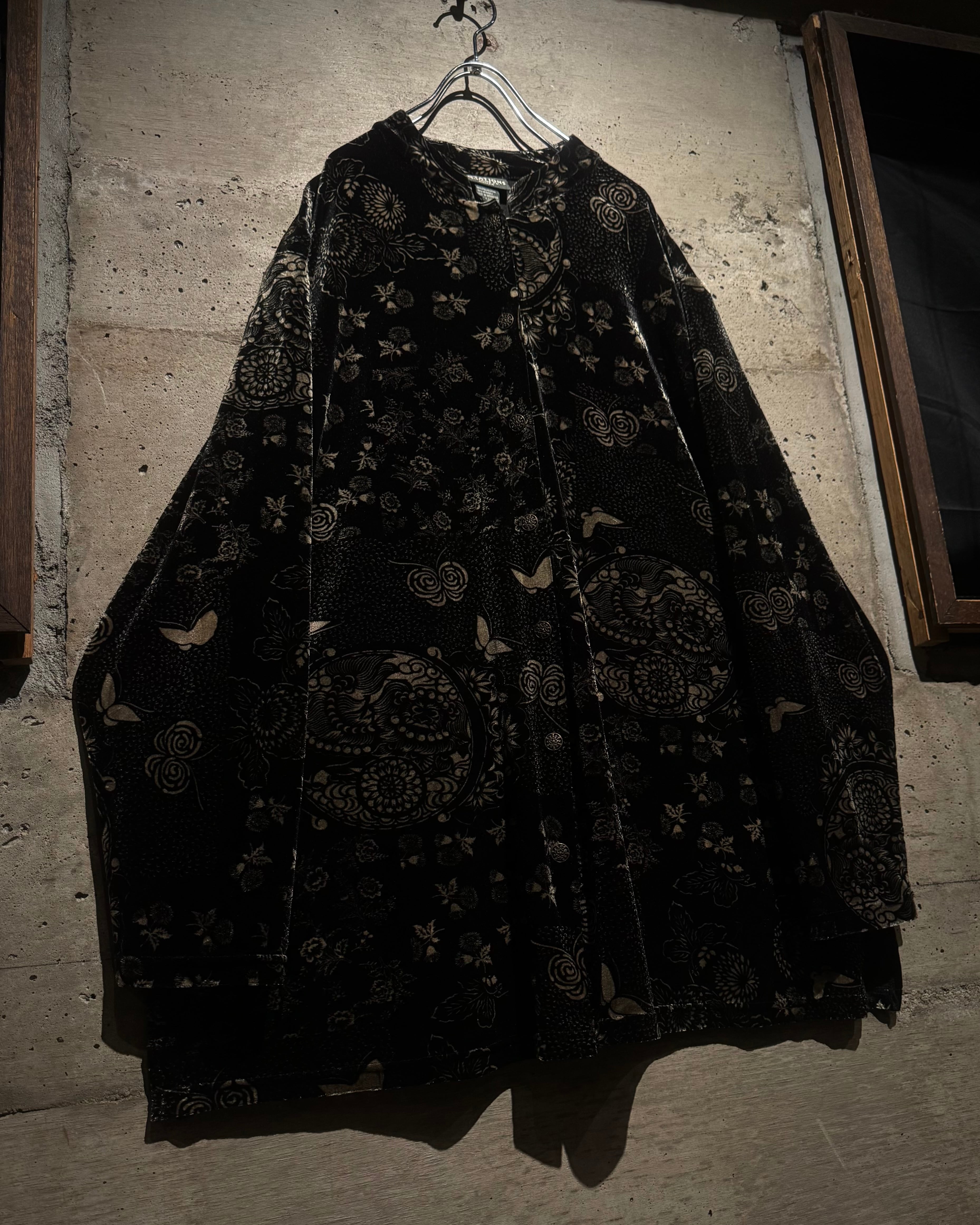 オリエンタルなデザインとベロアの質感が際立つ、唯一無二の存在感を放つベロアシャツの逸品です。