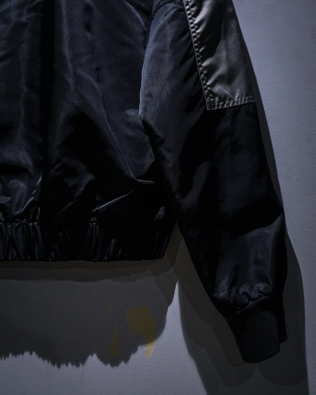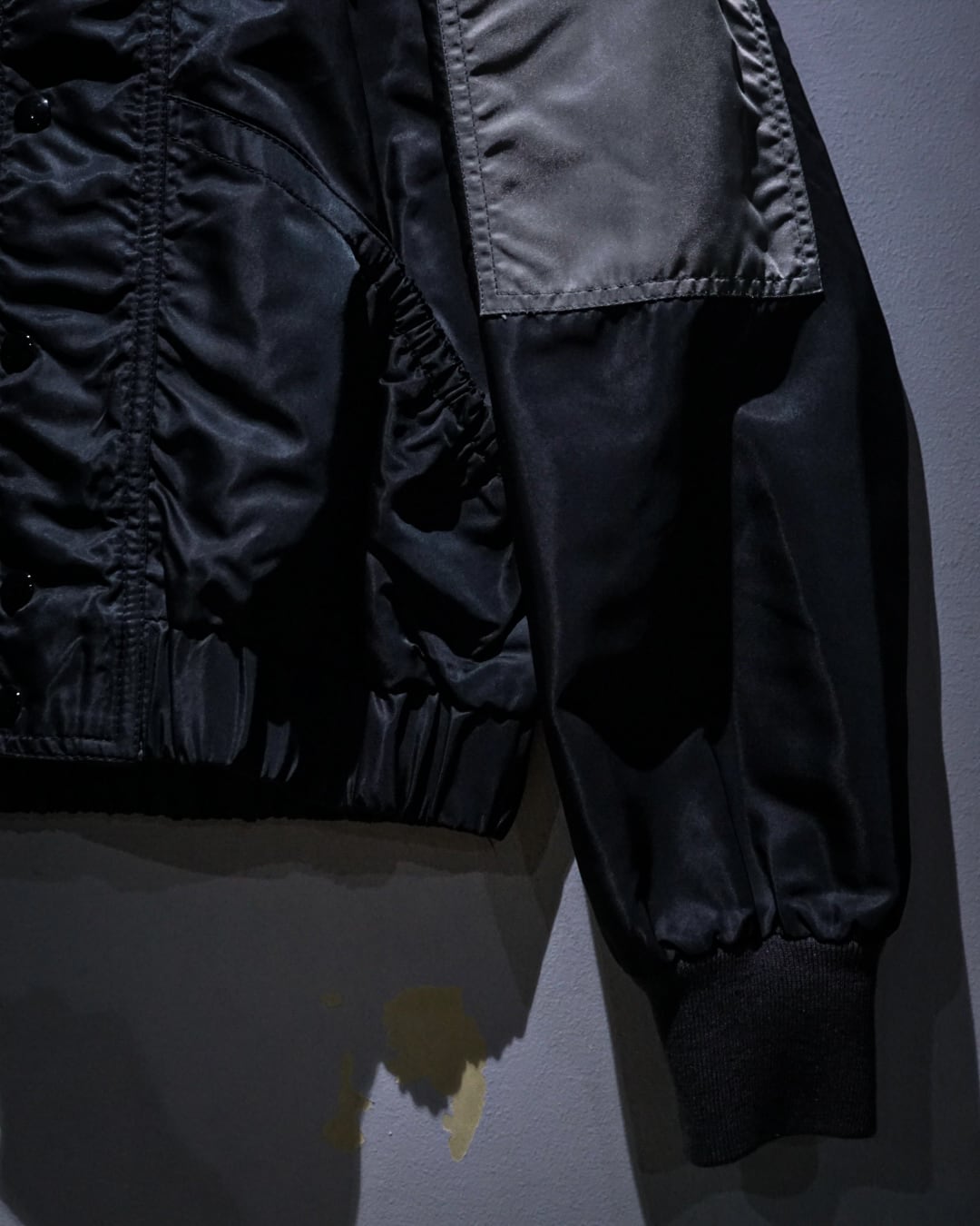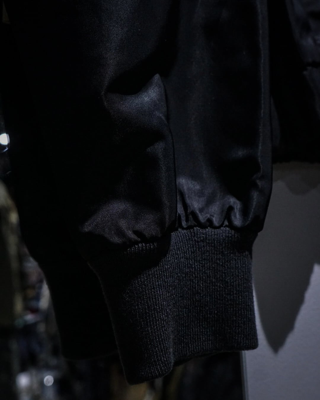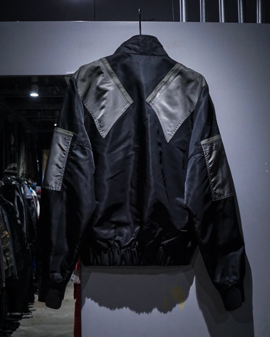光沢を纏ったハリのある生地を用いて、当店らしいテクニカルなギミックを落とし込んだ稀有なバイカーギアジャケット。