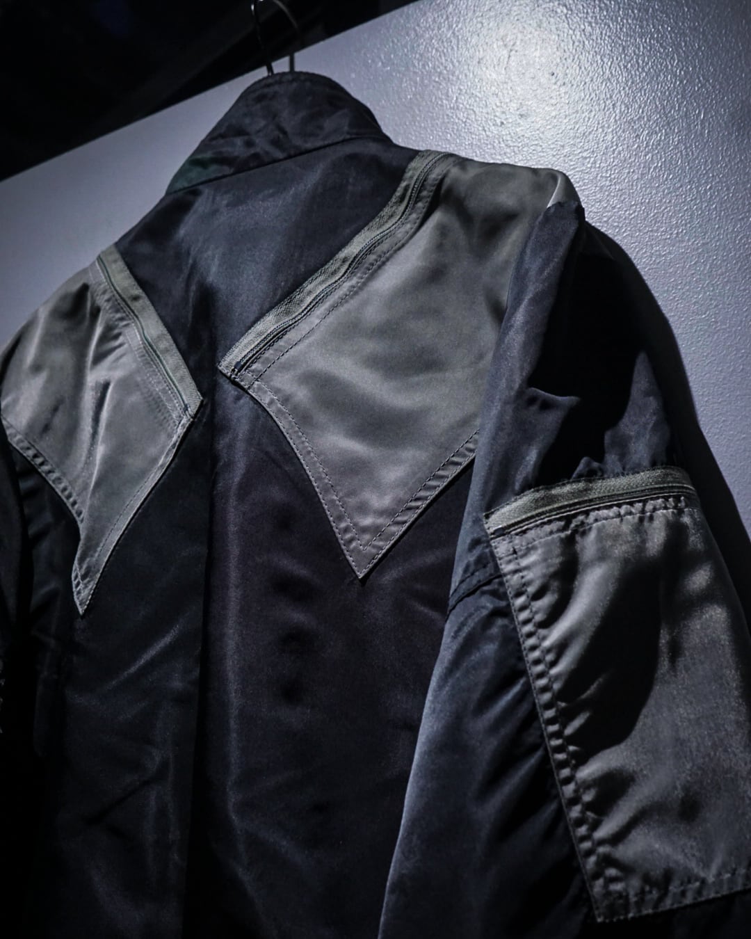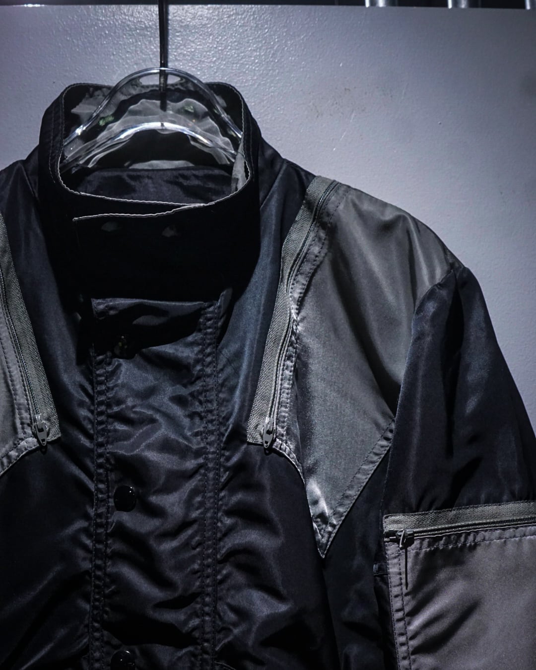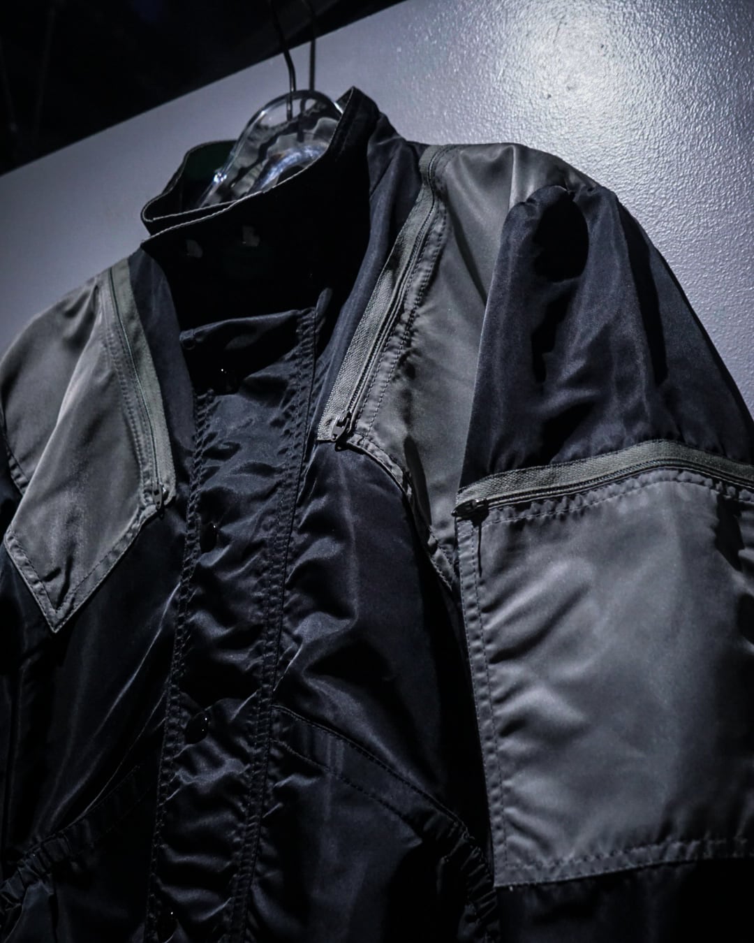 両腕、両肩には前から後ろにかけてジップポケットをON。更にボディサイドには手がすっぽりと入るポケットと、切り替えを効かせたアヴァンギャルドなルックスの中に、計算されたギミックが光ります。