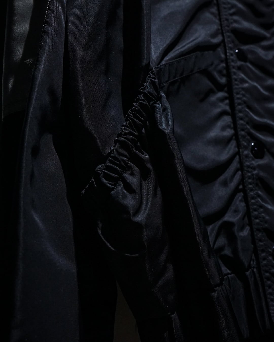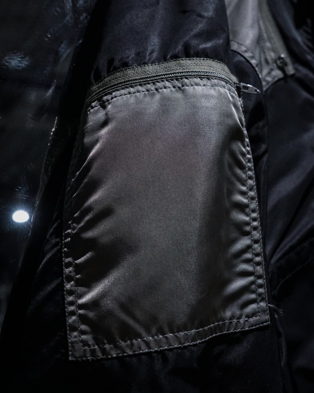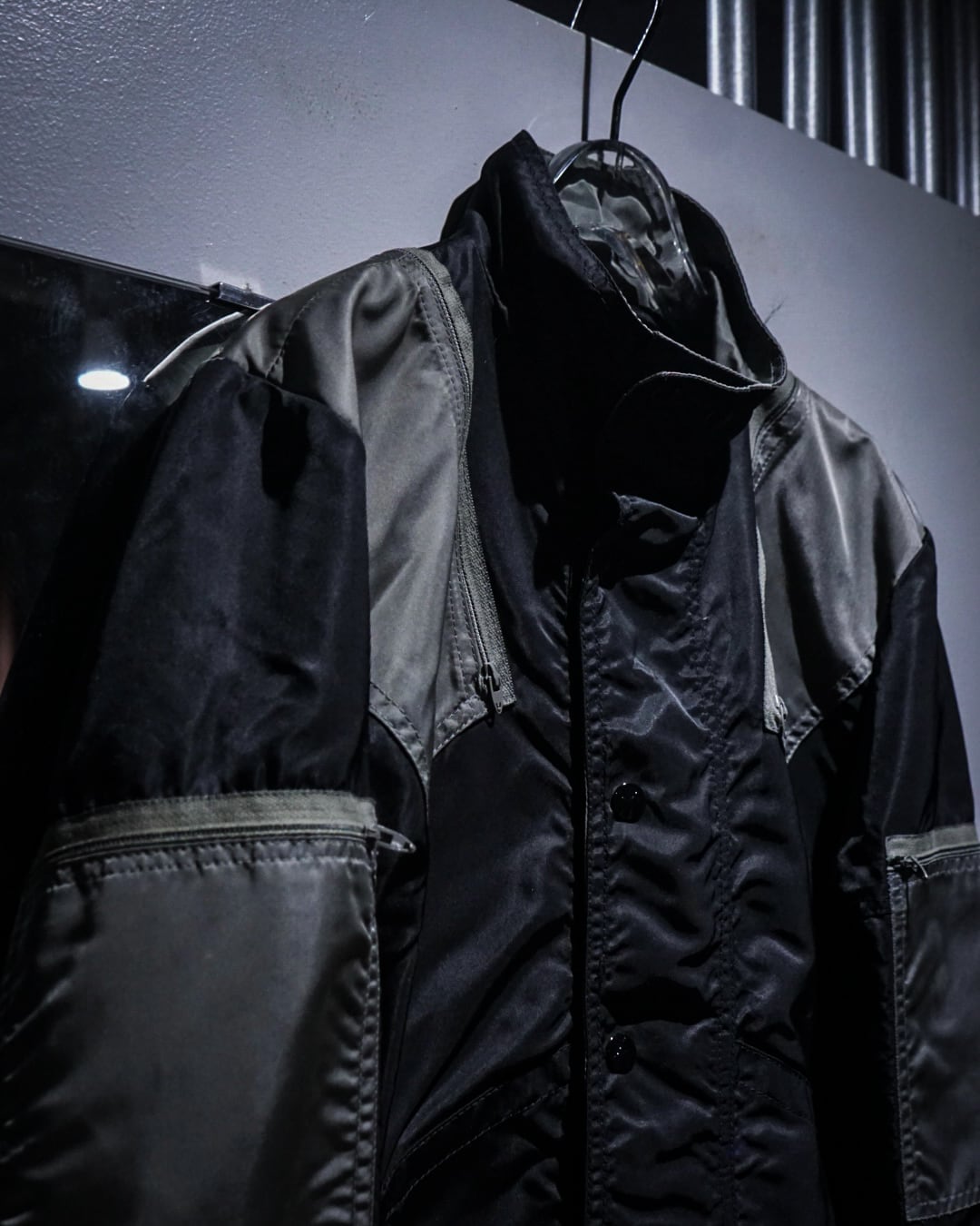 両腕、両肩には前から後ろにかけてジップポケットをON。更にボディサイドには手がすっぽりと入るポケットと、切り替えを効かせたアヴァンギャルドなルックスの中に、計算されたギミックが光ります。
