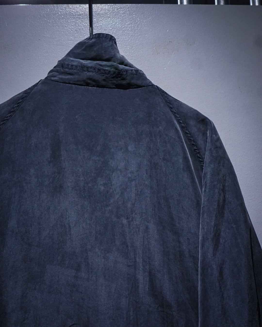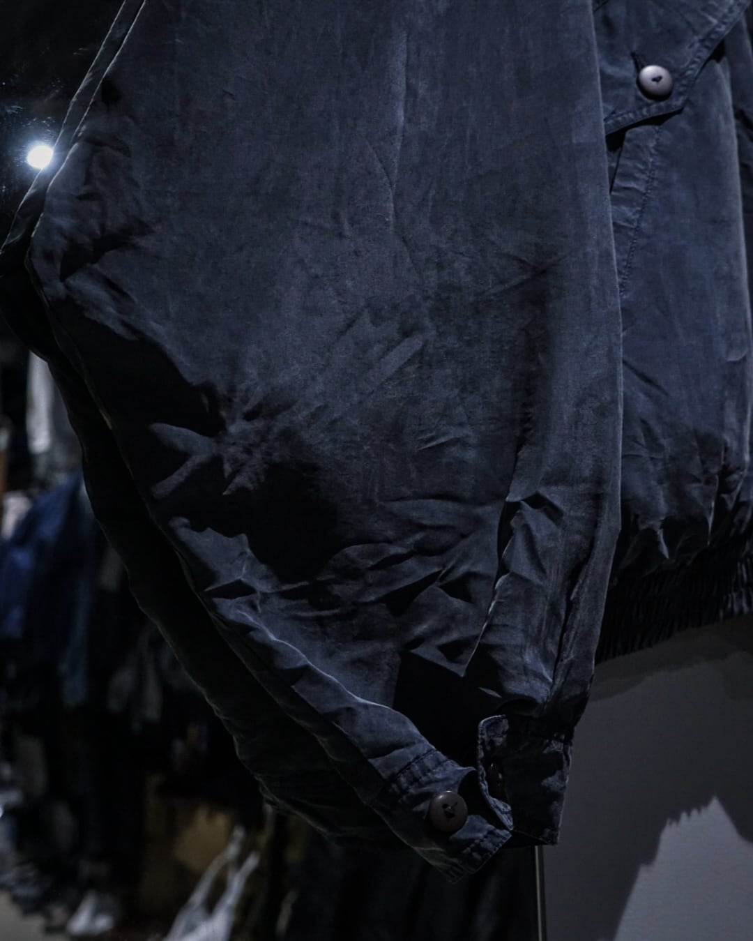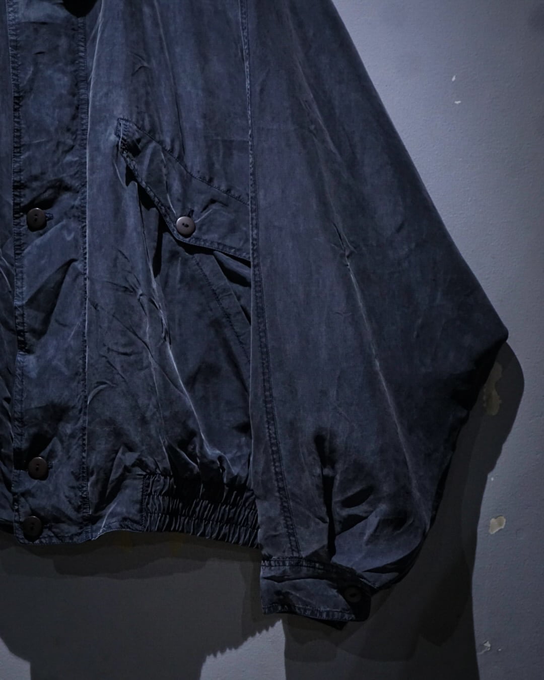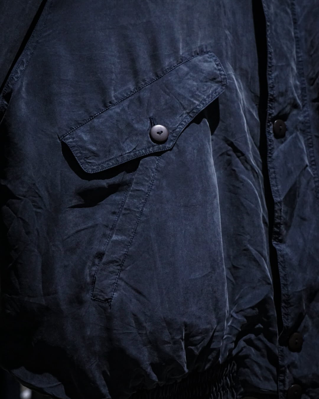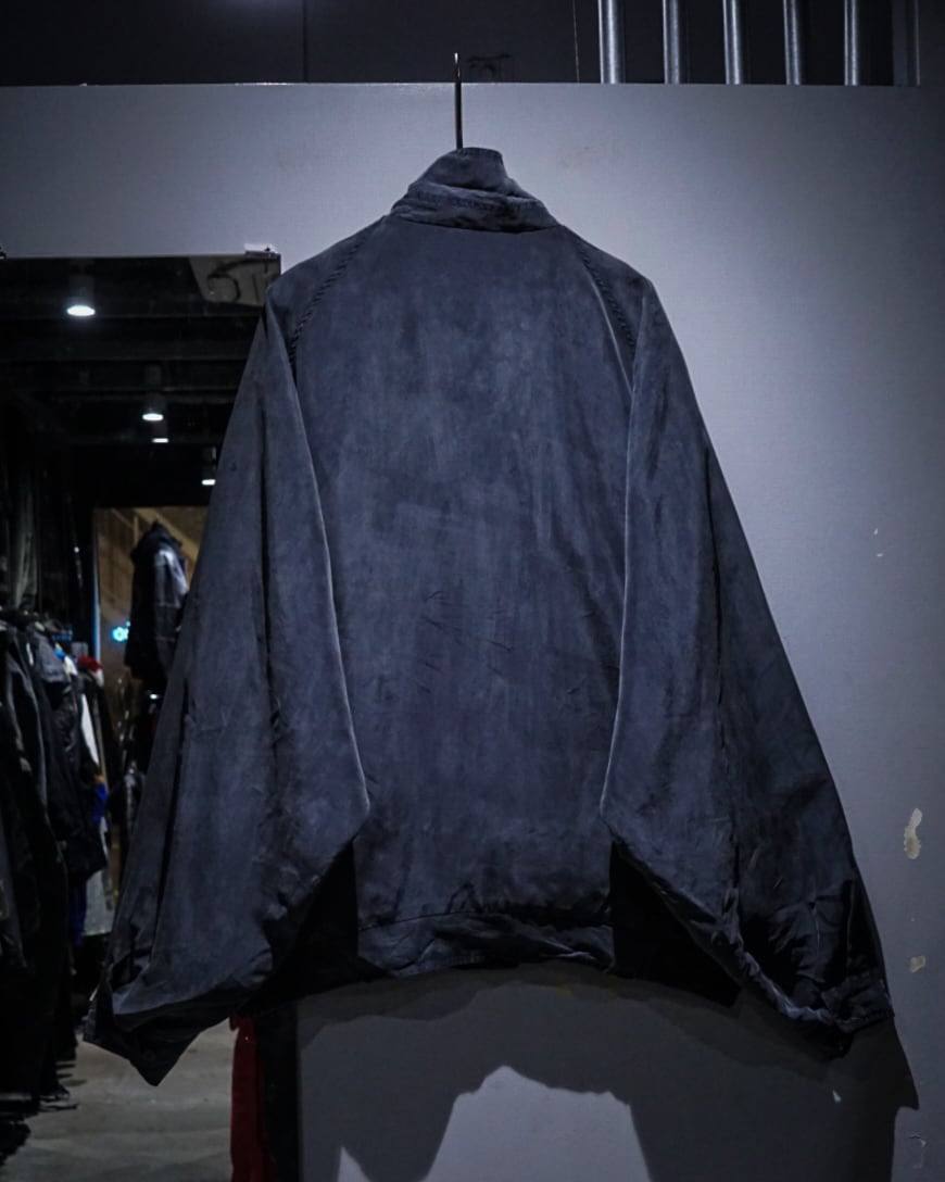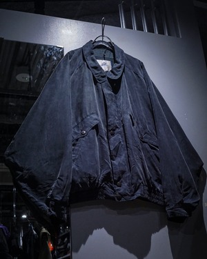 デザインベースはフライトジャケット。比翼仕立てのフロントに加え、フラップポケットとハンドウォーマーポケットを備えており、無骨なミリタリーのエッセンスをシルク素材で表現することで洗練された印象へと昇華されています。
