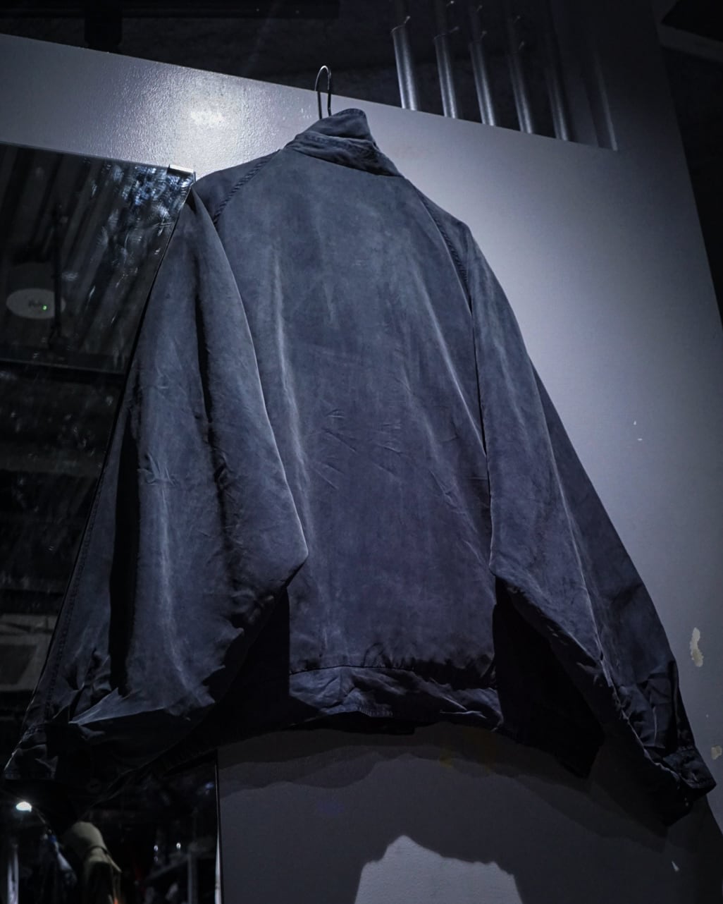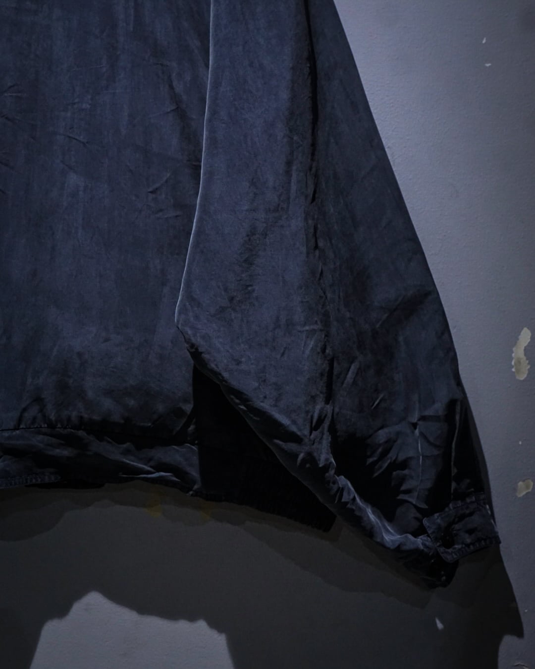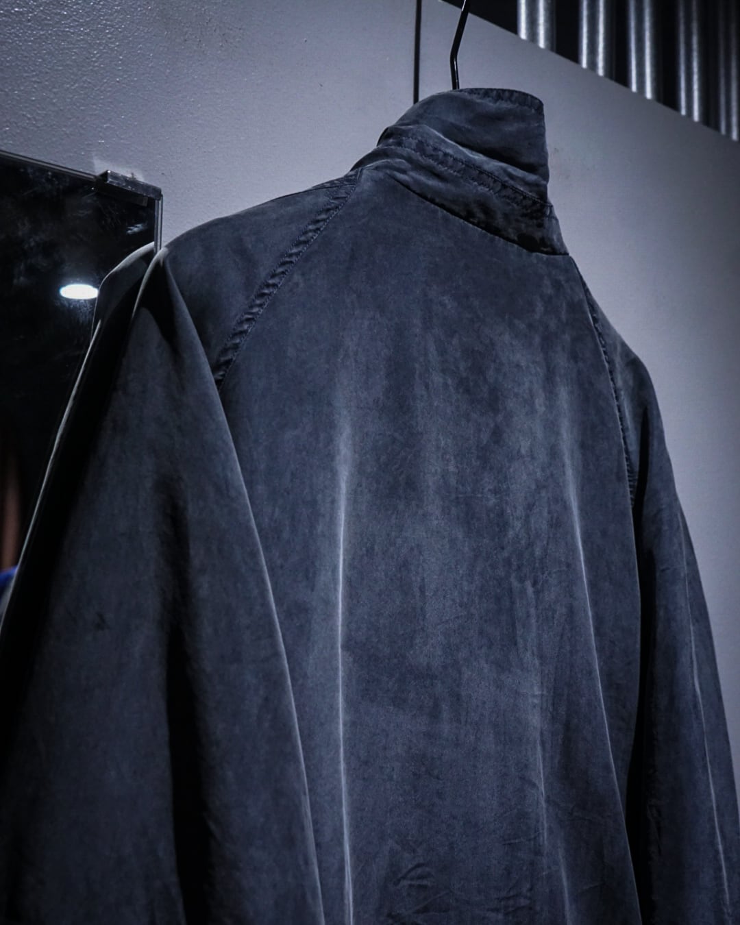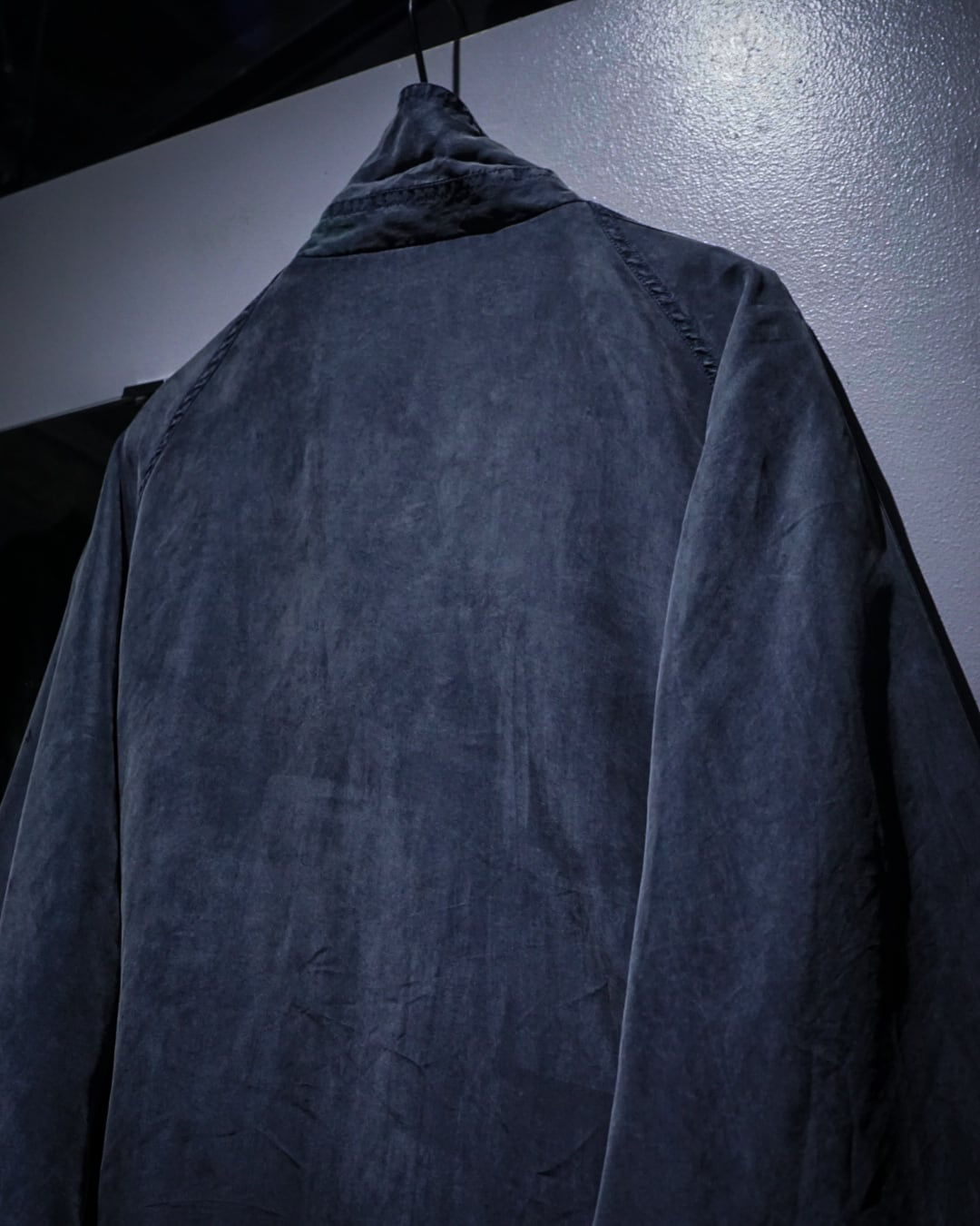 デザインベースはフライトジャケット。比翼仕立てのフロントに加え、フラップポケットとハンドウォーマーポケットを備えており、無骨なミリタリーのエッセンスをシルク素材で表現することで洗練された印象へと昇華されています。
