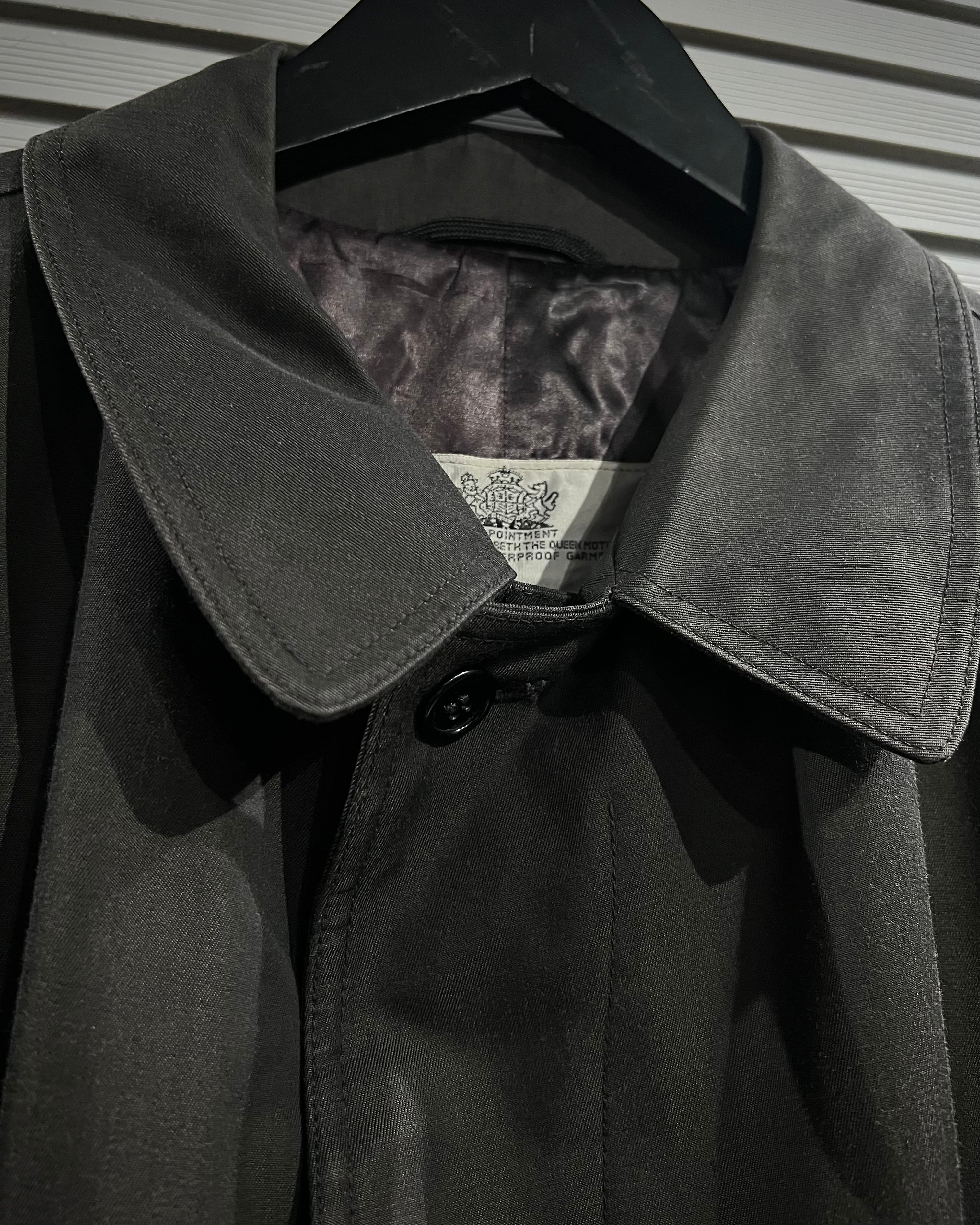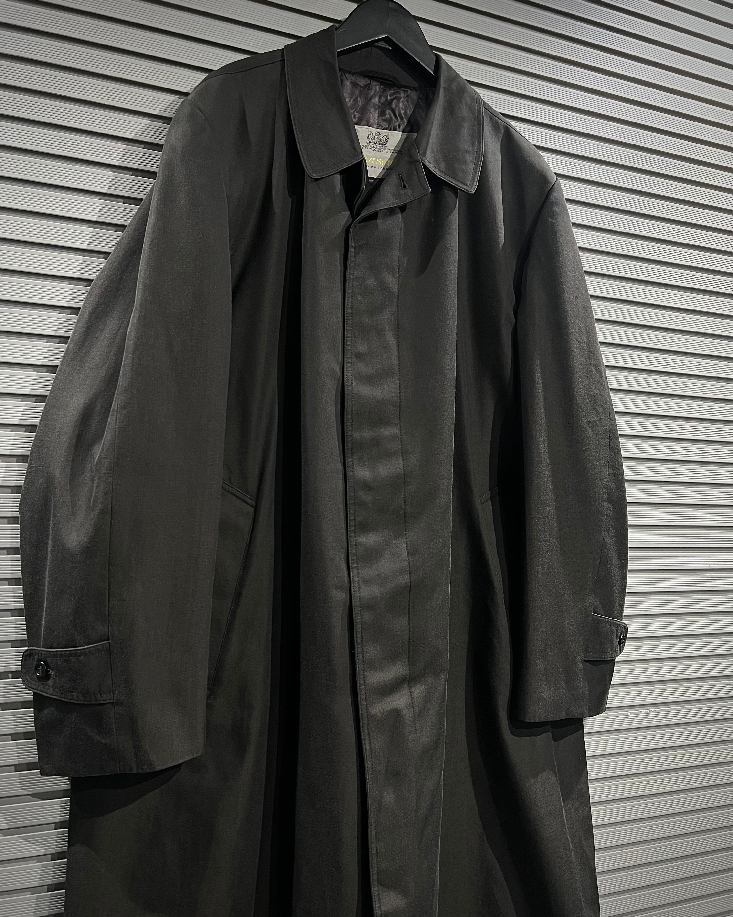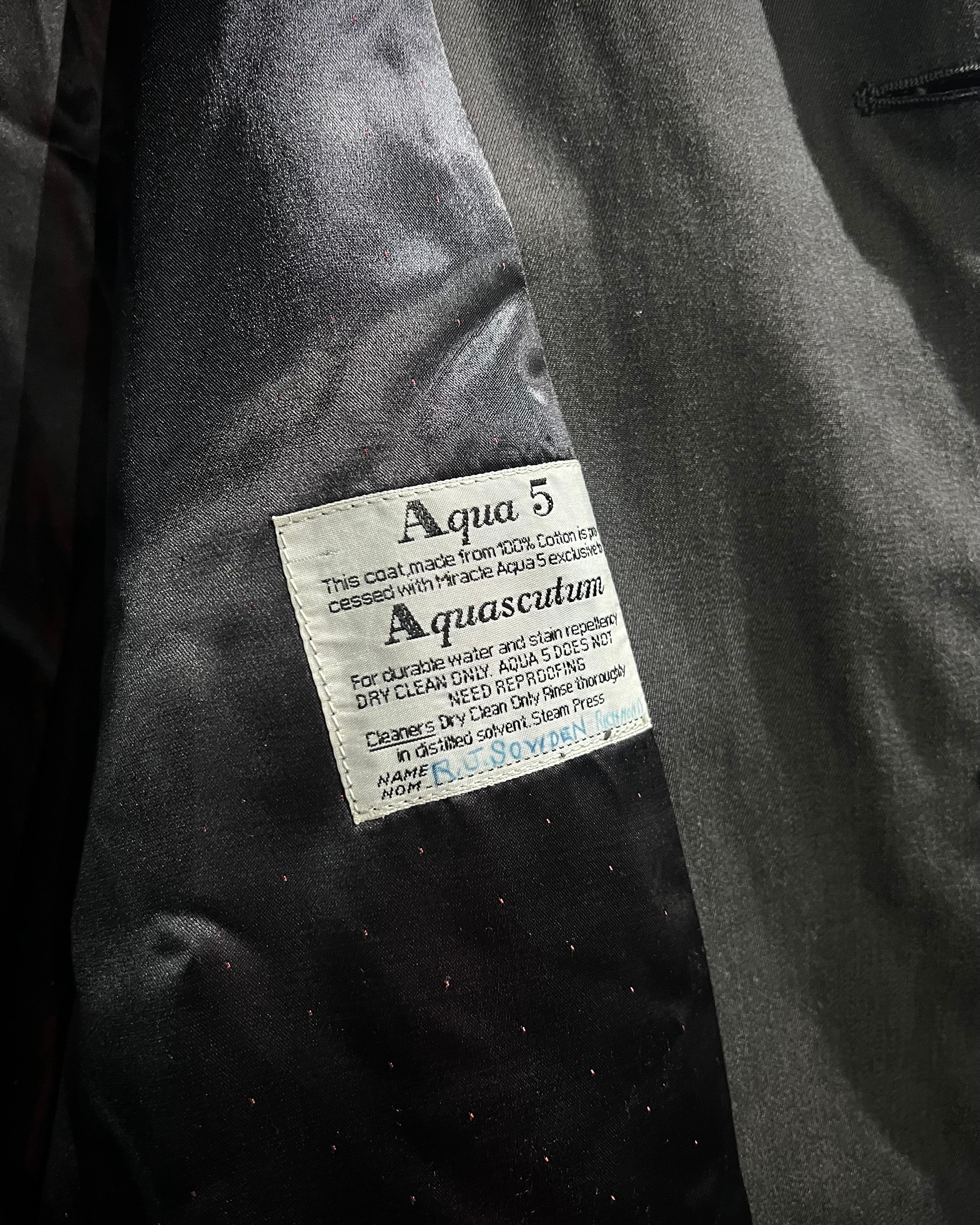 当時“究極のレインプルーフ”と称されたブランド独自のファブリック“Aqua5”を採用した1着。高い撥水性能を誇りながらも、しなやかで上品な質感を兼ね備えています。