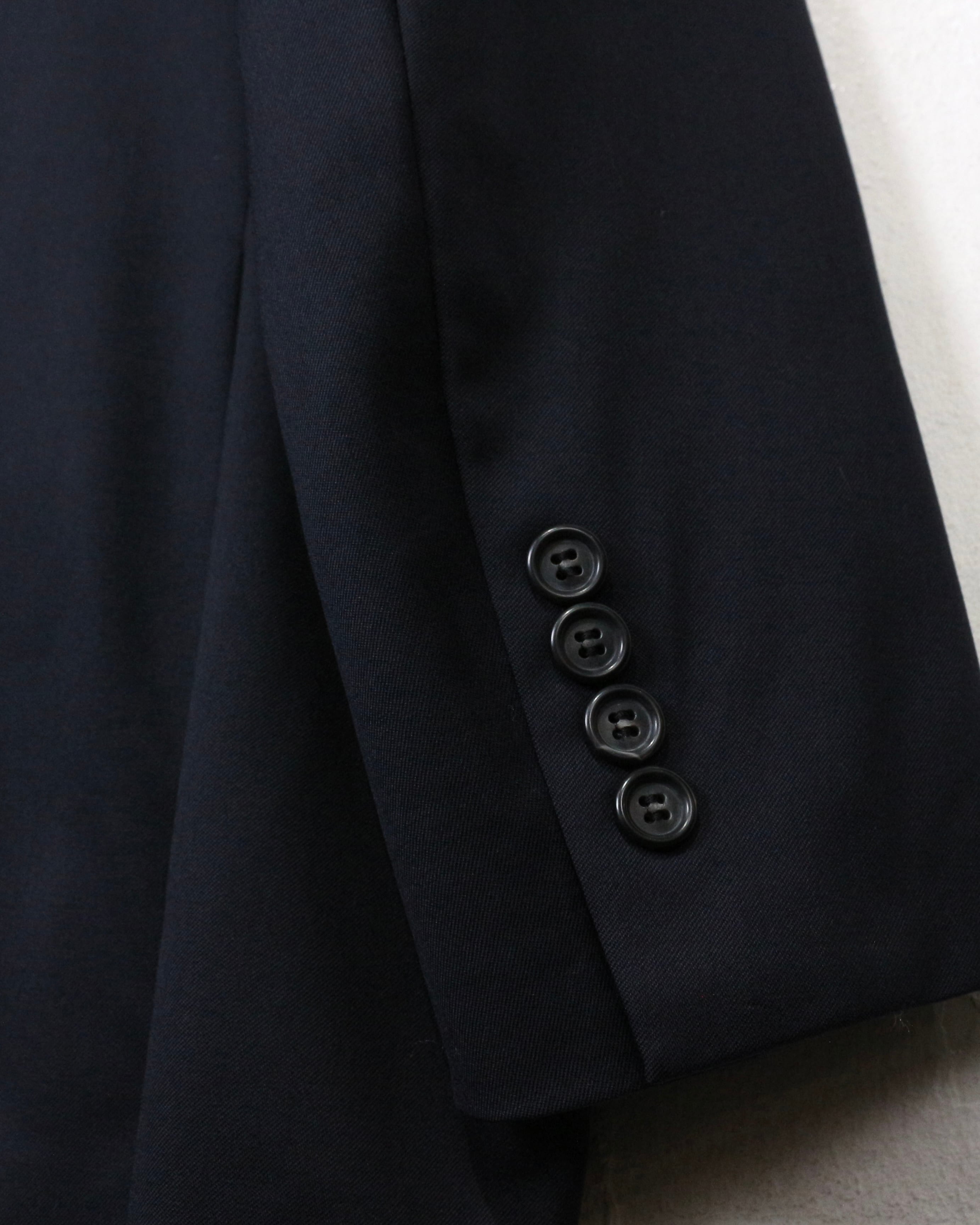 フロントはシングル2ボタン、ノッチドラペルの王道仕様。1818ラインならではの丁寧な仕立てと美しいパターンが素晴らしく、着用時のシルエットも抜群。