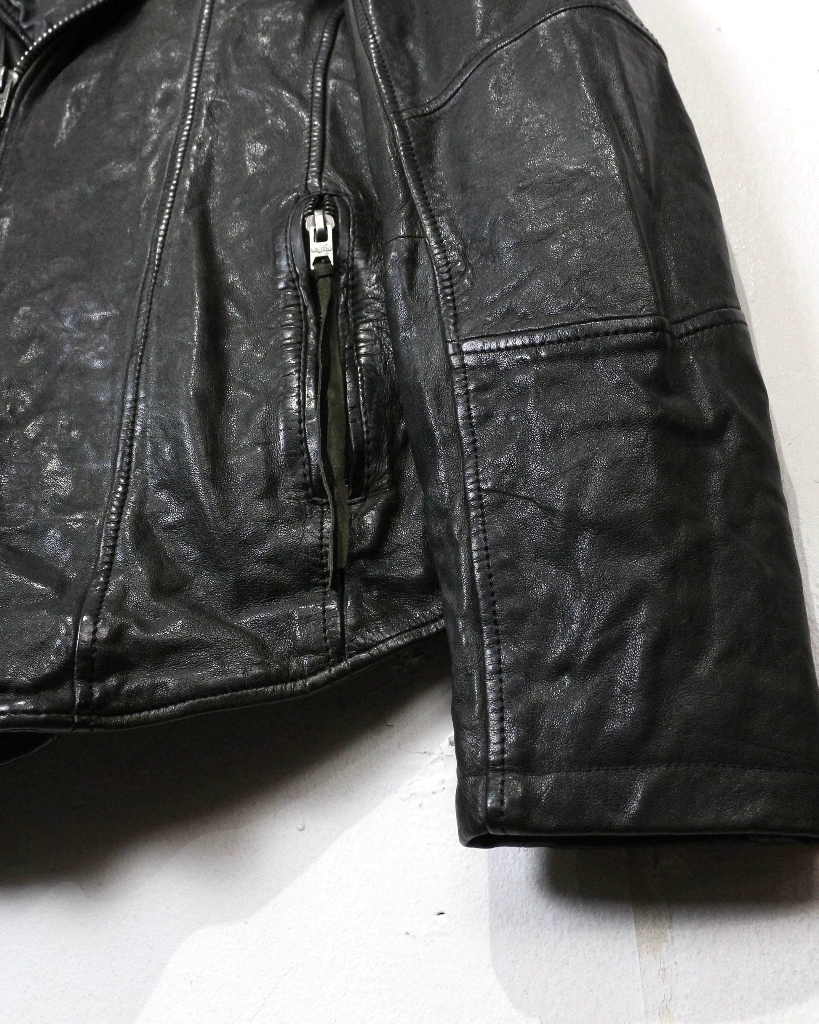 しなやかで柔らかいシープスキンを贅沢に使用し、ライダースのハードさがありながらも着心地は抜群。身体に馴染み、デイリーに落とし込みやすいのも魅力かと。