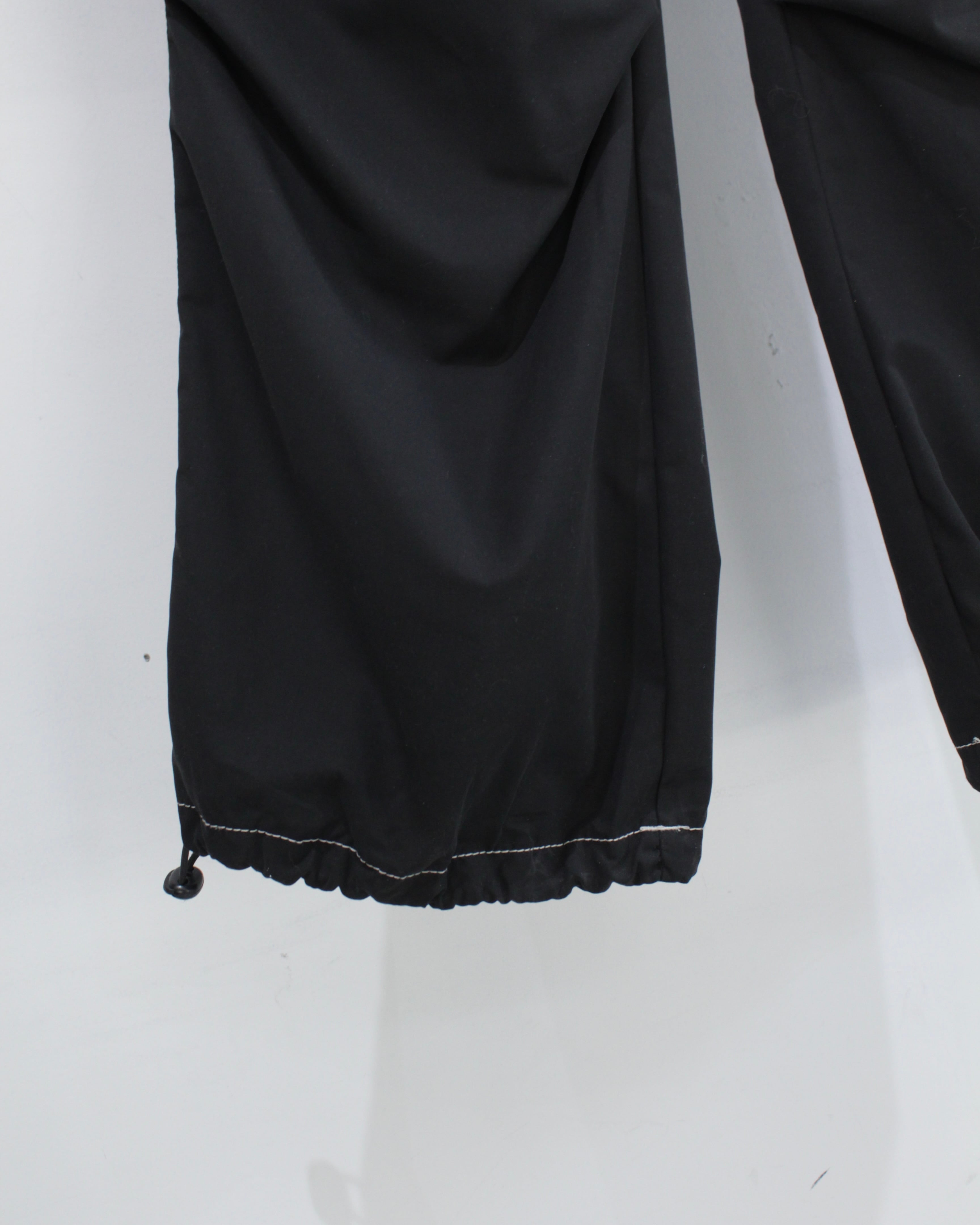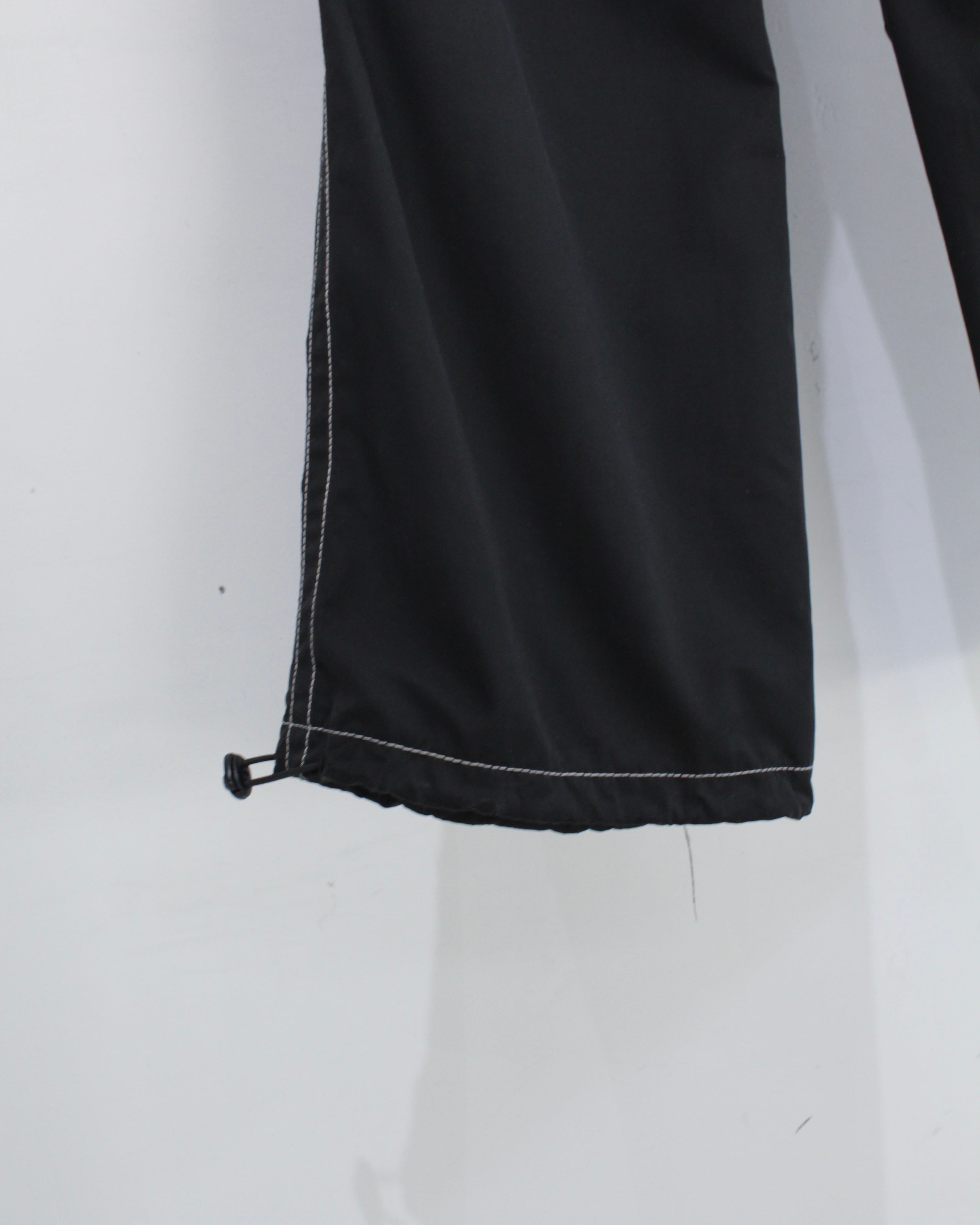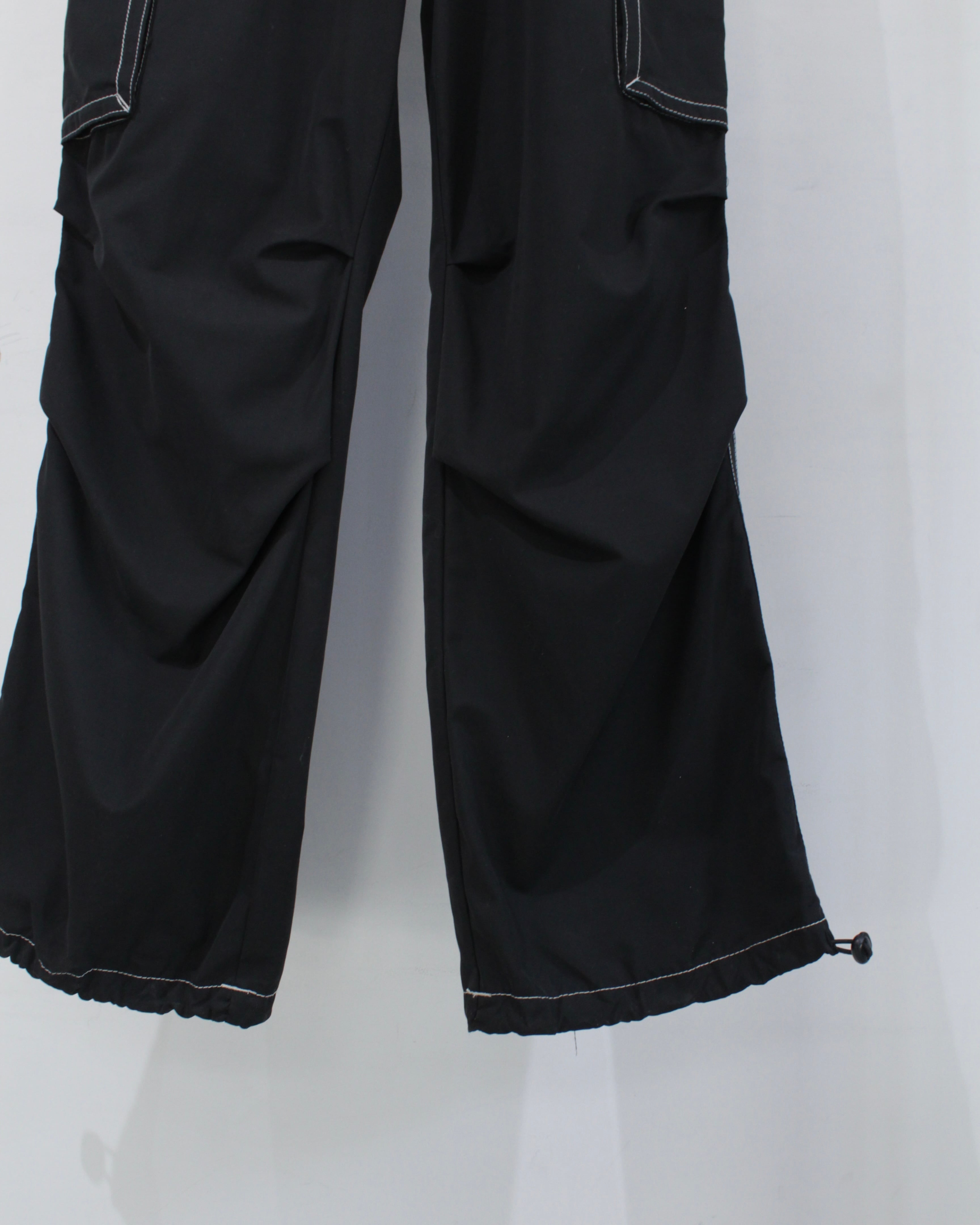 軽やかでしなやかなファブリックを採用し、見た目以上にストレスフリーな穿き心地。ウエストはドローコード付きのイージー仕様で、ラフに着用可能です。加えて裾にもドローコードを搭載し、シルエットの変化や溜まりを自在に調整できるギミックも魅力。