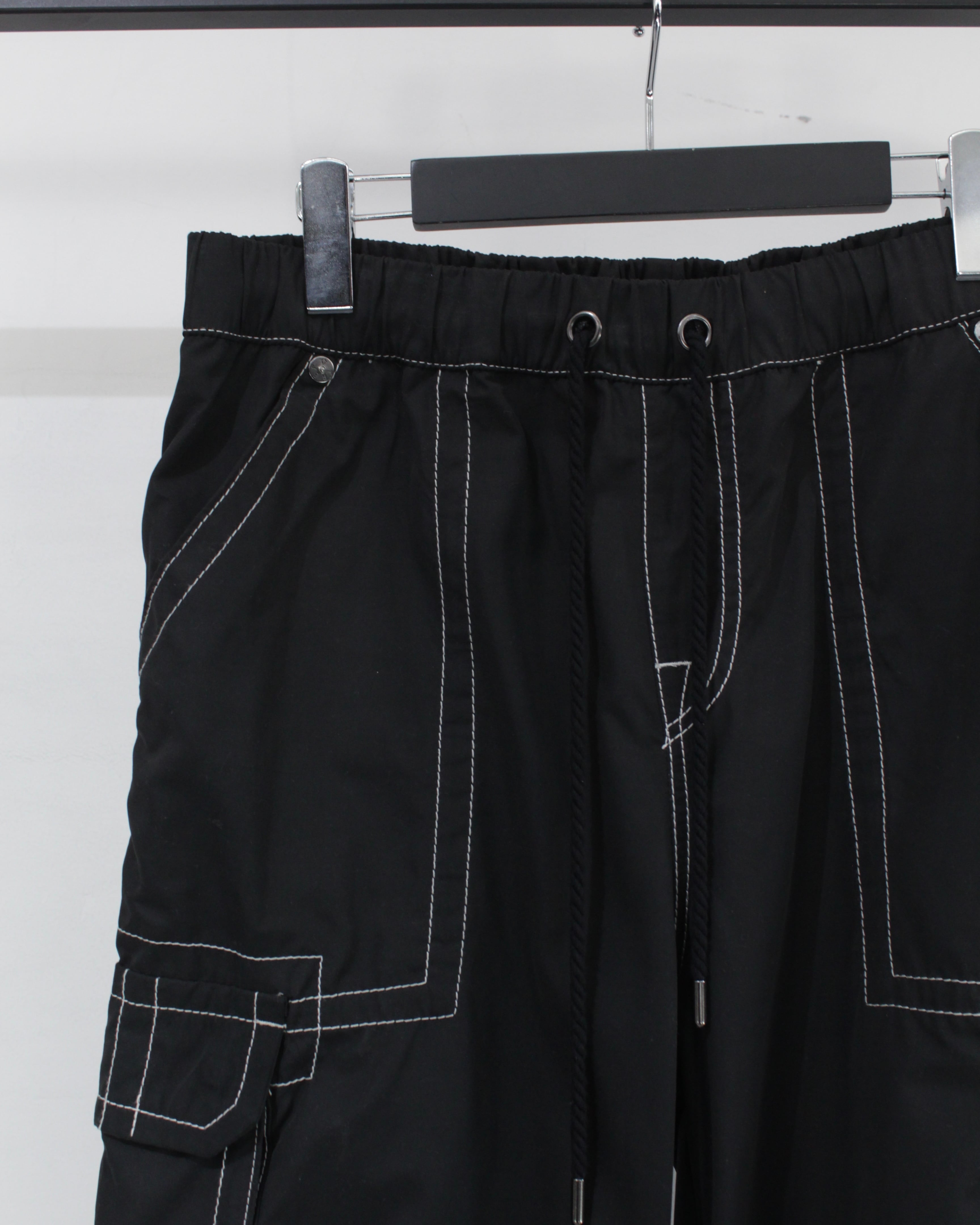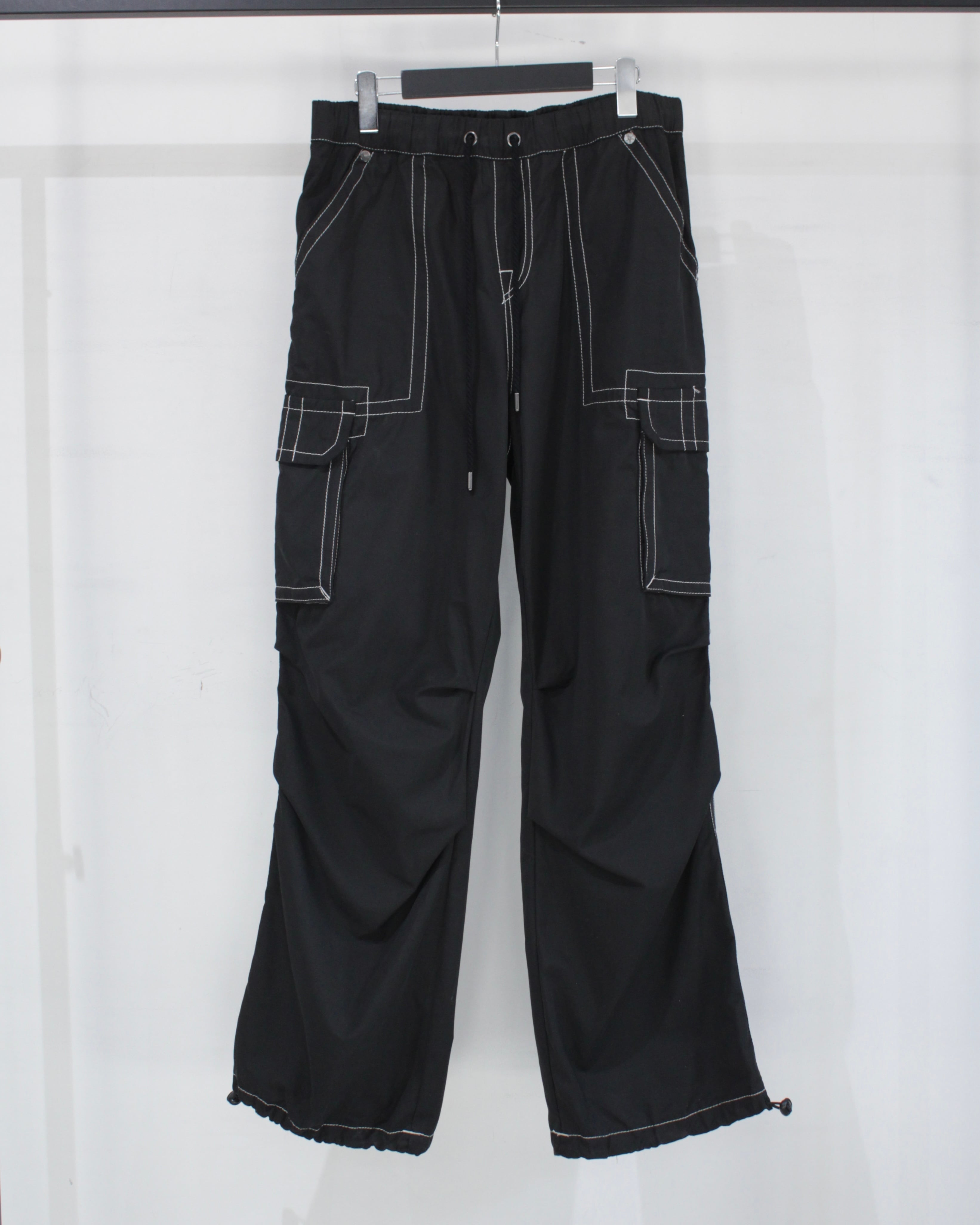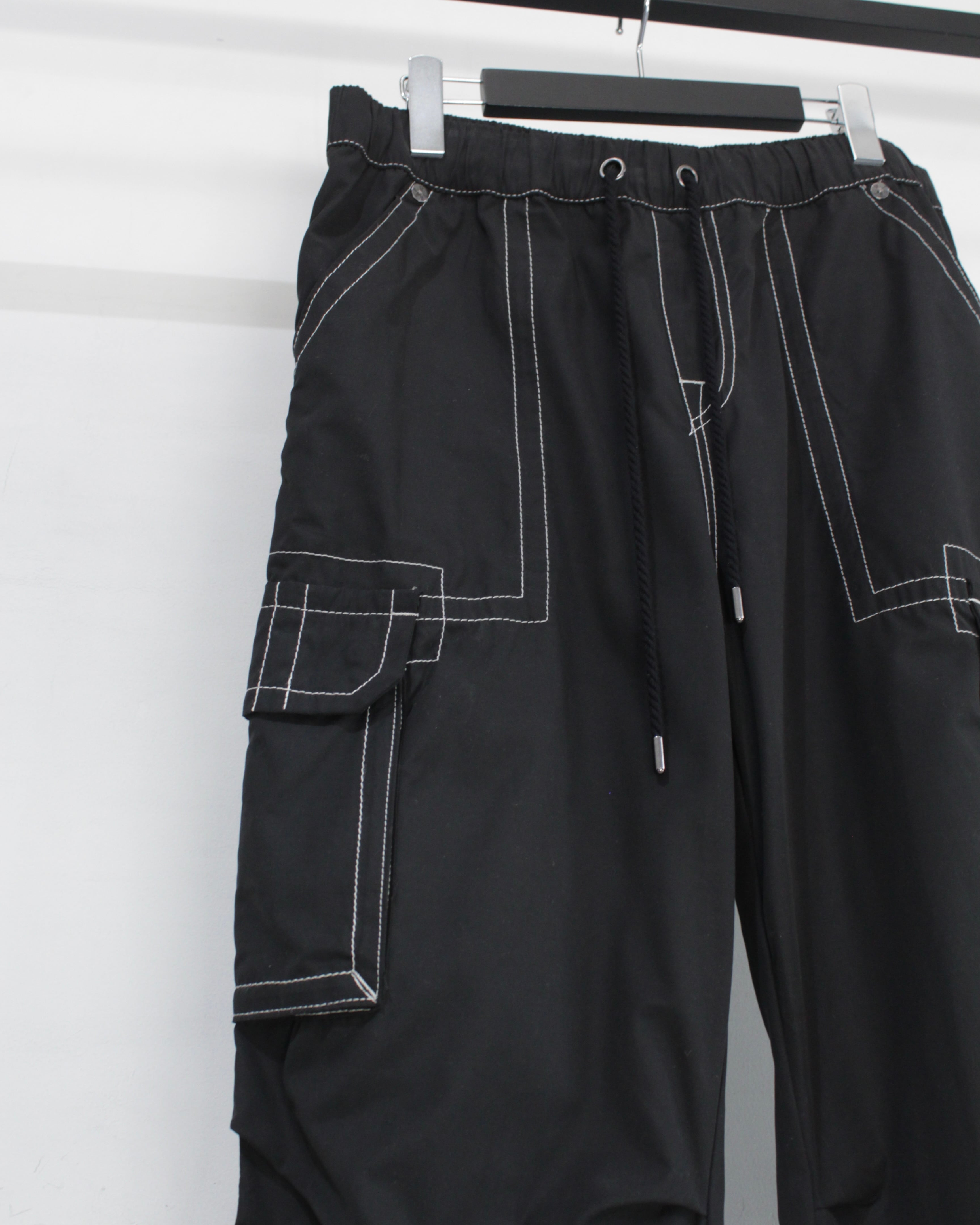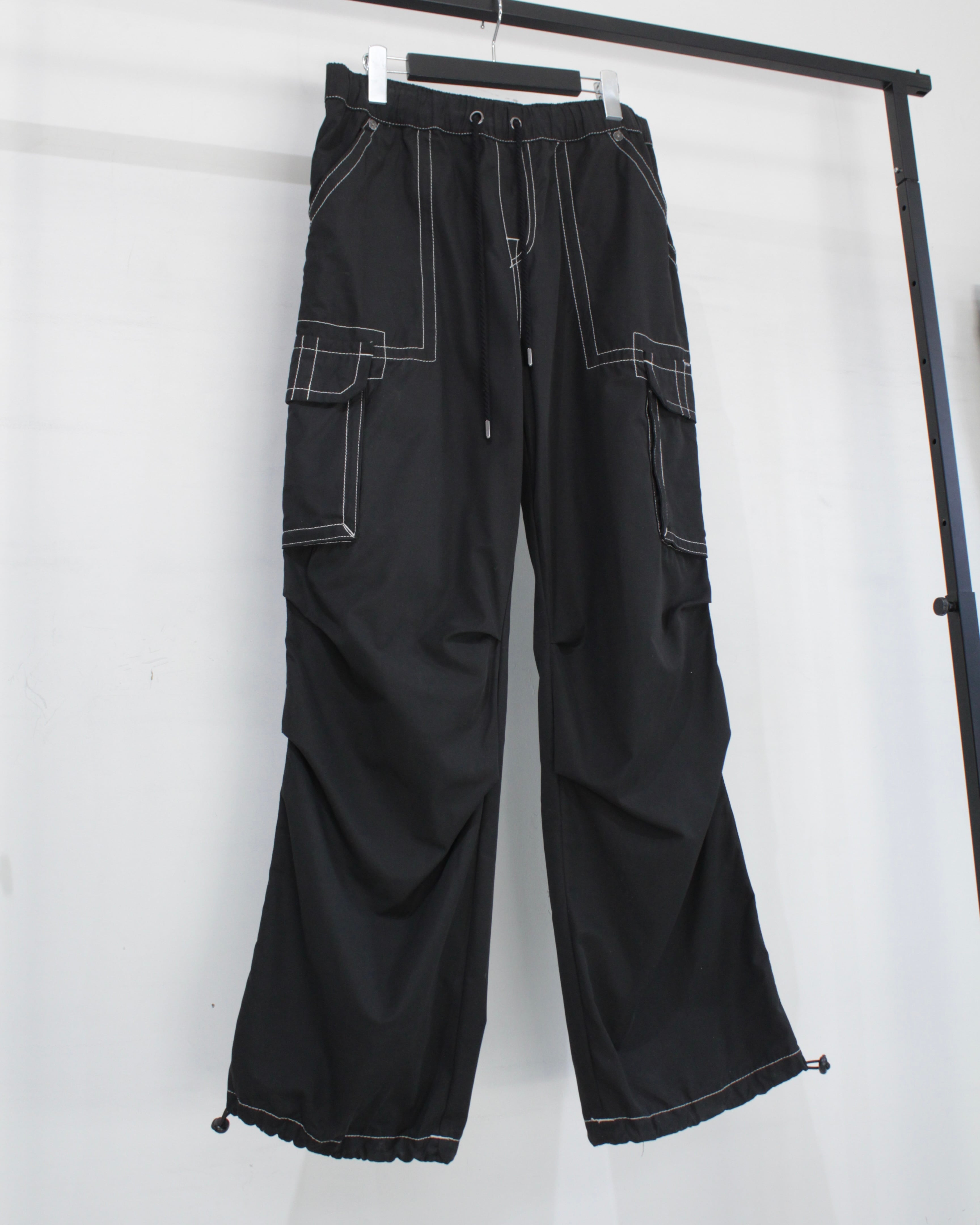 軽やかでしなやかなファブリックを採用し、見た目以上にストレスフリーな穿き心地。ウエストはドローコード付きのイージー仕様で、ラフに着用可能です。加えて裾にもドローコードを搭載し、シルエットの変化や溜まりを自在に調整できるギミックも魅力。