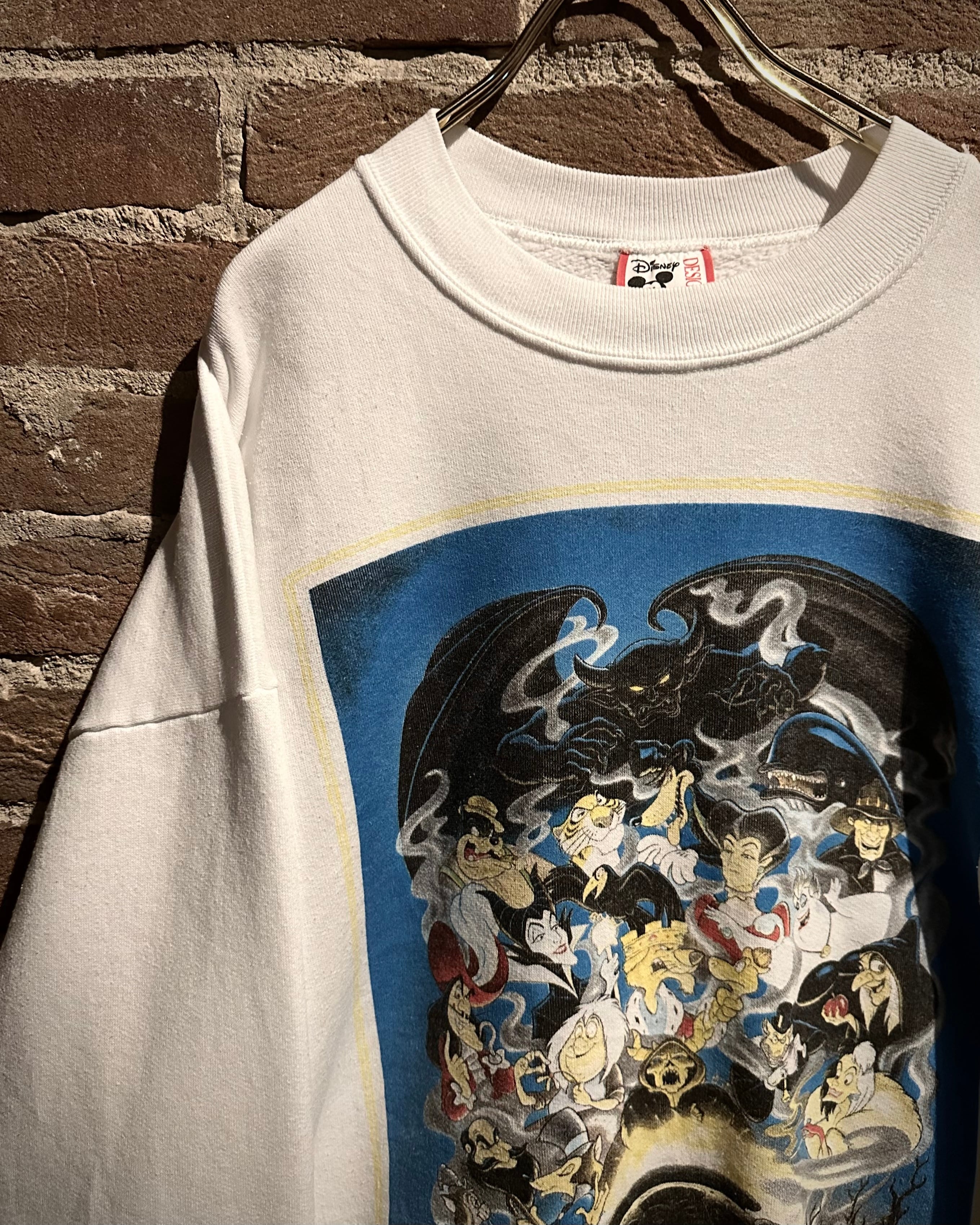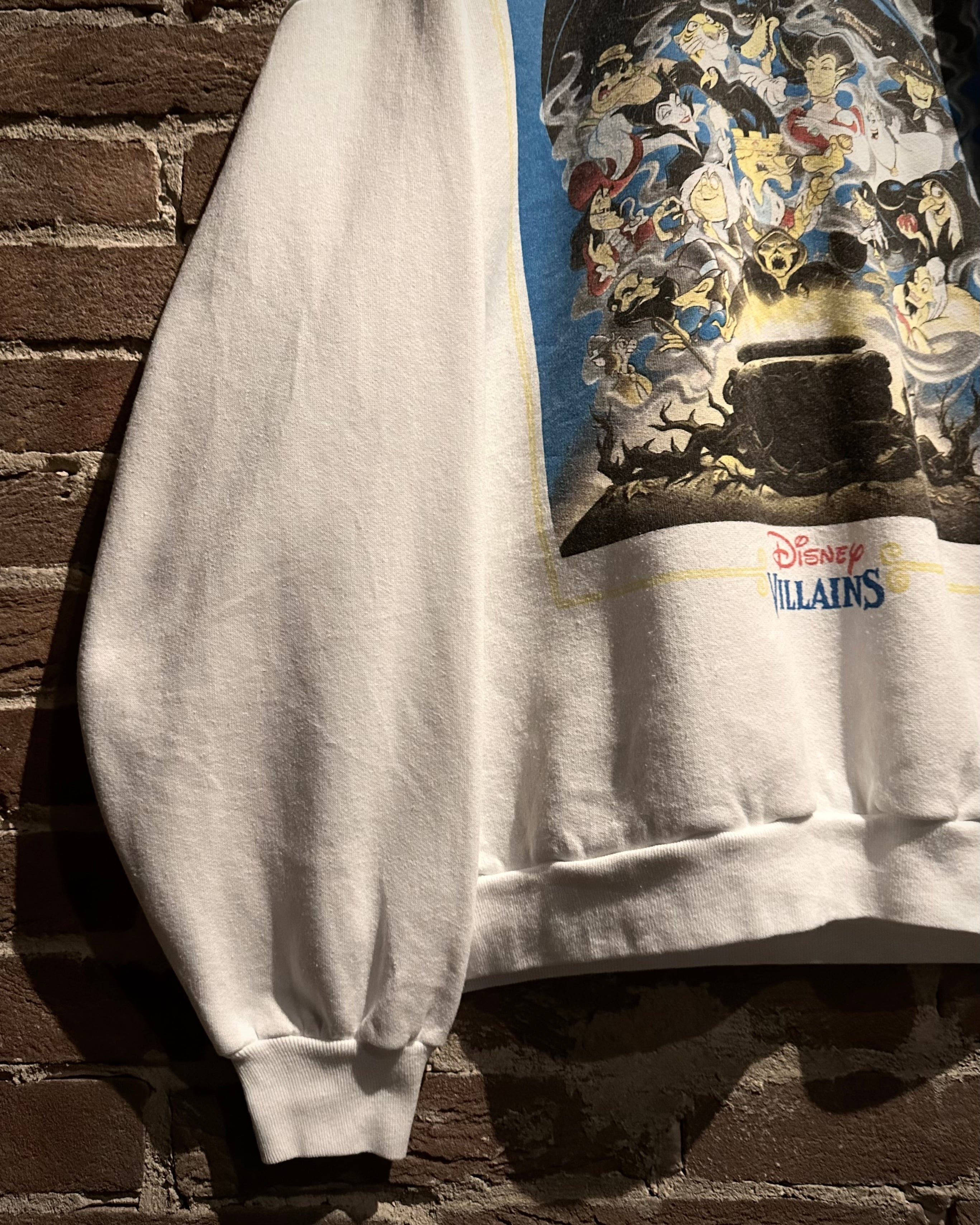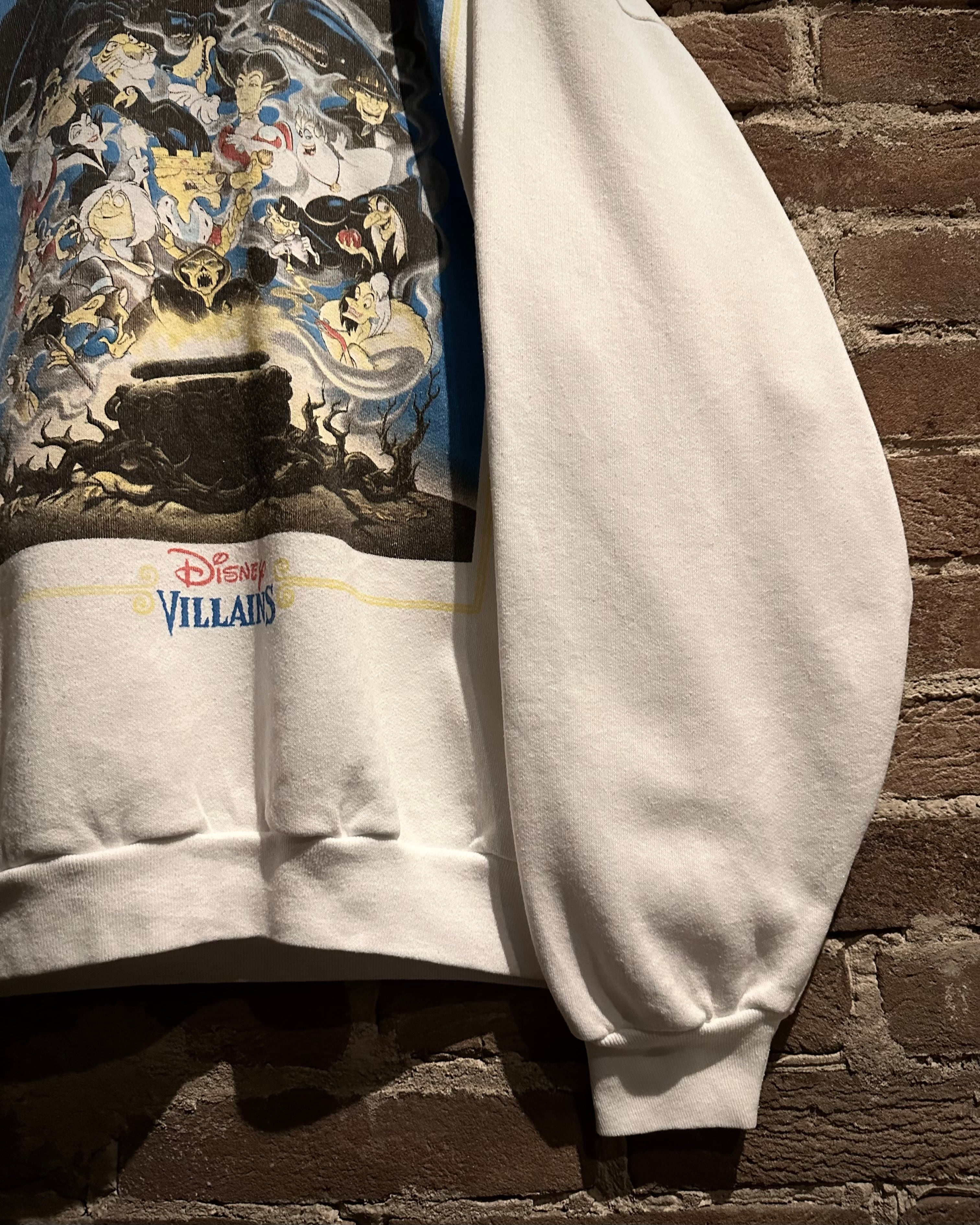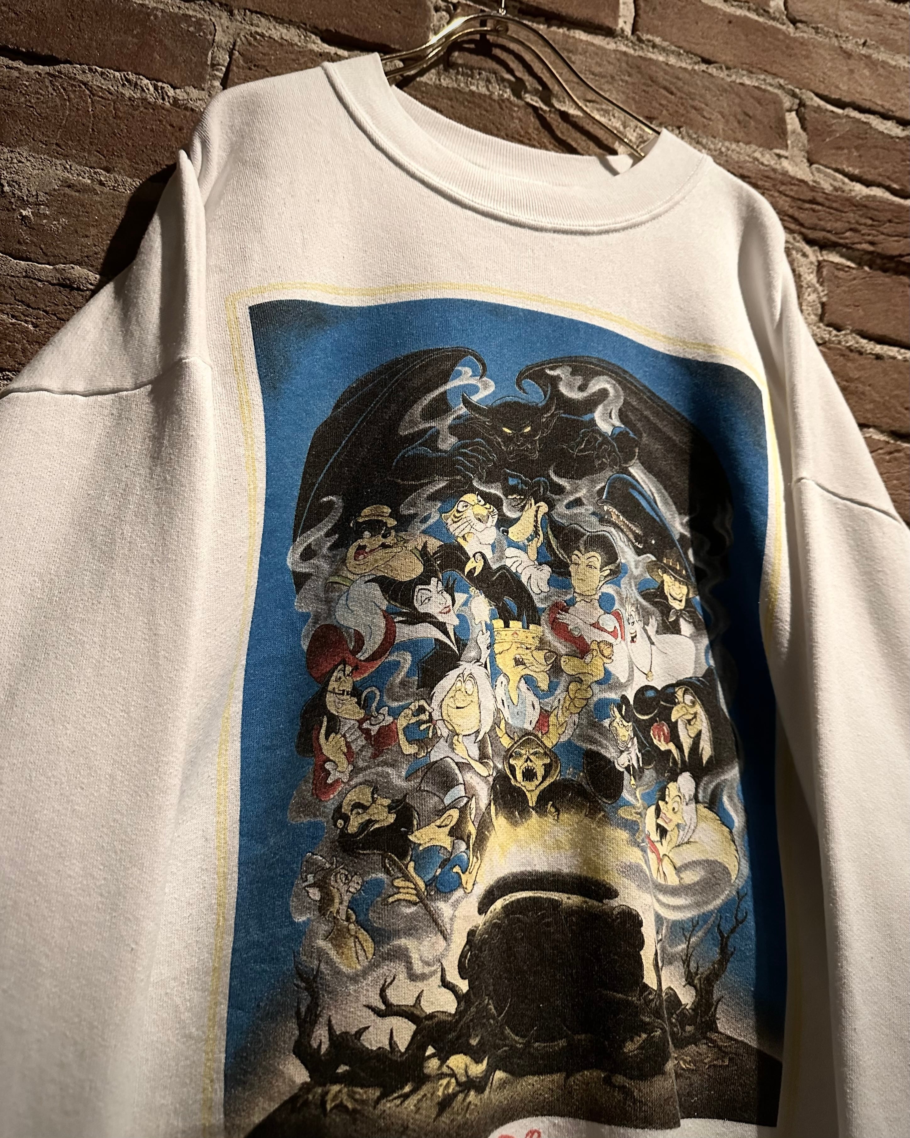 ホワイトのボディをベースに、フロントには様々な物語のヴィランたちを載せたスウェット。ヴィランモチーフ自体が珍しく、スウェットとなるとさらに希少な存在です。
