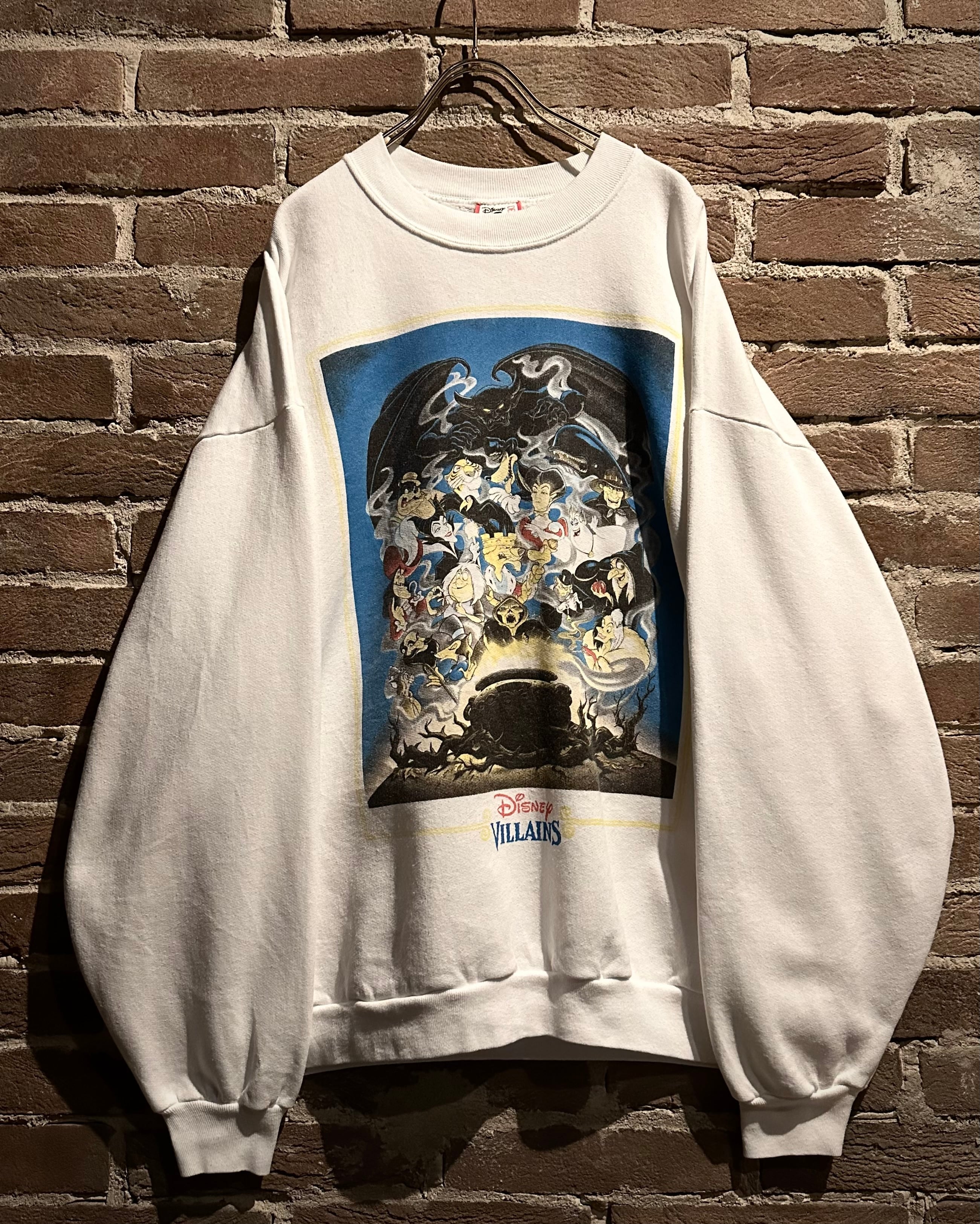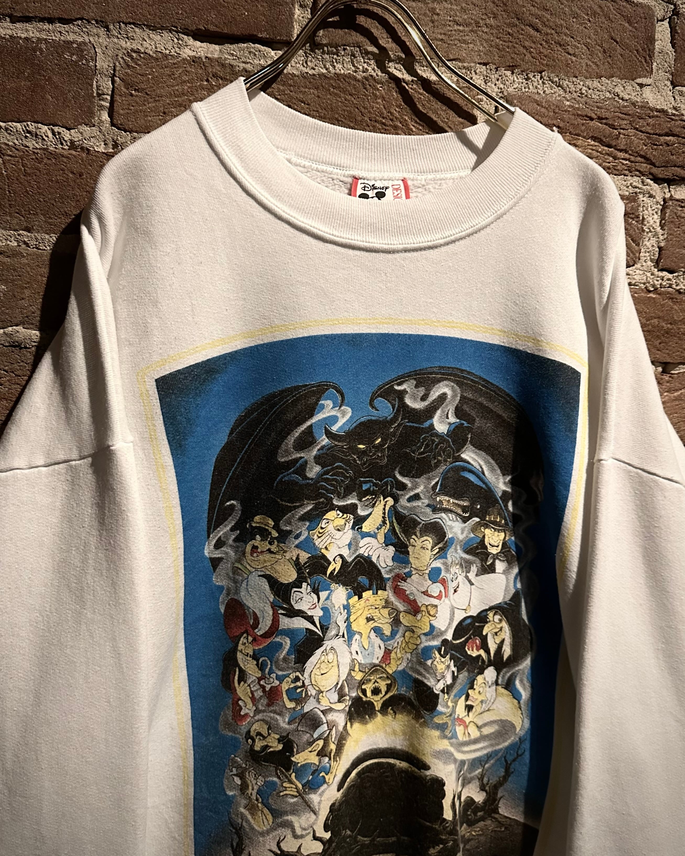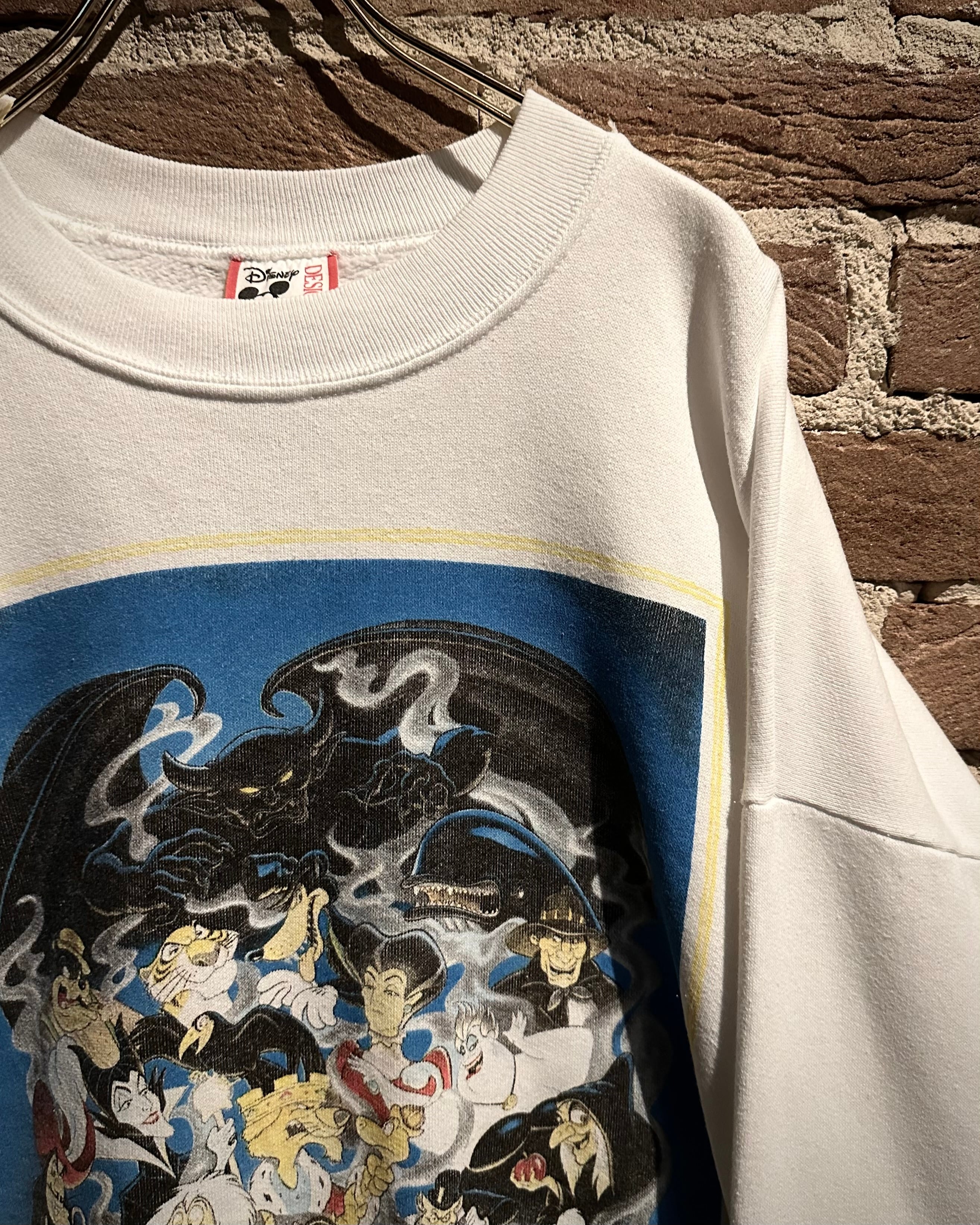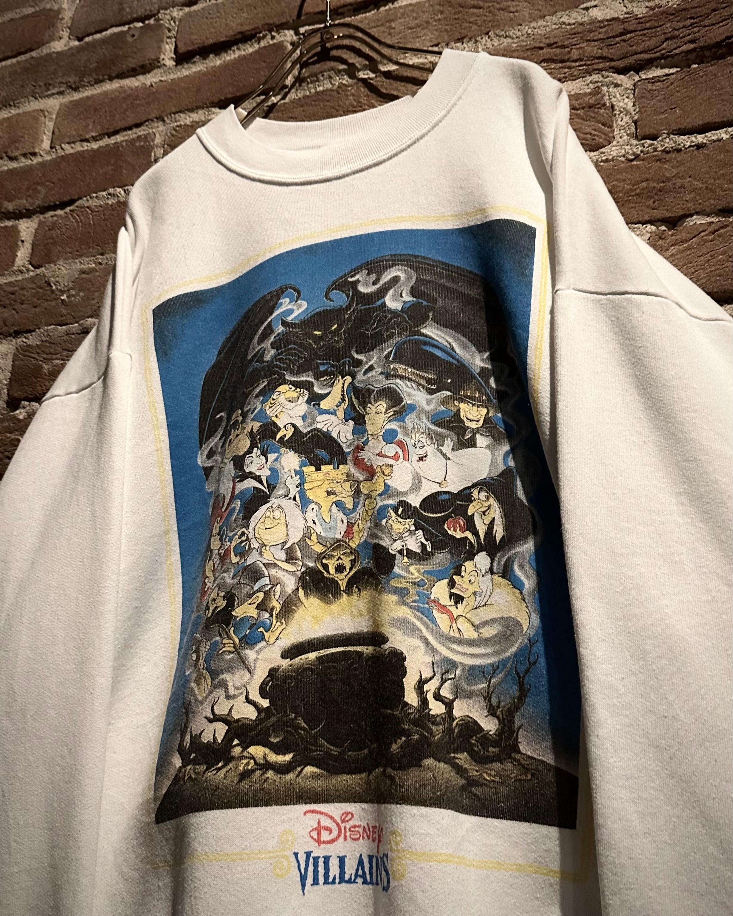 ホワイトのボディをベースに、フロントには様々な物語のヴィランたちを載せたスウェット。ヴィランモチーフ自体が珍しく、スウェットとなるとさらに希少な存在です。