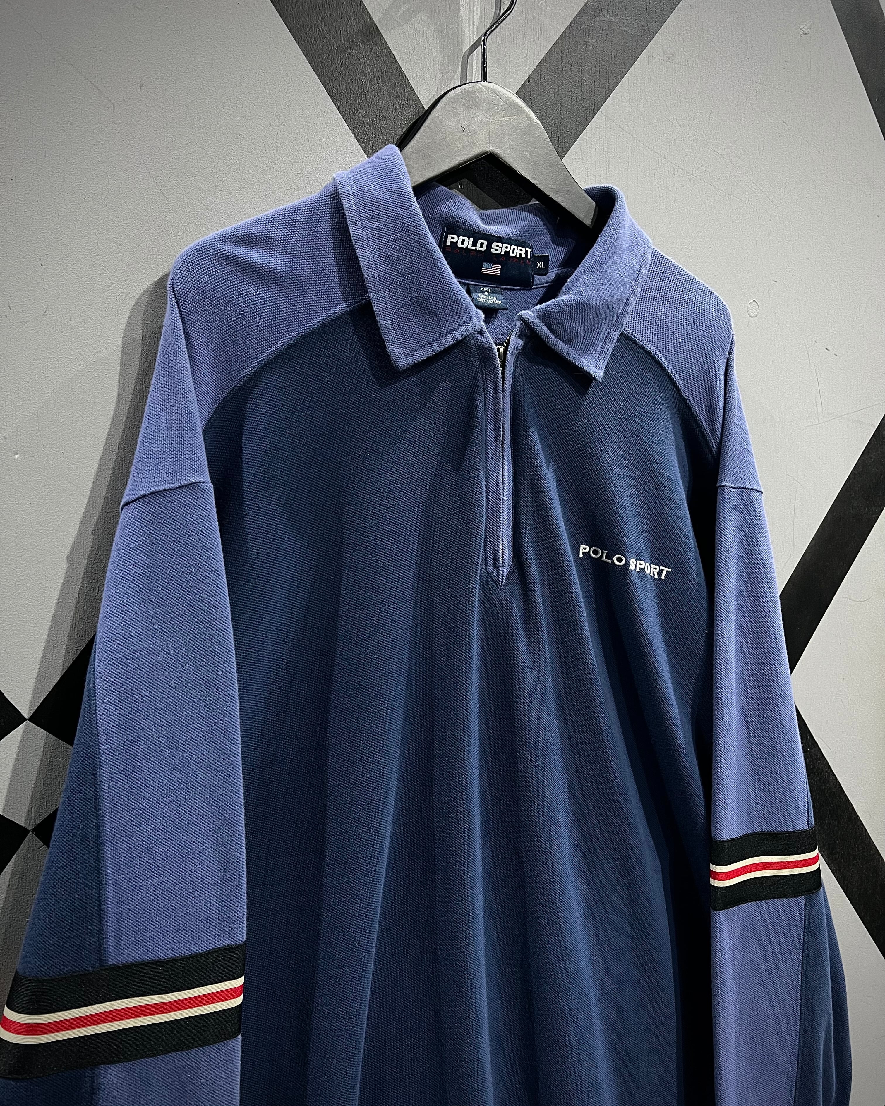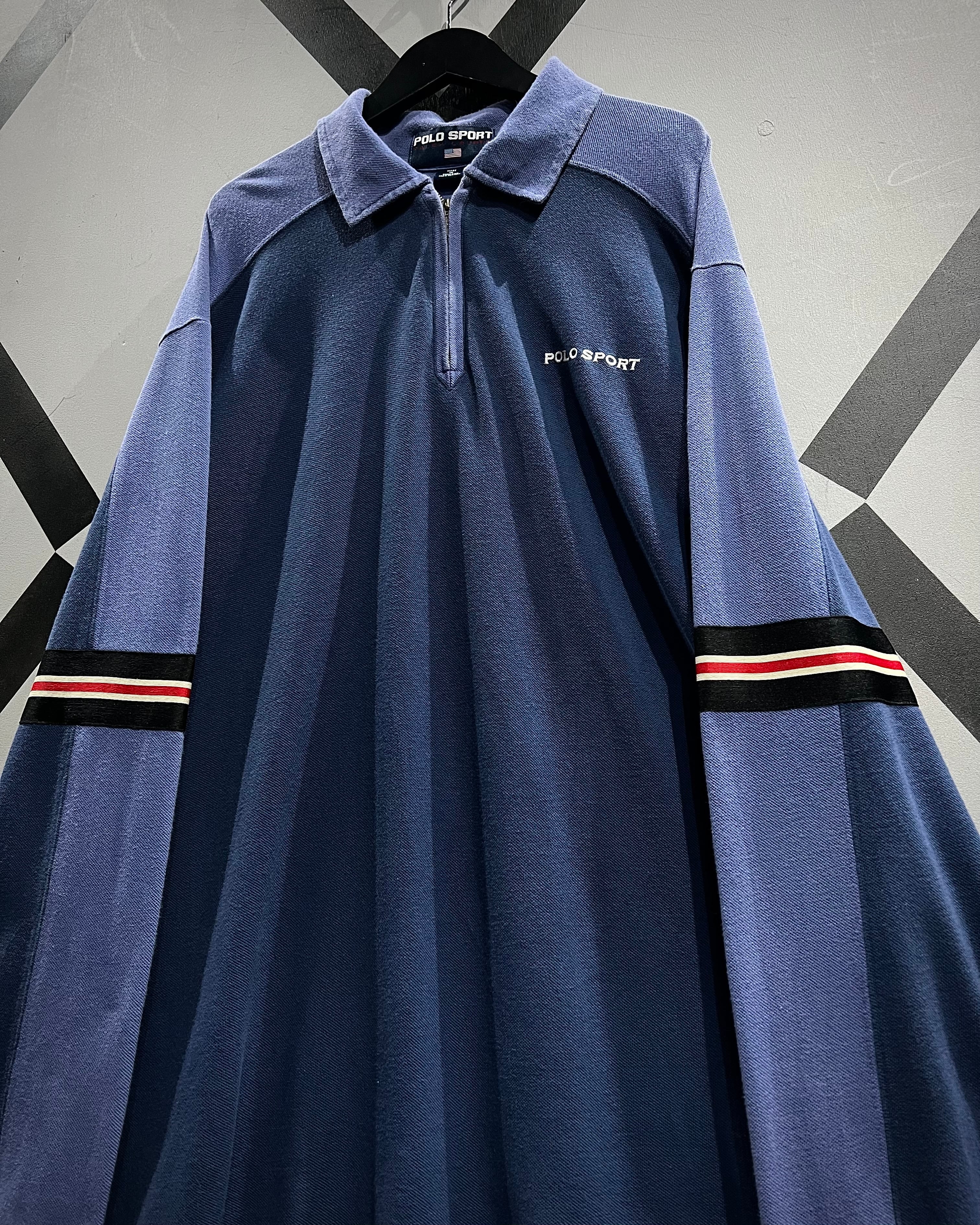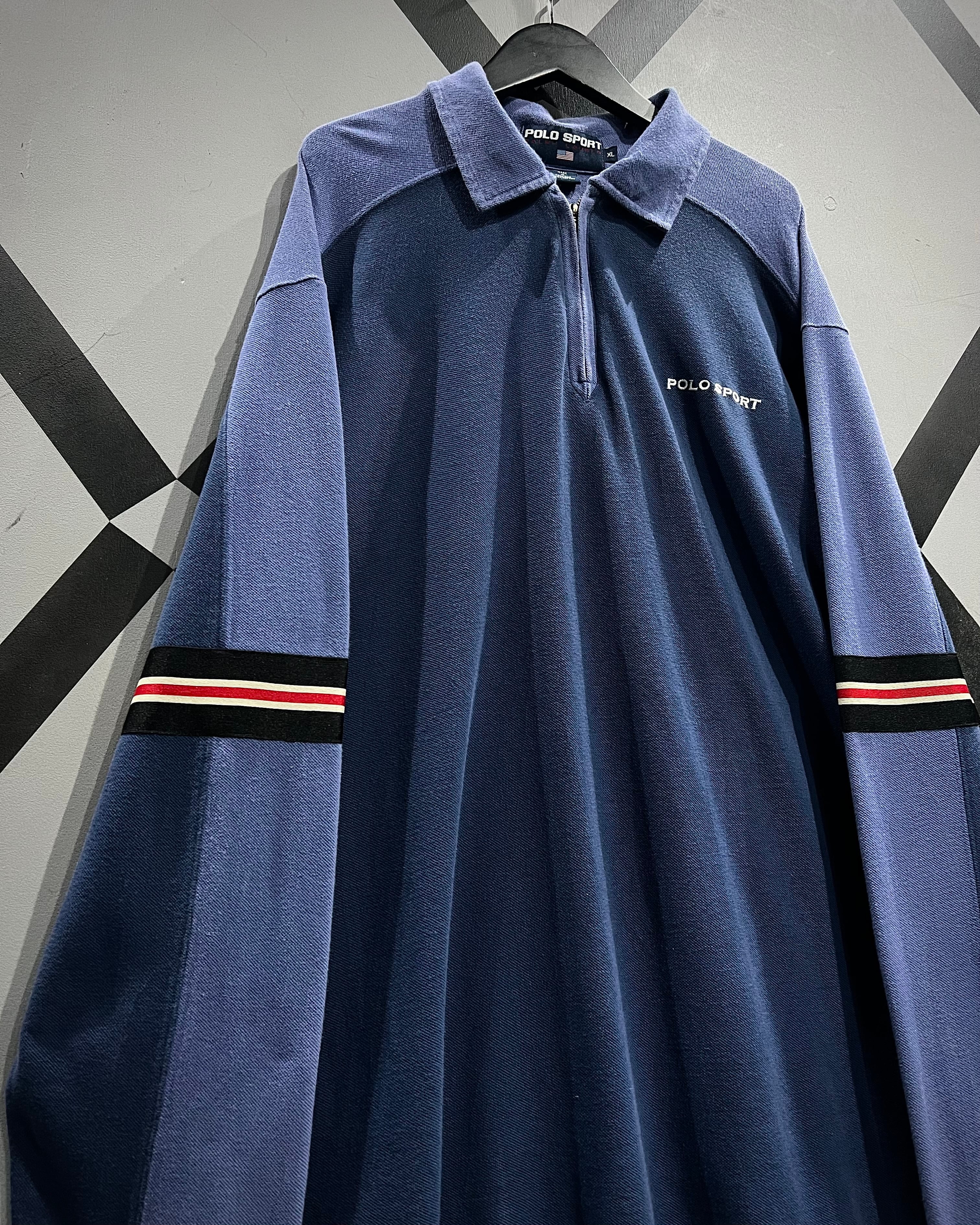 フロントはハーフジップ仕様にポロカラーを掛け合わせたデザインで、スポーティーながらどこか品のある佇まいに。胸元には“POLO SPORT”のロゴプリント、アームにはラインテープを走らせ、90’sらしいアクティブなアクセントをプラス。