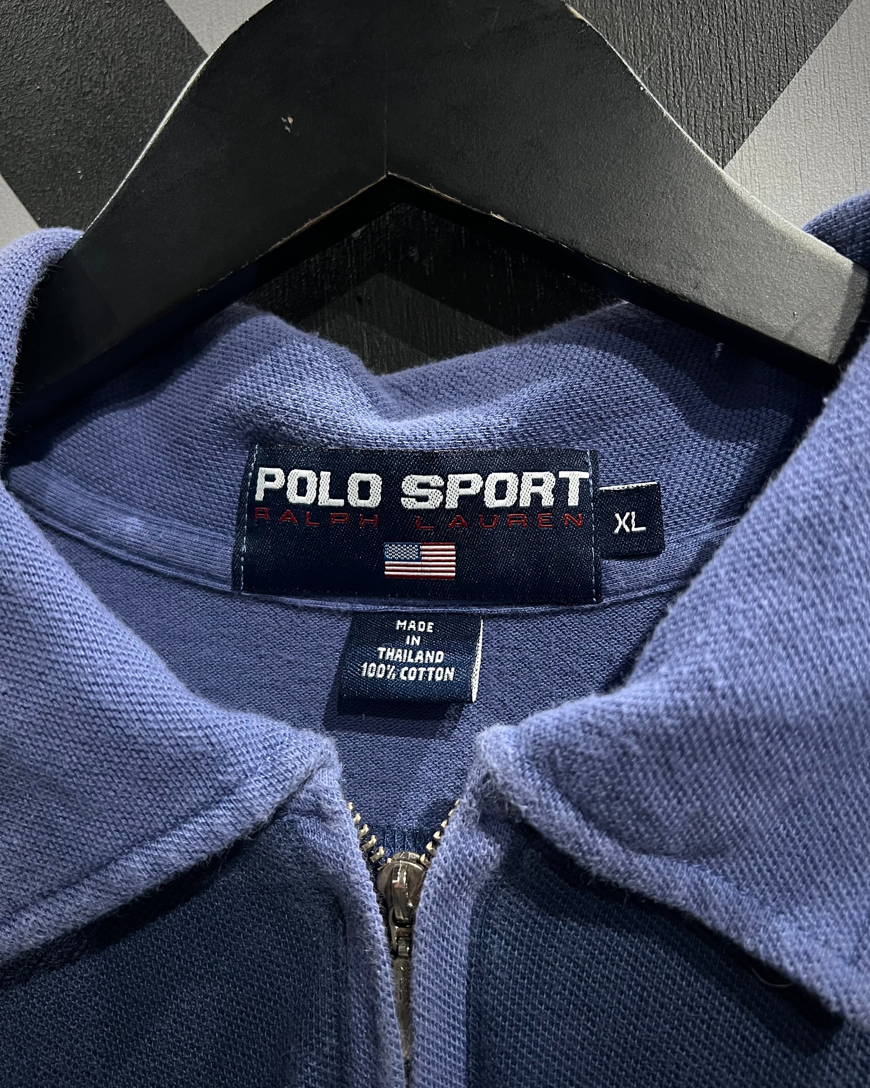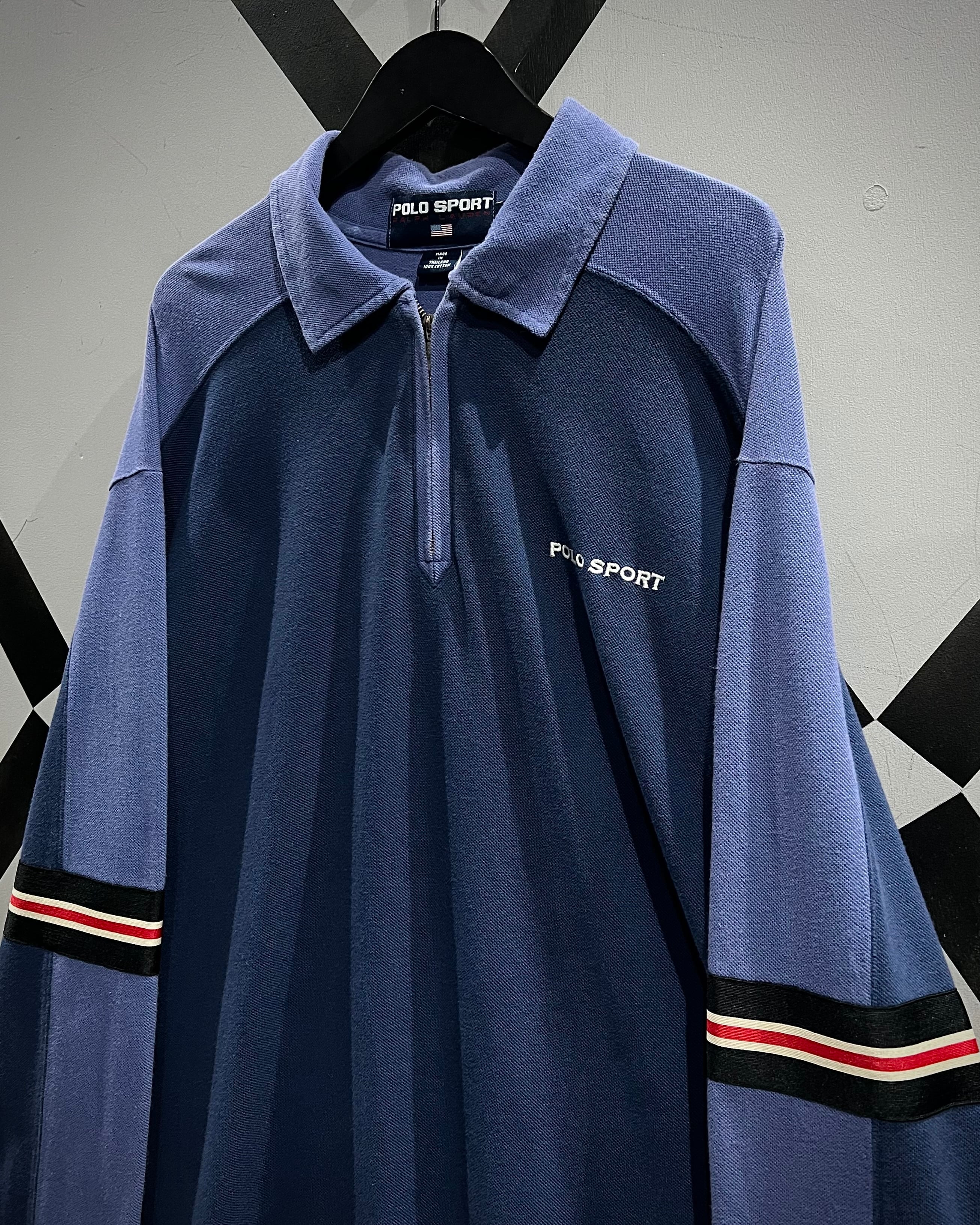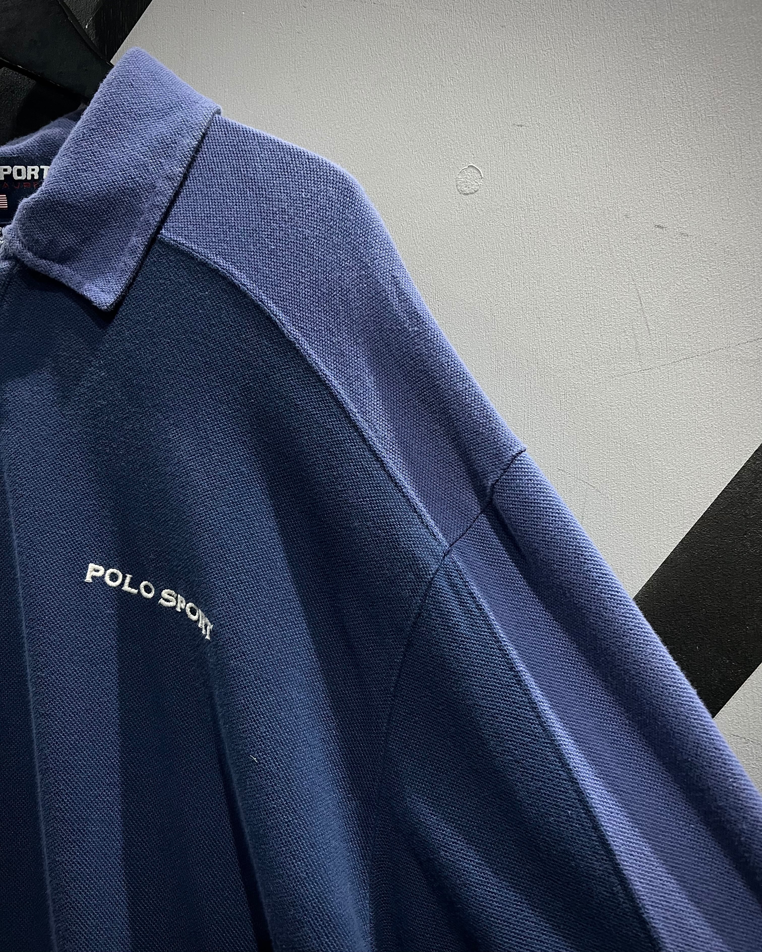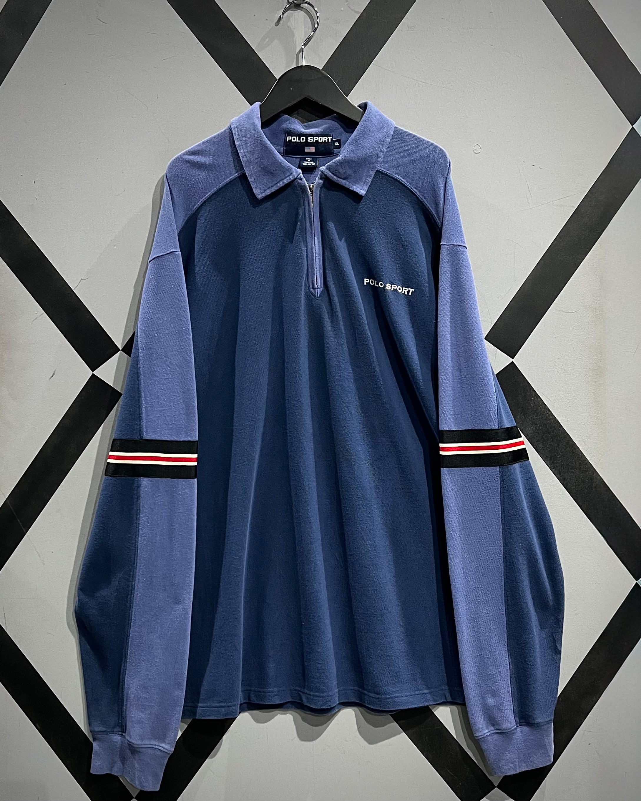 フロントはハーフジップ仕様にポロカラーを掛け合わせたデザインで、スポーティーながらどこか品のある佇まいに。胸元には“POLO SPORT”のロゴプリント、アームにはラインテープを走らせ、90’sらしいアクティブなアクセントをプラス。
