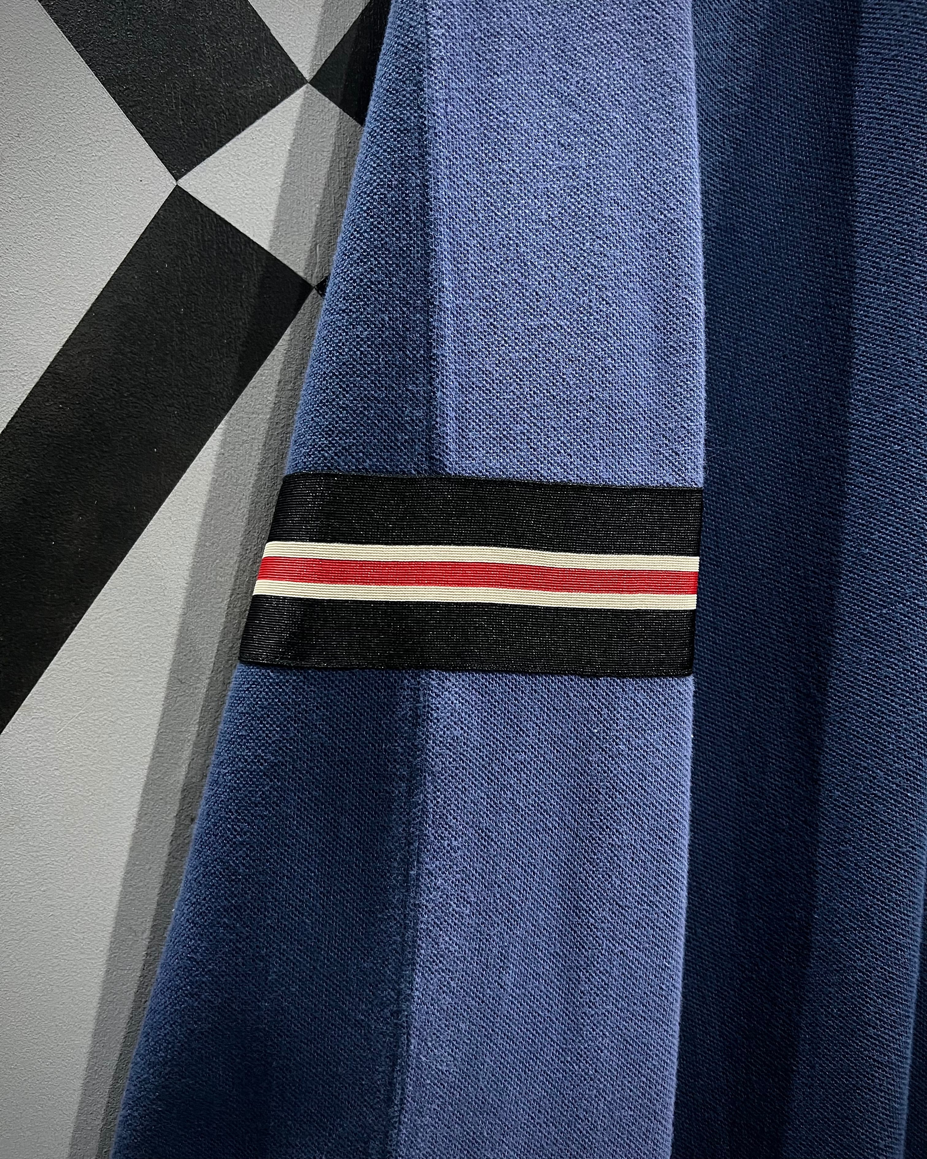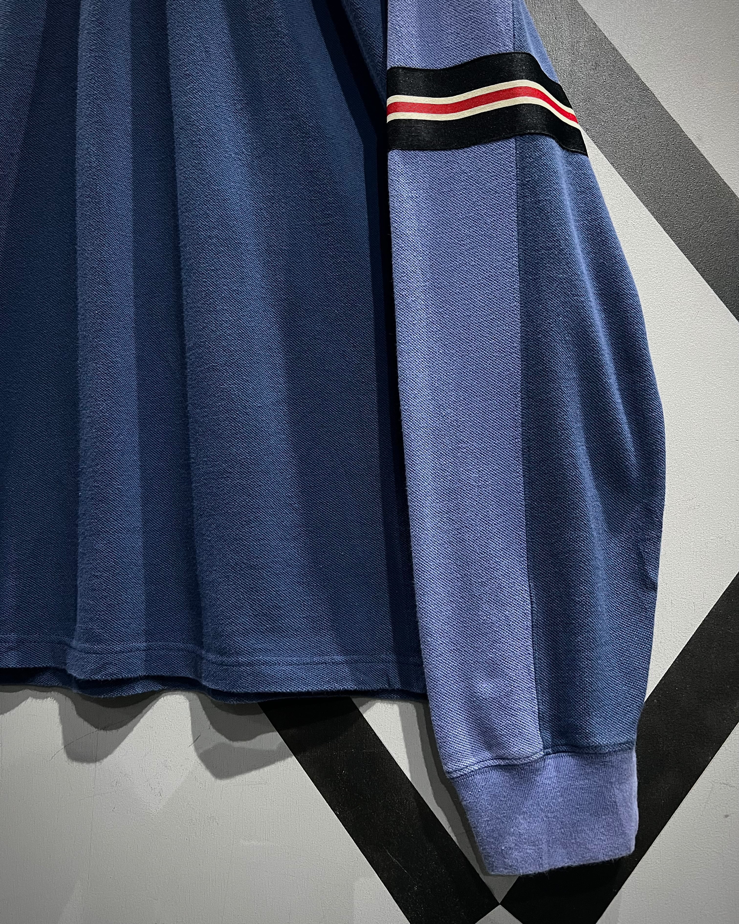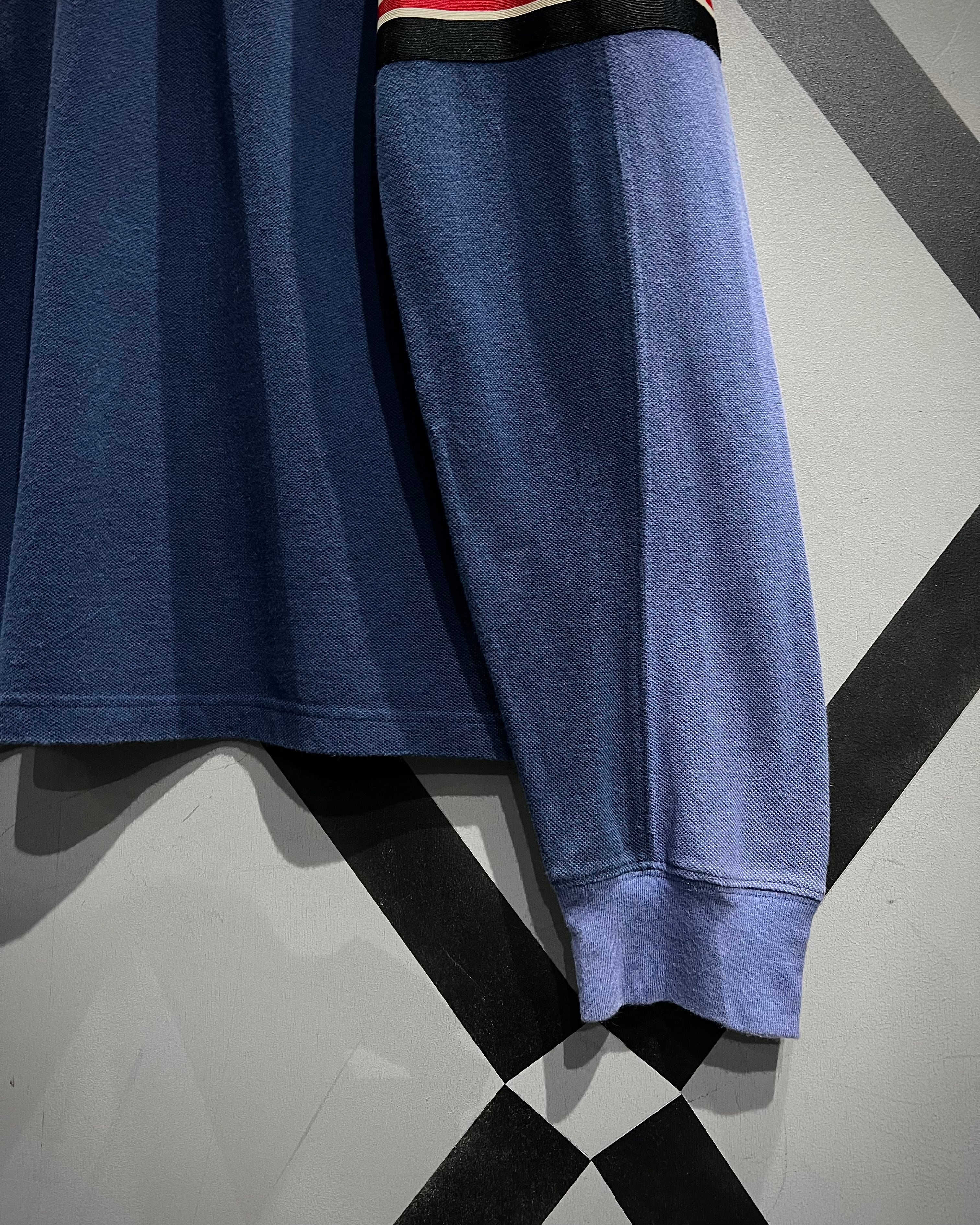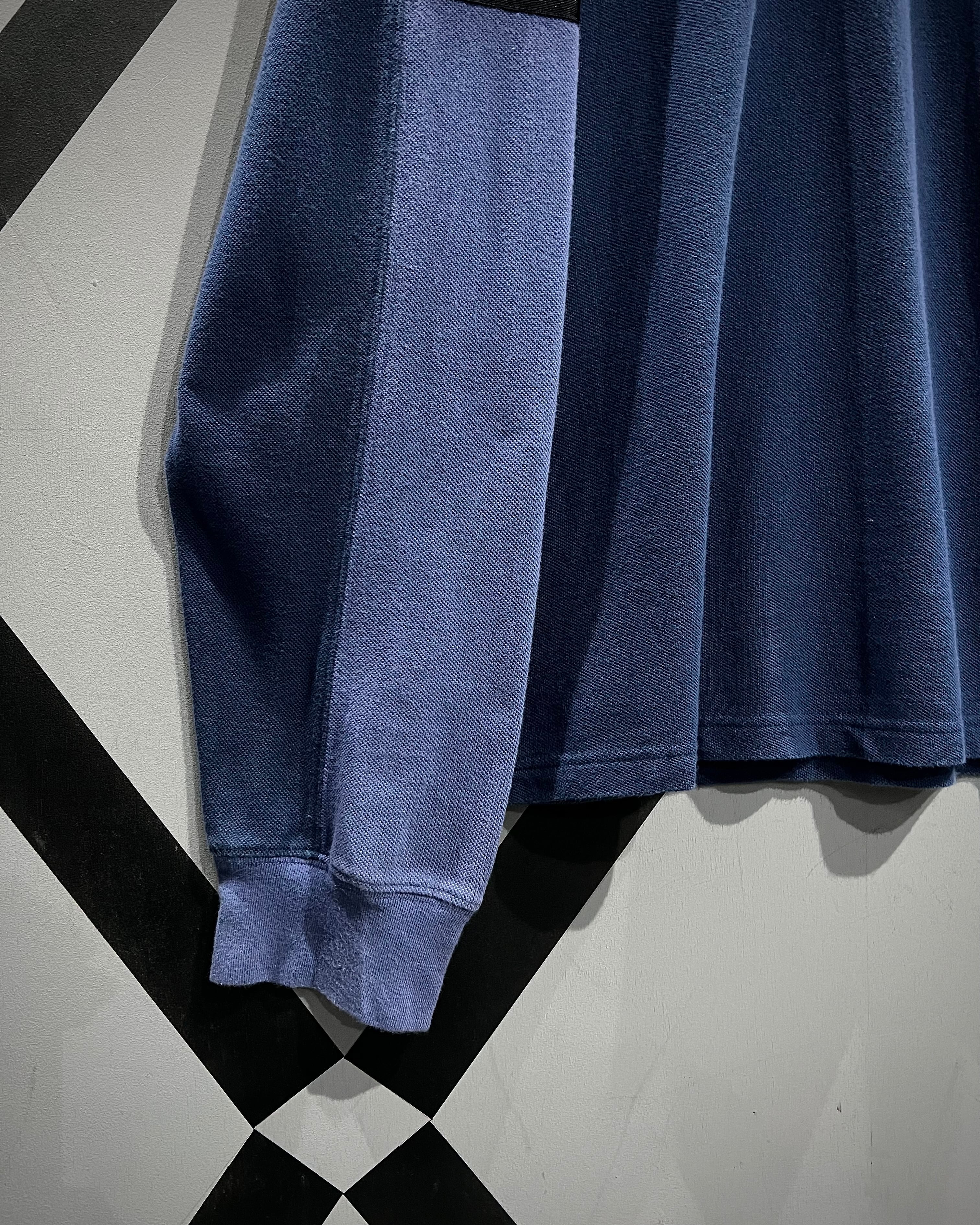 フェード感のあるネイビー〜ブルーのグラデーションのような色切り替えが特徴的で、シンプルながらも奥行きのあるルックスに仕上がった一着。鹿の子編みのコットンボディは程よく肉感があり、タフさと軽やかさを両立したPOLOらしい安心感のあるファブリック。
