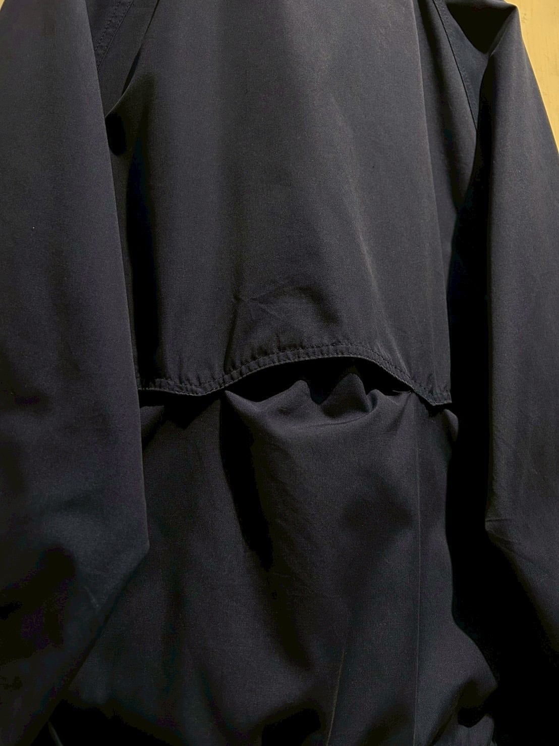 マットで程よくハリのあるボディに、ネイビーカラーが乗ることで、ミニマルながらも洗練された佇まいを演出。無駄を削ぎ落としたシンプルなルックスが、ブランドらしい実用美を感じさせる一着に仕上がっています。