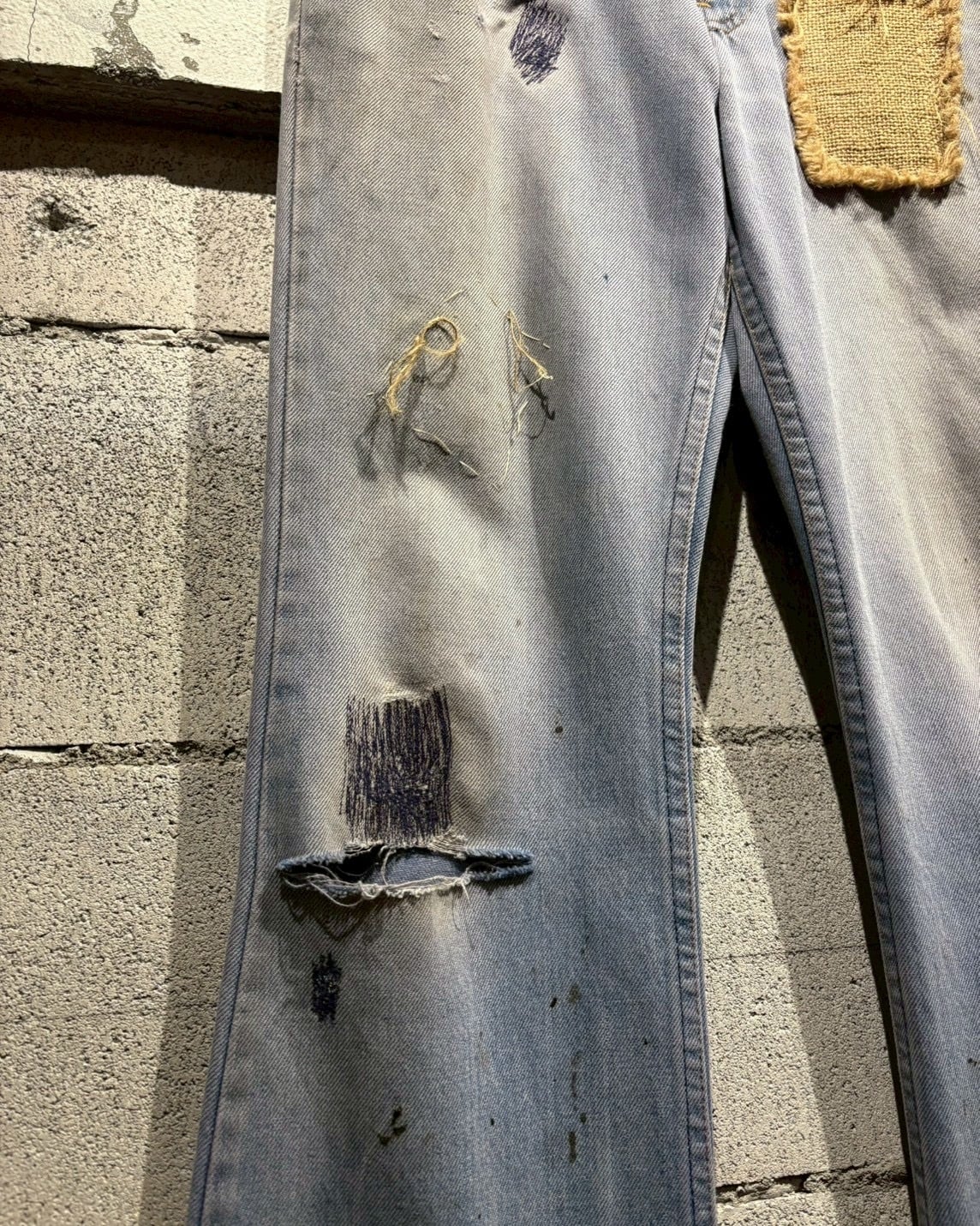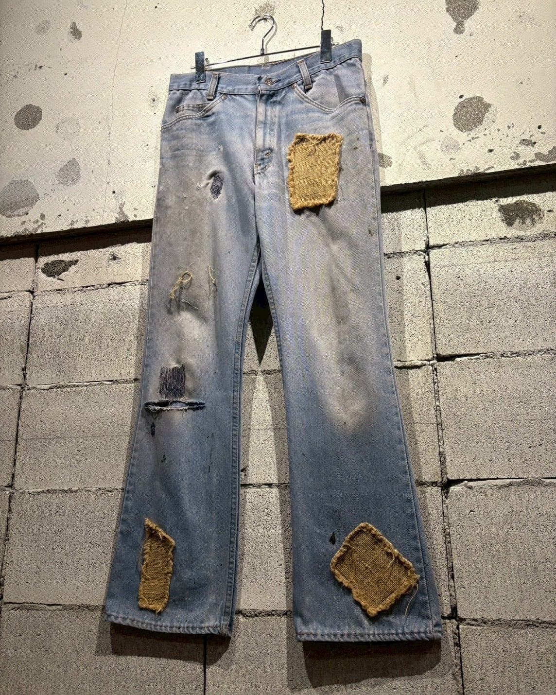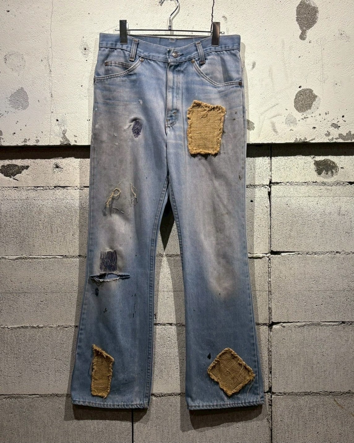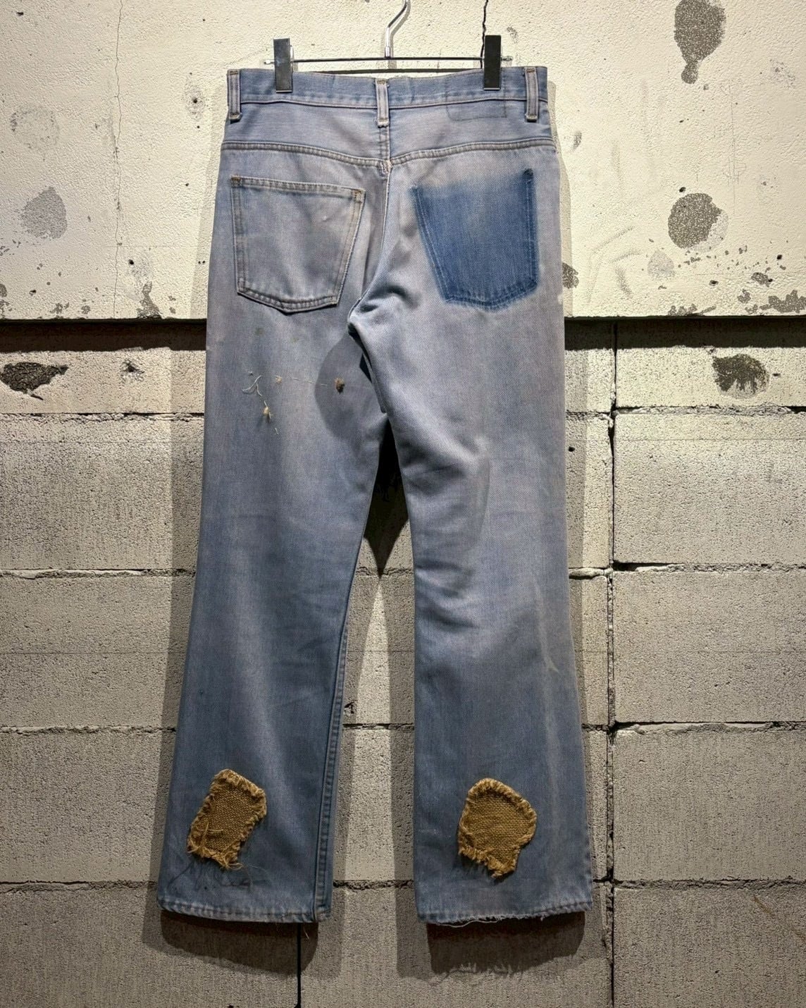 経年変化と、前所有者によるカスタムセンスが光る、70’sヴィンテージのフレアデニムパンツ。