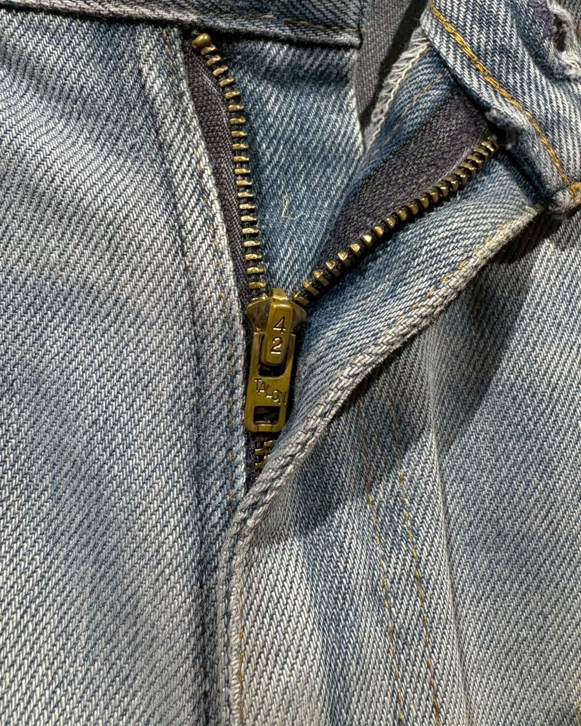 フェード感がしっかりと現れたデニム生地にダメージが重なり、計算では出せないヴィンテージ特有の雰囲気も◎ジップには42TALONを採用しており、年代背景を裏付けるディテールも魅力の一つです。