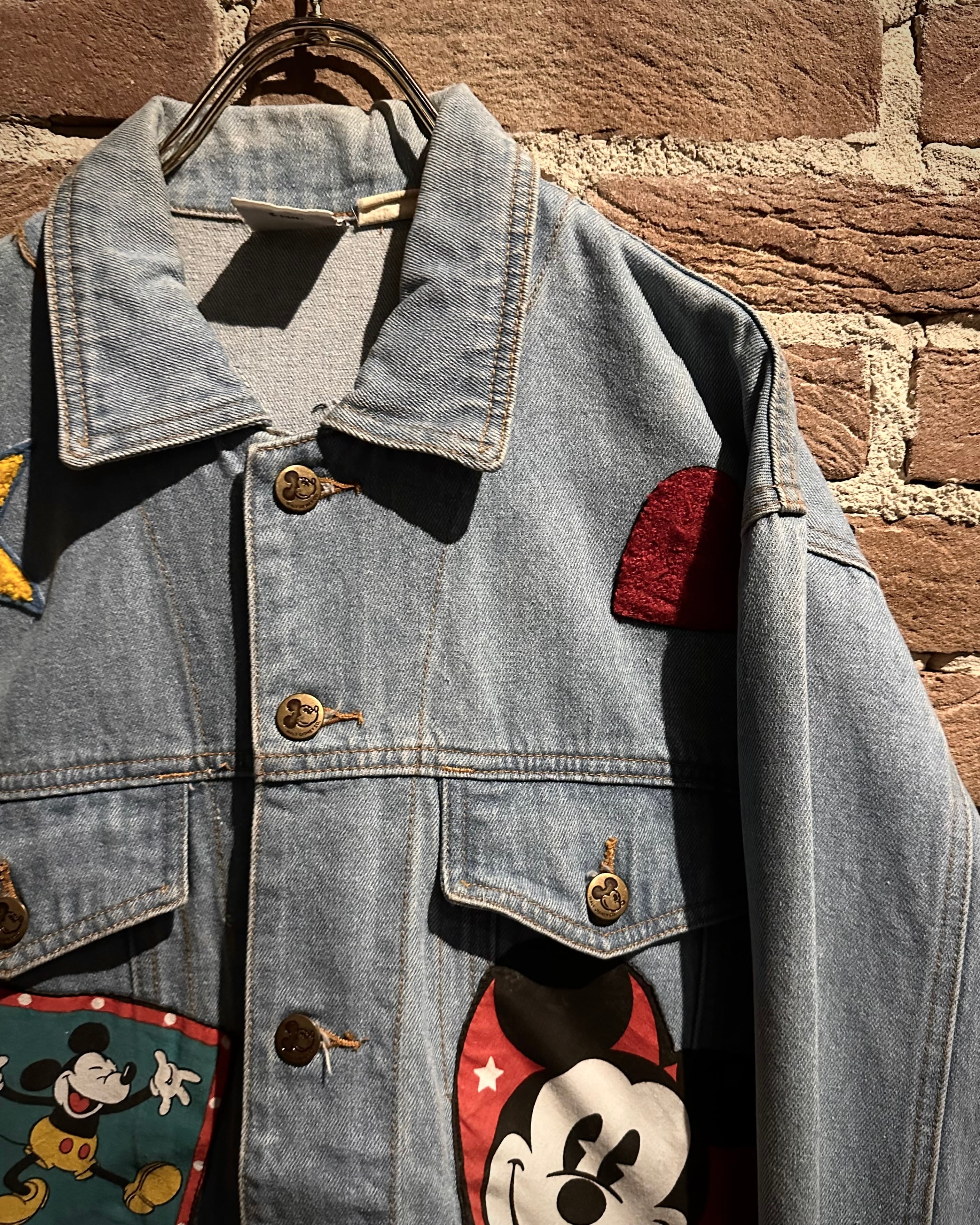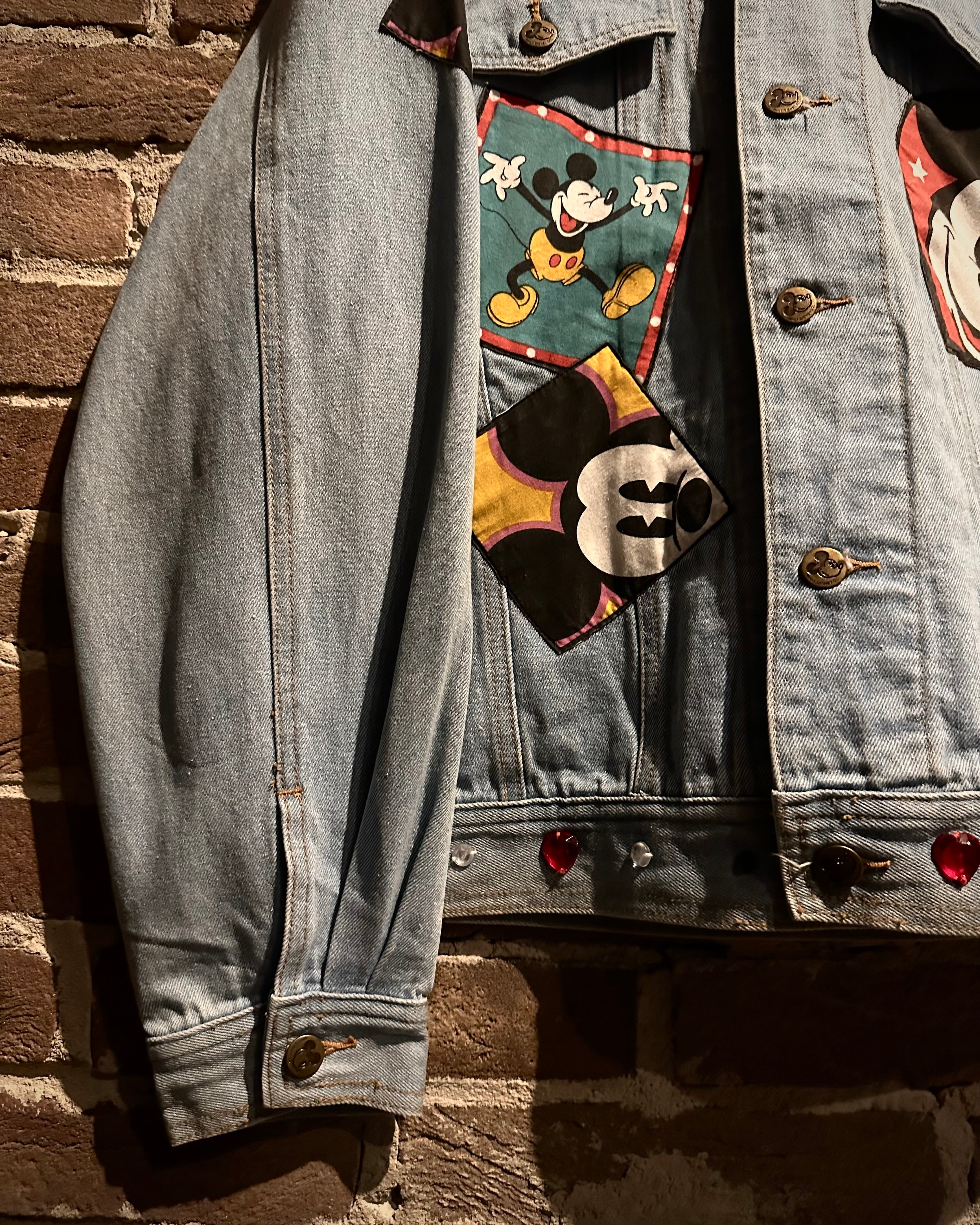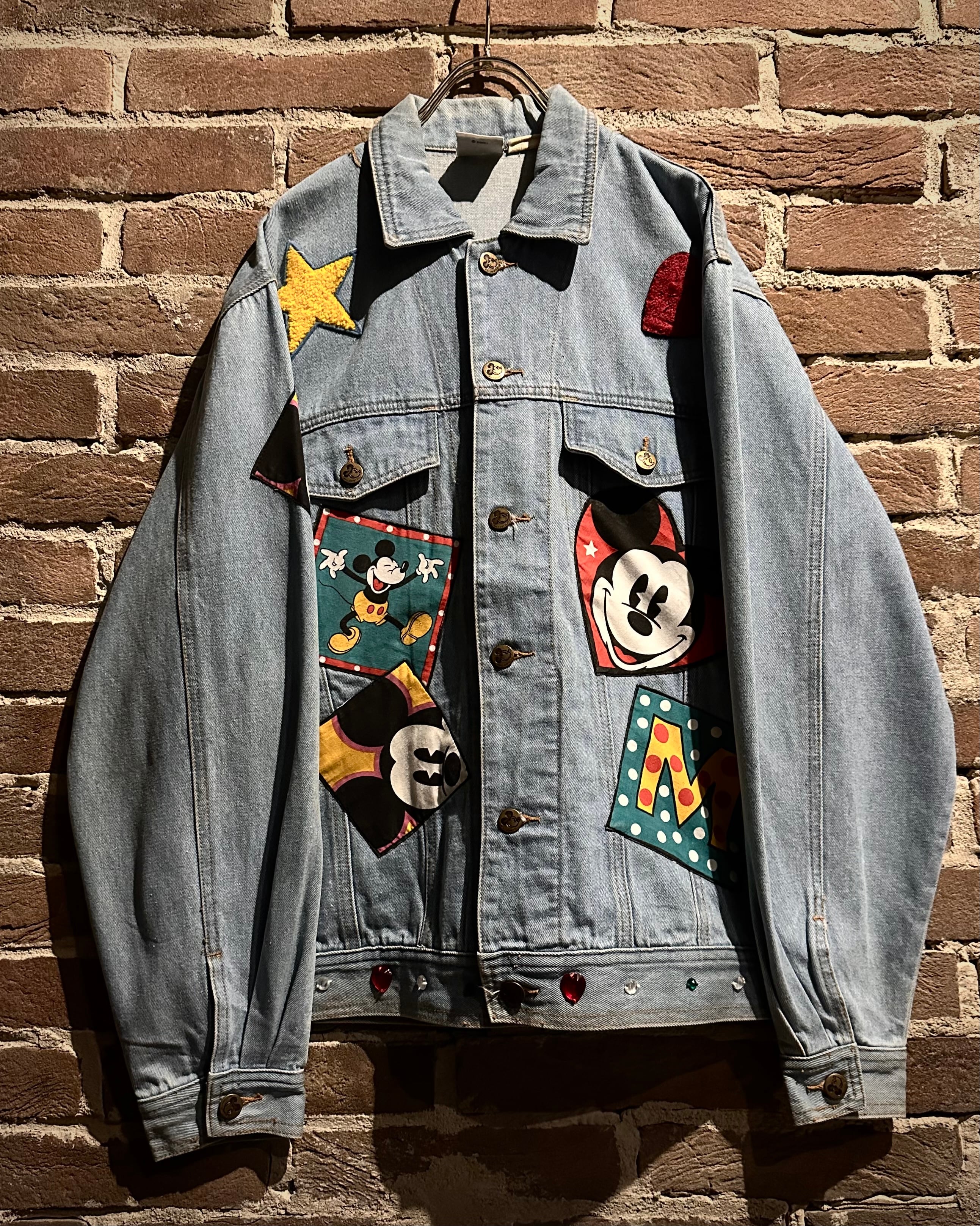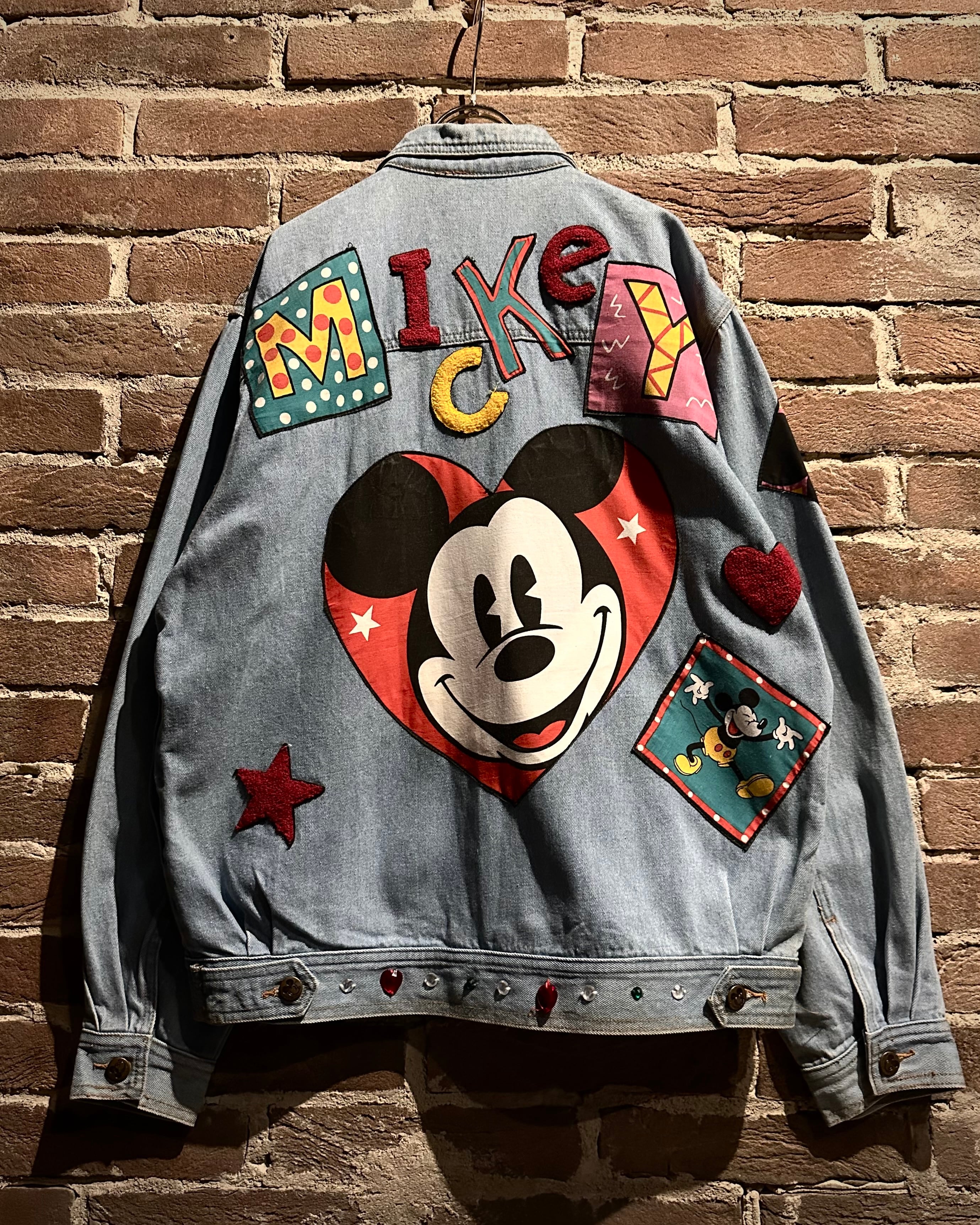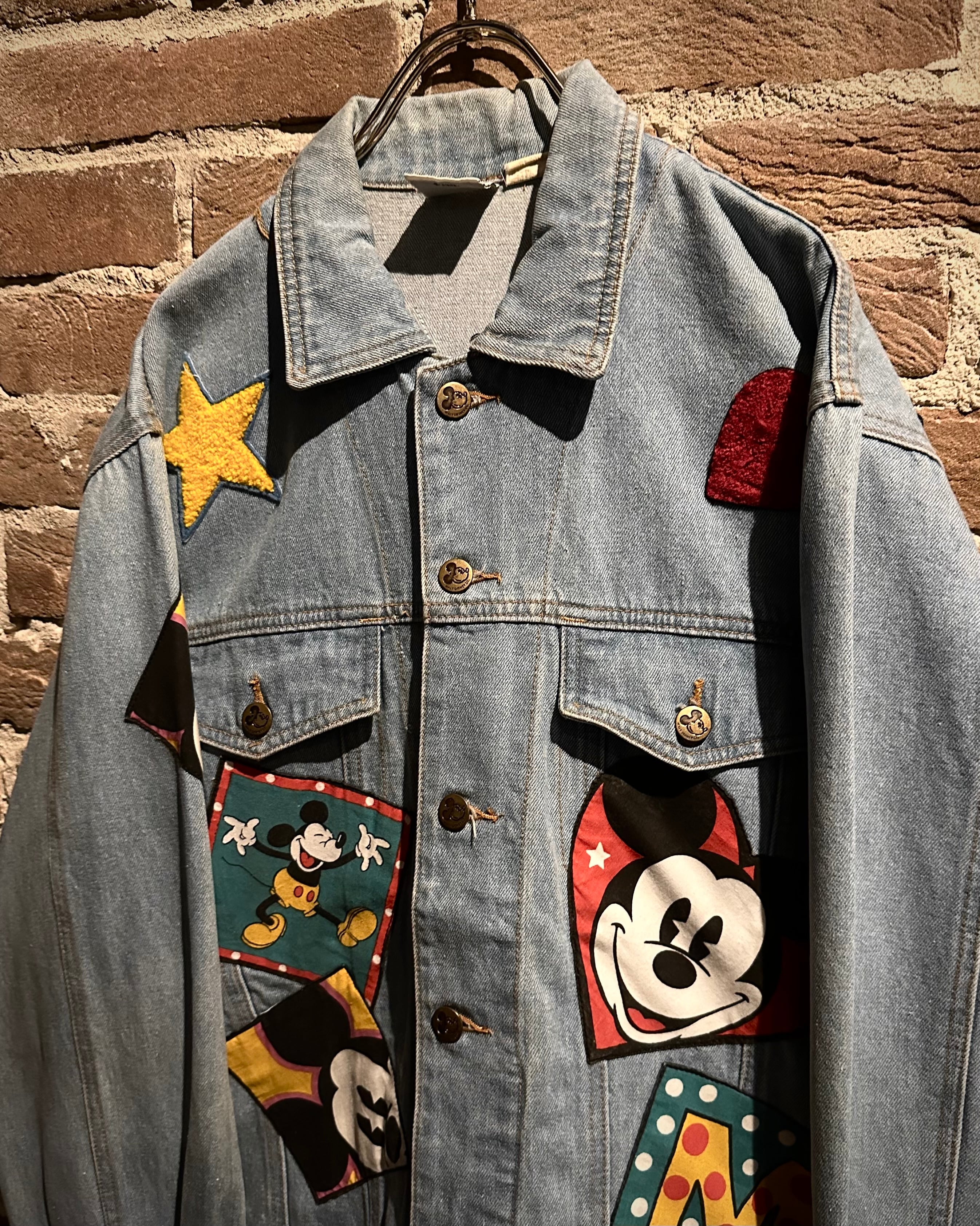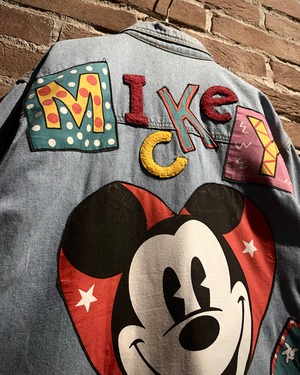 柔らかなブルーのデニムボディに、様々なミッキーのワッペンを施したディズニーオフィシャルのデニムジャケット。