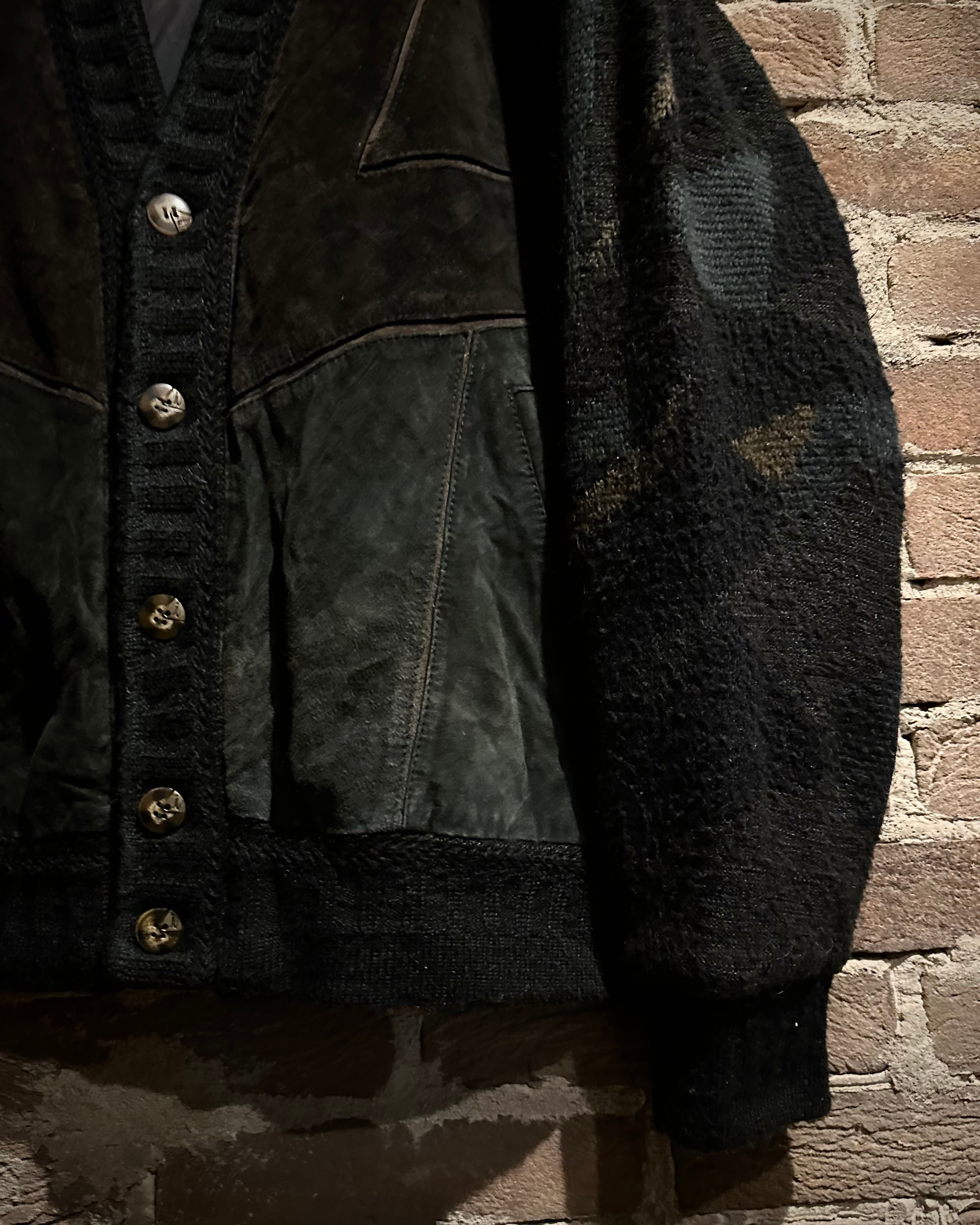 ユーロヴィンテージらしい独自の感性で、異素材を巧みに掛け合わせた80’sヴィンテージのカーディガンジャケット。