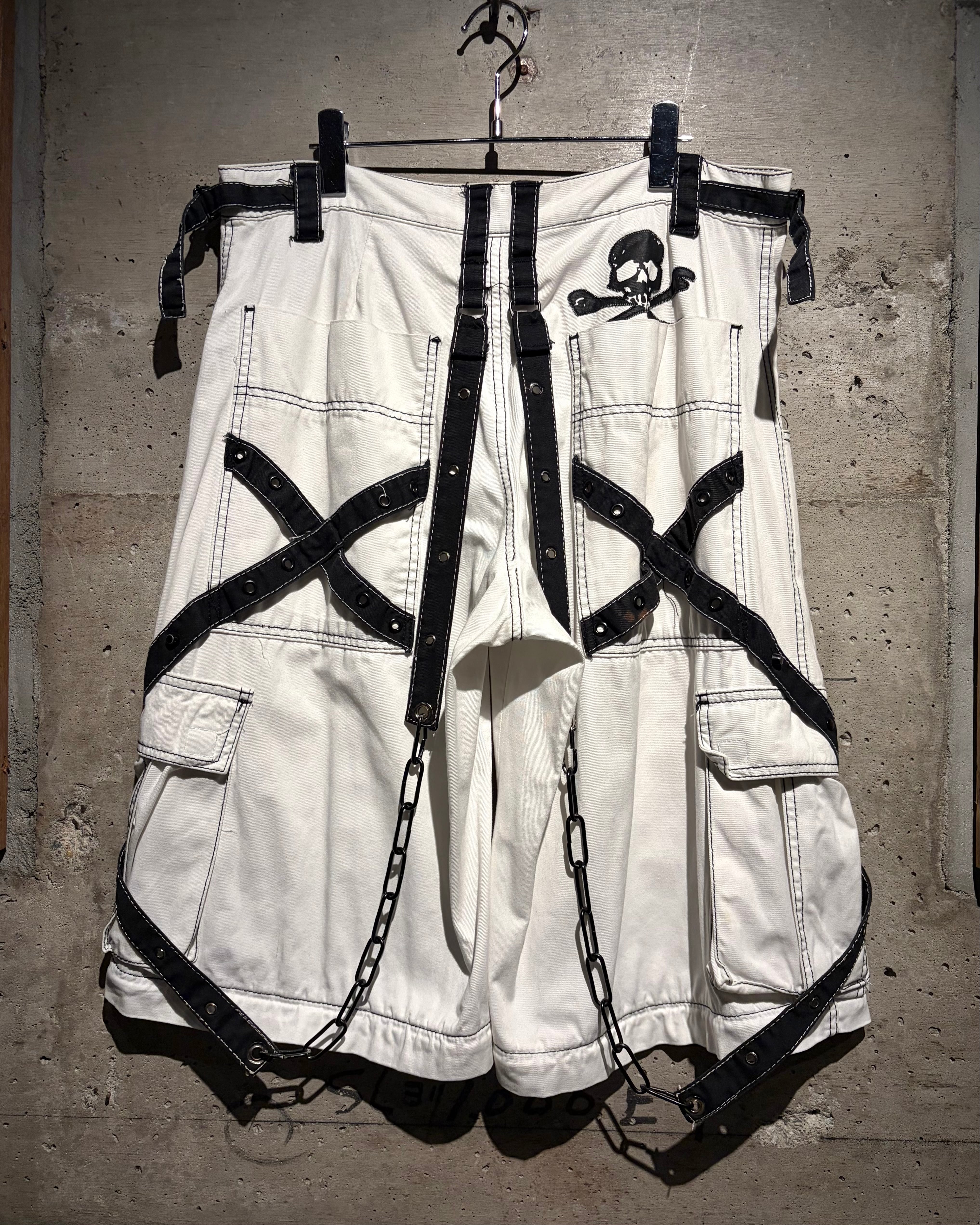 随所へ走るブラックのベルトストラップやチェーン、スタッズが強烈な存在感を演出し、随所に配されたカーゴポケットやジップもデザイン性とギミック感をUP。TRIPPらしいアイコニックなディテールを網羅しながら、ホワイトカラーによって、よりファッション性の高い仕上がりを見せています。