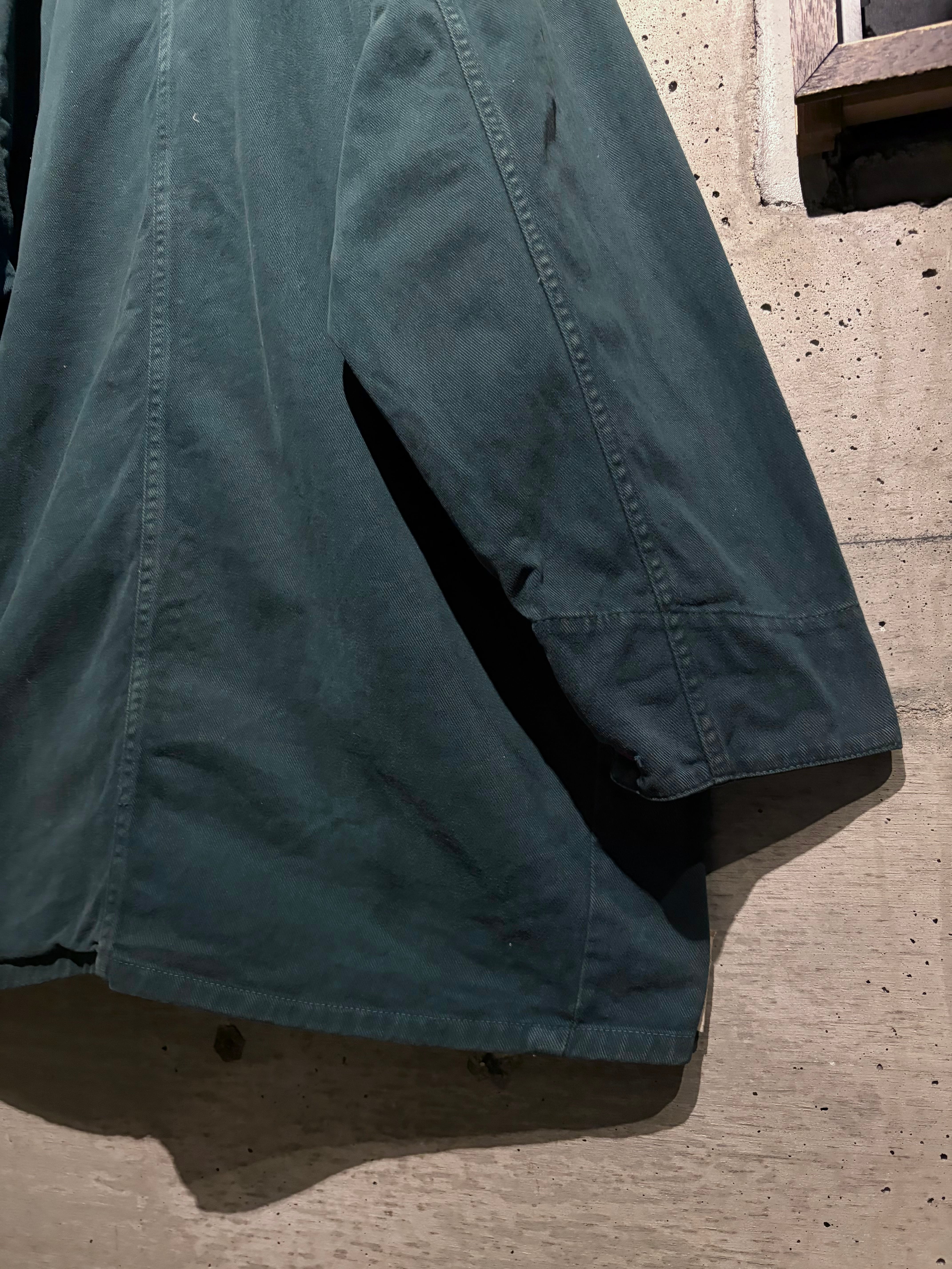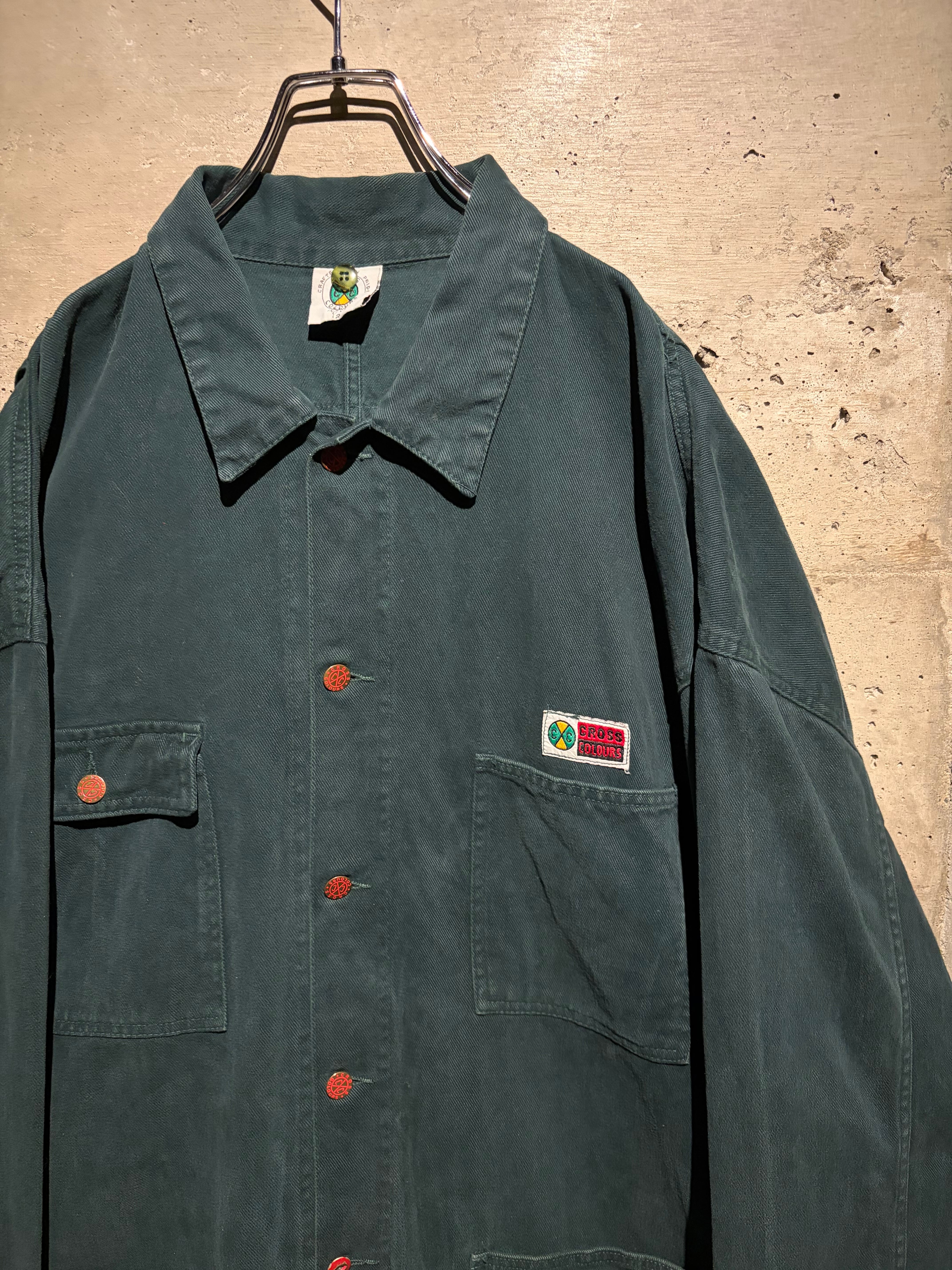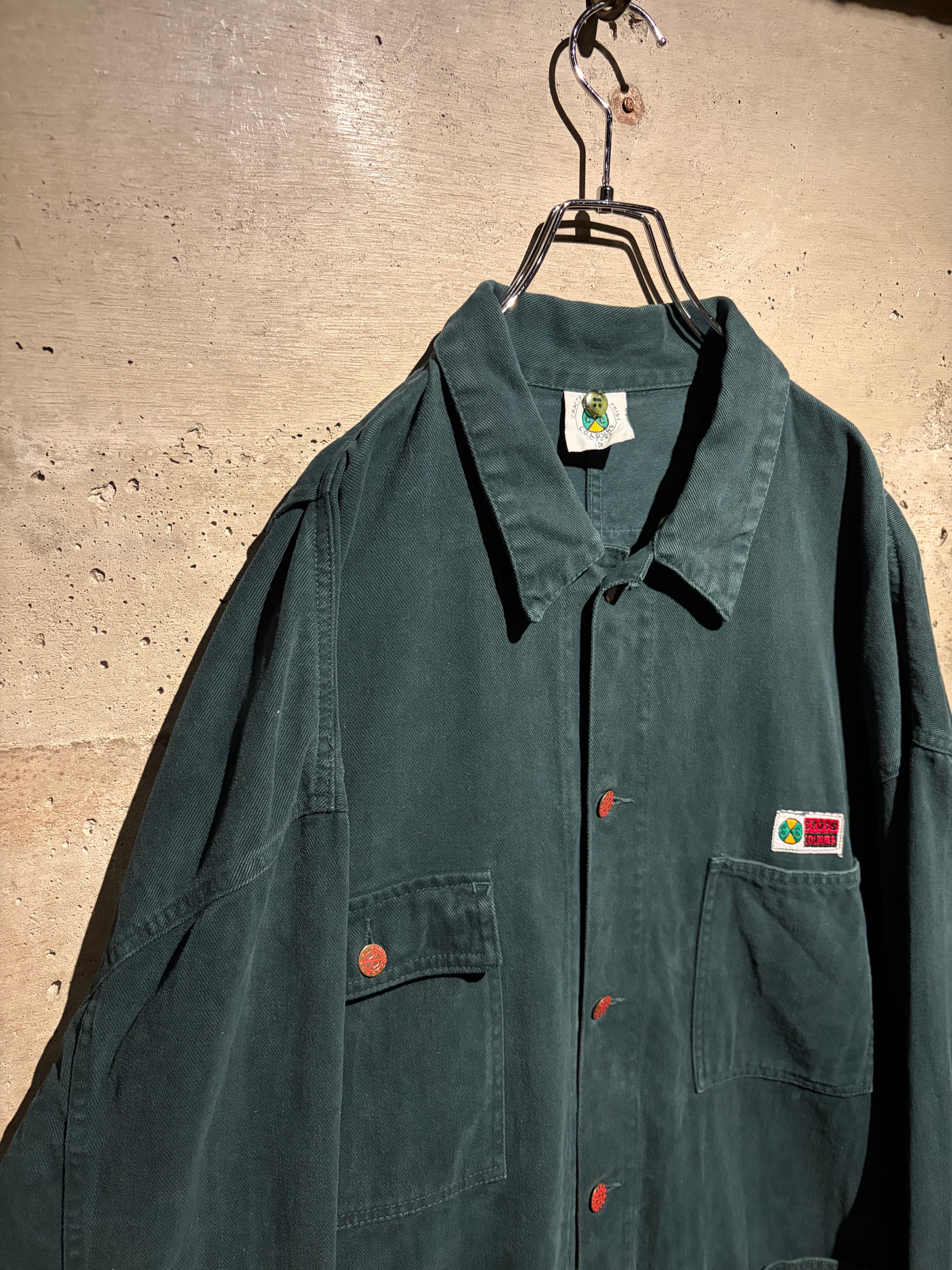 深みのある表情を見せる、後染めグリーンのデニムを使用した、USA製カバーオールタイプのデニムジャケット。