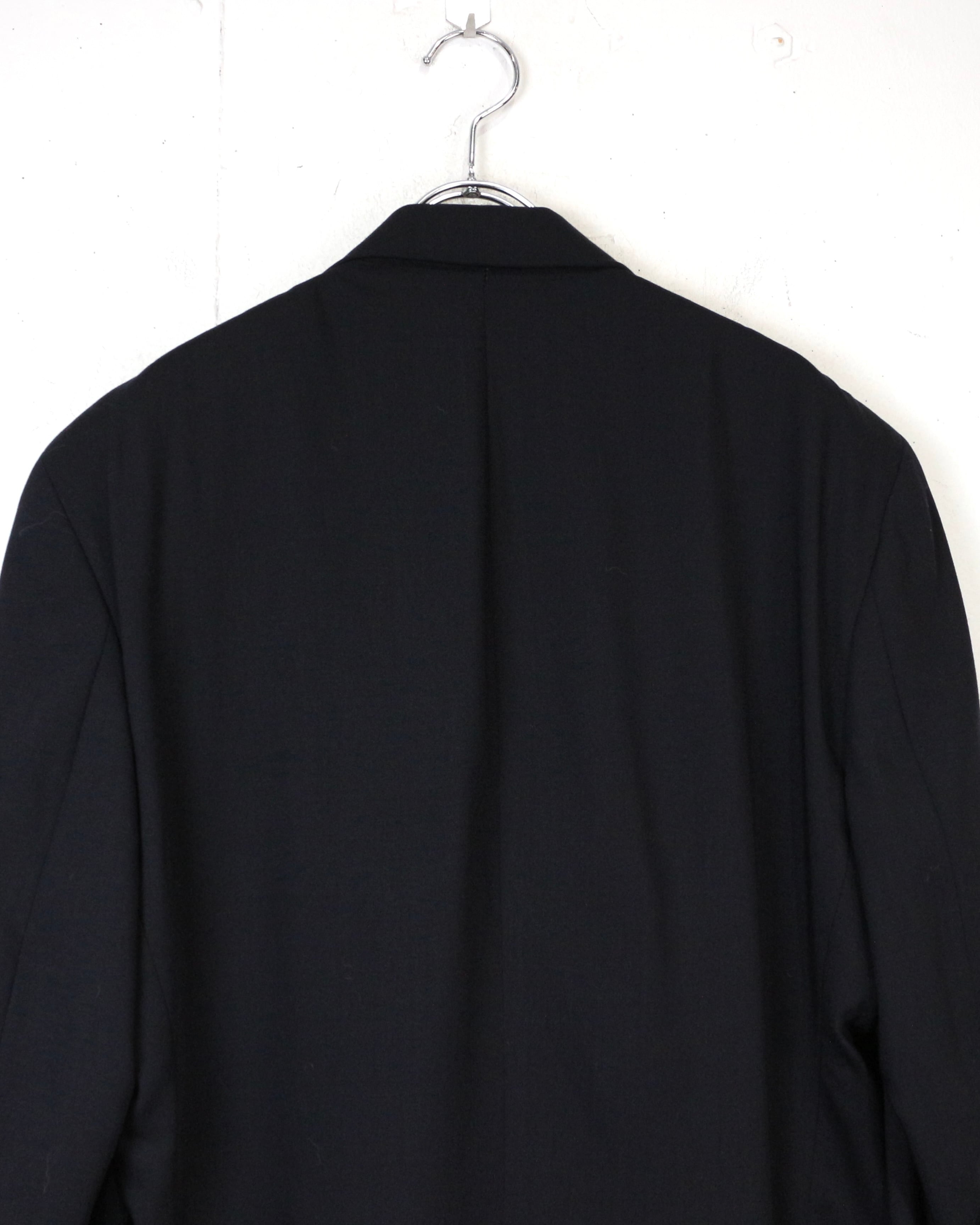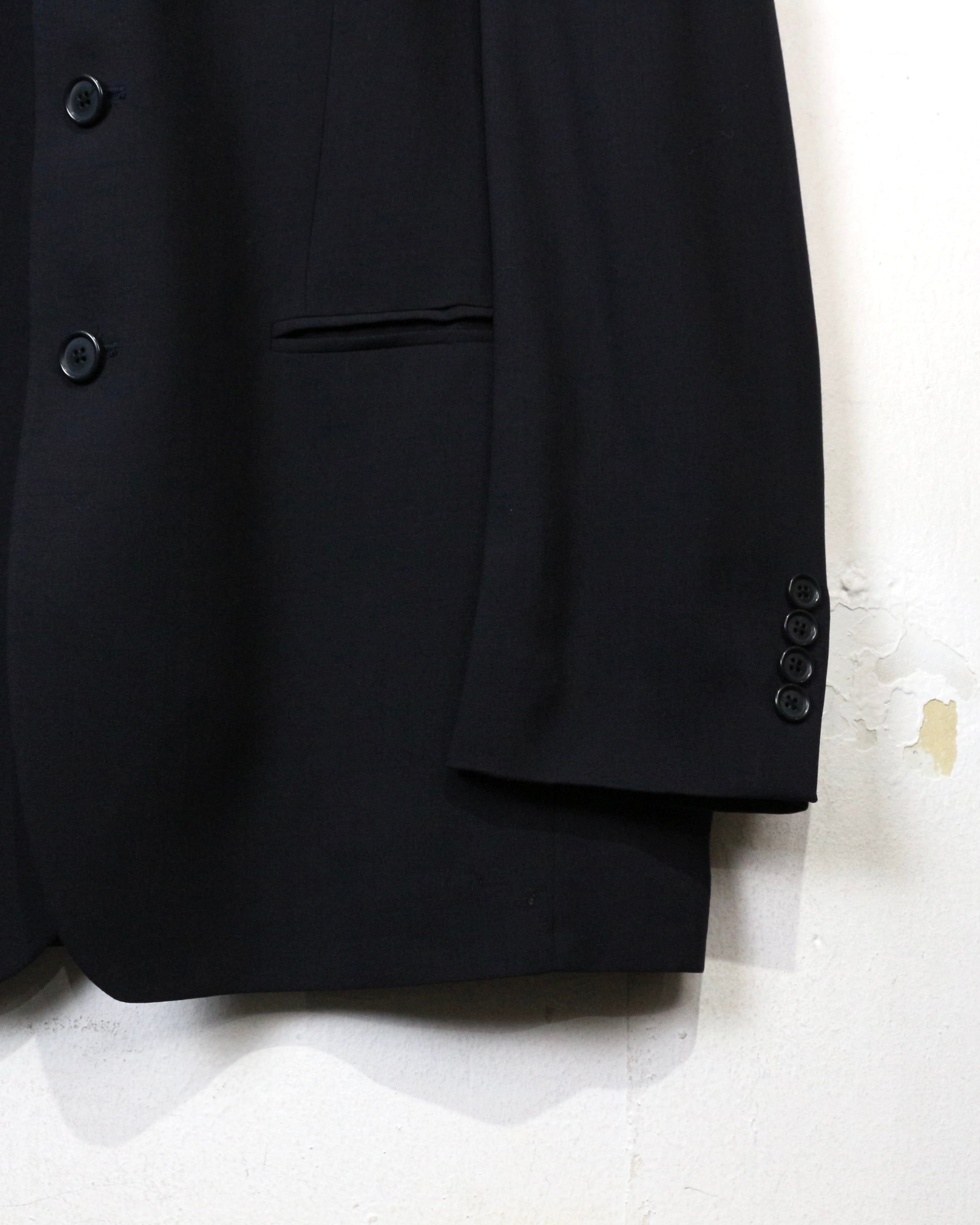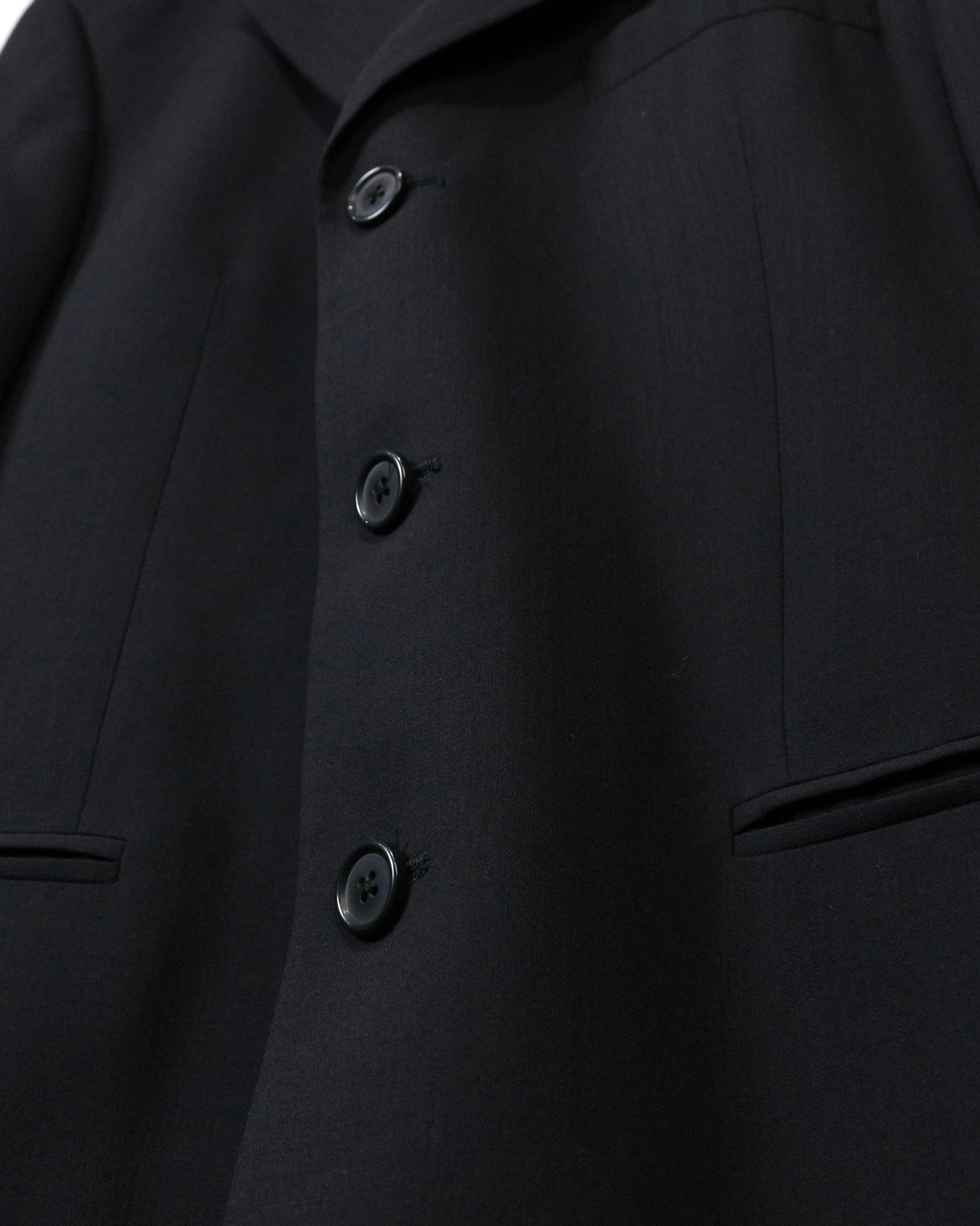 フロントはクラシックな3つボタン仕様にノッチドラペルとベーシックながら完成度の高いディテールワークで、素材の良さと仕立ての美しさが際立ちます。内側のライニングも丁寧に仕立てられており、着脱時にもラグジュアリーなムードを演出。