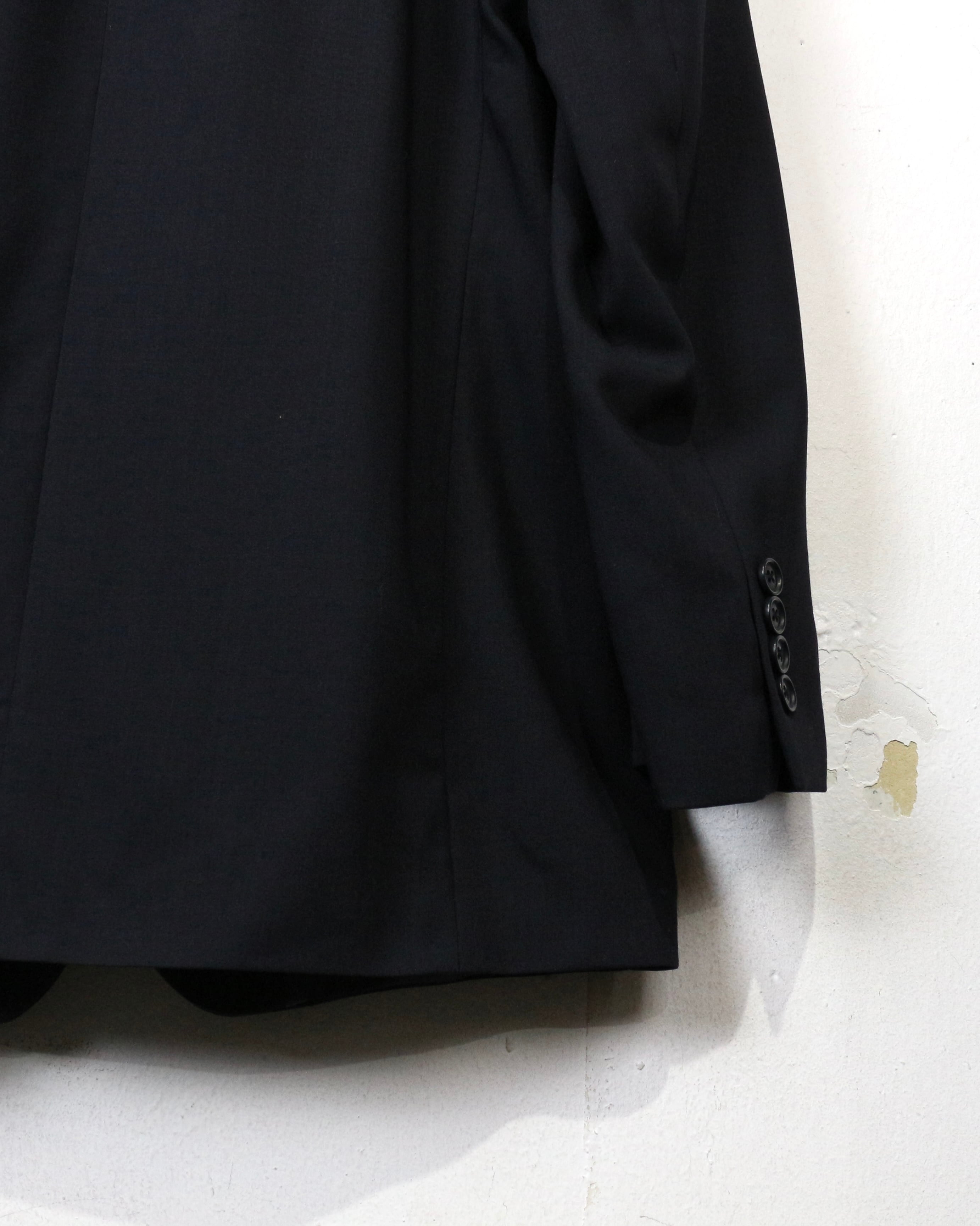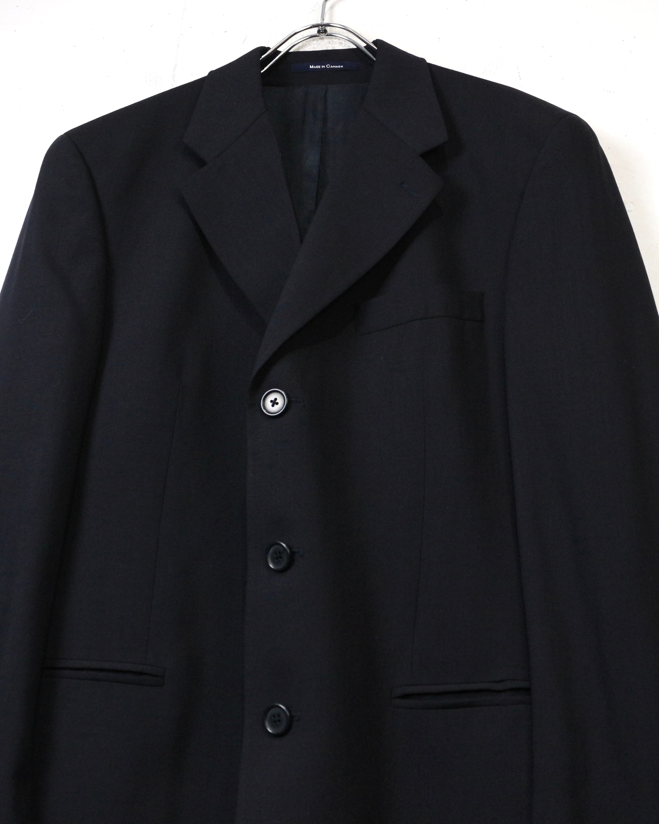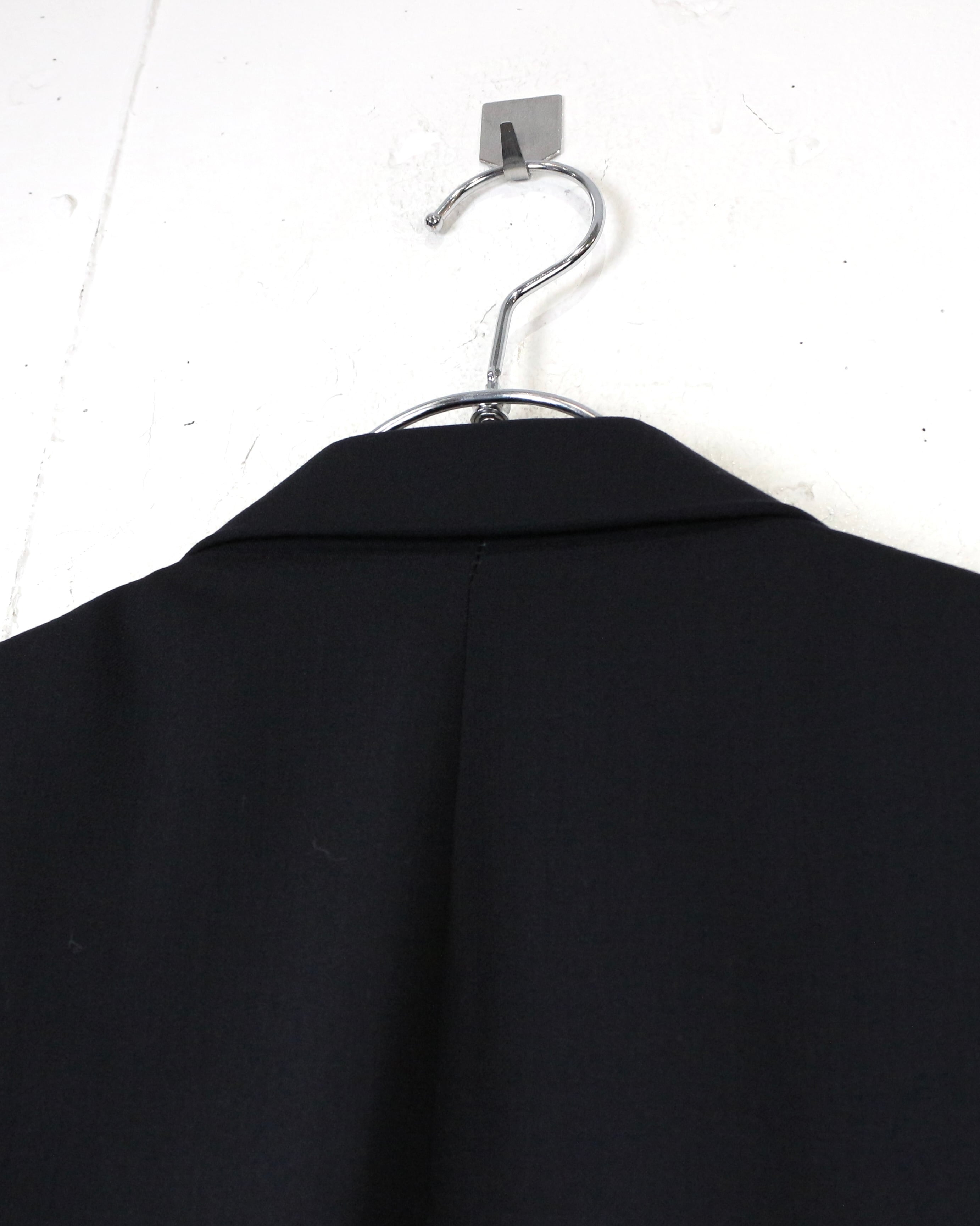 フロントはクラシックな3つボタン仕様にノッチドラペルとベーシックながら完成度の高いディテールワークで、素材の良さと仕立ての美しさが際立ちます。内側のライニングも丁寧に仕立てられており、着脱時にもラグジュアリーなムードを演出。