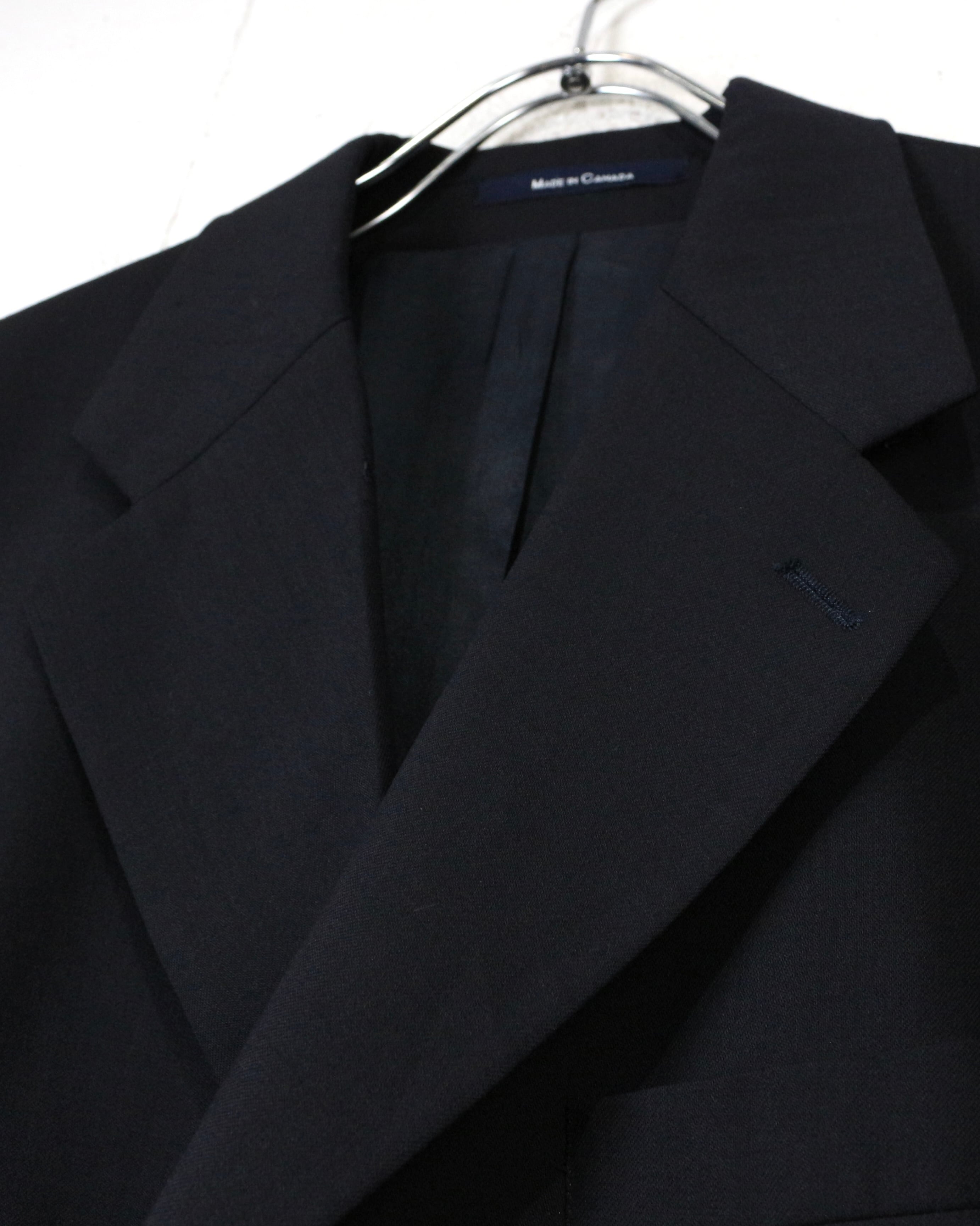 ボディにはピュアニューウールを採用し、しなやかで滑らかな質感と、品のある微光沢が特徴。深みのあるネイビーカラーが落ち着いた印象を与えています。