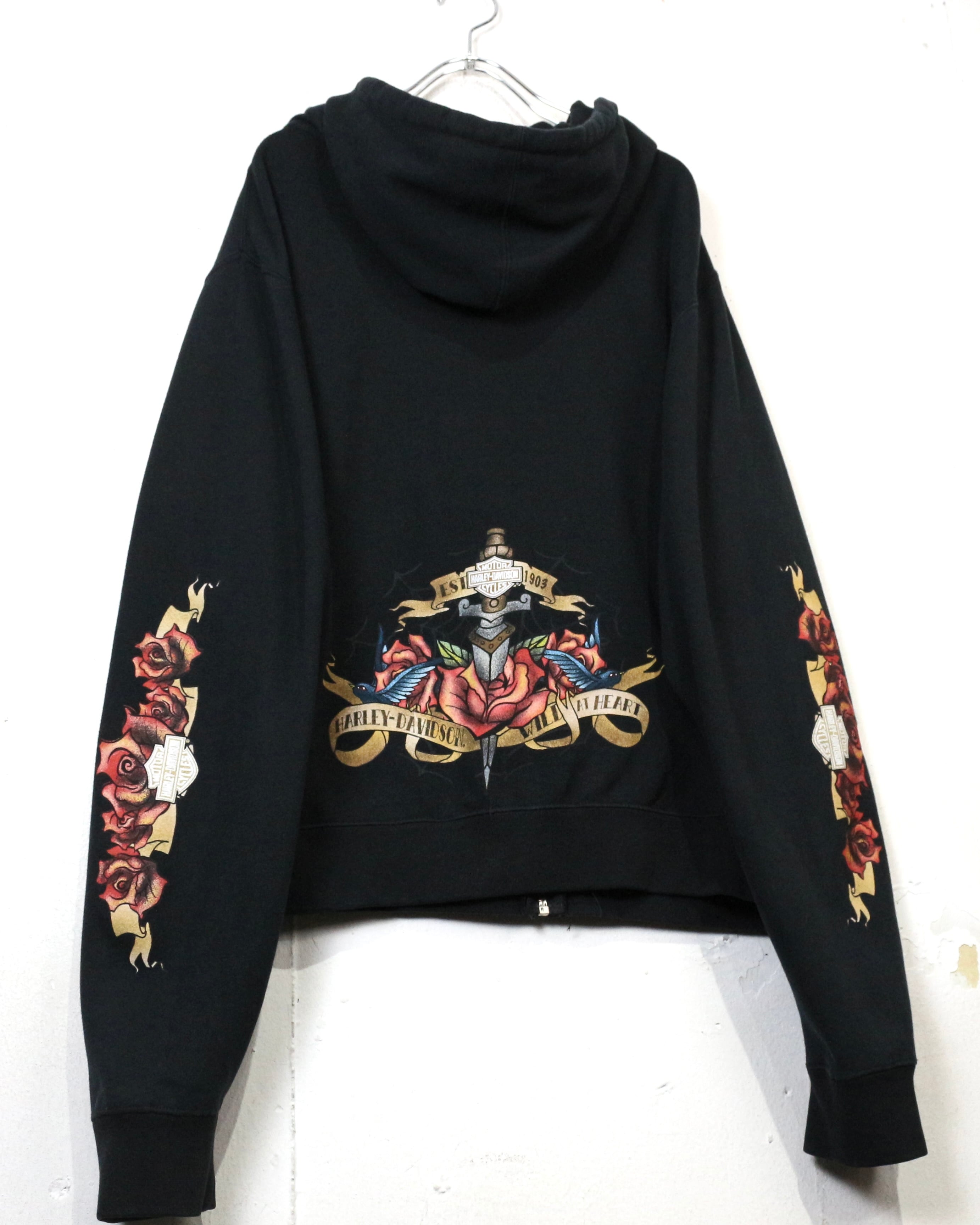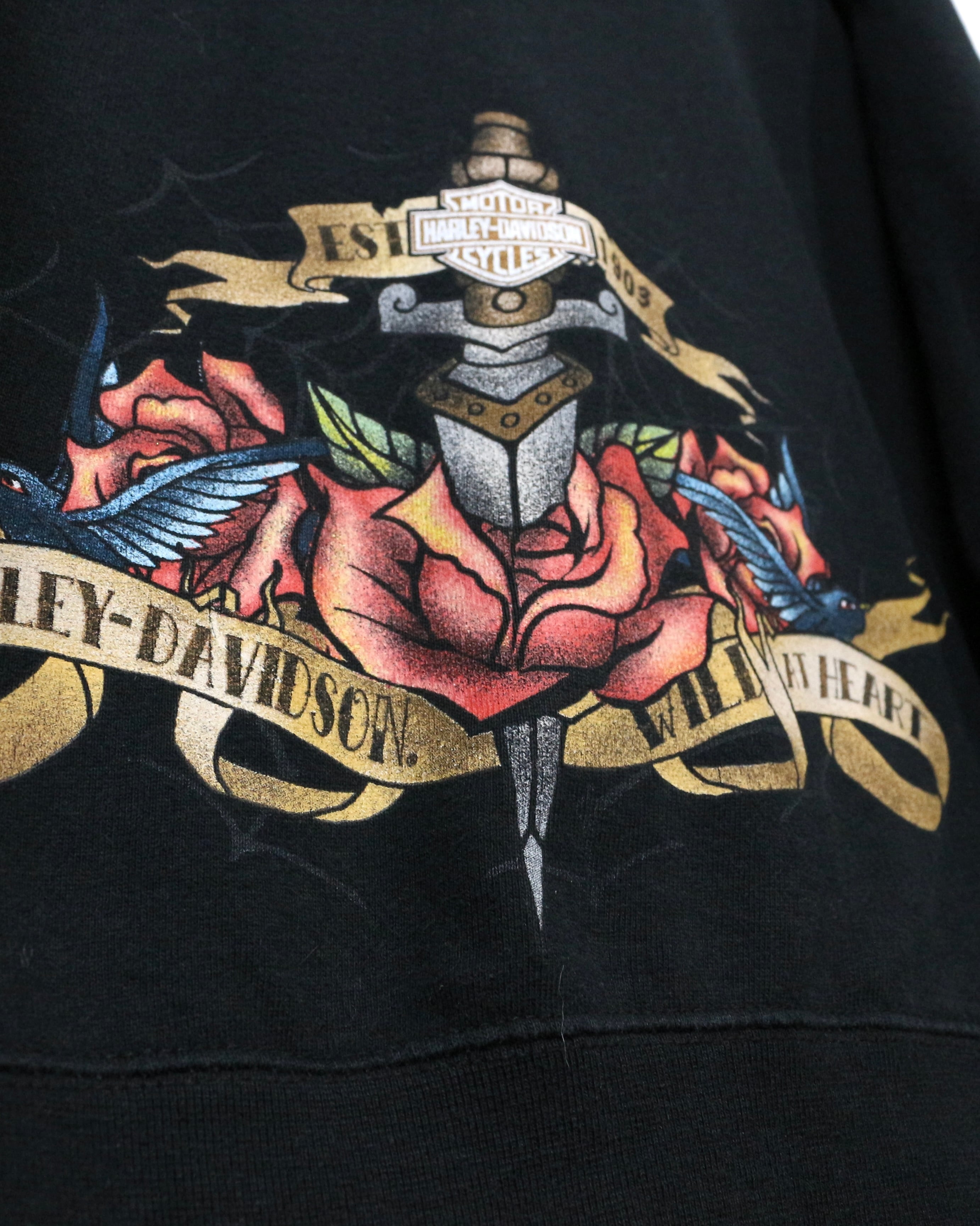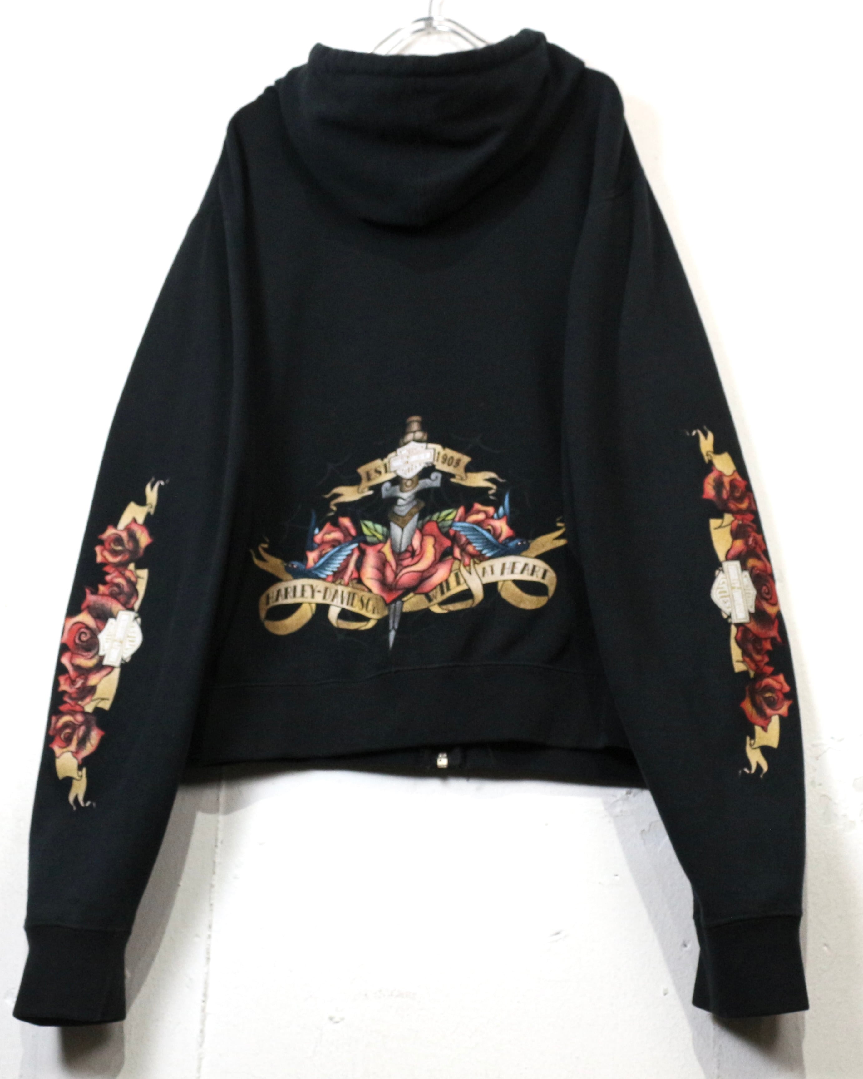 薔薇やダガー、鳥などのモチーフを組み合わせたデザインはHarley-Davidsonらしいバイカーカルチャーと、アメトラタトゥーのエッセンスを感じられます。