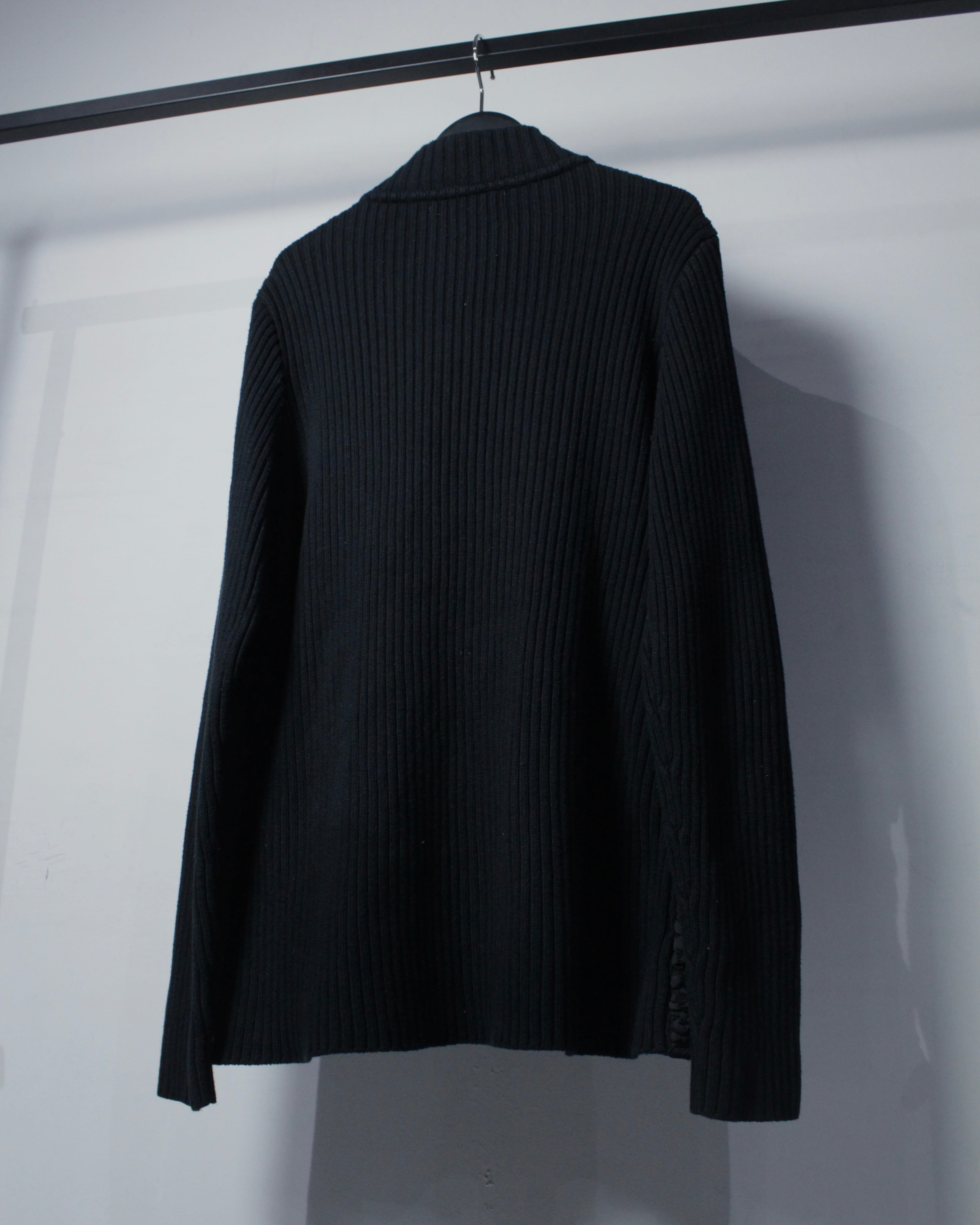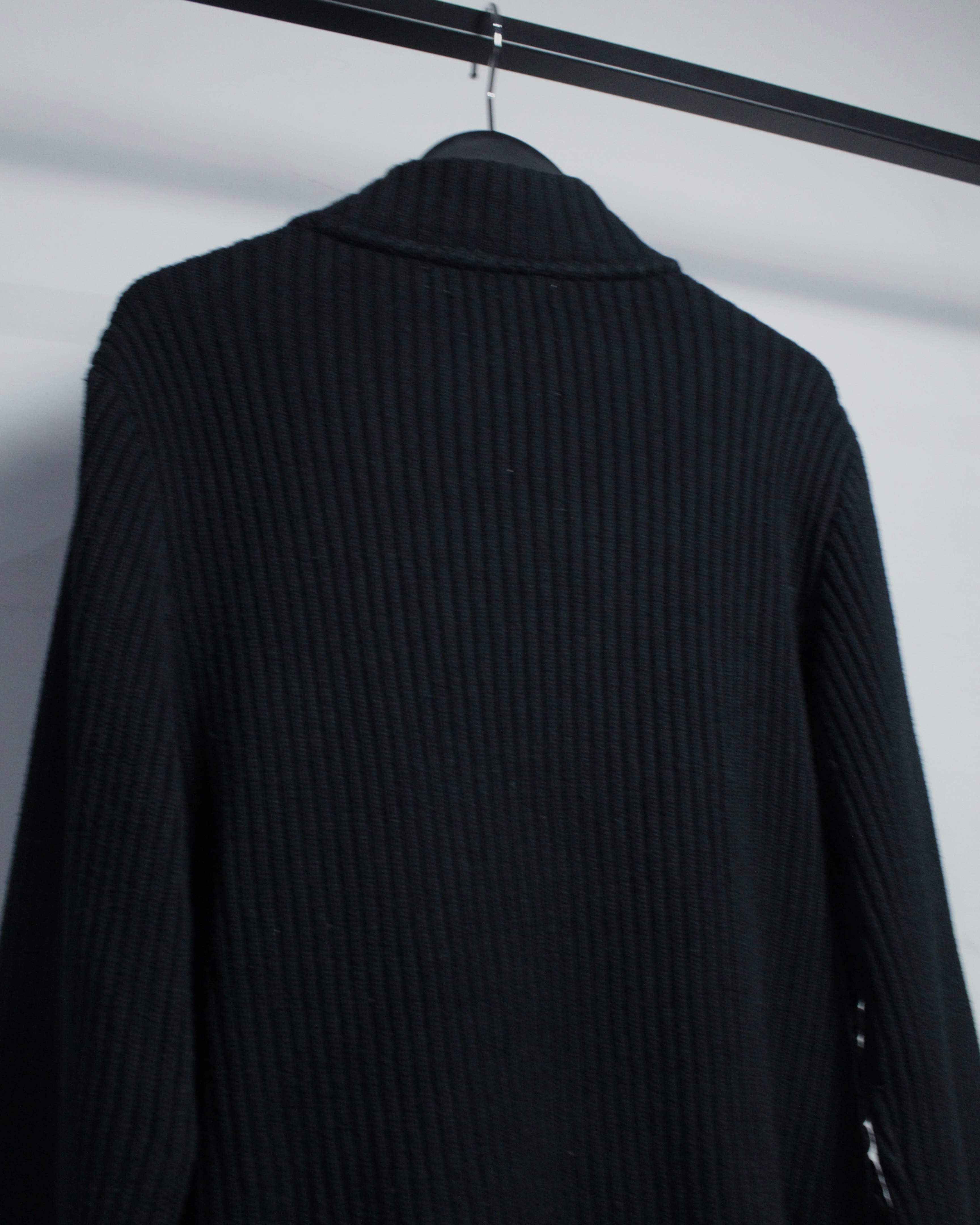 フロントには立体感のあるポップコーン素材を大胆に配置。凹凸の効いた表情が単色ながらもしっかりと主張し、光の当たり方で陰影が浮かび上がることで、奥行きと高級感を演出。対してバックやスリーブはリブ編みで構成され、素材のコントラストが際立つ1着に仕上がっています。