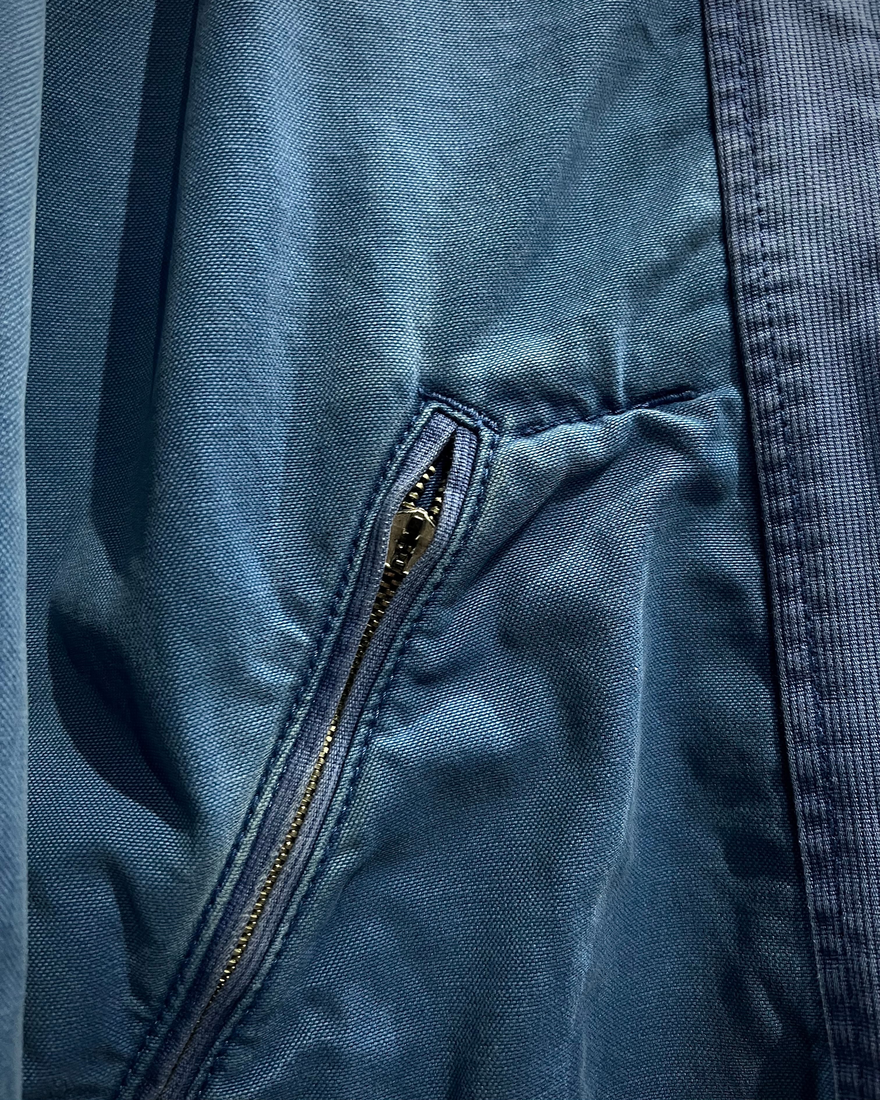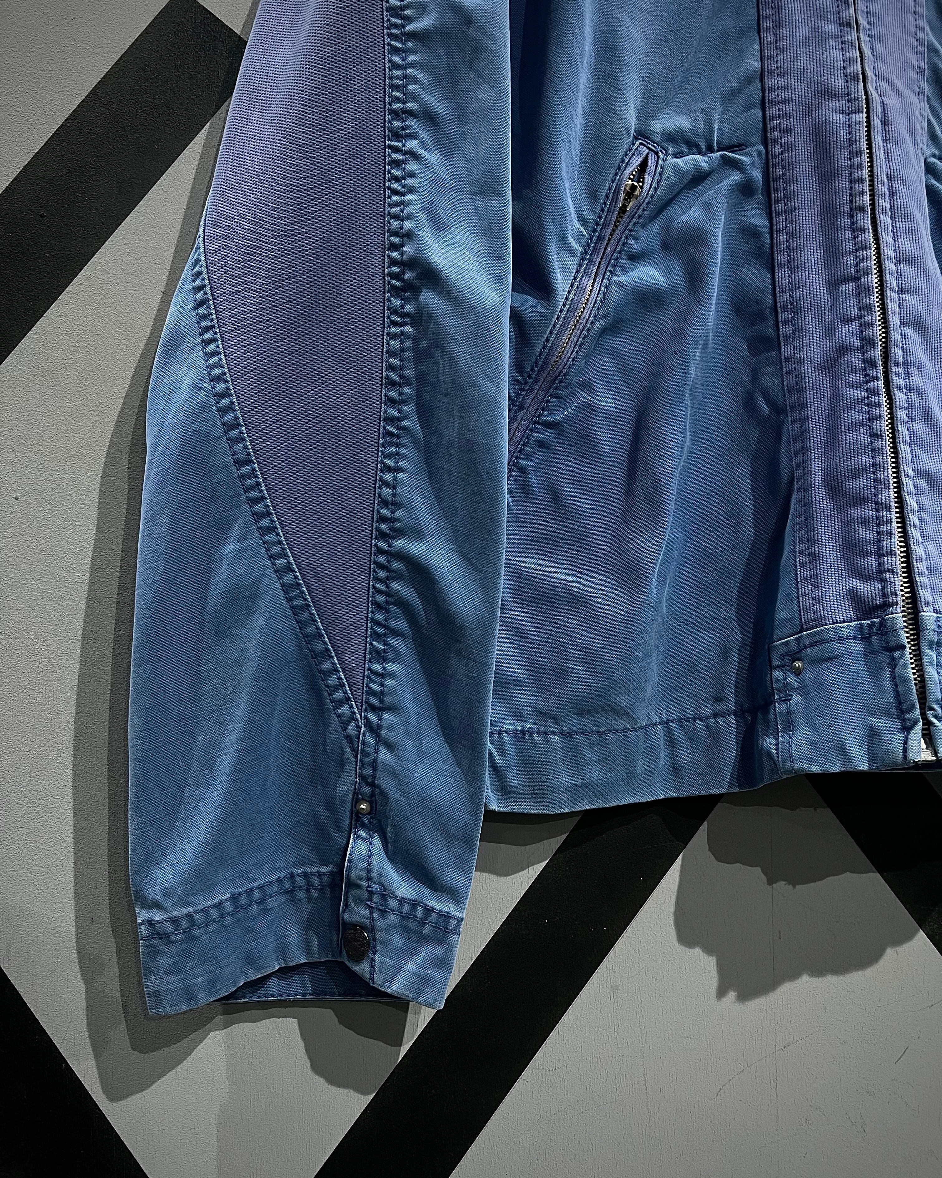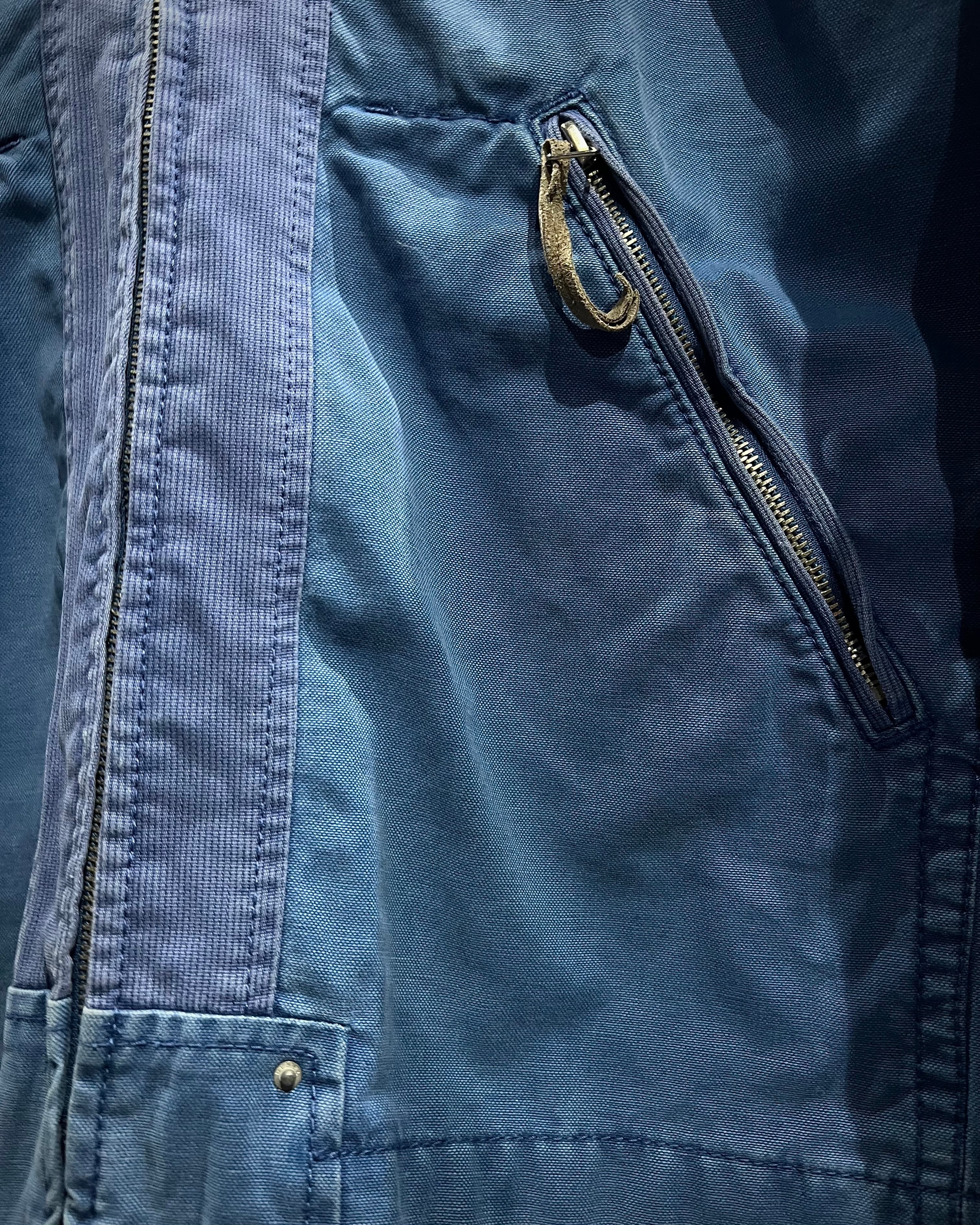 フロントはジップアップ仕様に、サイドにはミニマルなジップポケットを配置。シンプルなデザイン故に経年によるフェード、クタッとした風合いが際立ちます。