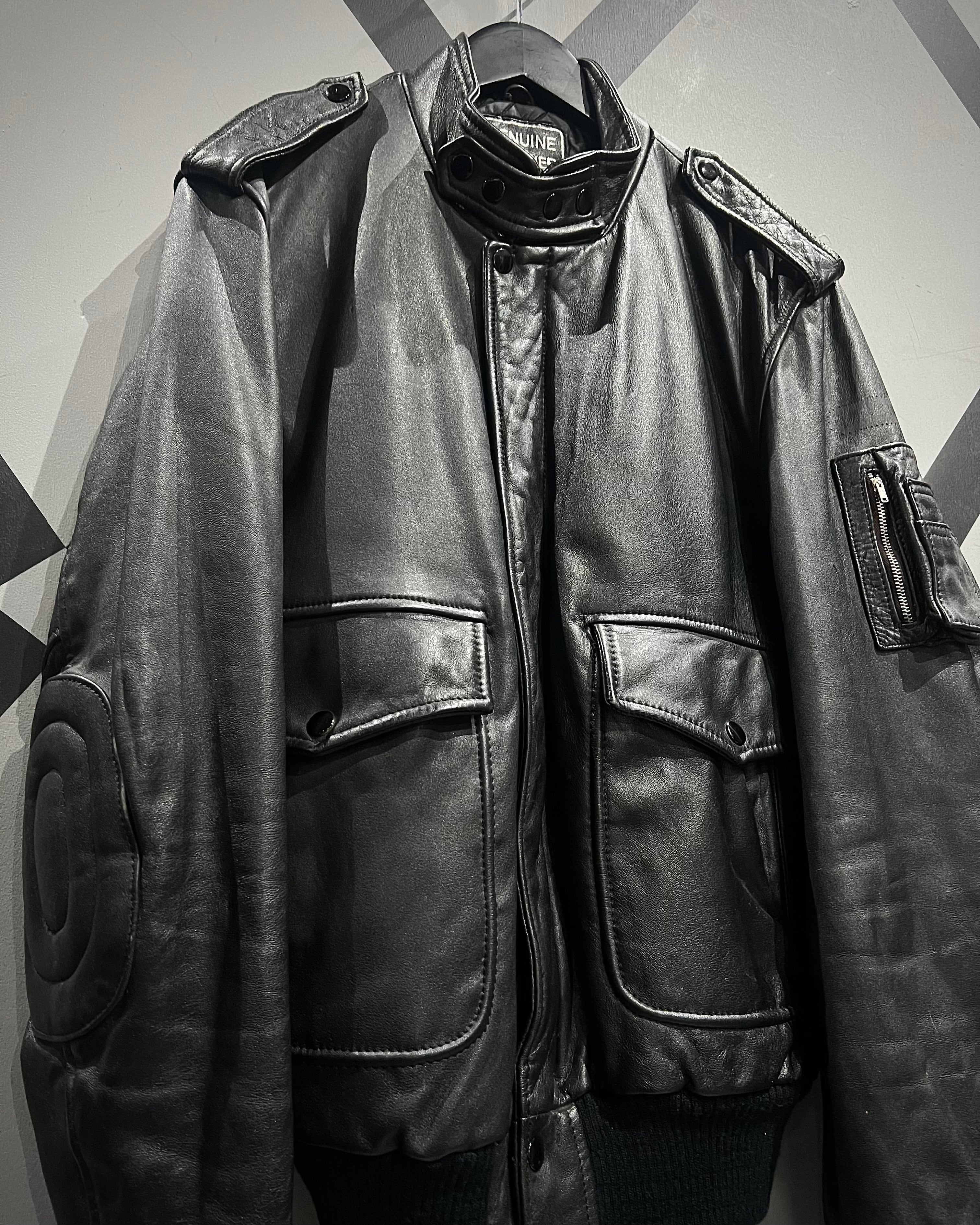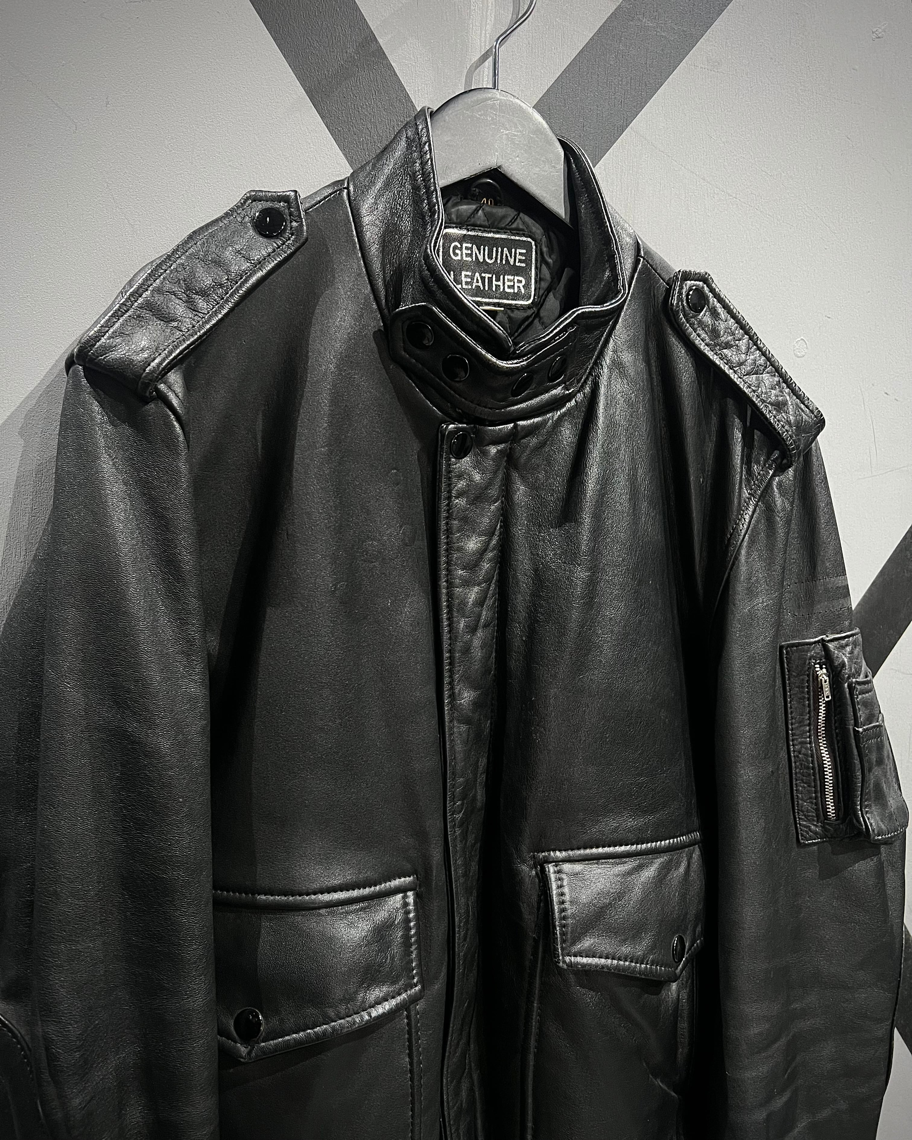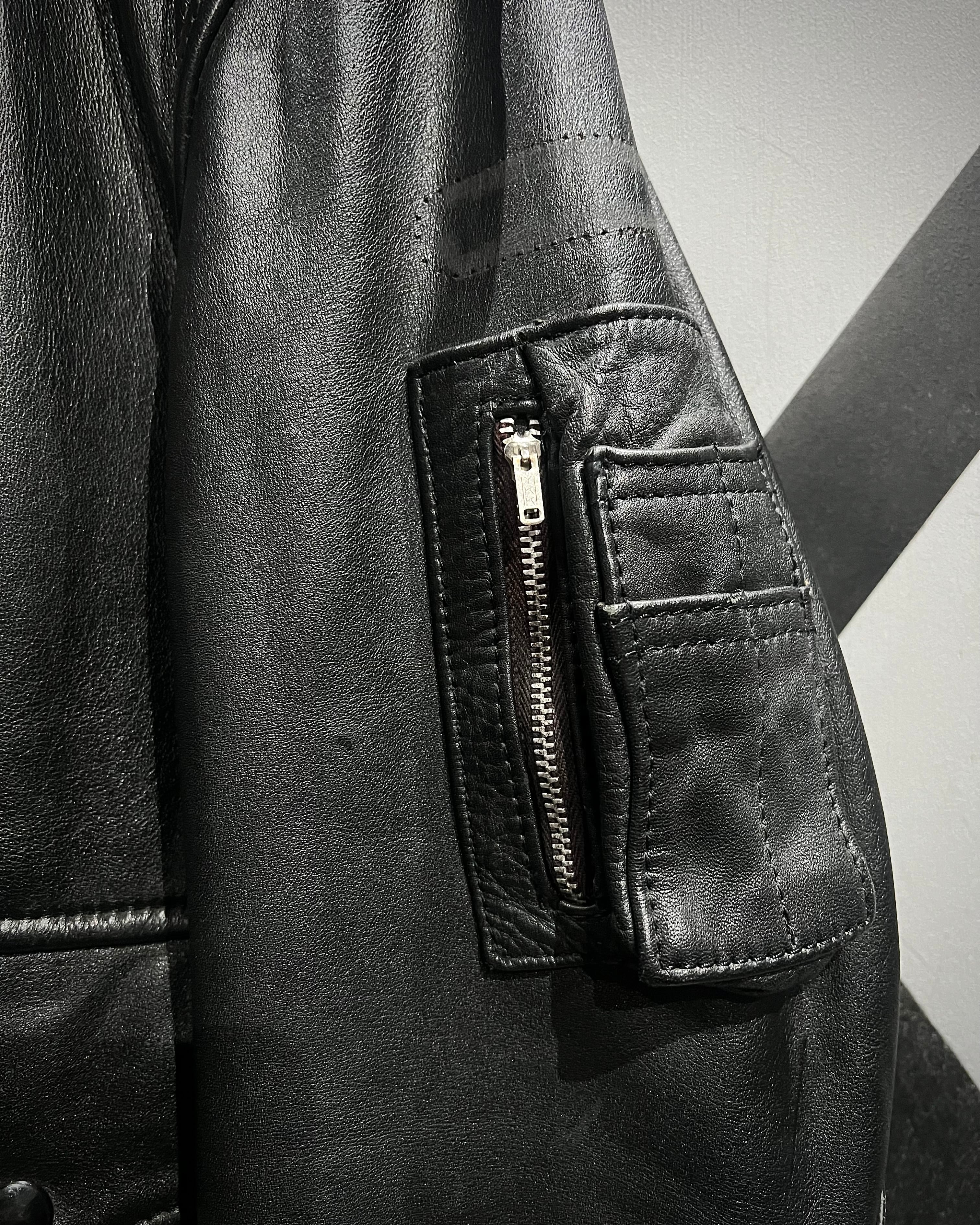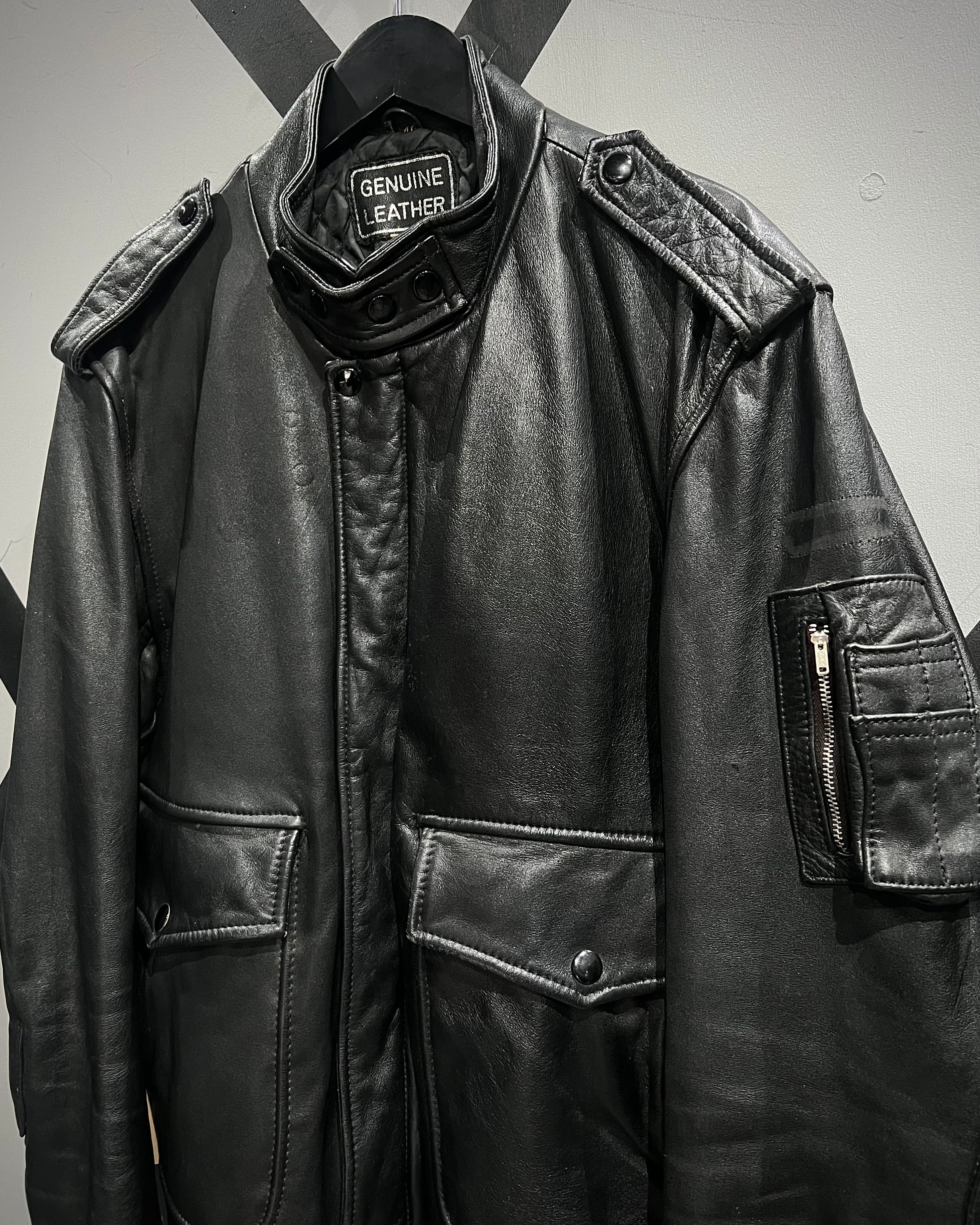 ミリタリーの無骨さと、現代的なミニマルさを兼ね備えたレザージャケットの逸品です。