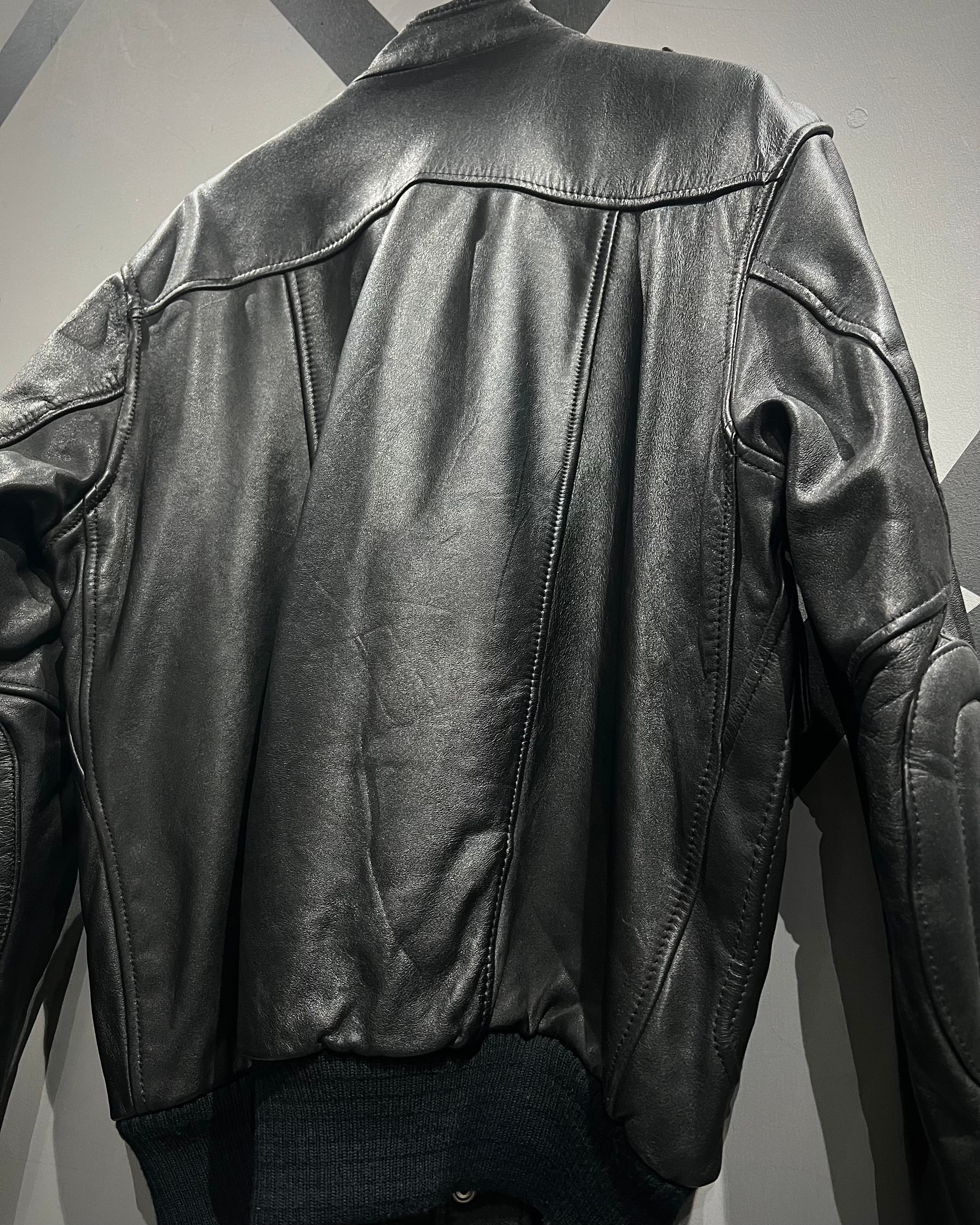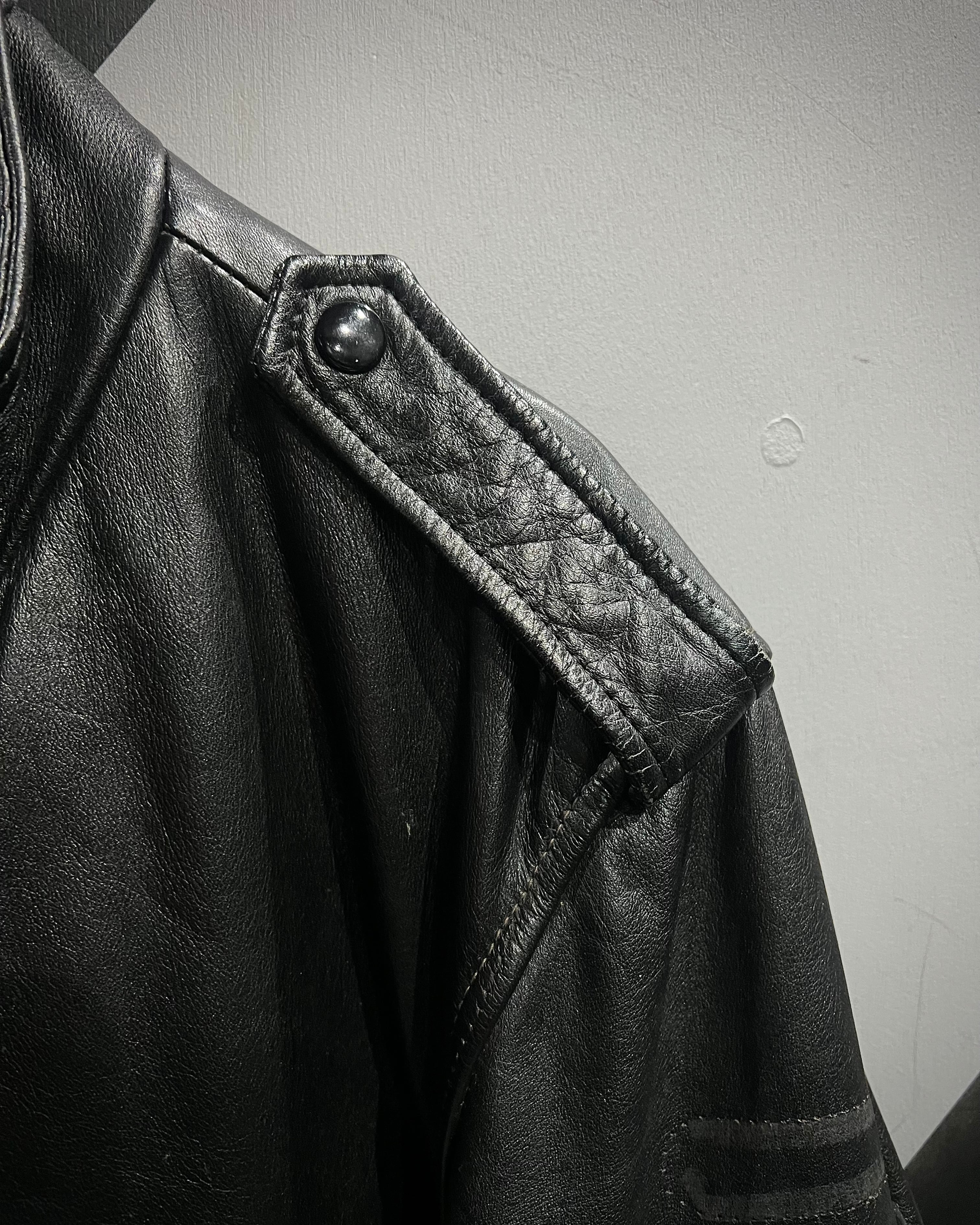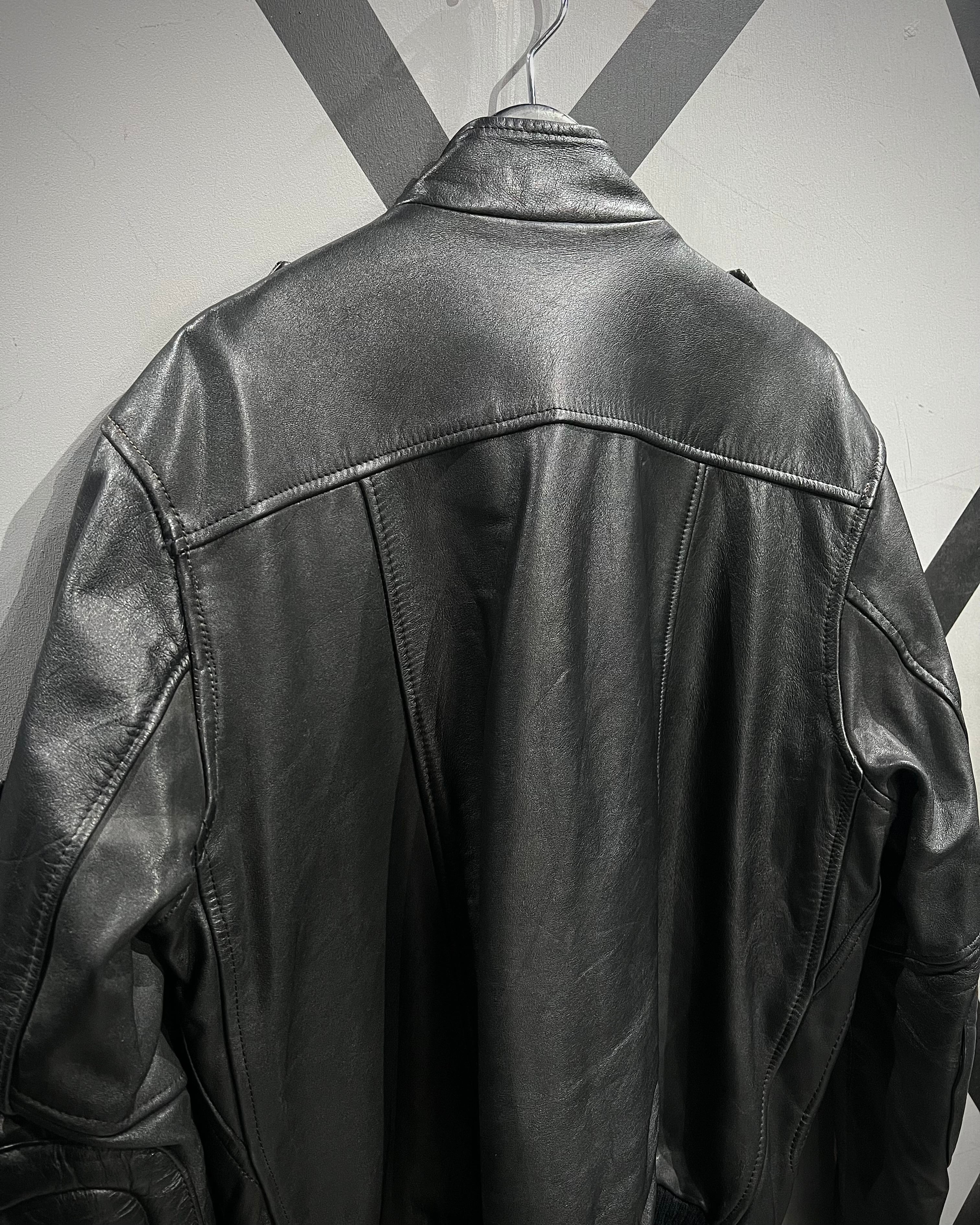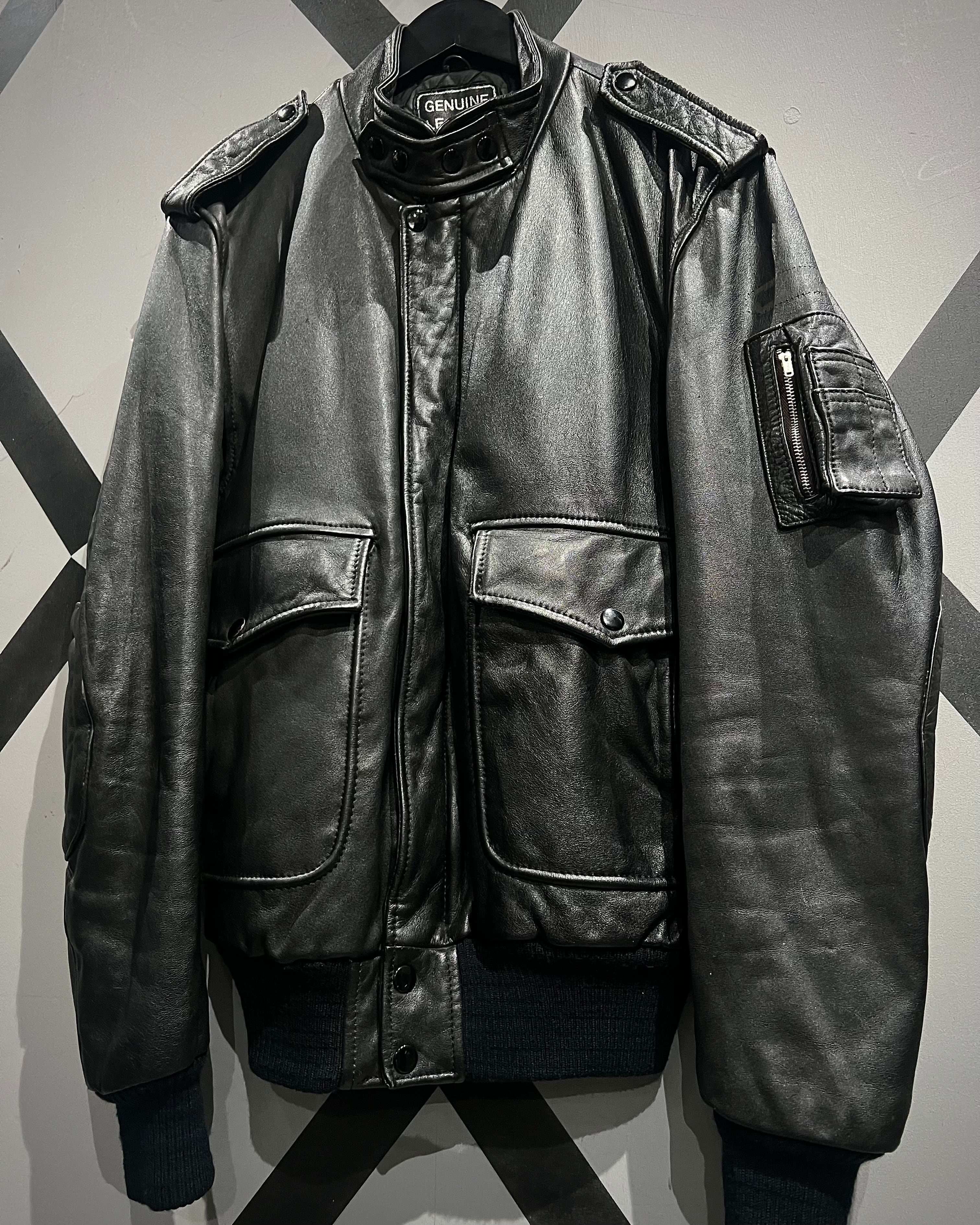 ミリタリーの無骨さと、現代的なミニマルさを兼ね備えたレザージャケットの逸品です。
