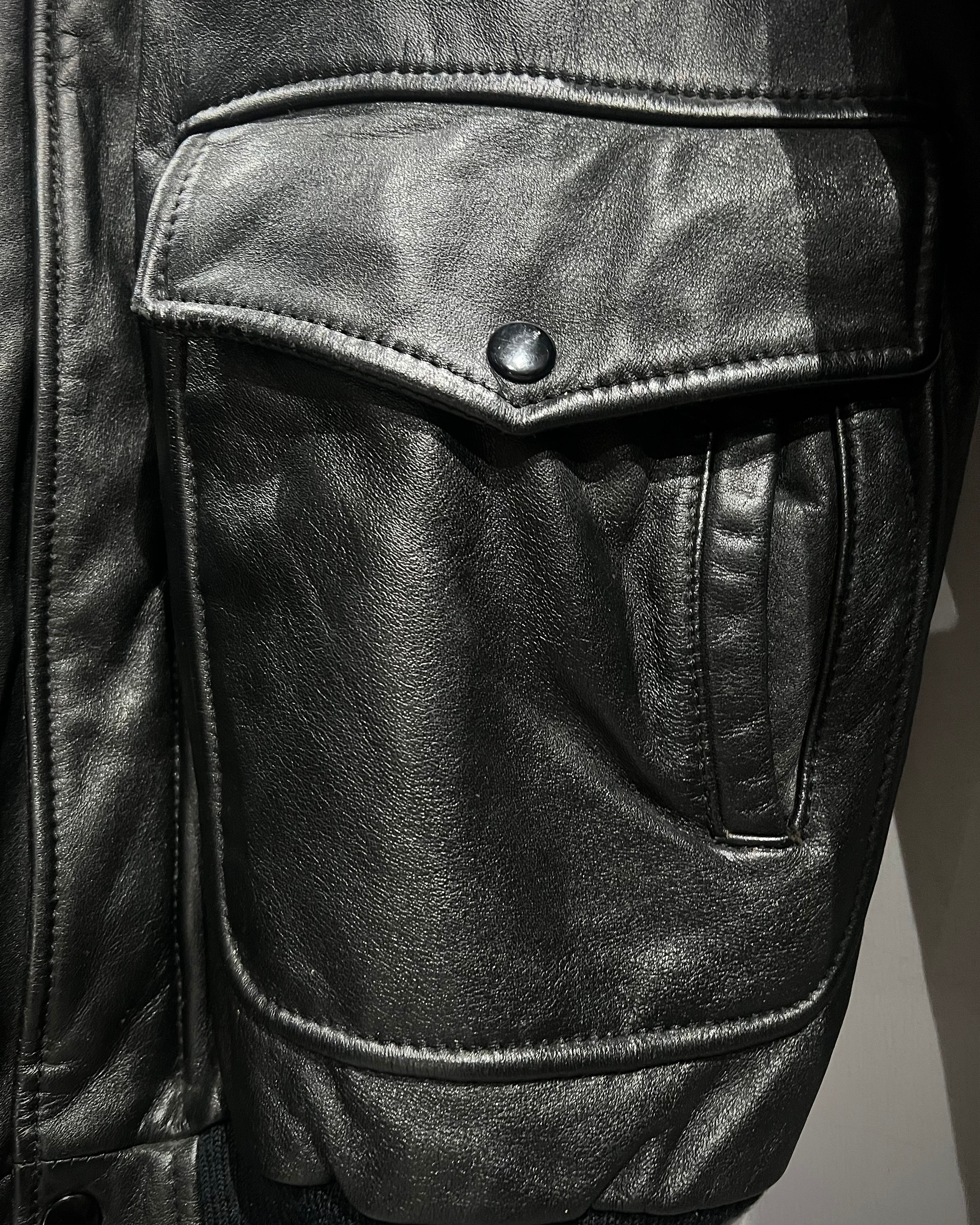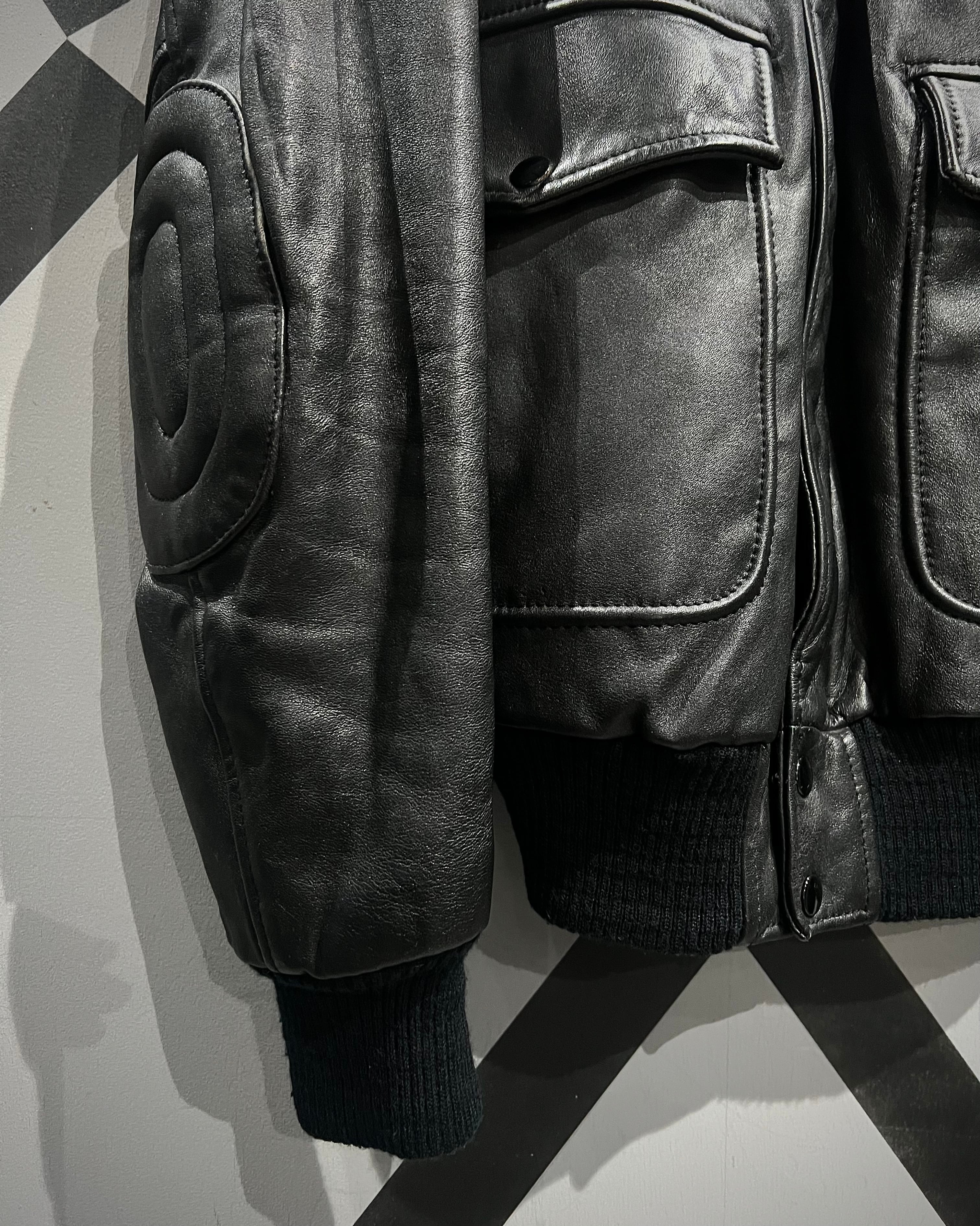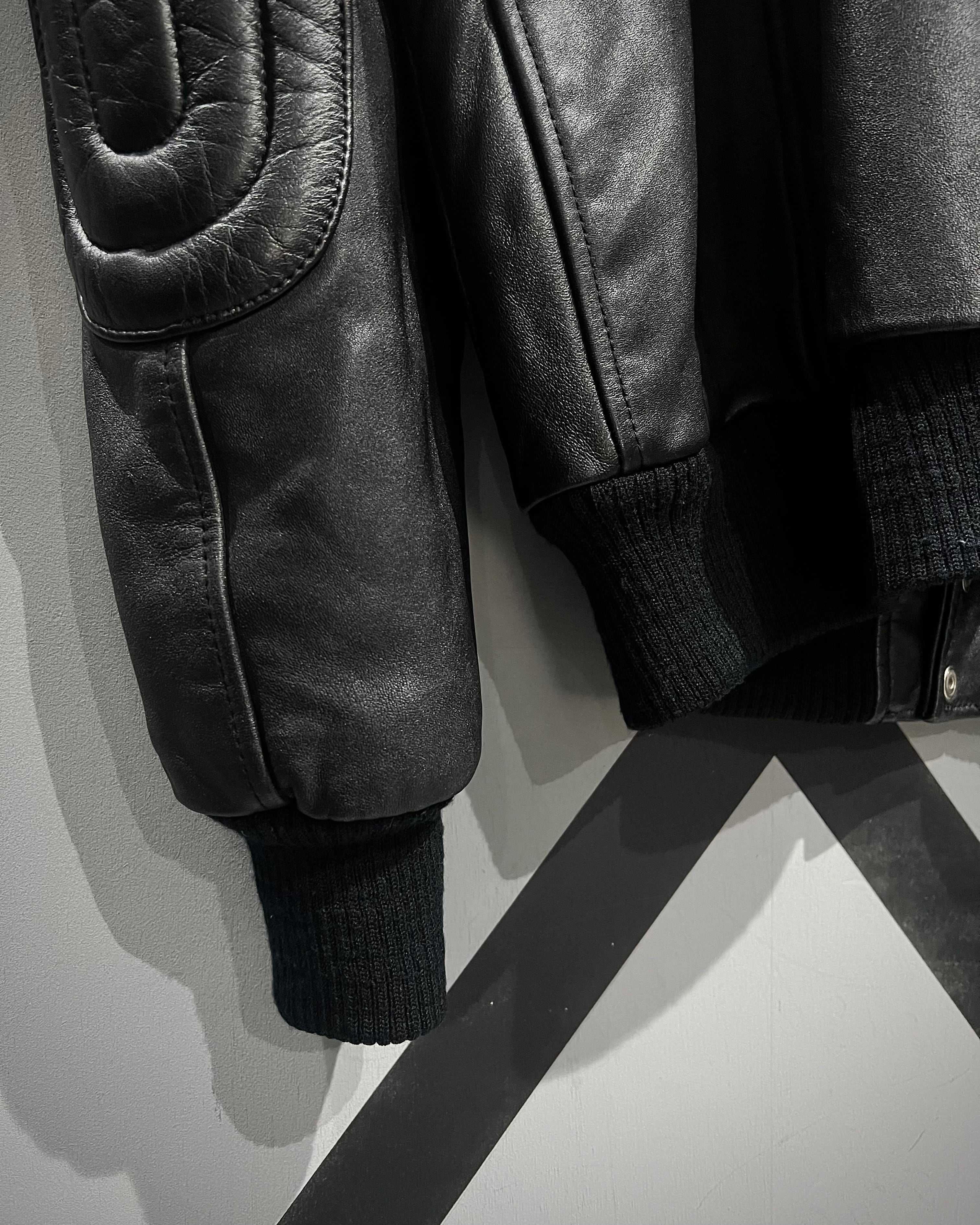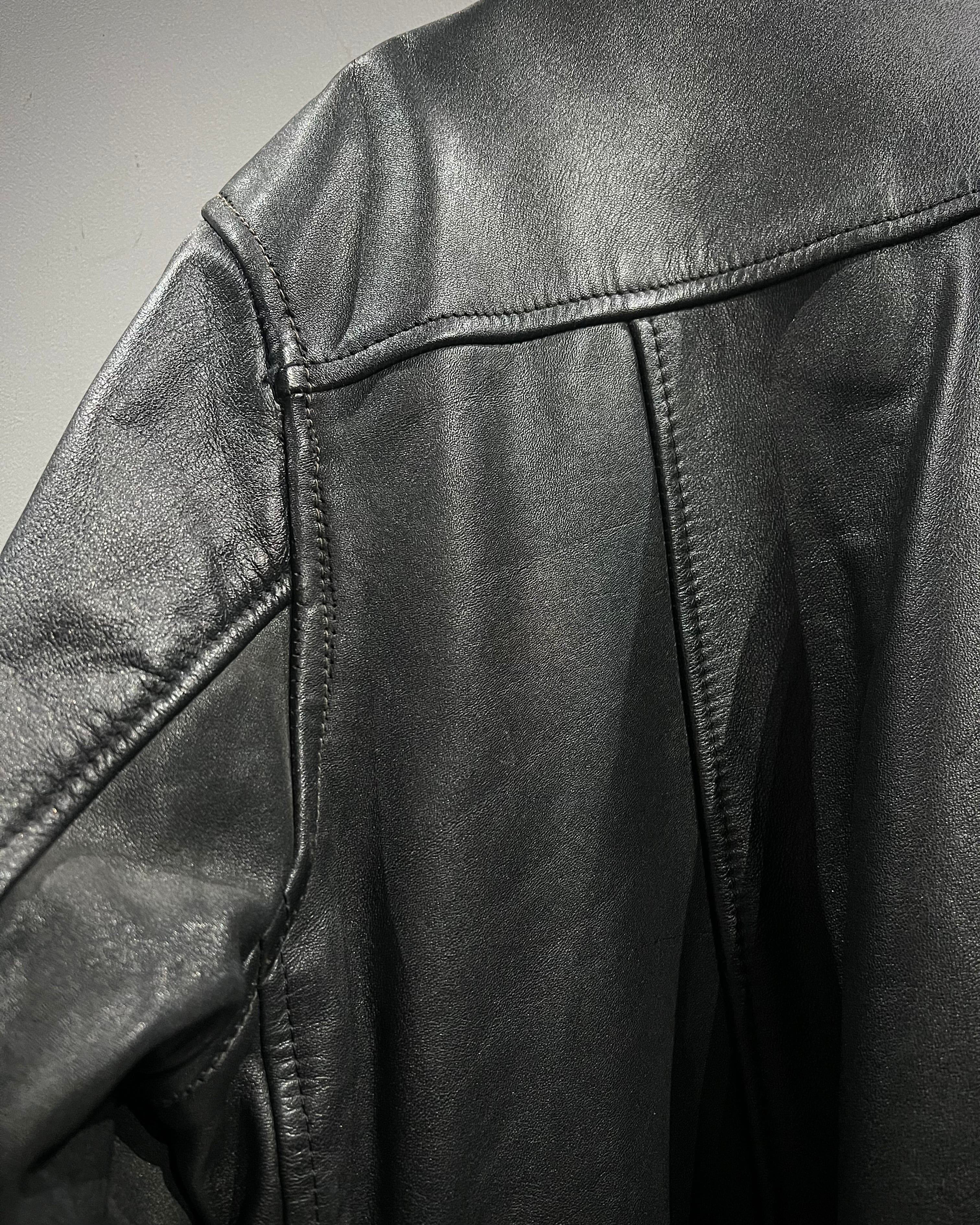 ミリタリーの無骨さと、現代的なミニマルさを兼ね備えたレザージャケットの逸品です。
