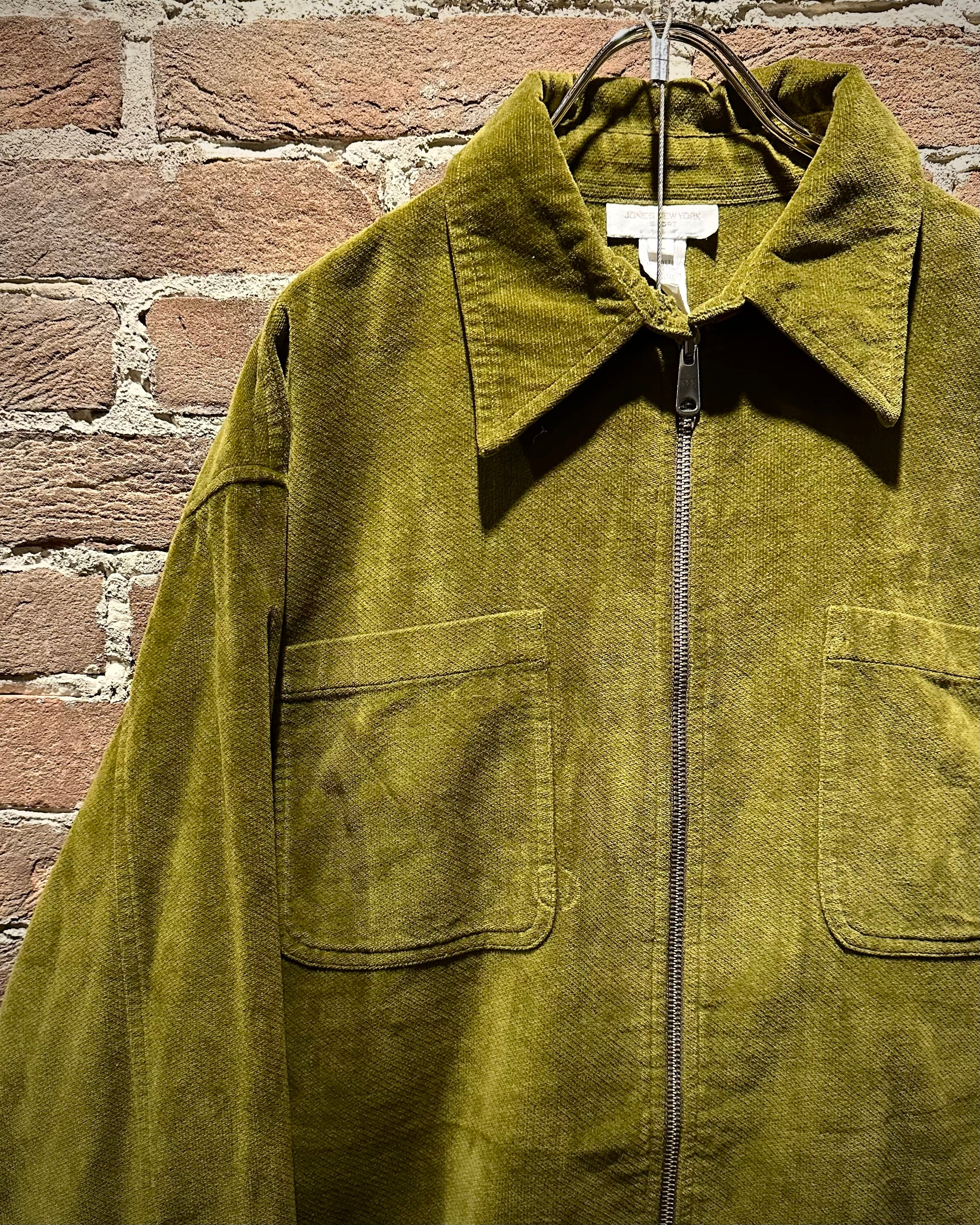 ベロアのように起毛感のある柔らかなファブリックを全面に使用し、光の当たり方によって奥行きのある陰影を生み出す、非常に表情豊かな1着。